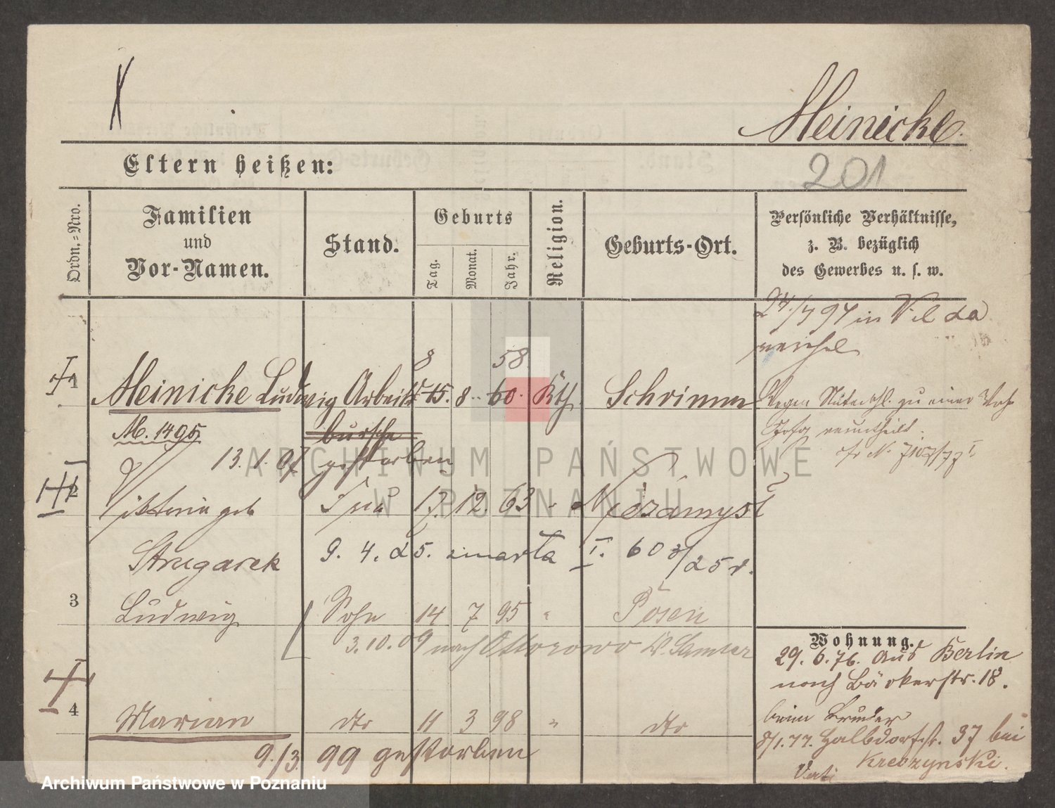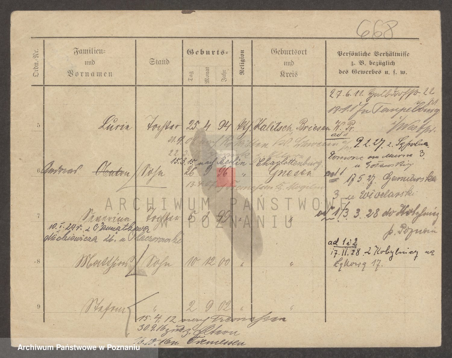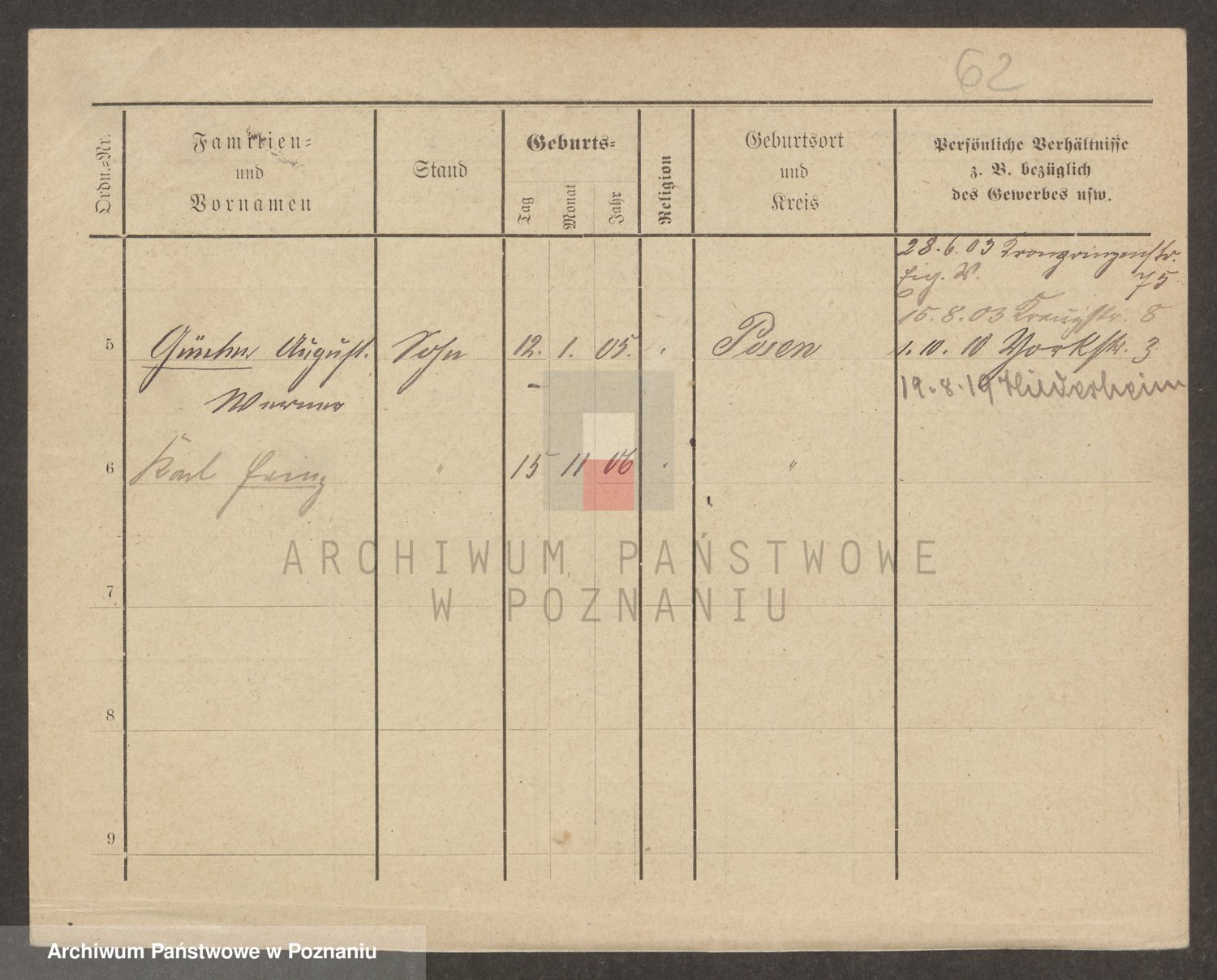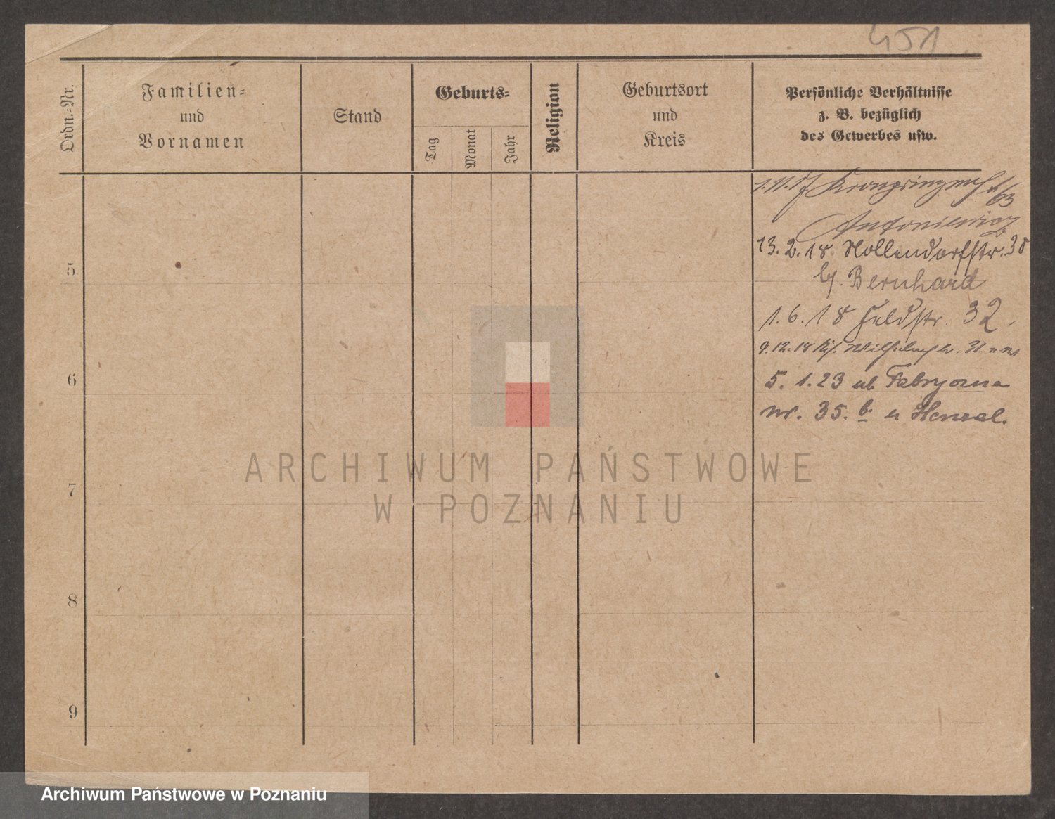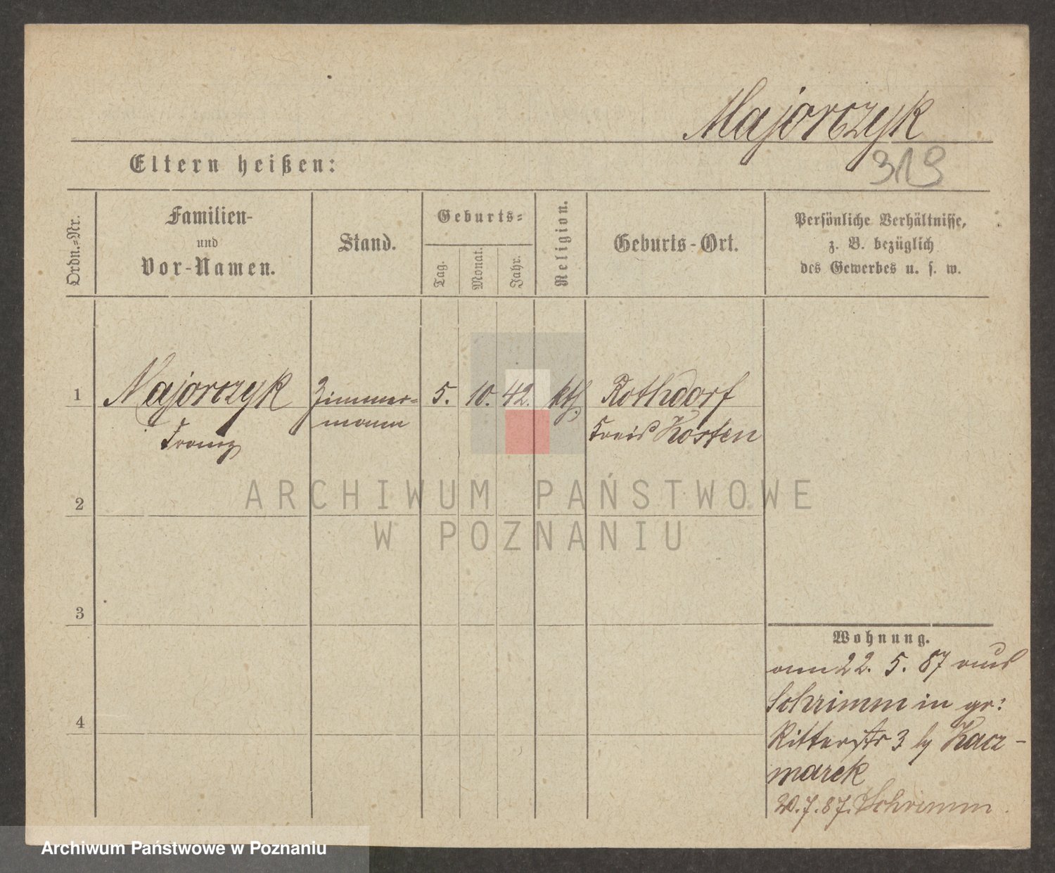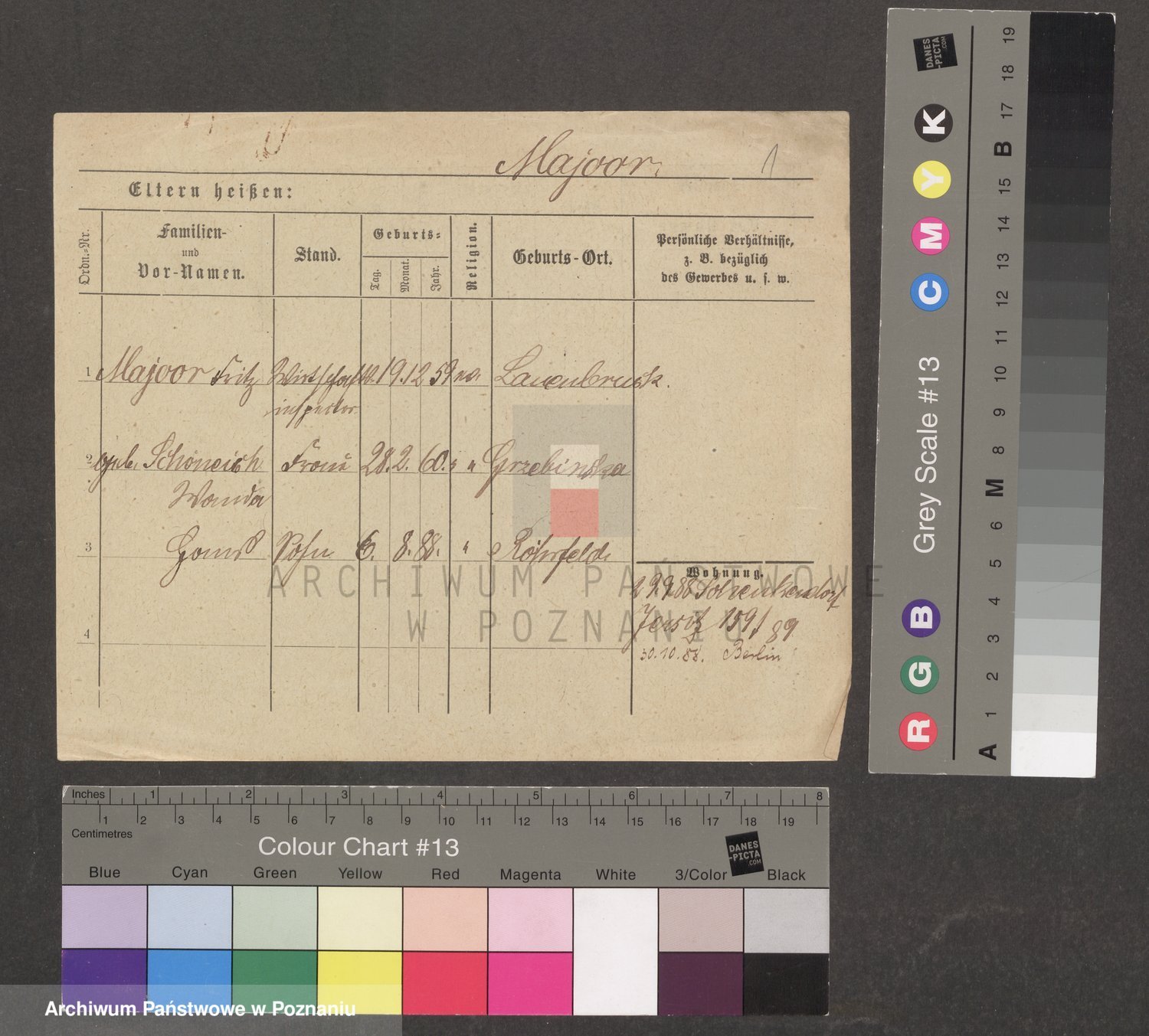 Podgląd karty osobowej dostępny jest po kliknięciu na nazwisko lub ikonkę karty. Można dokonywać powiększenia (ikony na górze) lub przechodzić między kolejnymi skanami (strzałki po bokach).