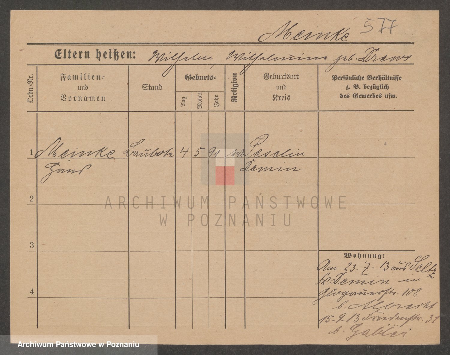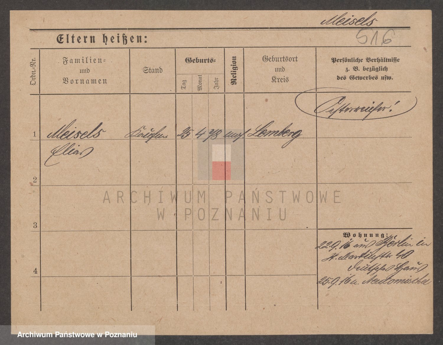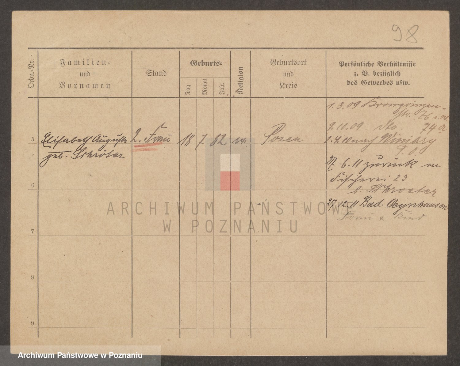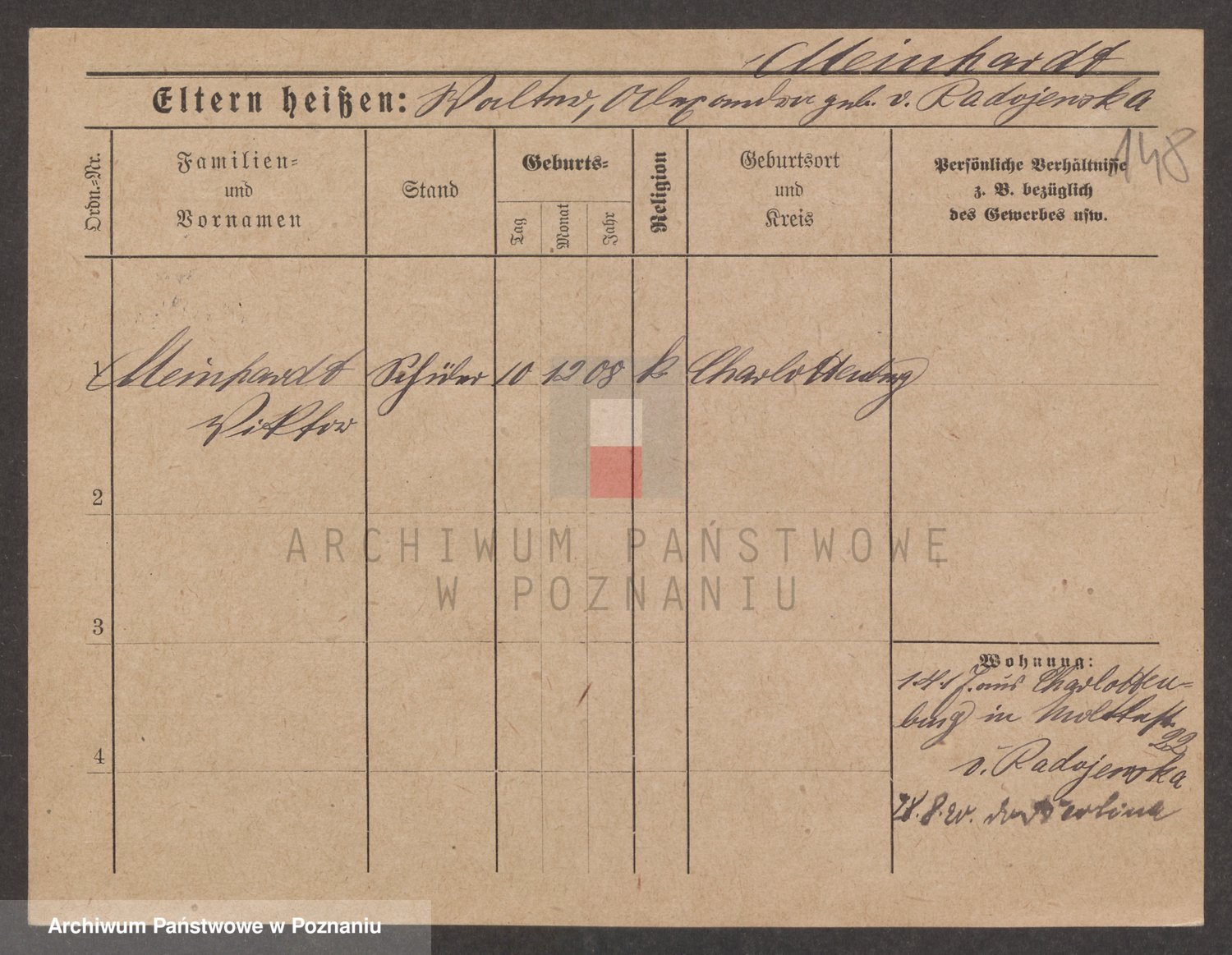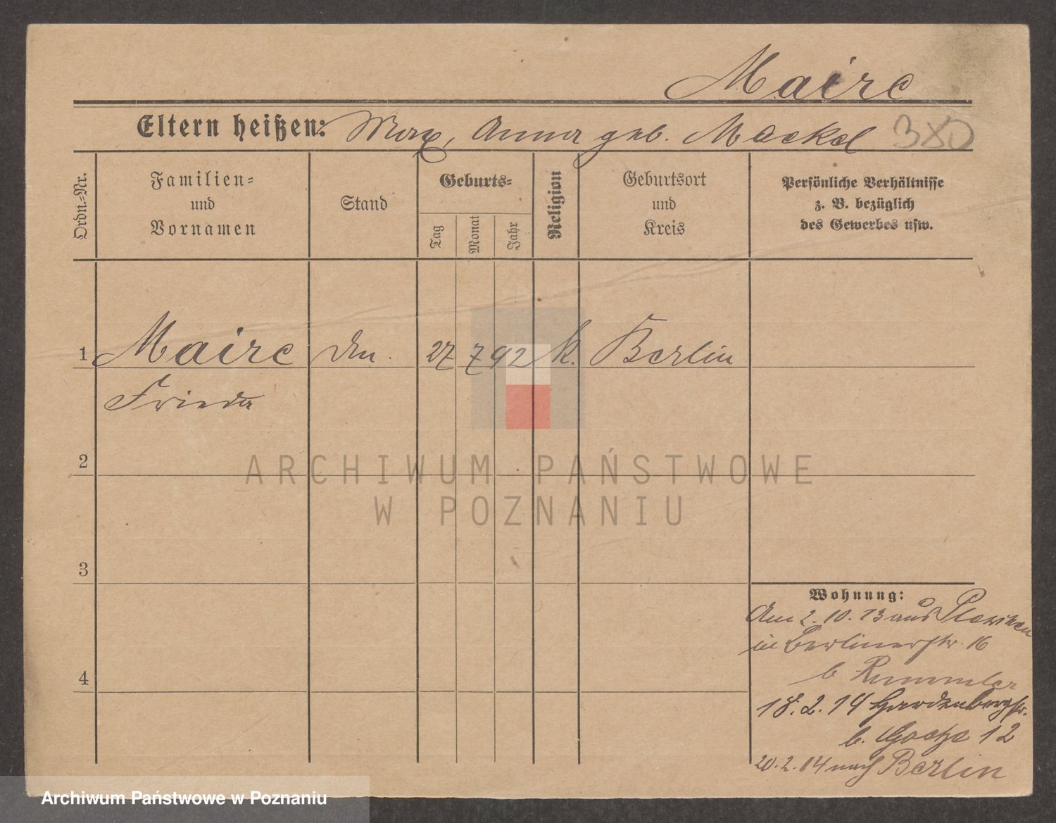 Podgląd karty osobowej dostępny jest po kliknięciu na nazwisko lub ikonkę karty. Można dokonywać powiększenia (ikony na górze) lub przechodzić między kolejnymi skanami (strzałki po bokach).