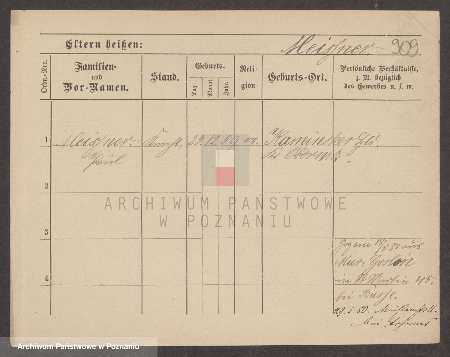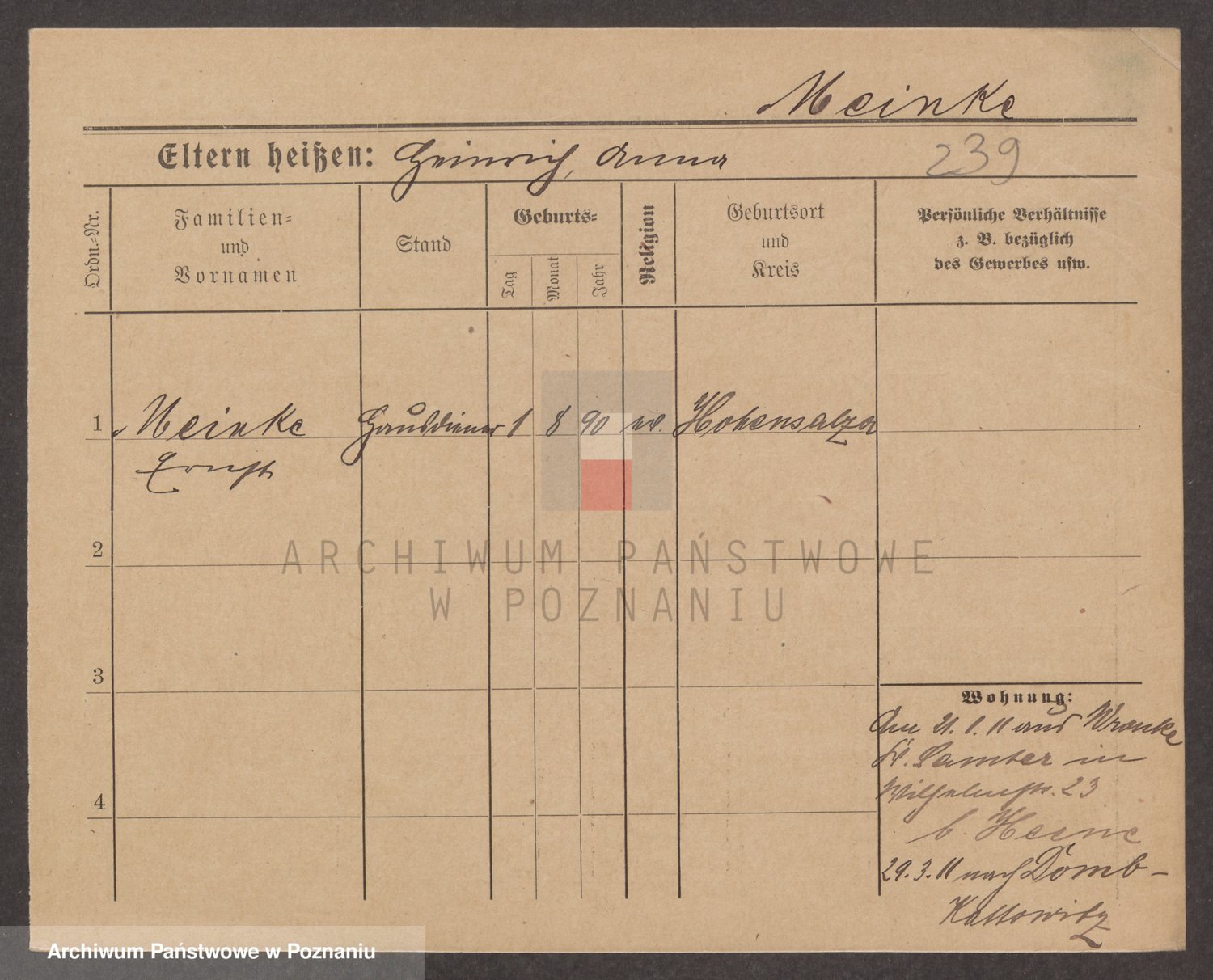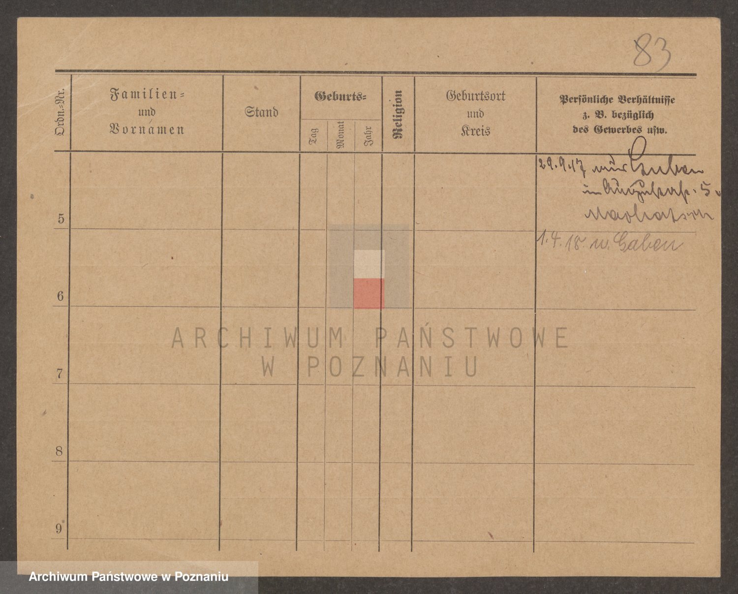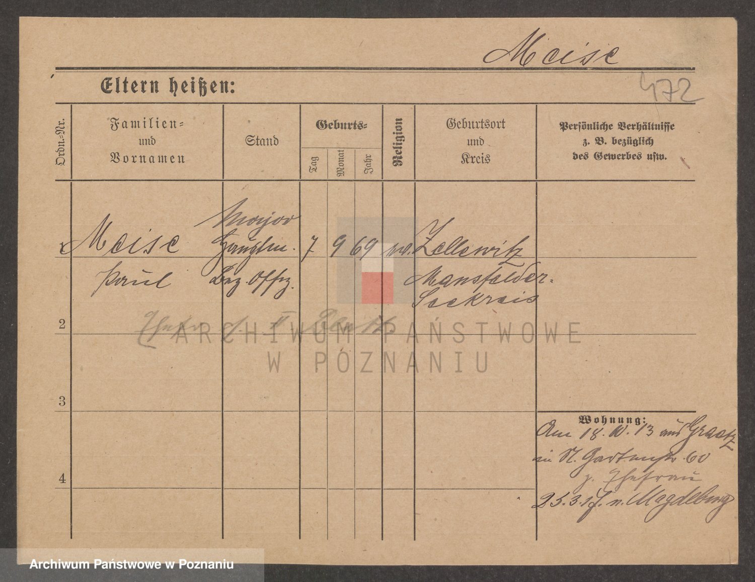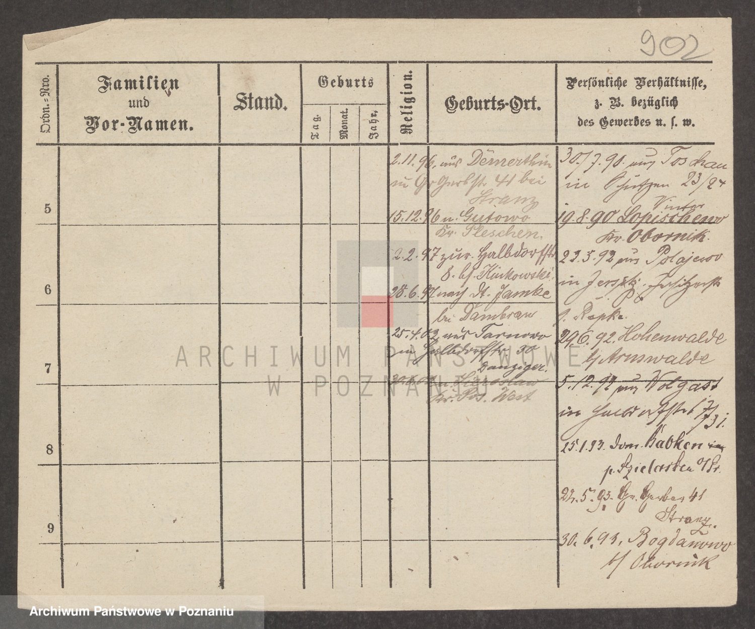 Podgląd karty osobowej dostępny jest po kliknięciu na nazwisko lub ikonkę karty. Można dokonywać powiększenia (ikony na górze) lub przechodzić między kolejnymi skanami (strzałki po bokach).