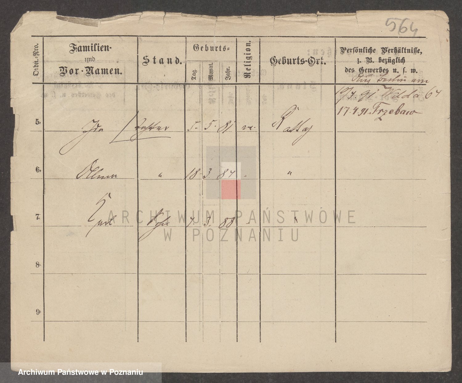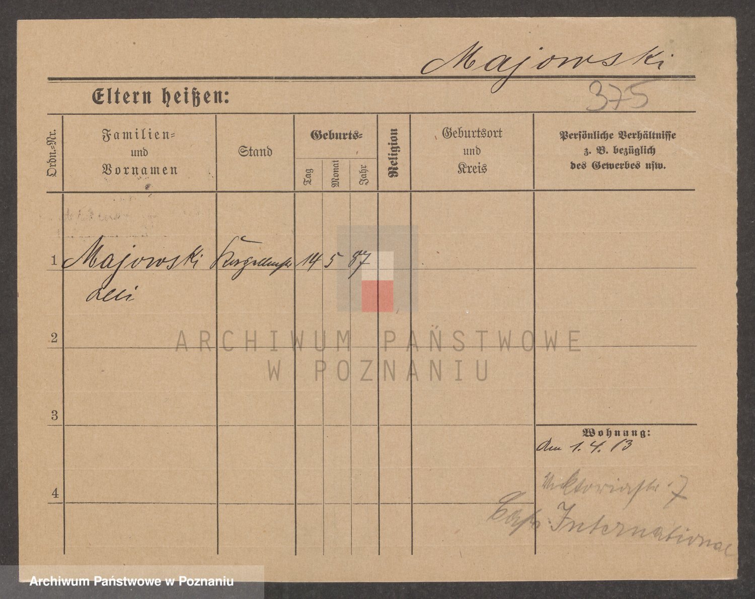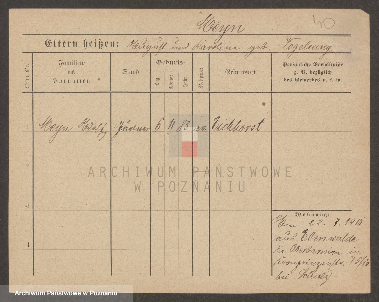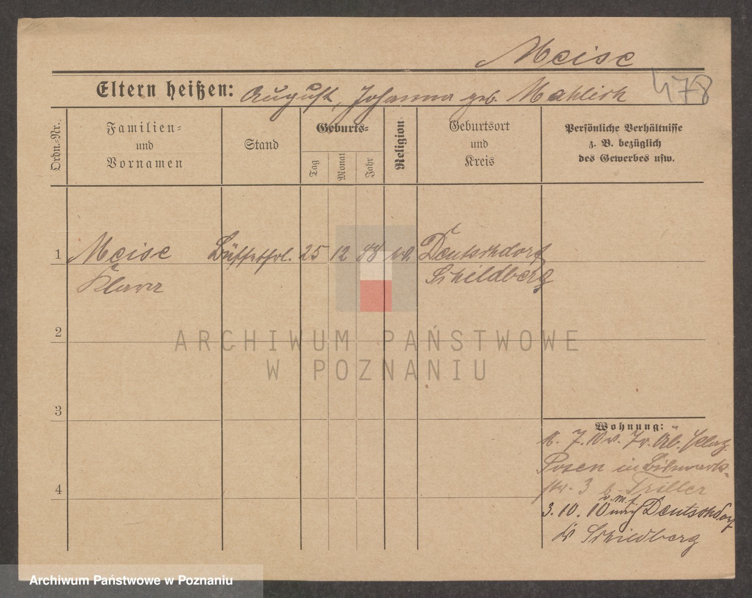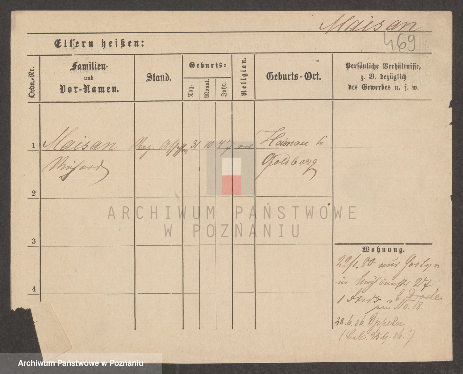 Podgląd karty osobowej dostępny jest po kliknięciu na nazwisko lub ikonkę karty. Można dokonywać powiększenia (ikony na górze) lub przechodzić między kolejnymi skanami (strzałki po bokach).