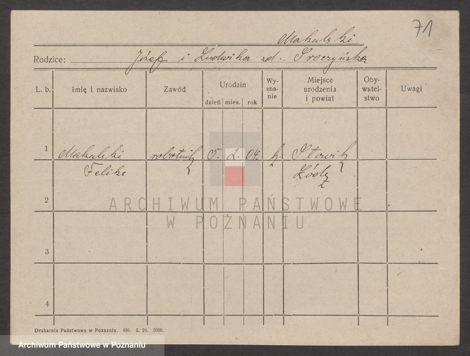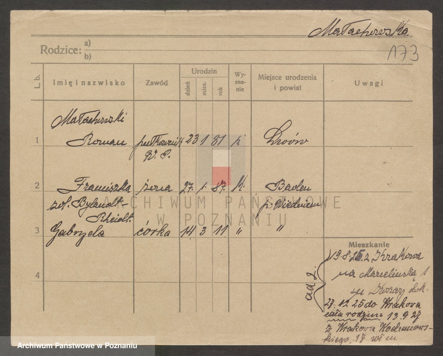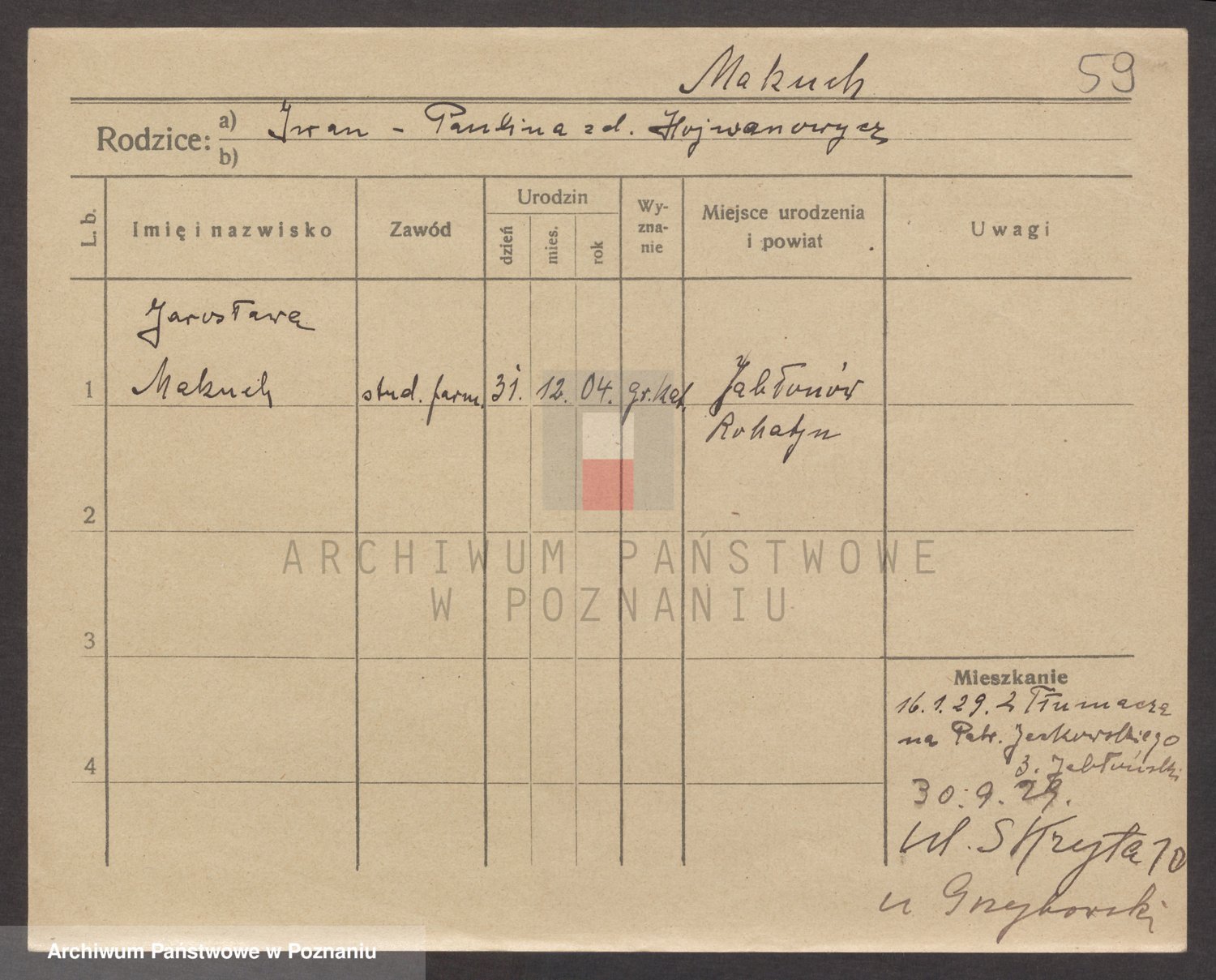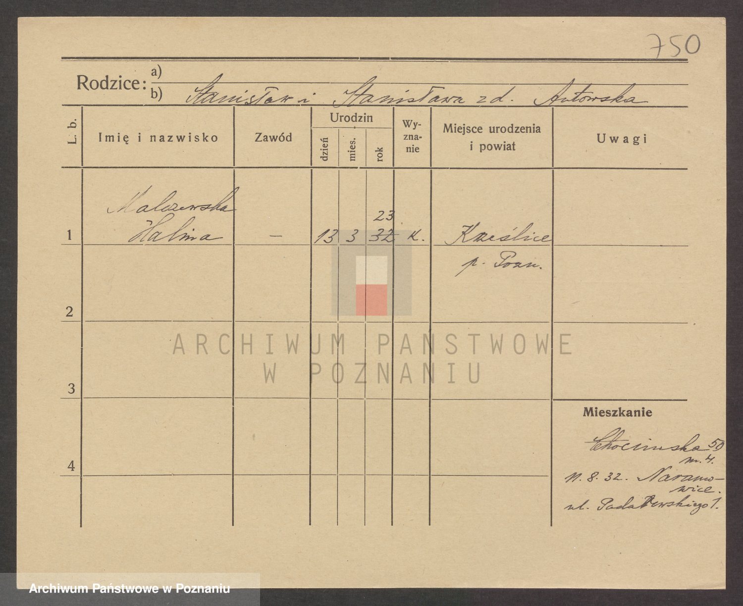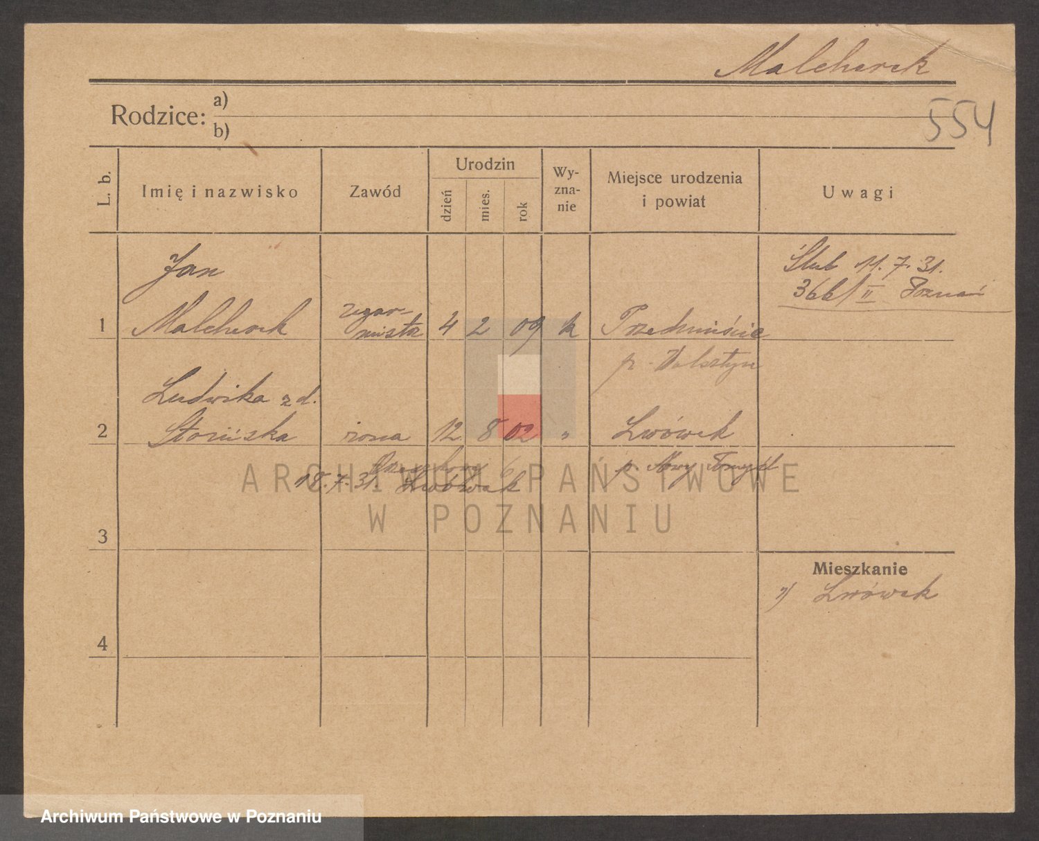 Podgląd karty osobowej dostępny jest po kliknięciu na nazwisko lub ikonkę karty. Można dokonywać powiększenia (ikony na górze) lub przechodzić między kolejnymi skanami (strzałki po bokach).