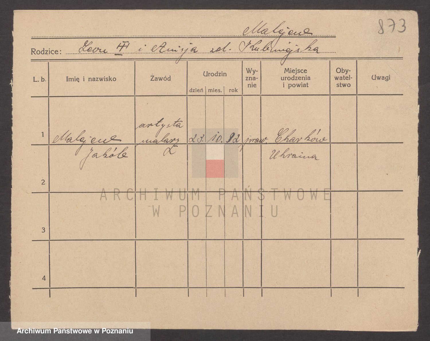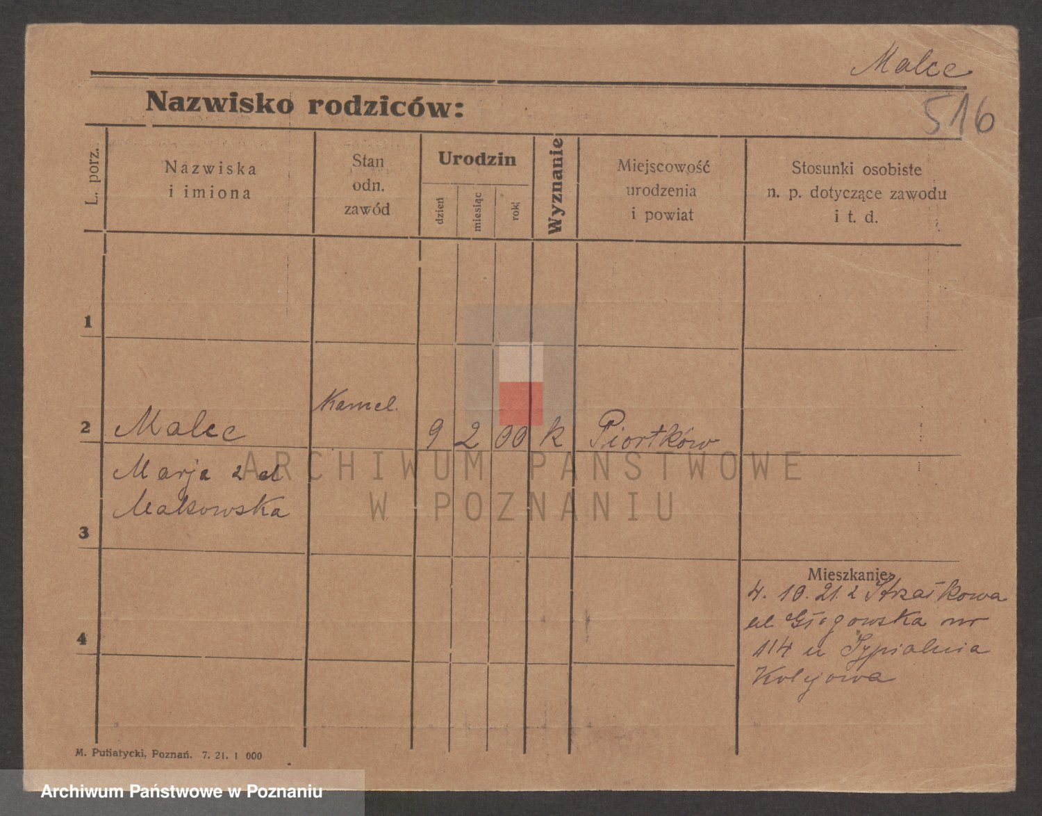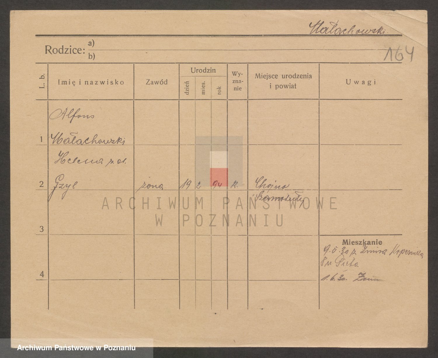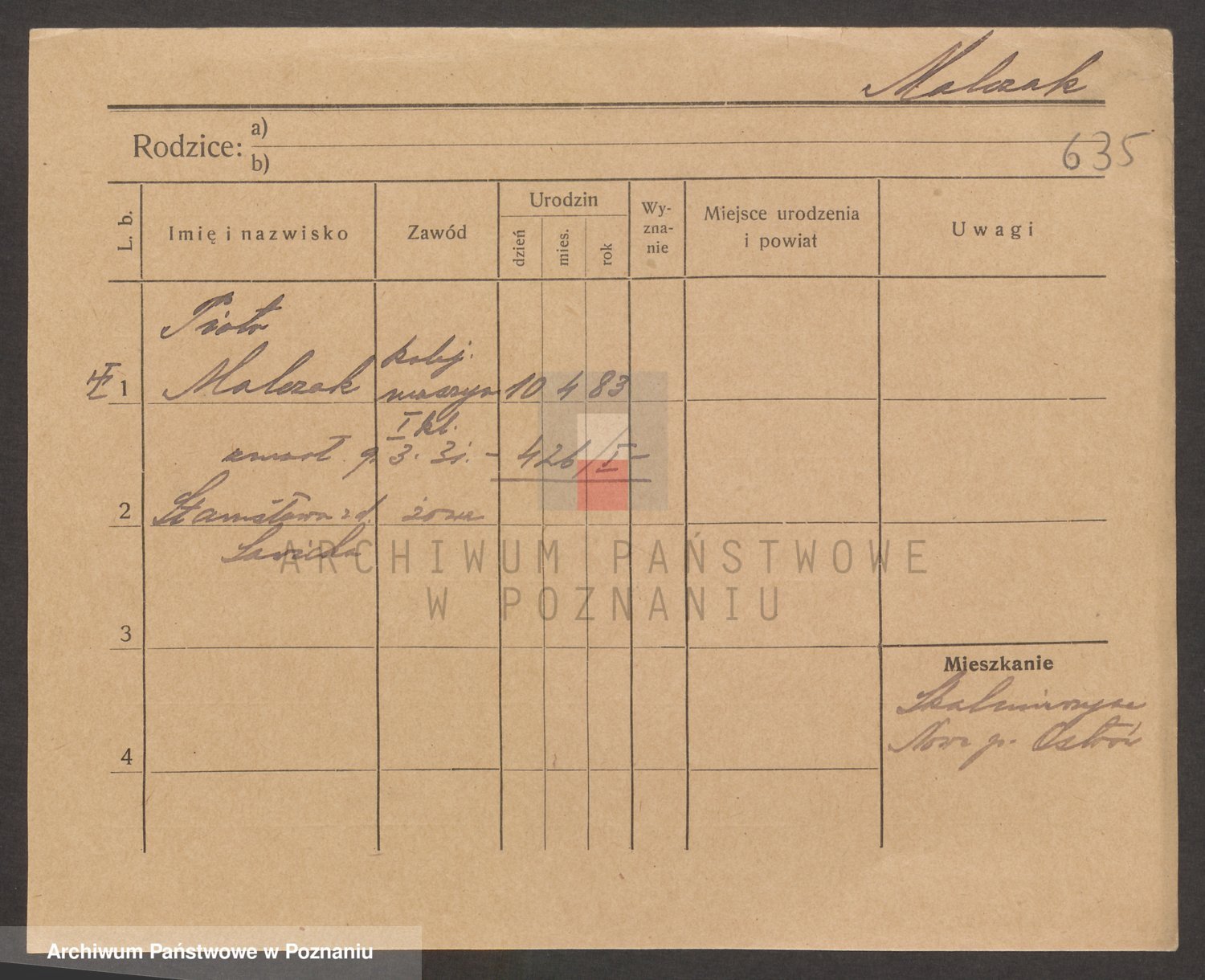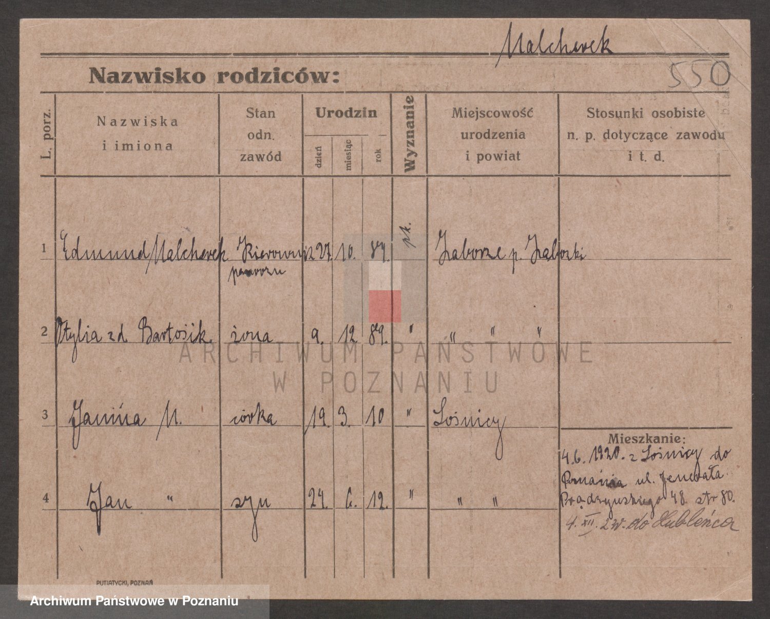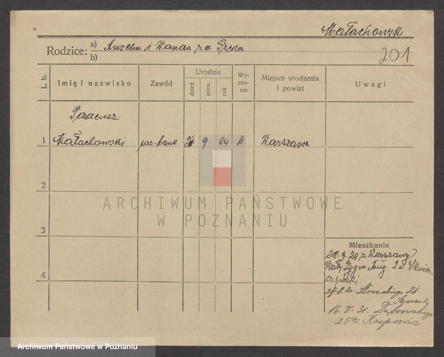 Podgląd karty osobowej dostępny jest po kliknięciu na nazwisko lub ikonkę karty. Można dokonywać powiększenia (ikony na górze) lub przechodzić między kolejnymi skanami (strzałki po bokach).