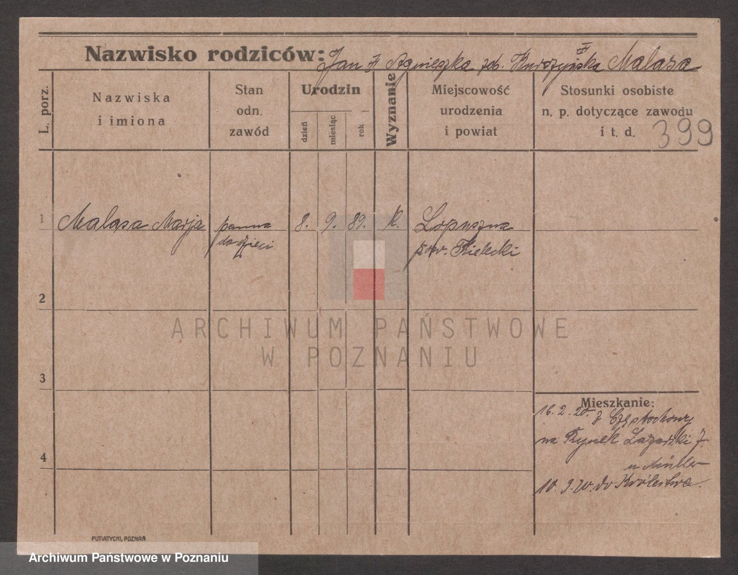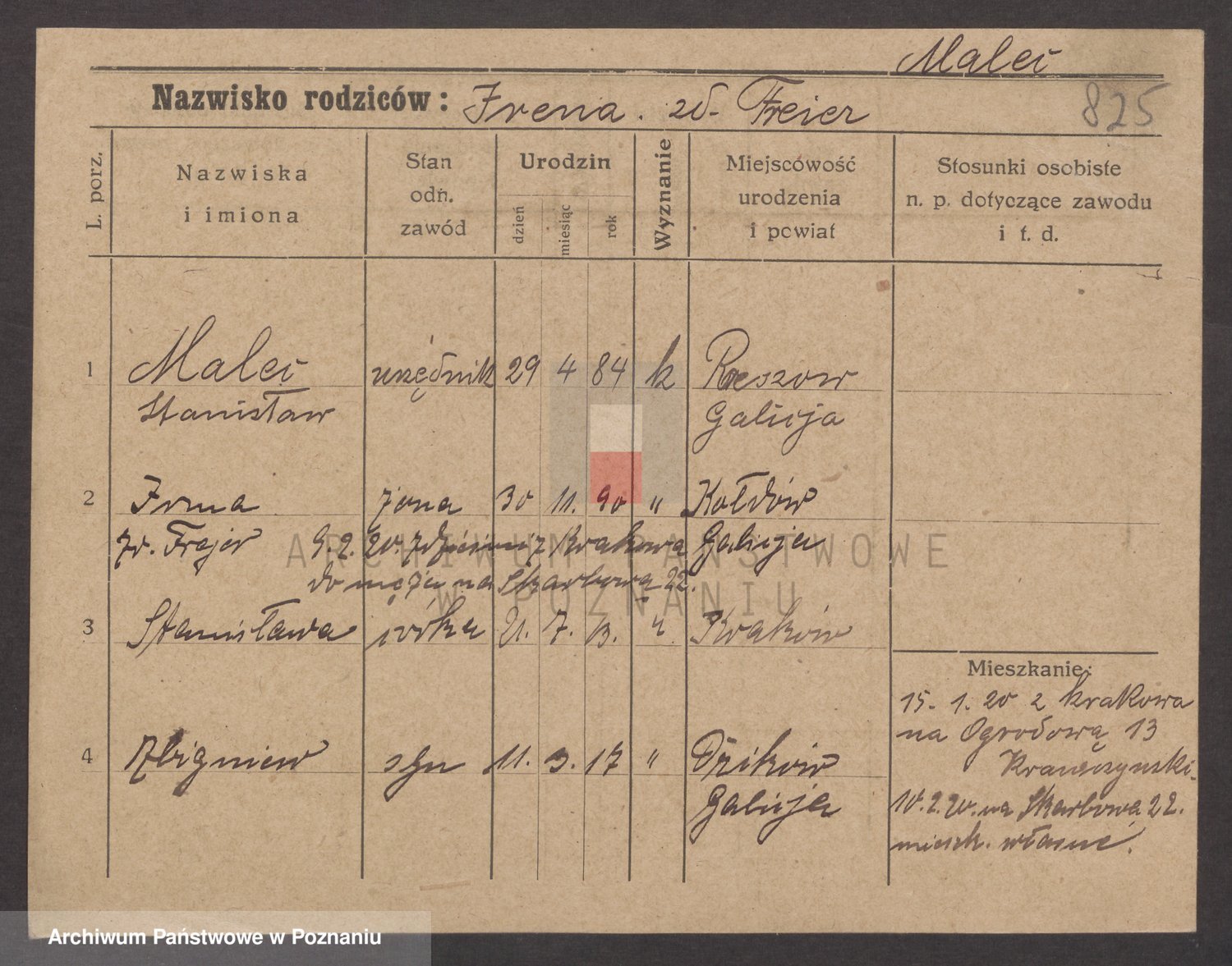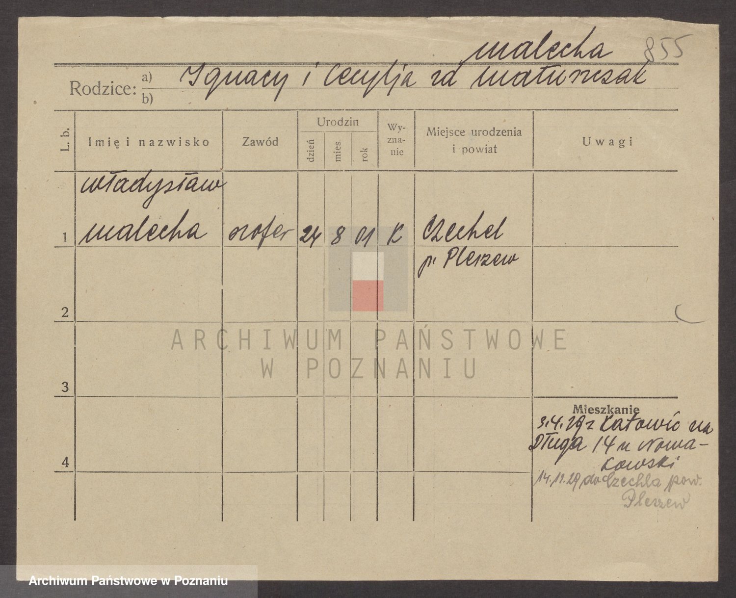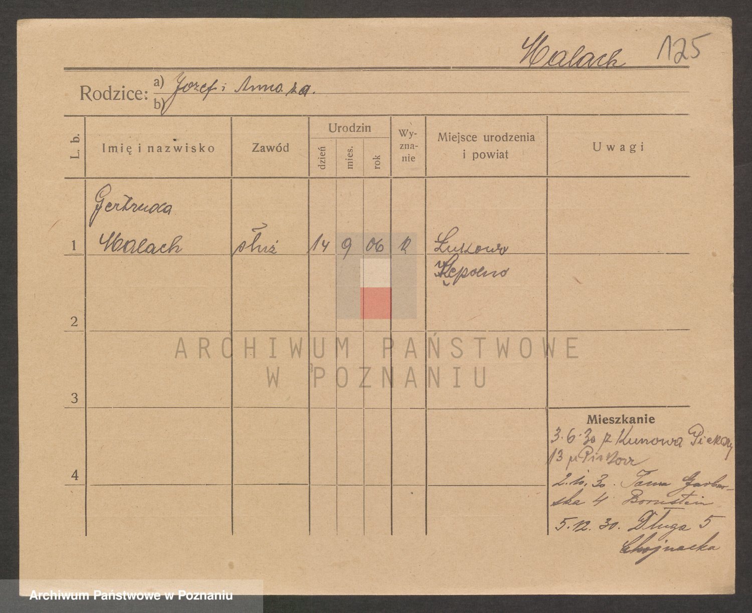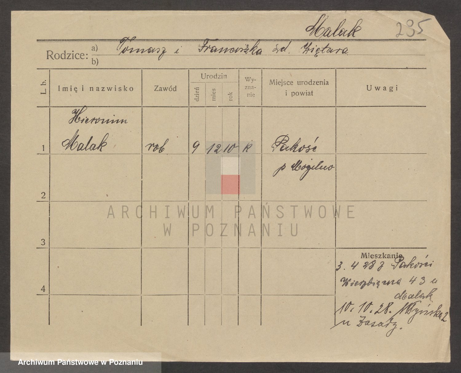 Podgląd karty osobowej dostępny jest po kliknięciu na nazwisko lub ikonkę karty. Można dokonywać powiększenia (ikony na górze) lub przechodzić między kolejnymi skanami (strzałki po bokach).