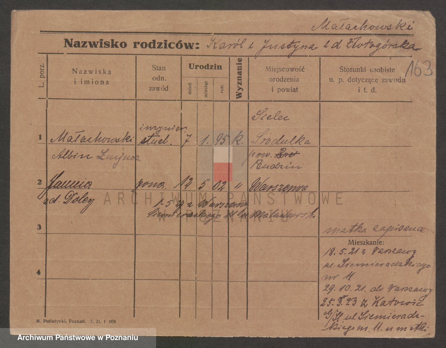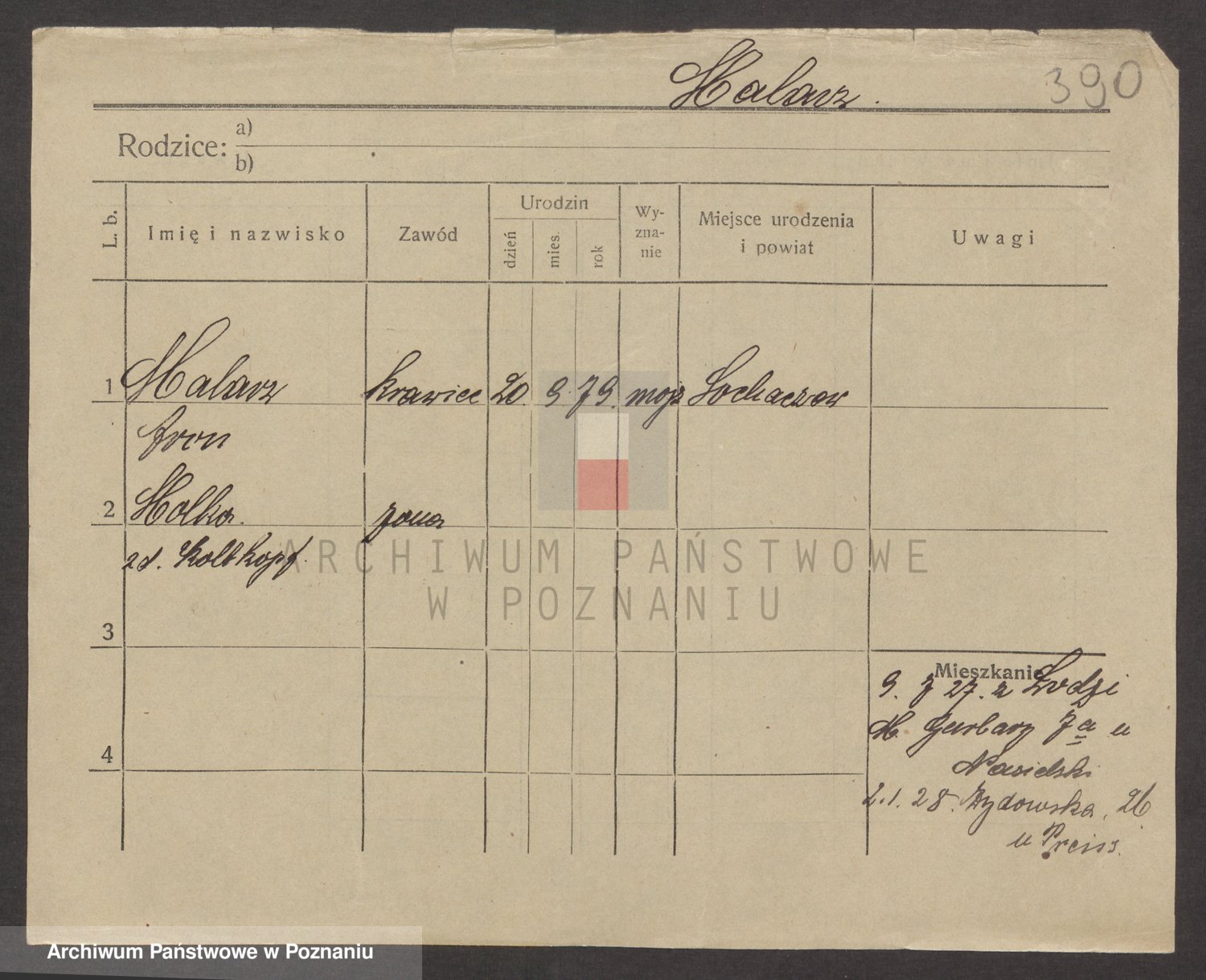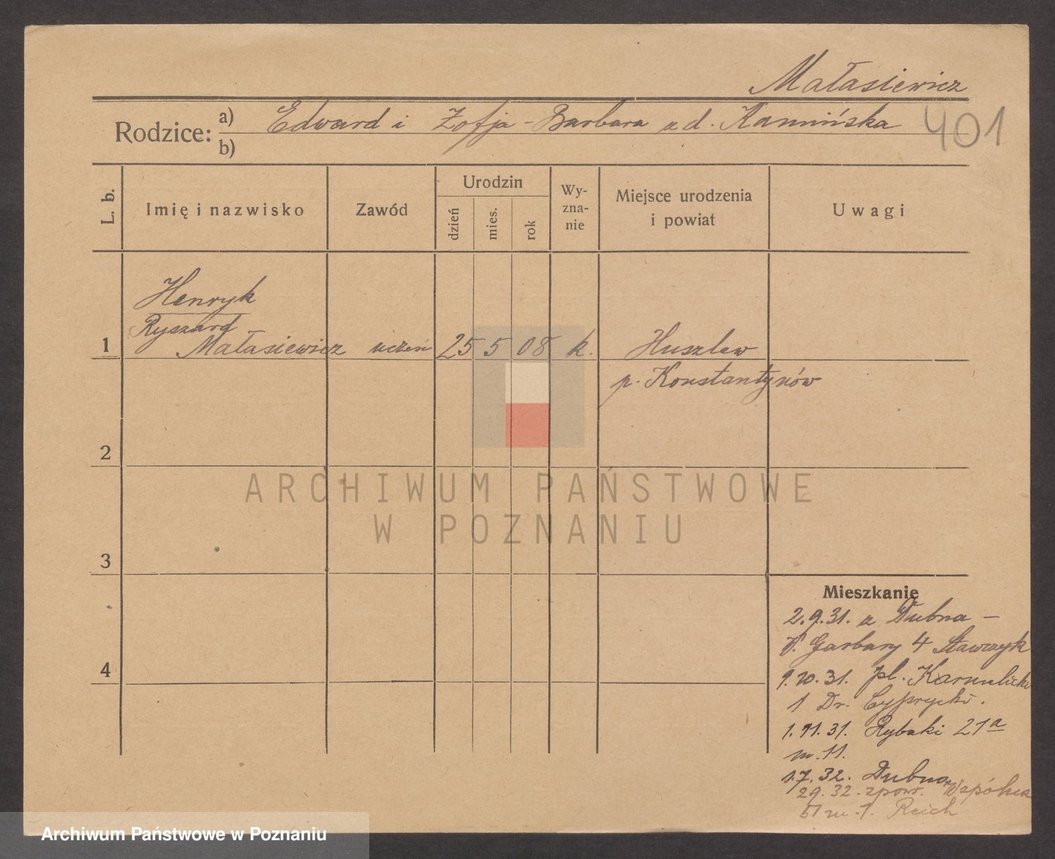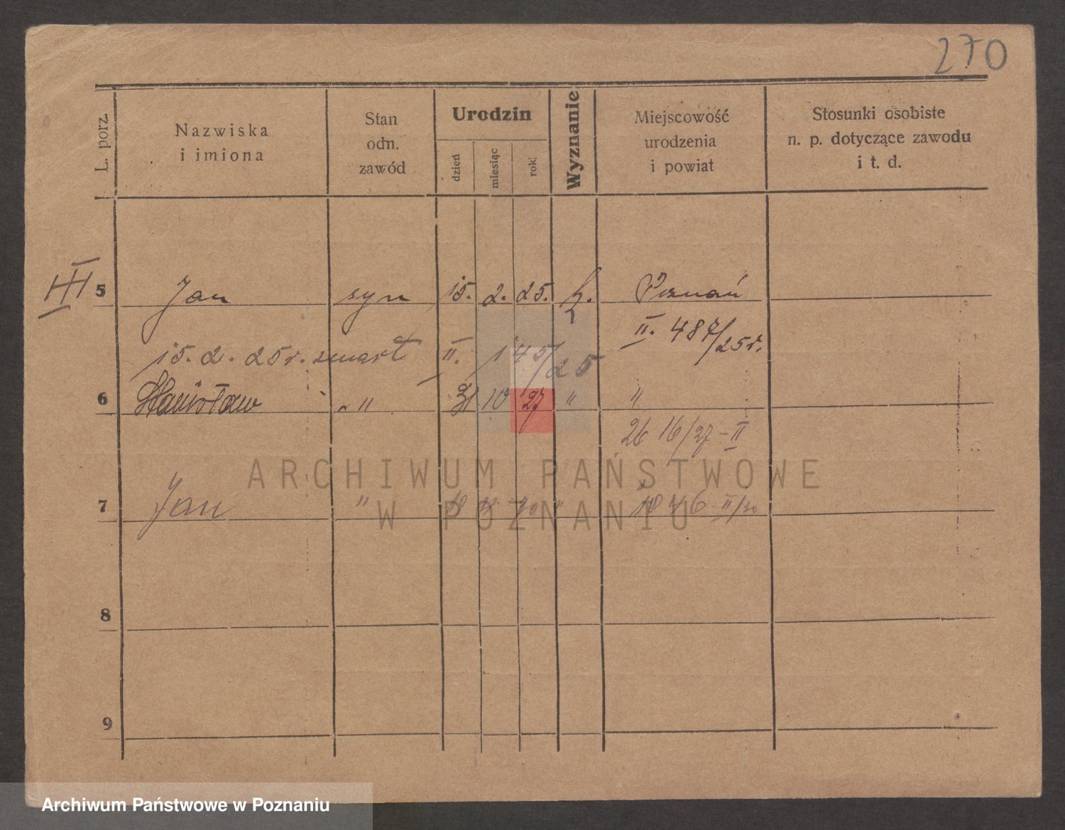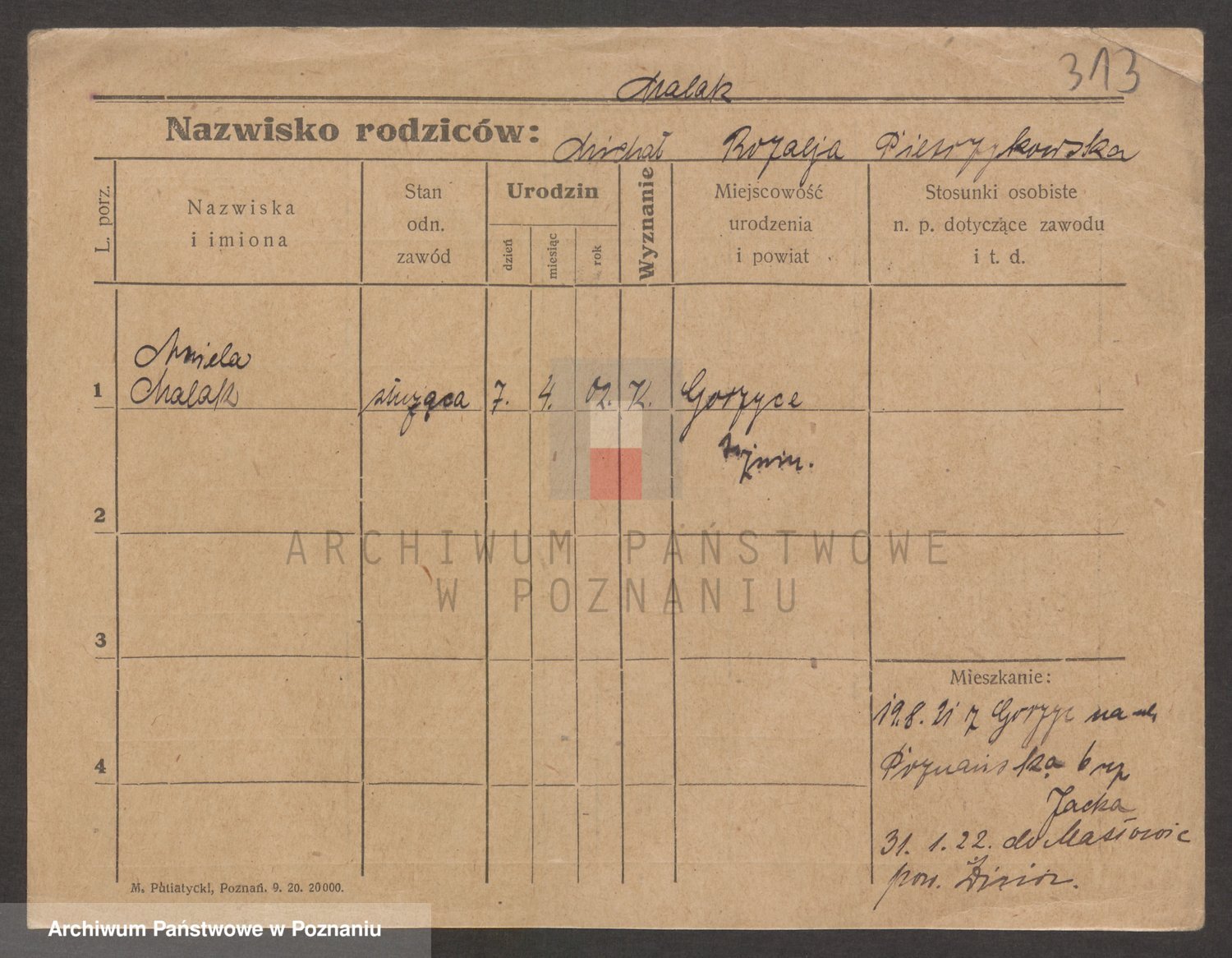 Podgląd karty osobowej dostępny jest po kliknięciu na nazwisko lub ikonkę karty. Można dokonywać powiększenia (ikony na górze) lub przechodzić między kolejnymi skanami (strzałki po bokach).