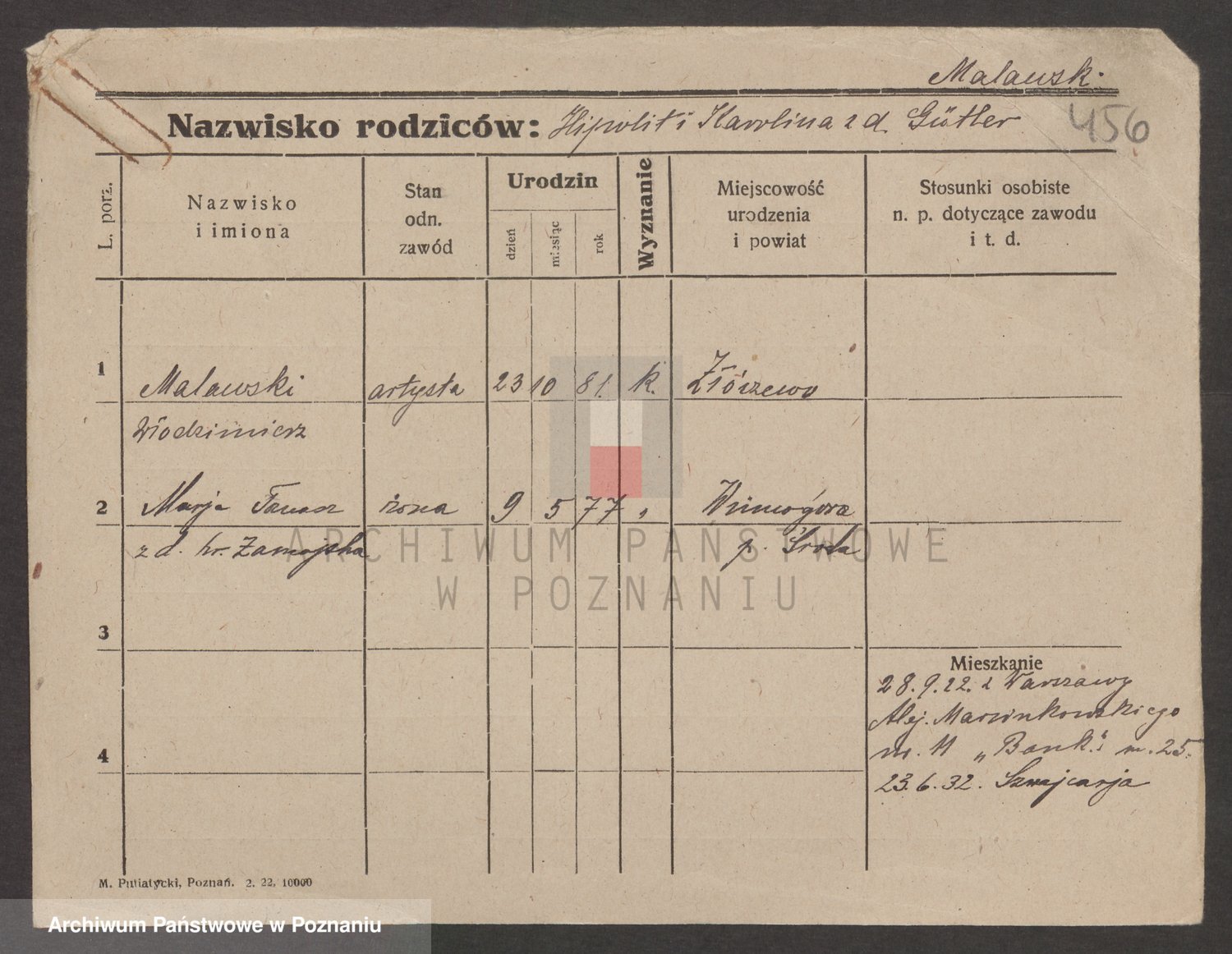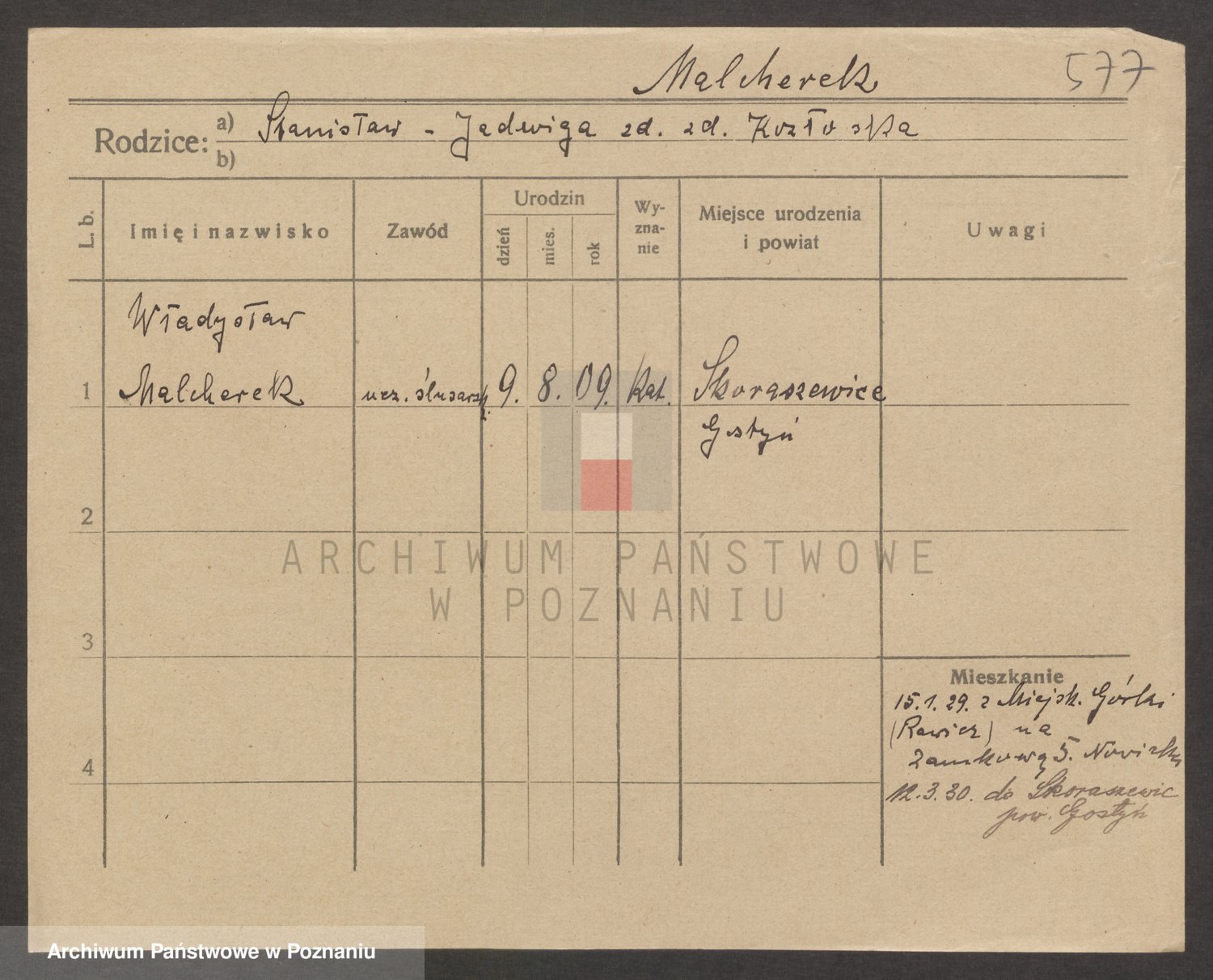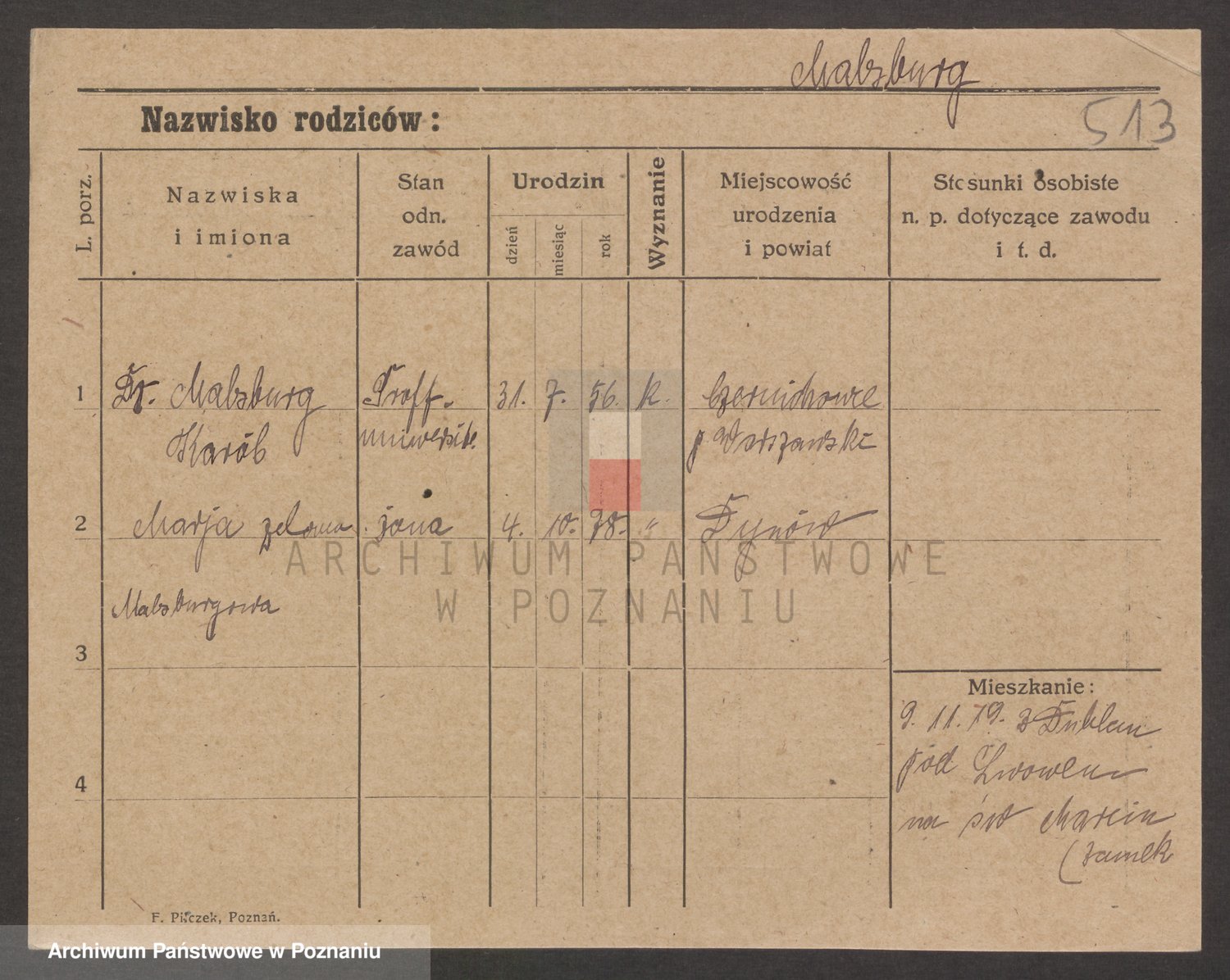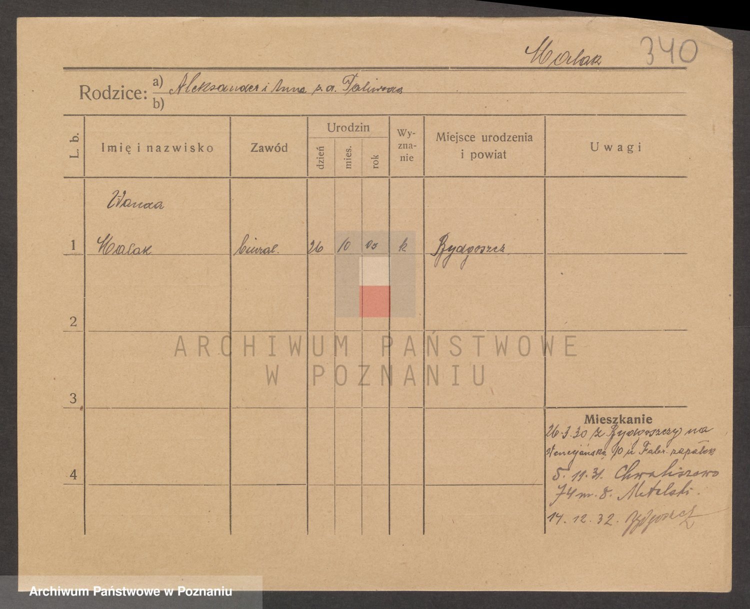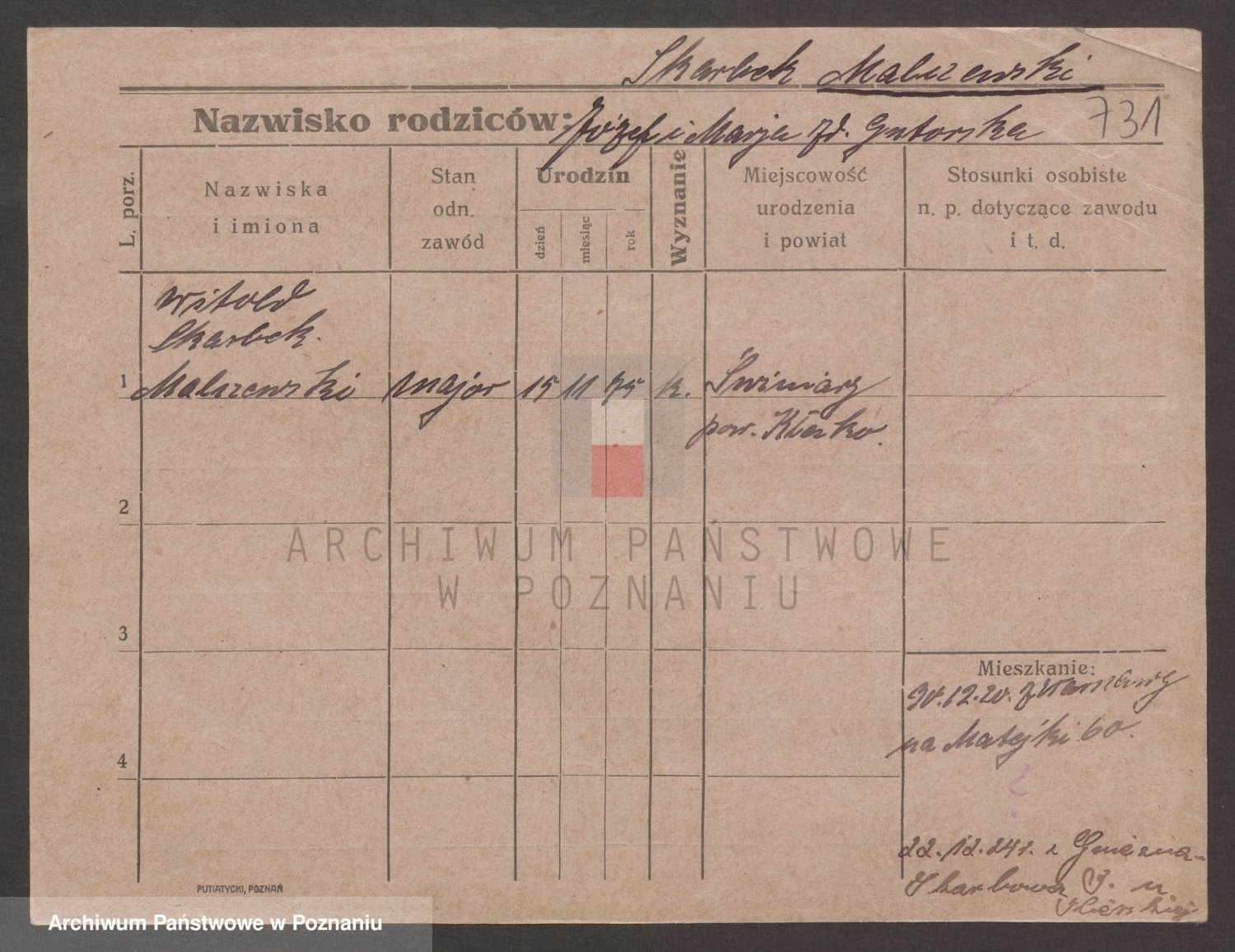 Podgląd karty osobowej dostępny jest po kliknięciu na nazwisko lub ikonkę karty. Można dokonywać powiększenia (ikony na górze) lub przechodzić między kolejnymi skanami (strzałki po bokach).