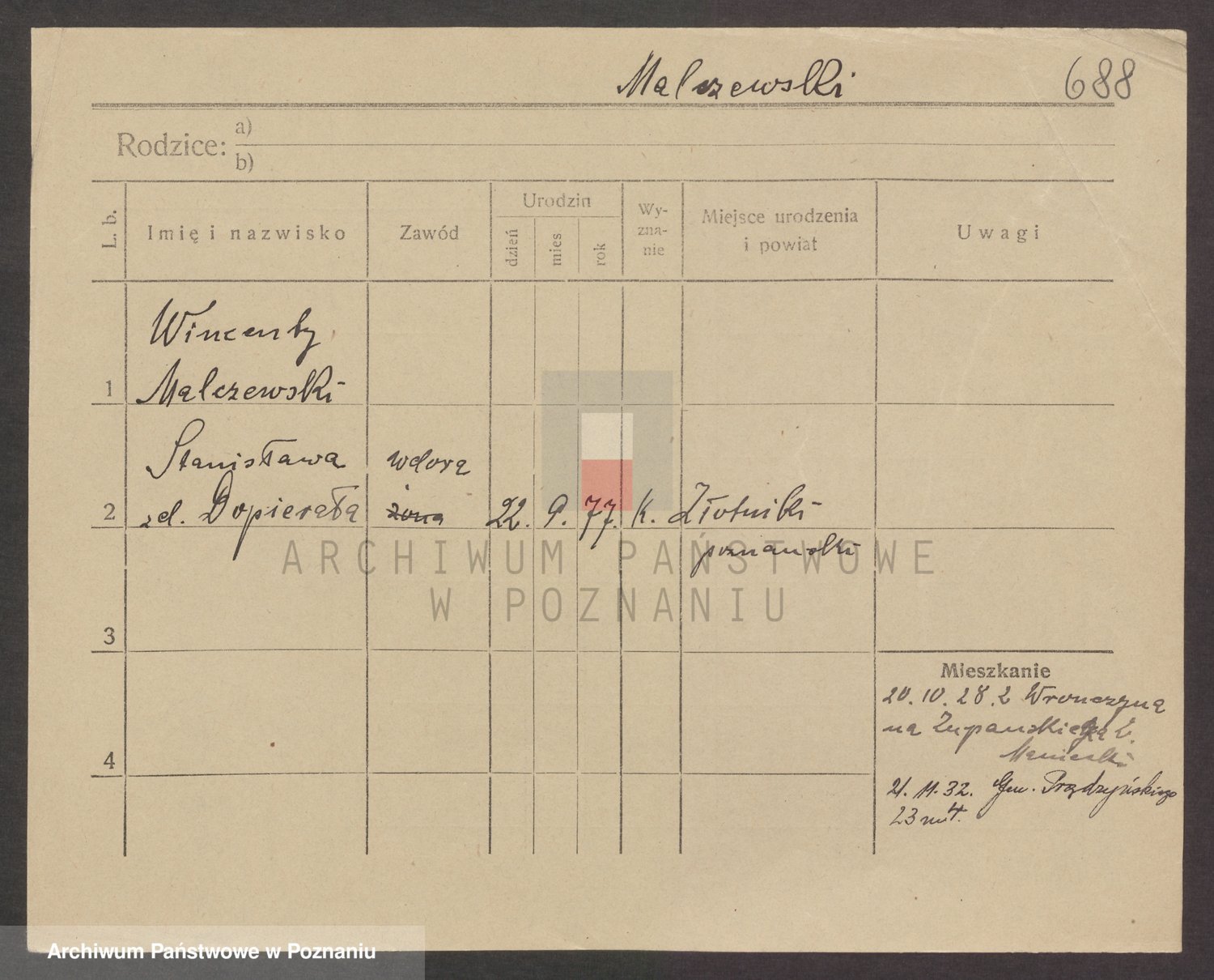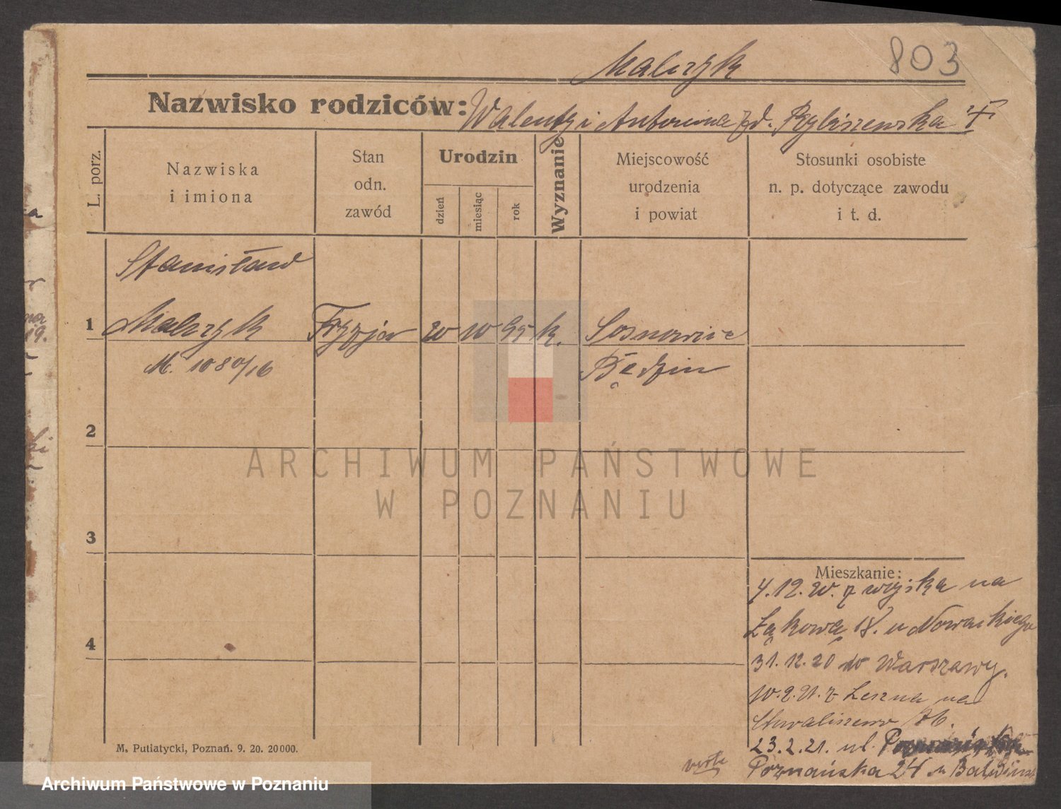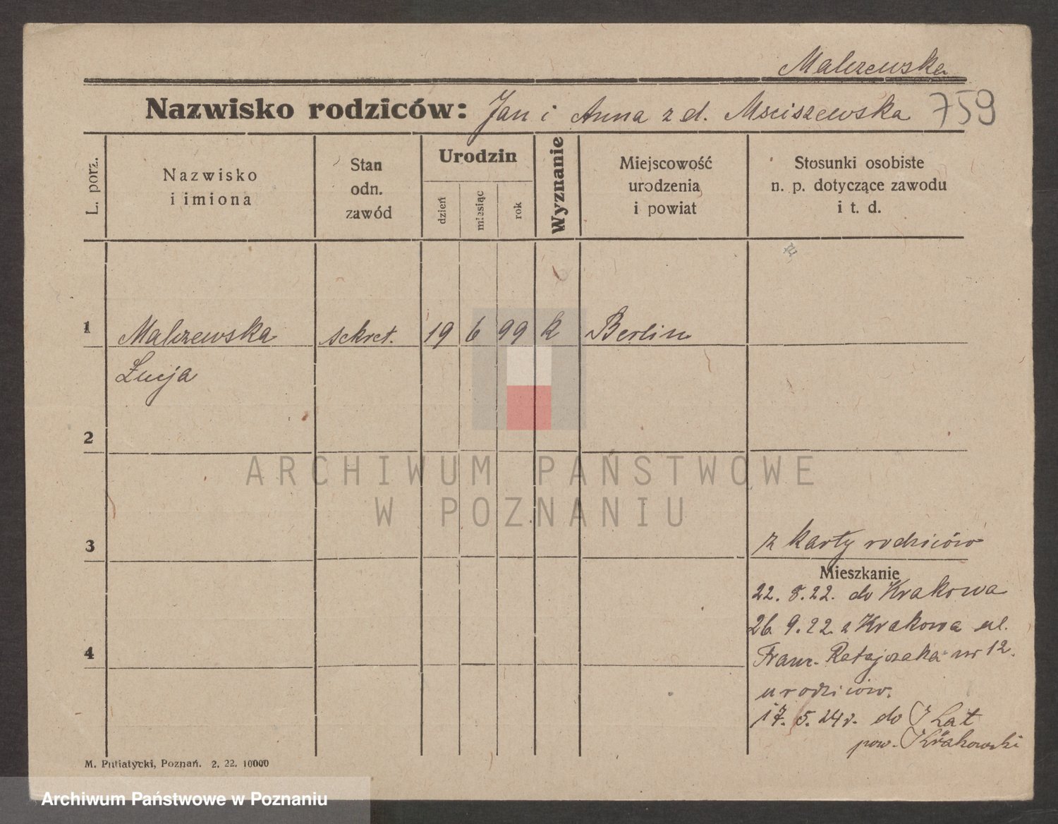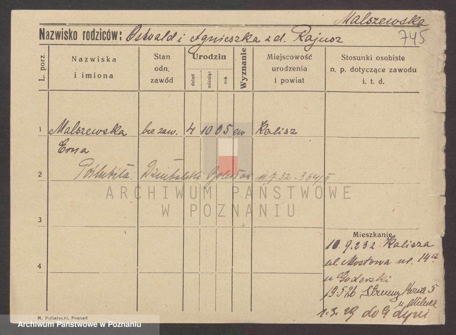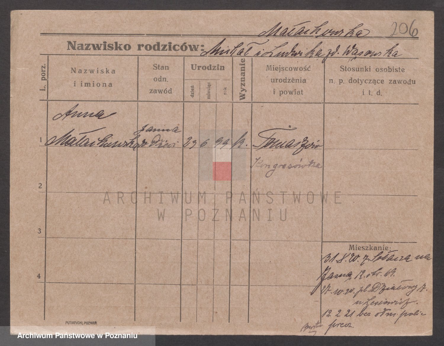 Podgląd karty osobowej dostępny jest po kliknięciu na nazwisko lub ikonkę karty. Można dokonywać powiększenia (ikony na górze) lub przechodzić między kolejnymi skanami (strzałki po bokach).