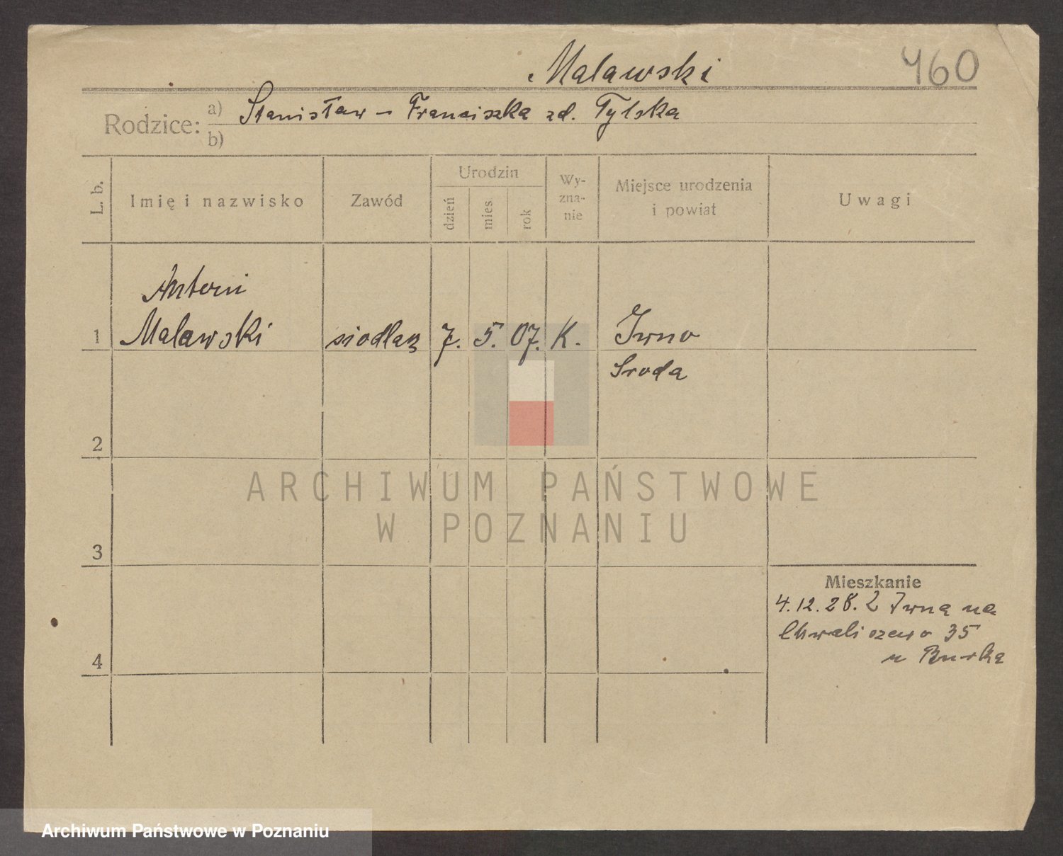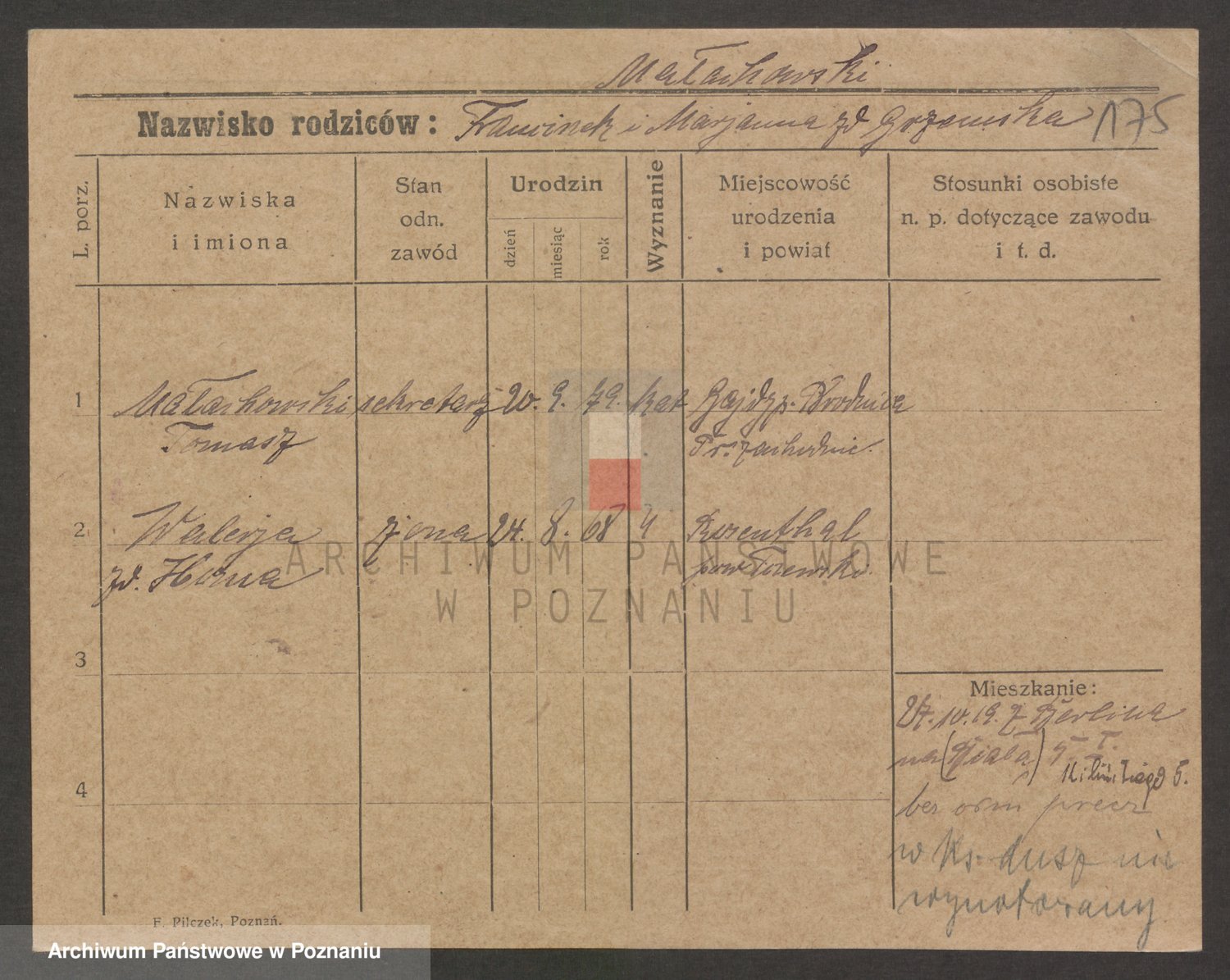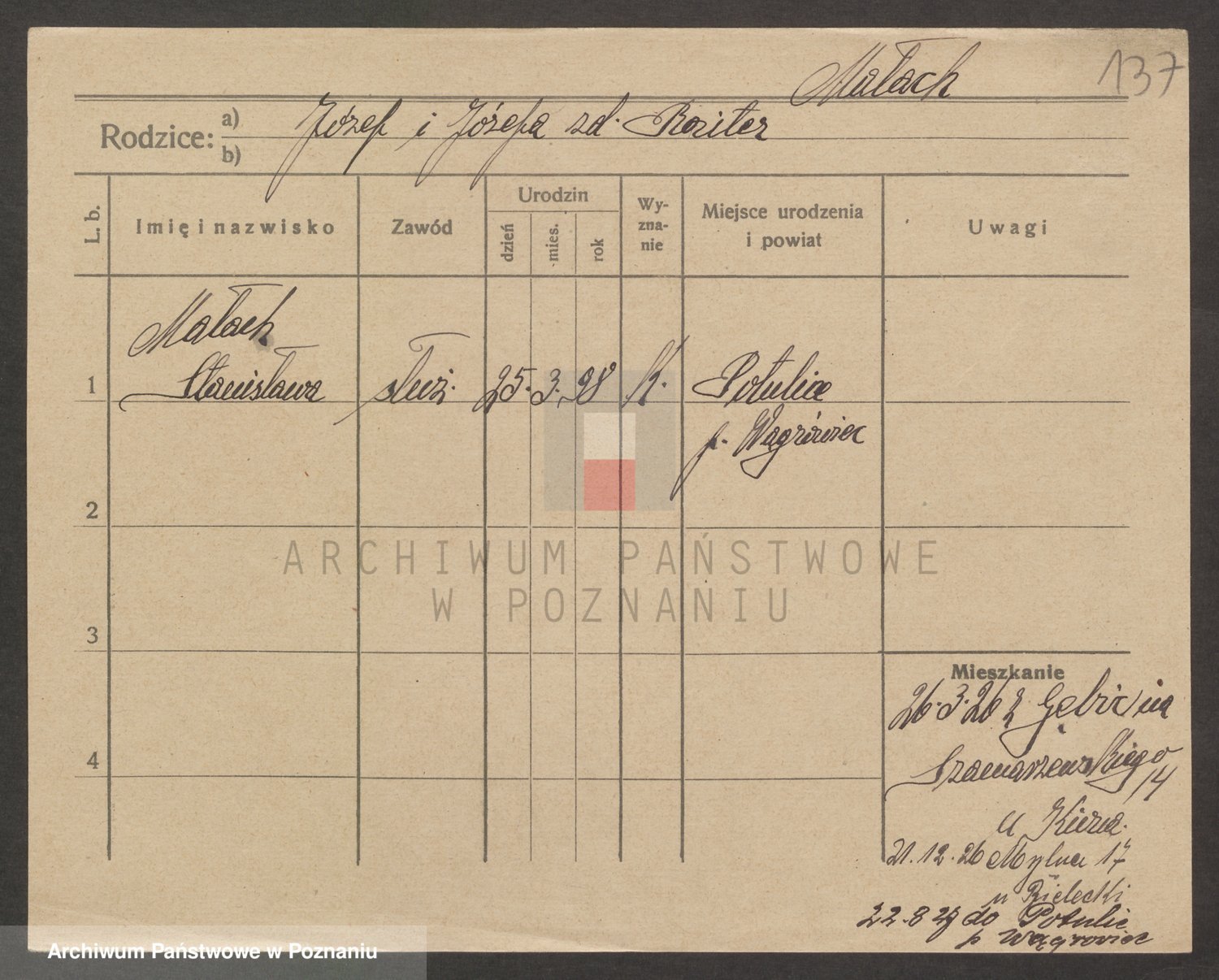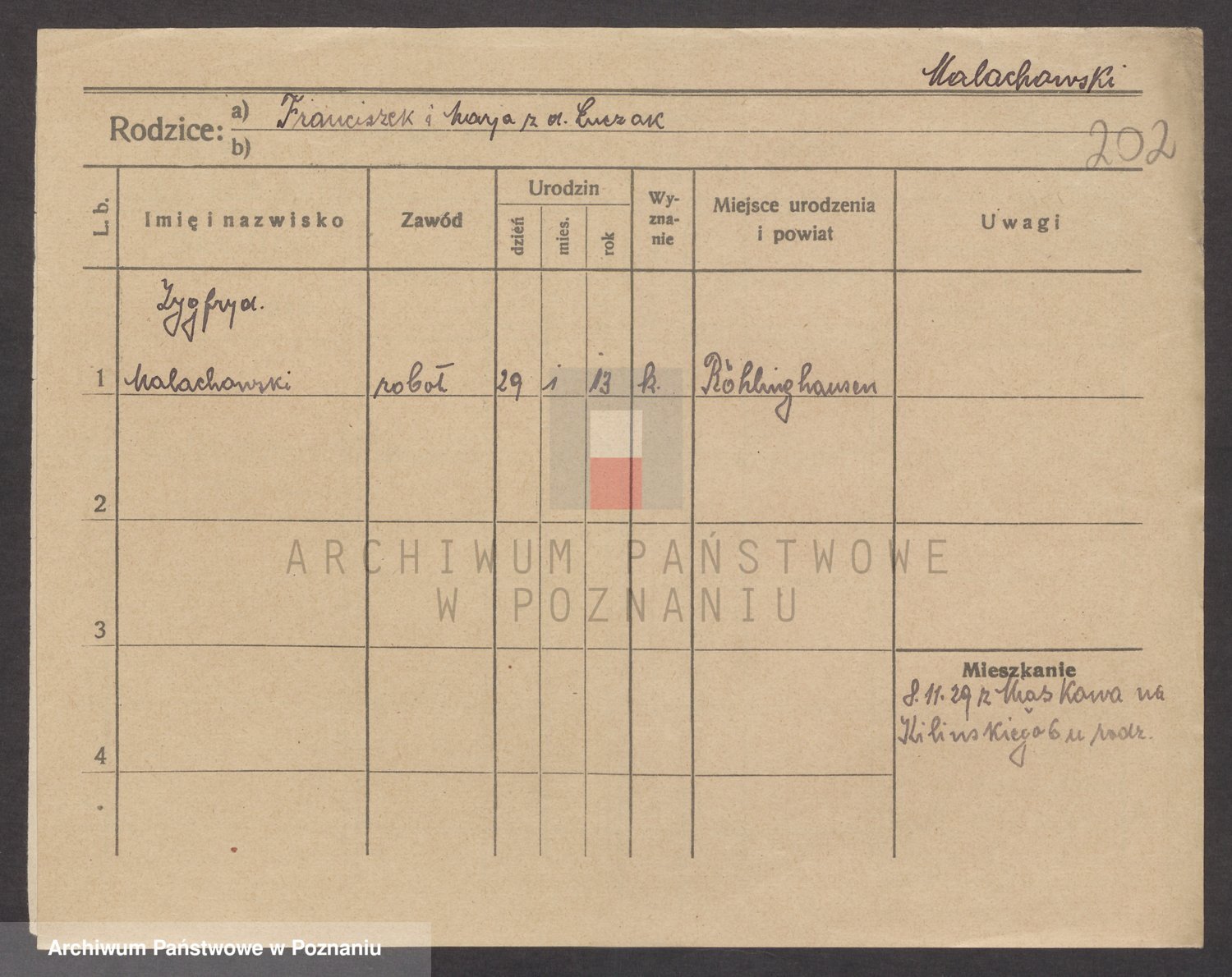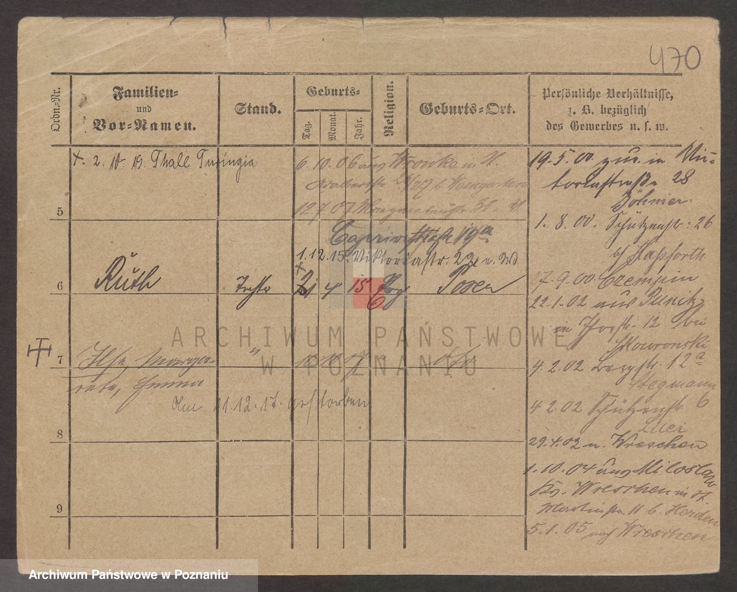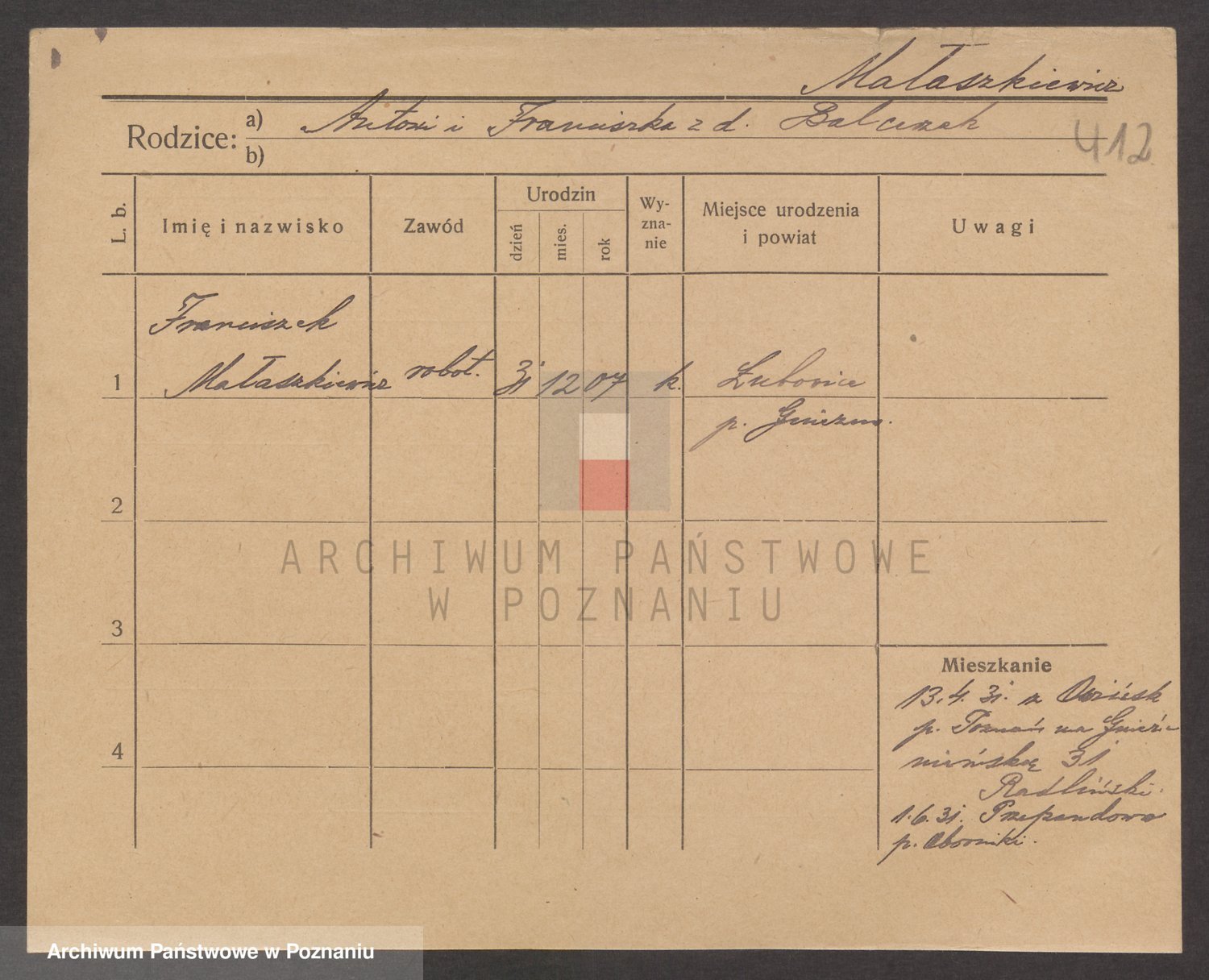Podgląd karty osobowej dostępny jest po kliknięciu na nazwisko lub ikonkę karty. Można dokonywać powiększenia (ikony na górze) lub przechodzić między kolejnymi skanami (strzałki po bokach).