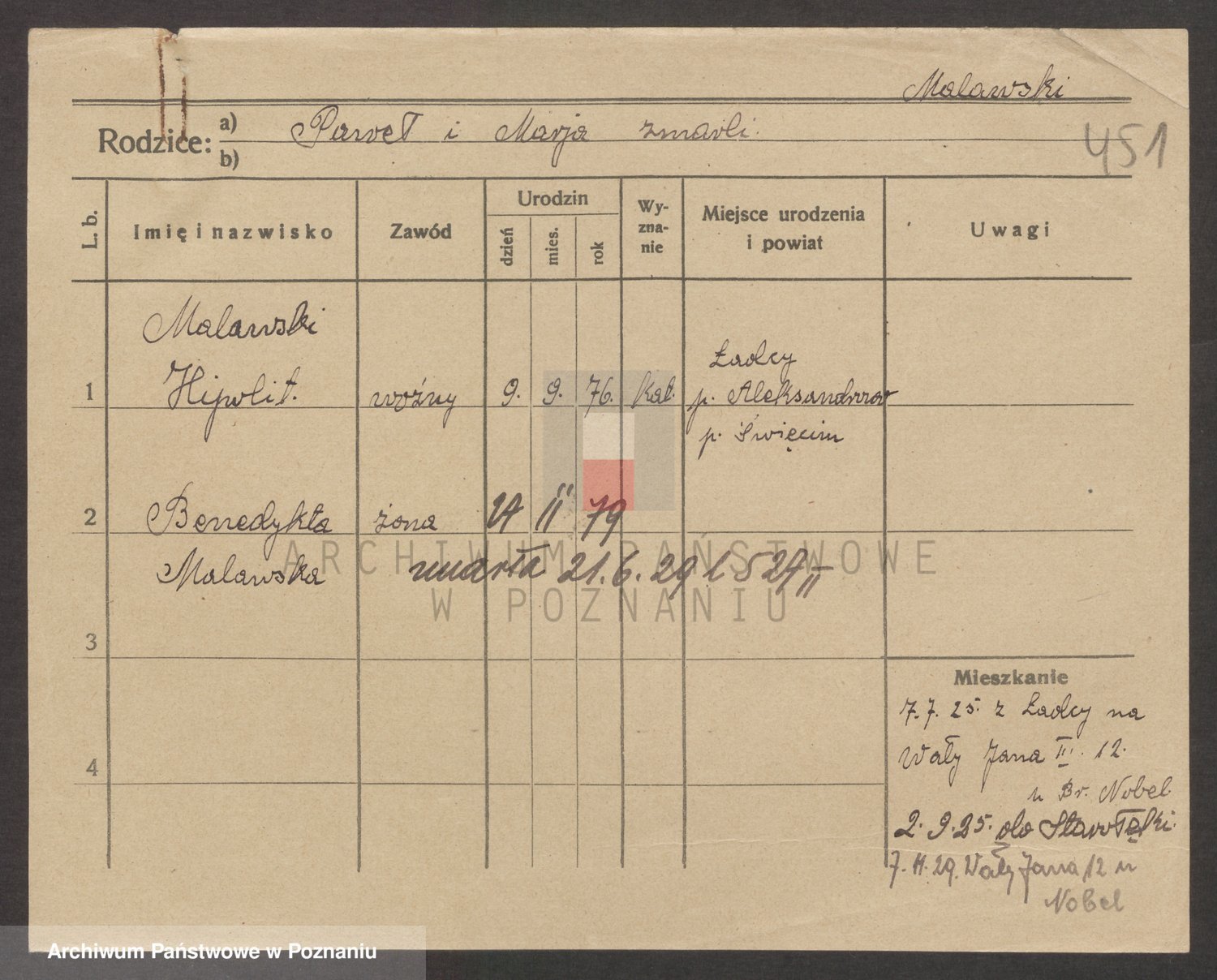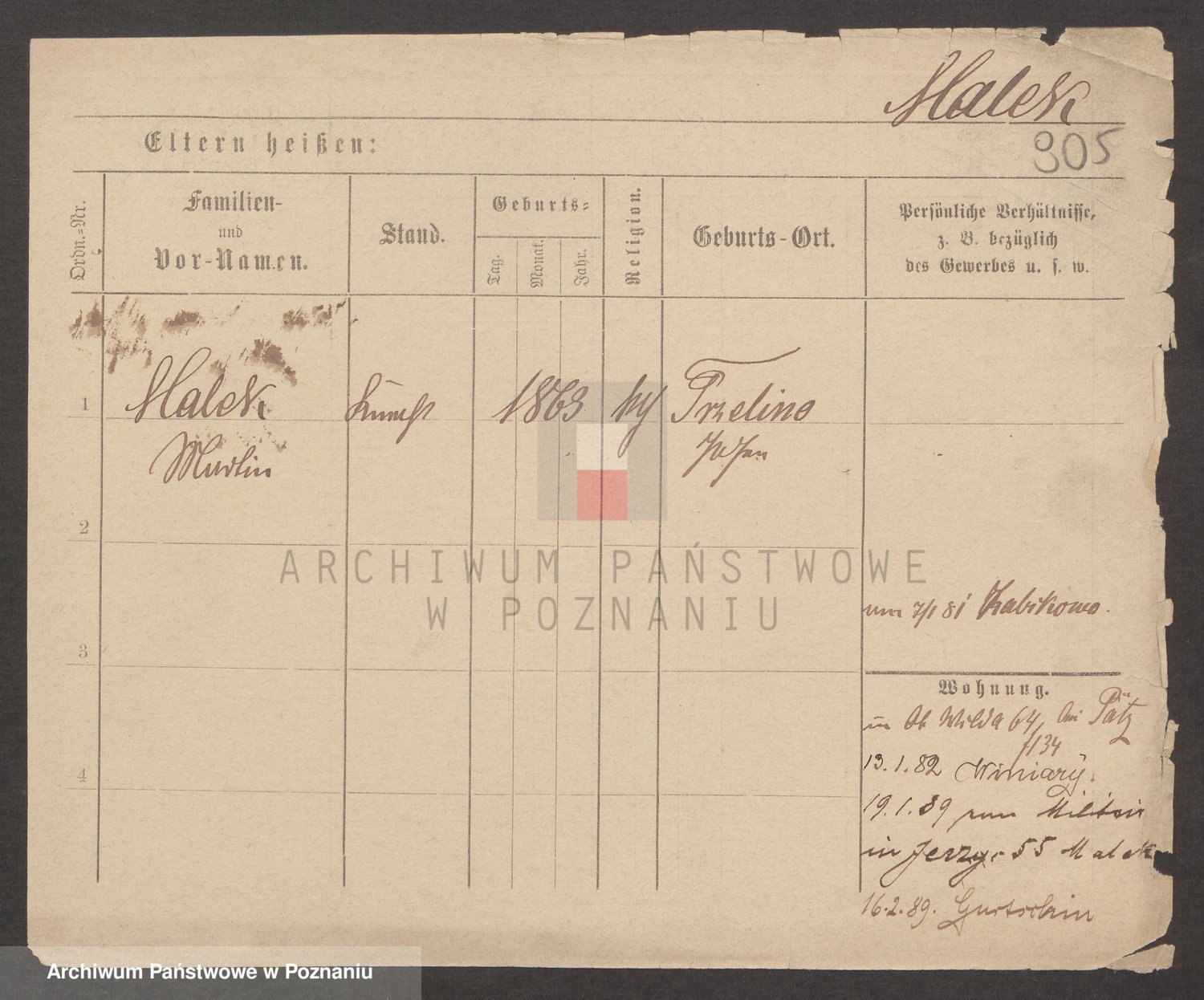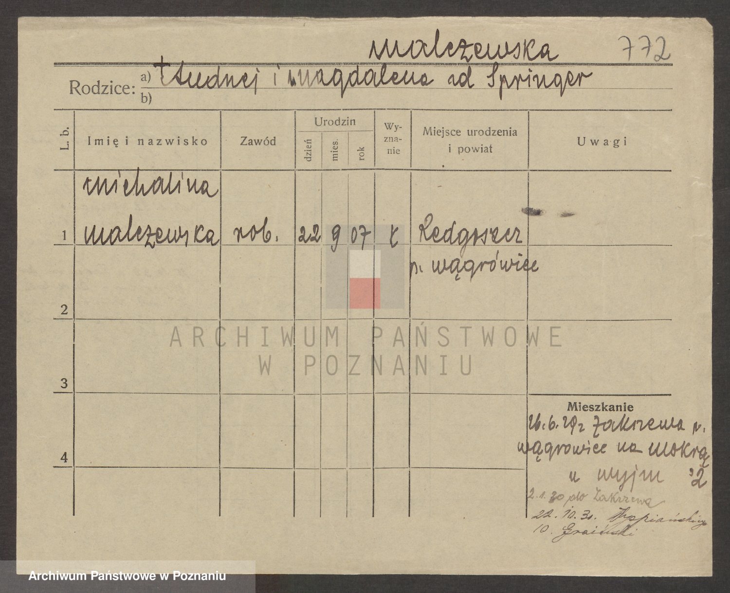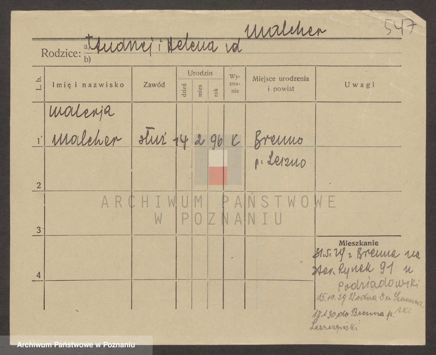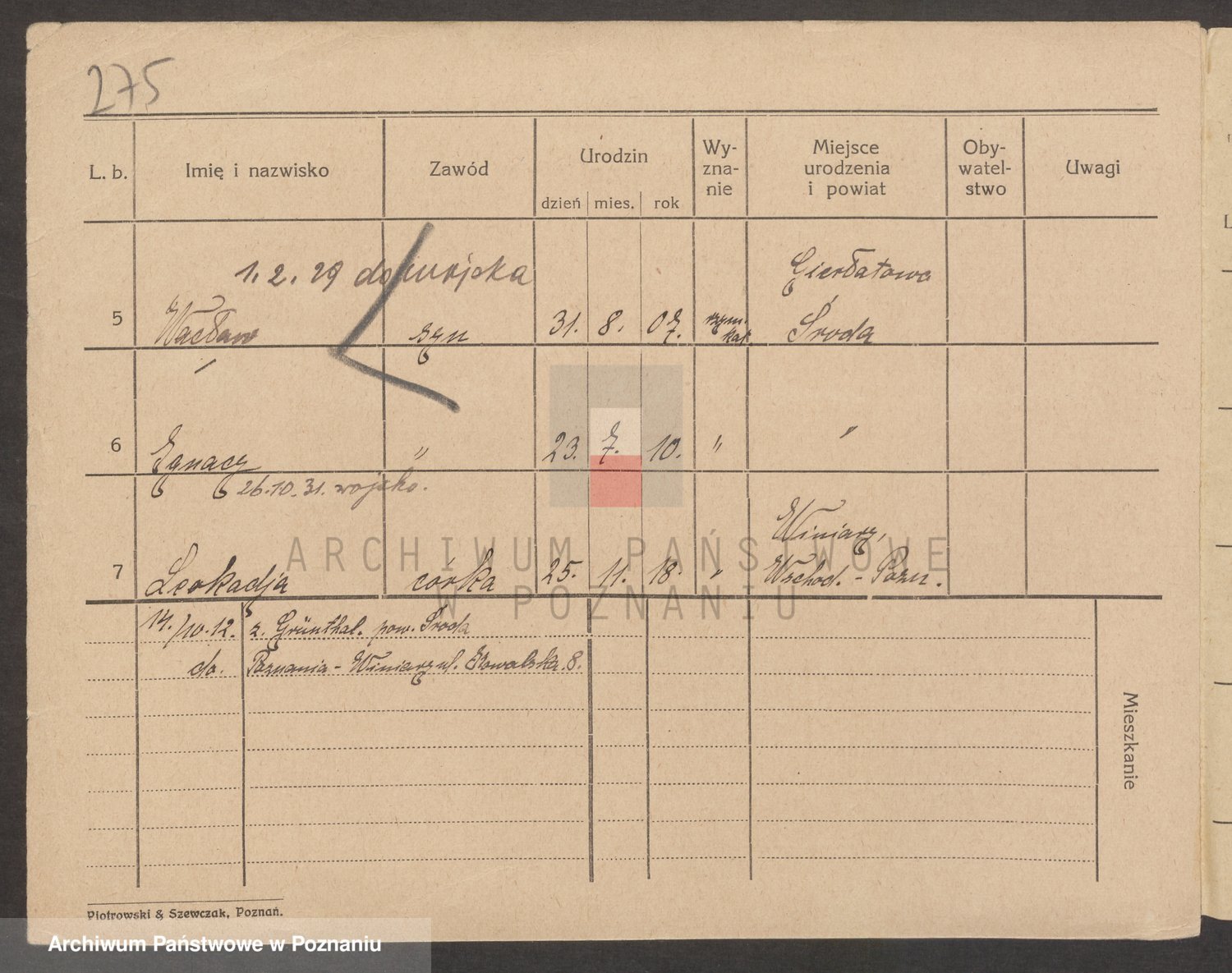 Podgląd karty osobowej dostępny jest po kliknięciu na nazwisko lub ikonkę karty. Można dokonywać powiększenia (ikony na górze) lub przechodzić między kolejnymi skanami (strzałki po bokach).