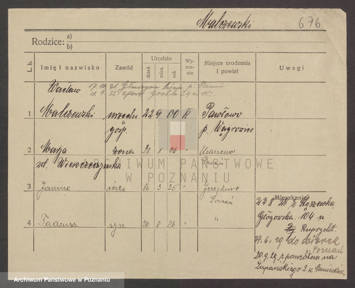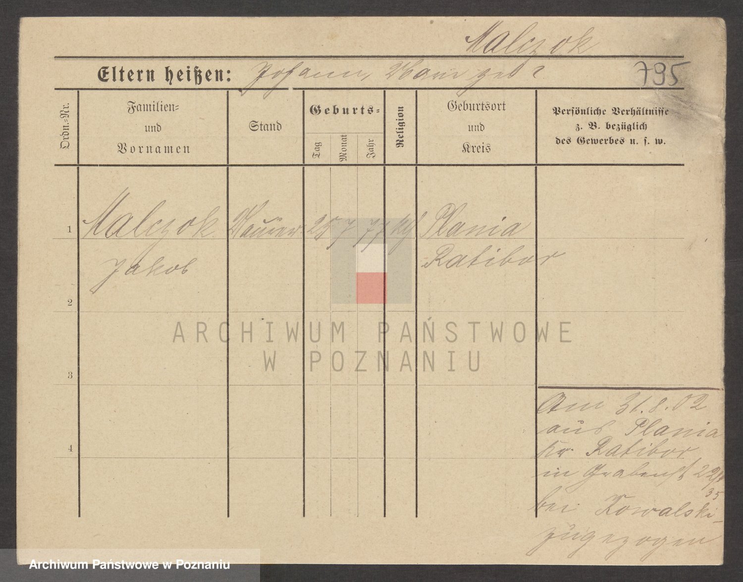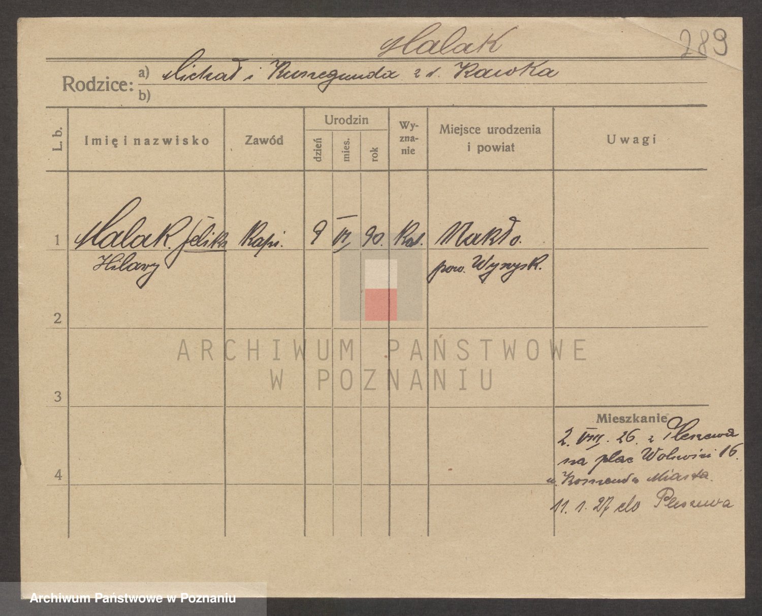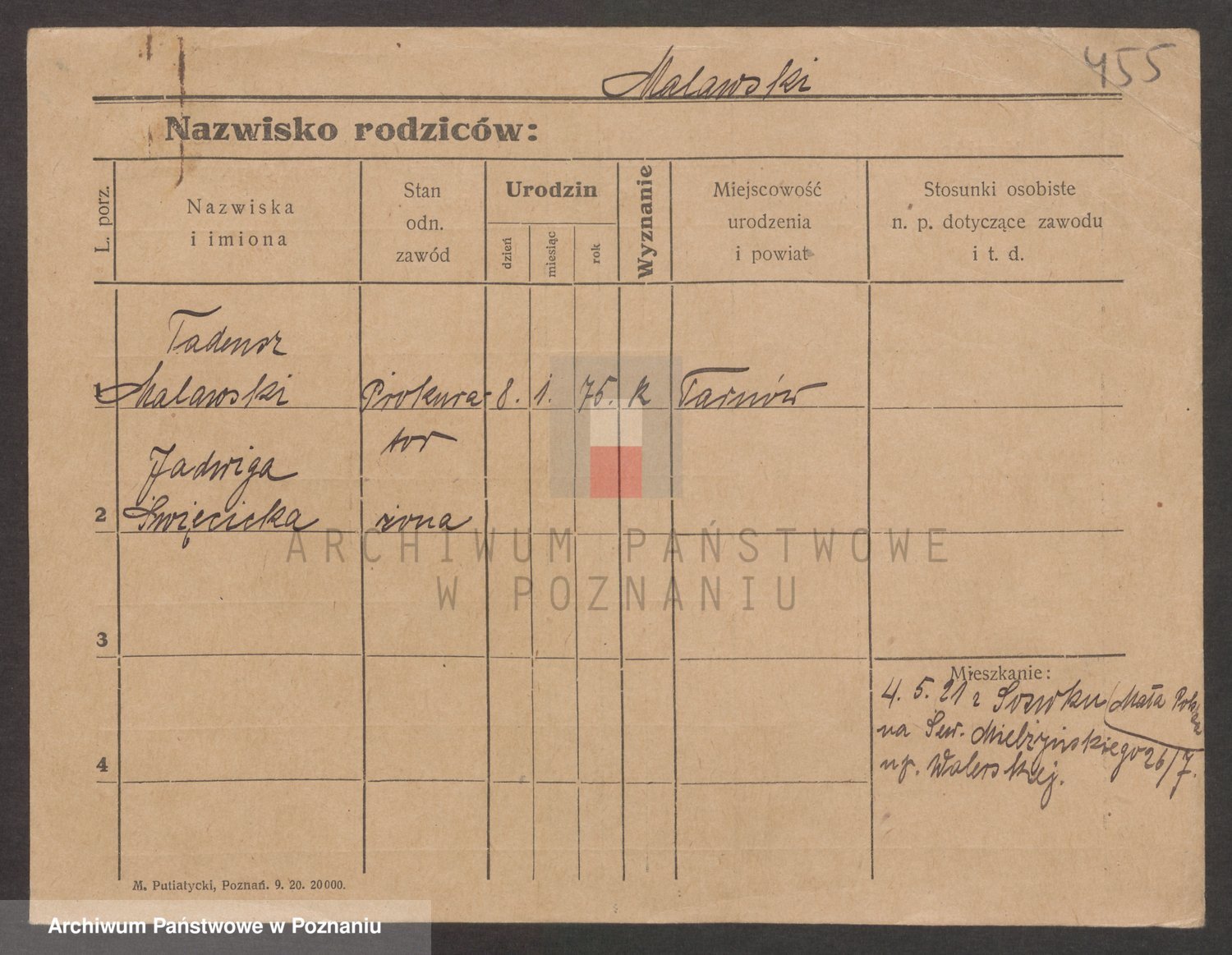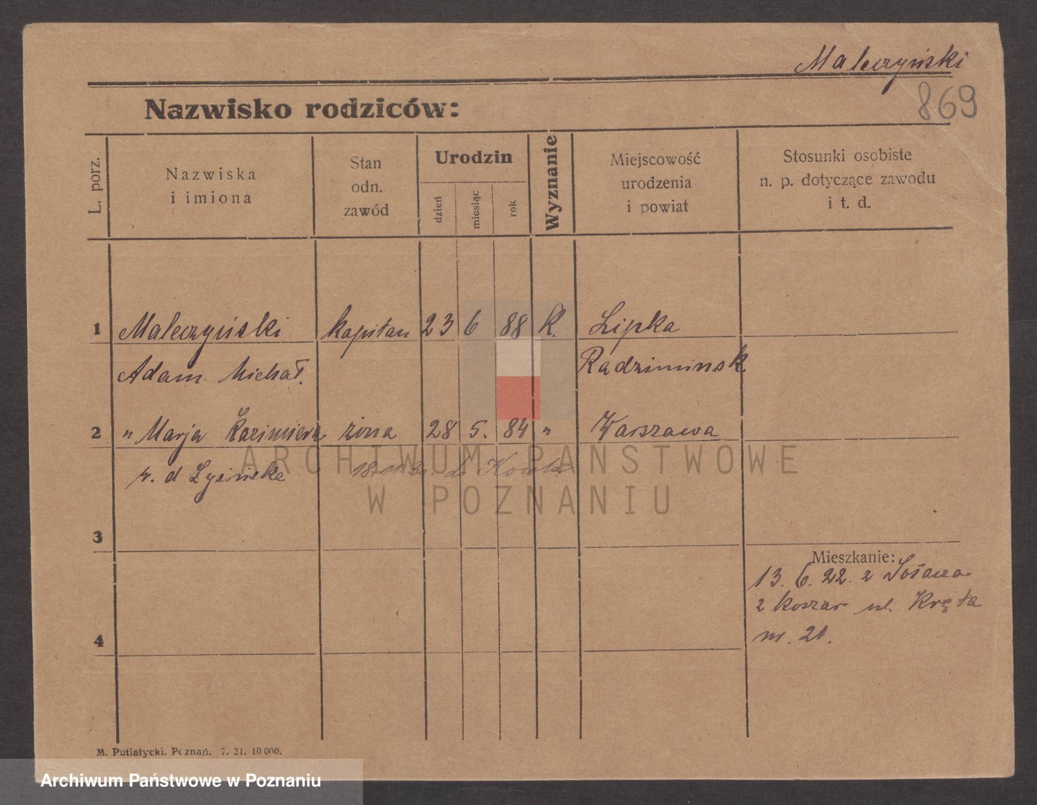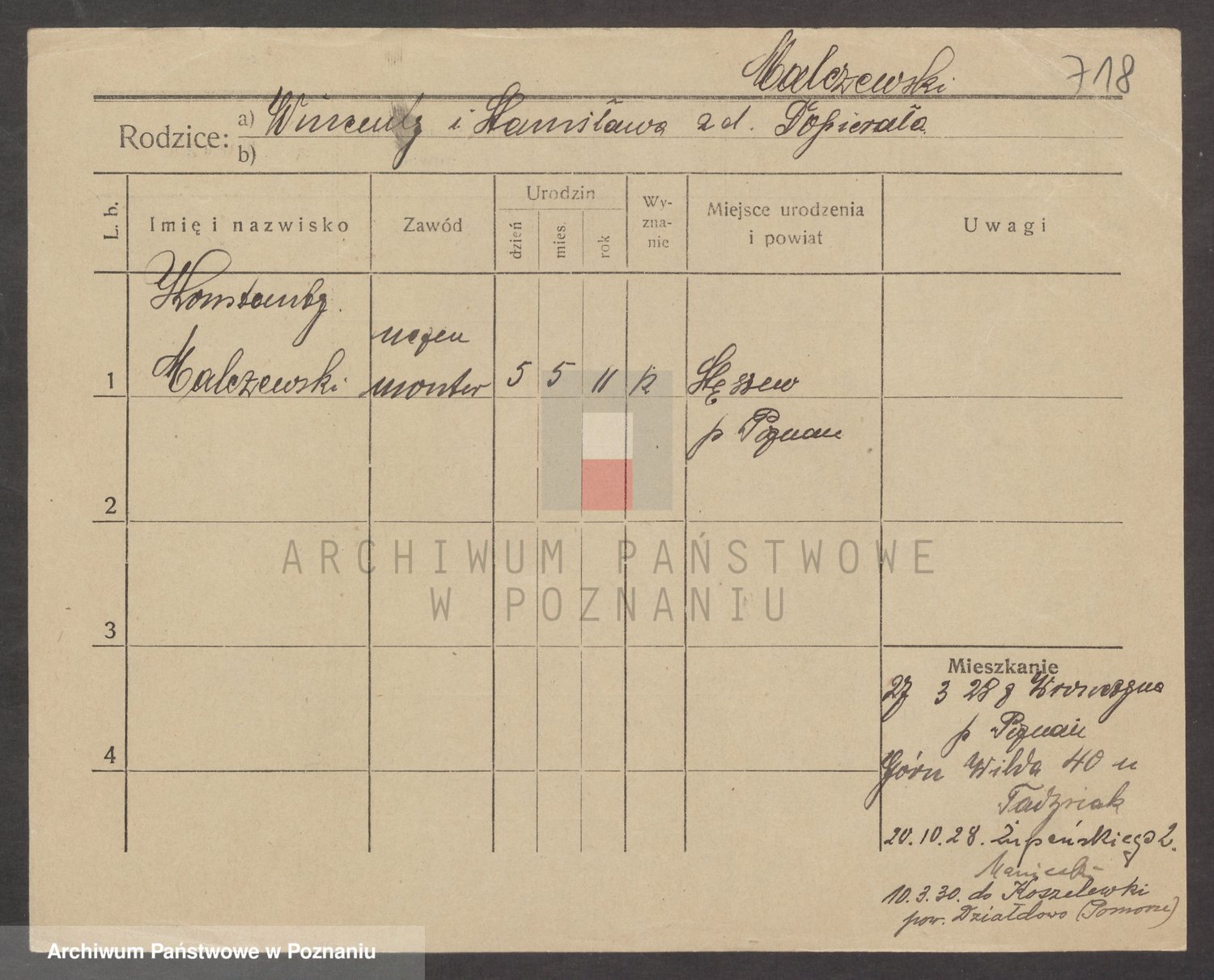 Podgląd karty osobowej dostępny jest po kliknięciu na nazwisko lub ikonkę karty. Można dokonywać powiększenia (ikony na górze) lub przechodzić między kolejnymi skanami (strzałki po bokach).