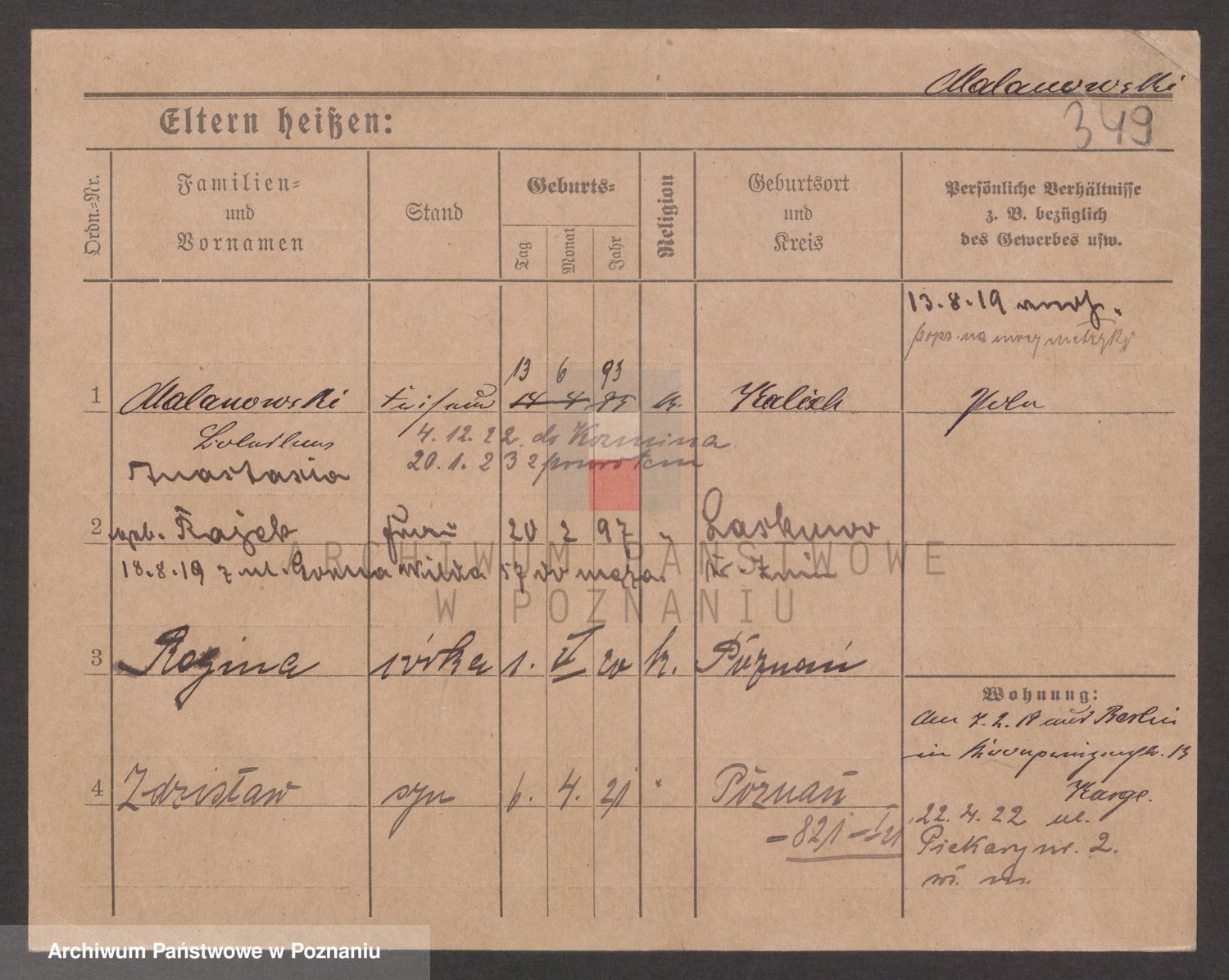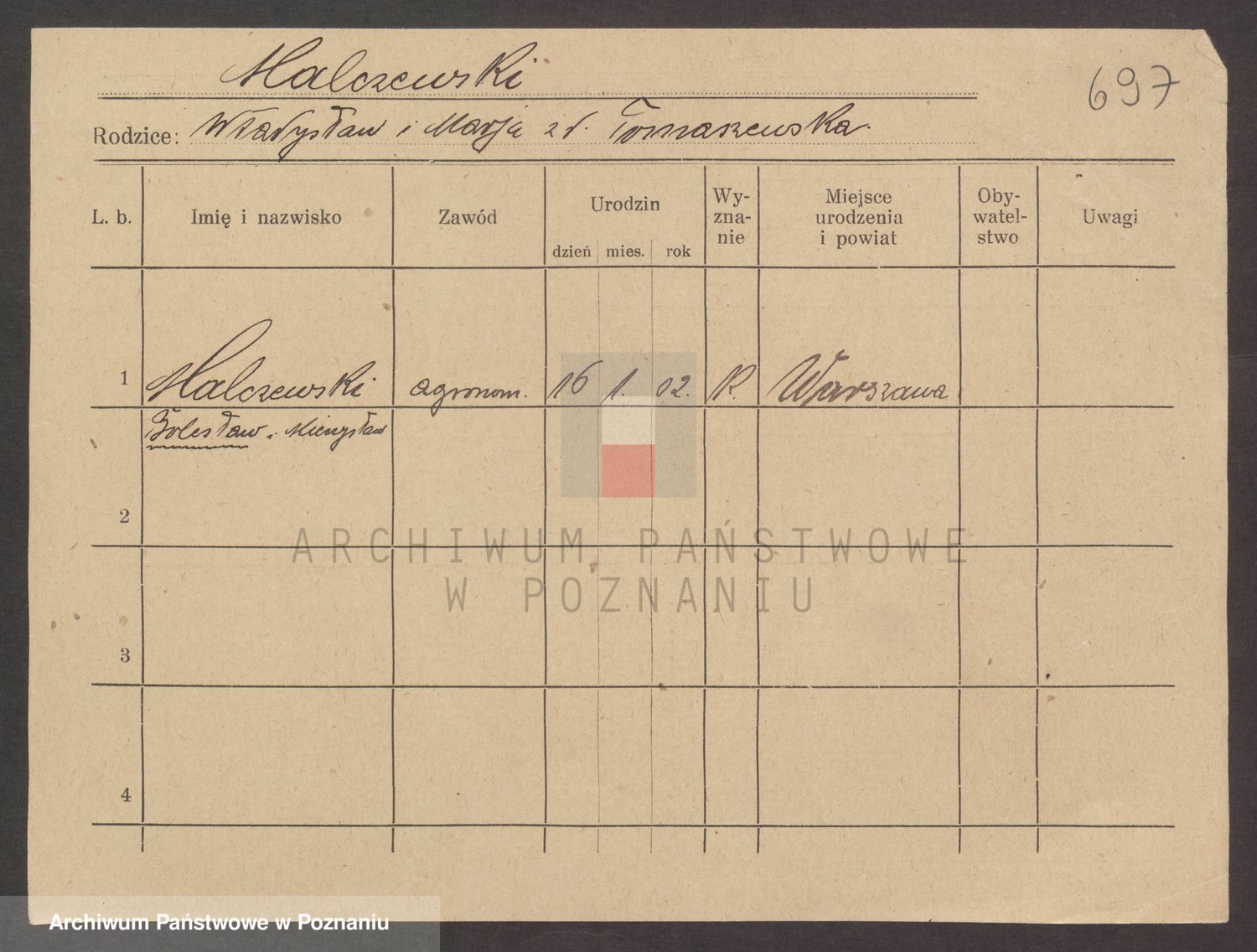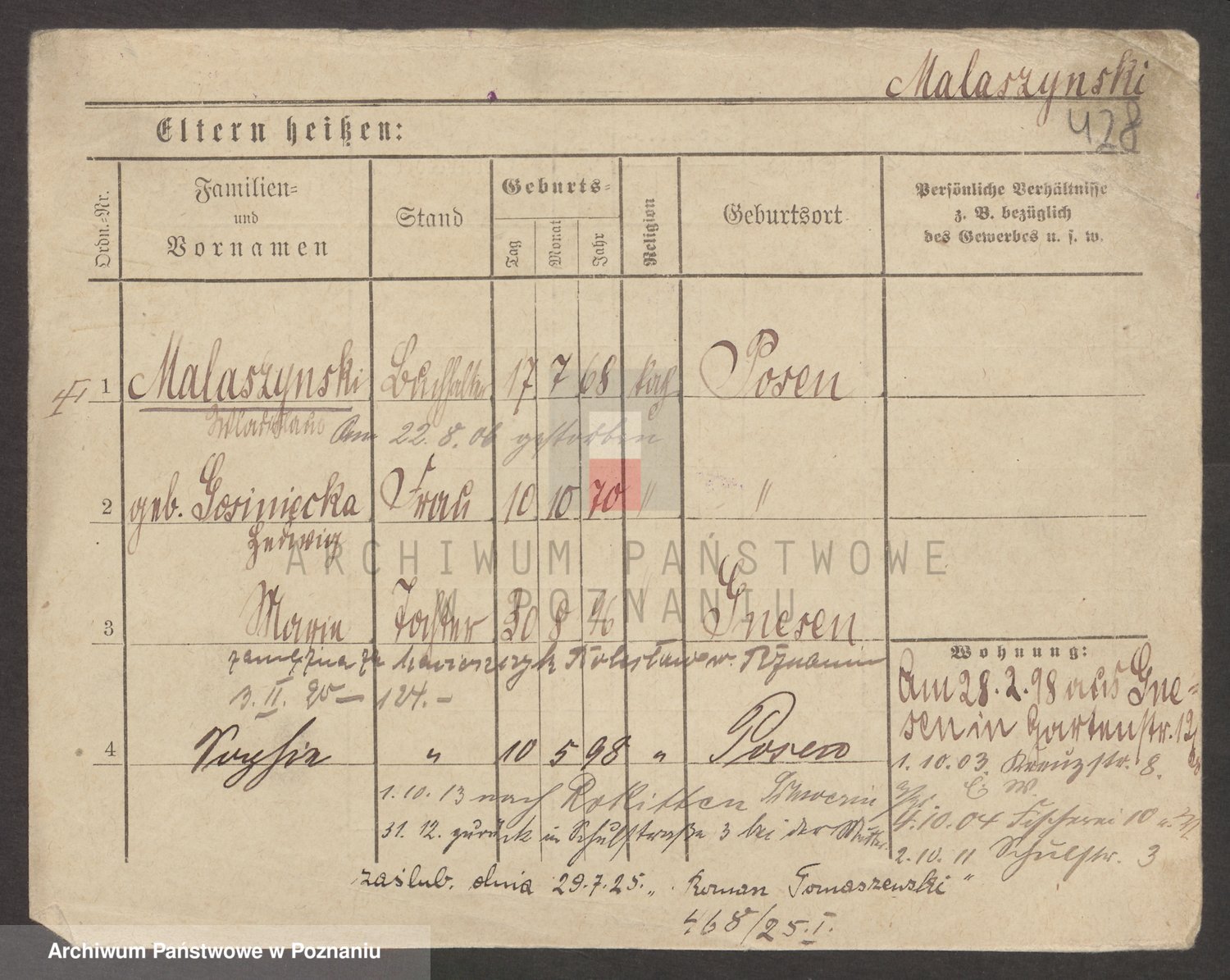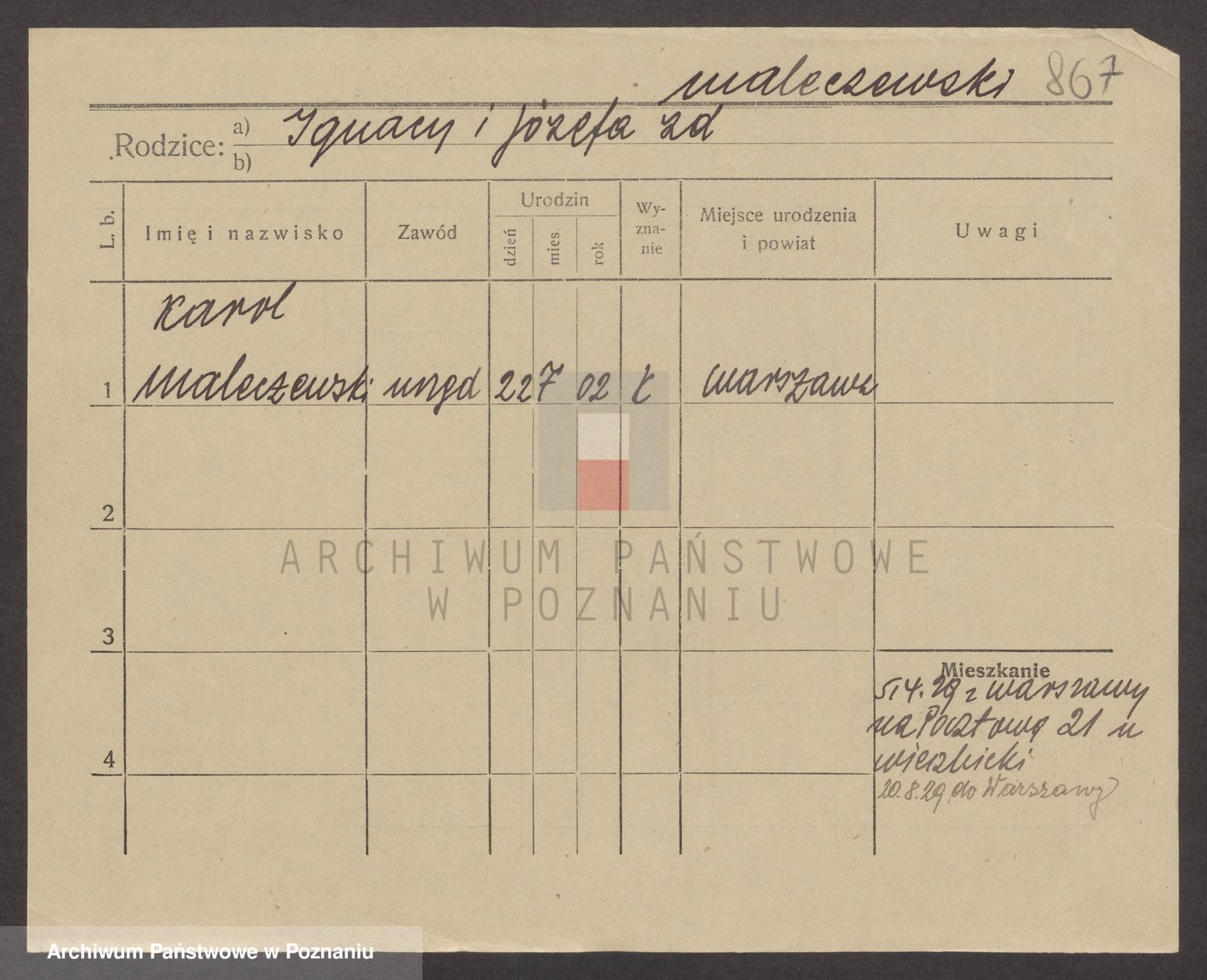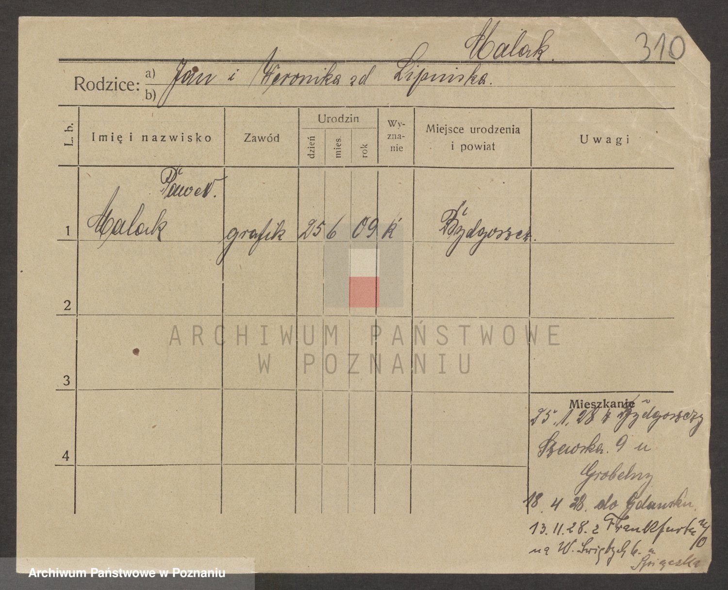 Podgląd karty osobowej dostępny jest po kliknięciu na nazwisko lub ikonkę karty. Można dokonywać powiększenia (ikony na górze) lub przechodzić między kolejnymi skanami (strzałki po bokach).