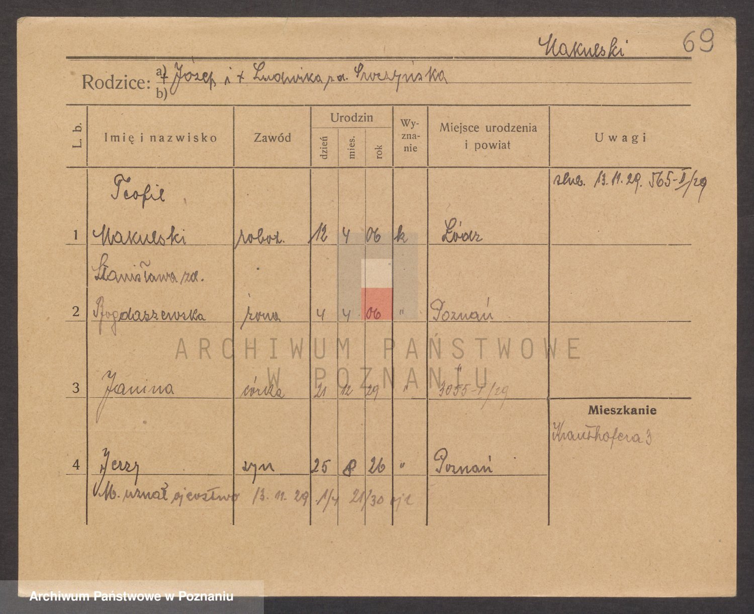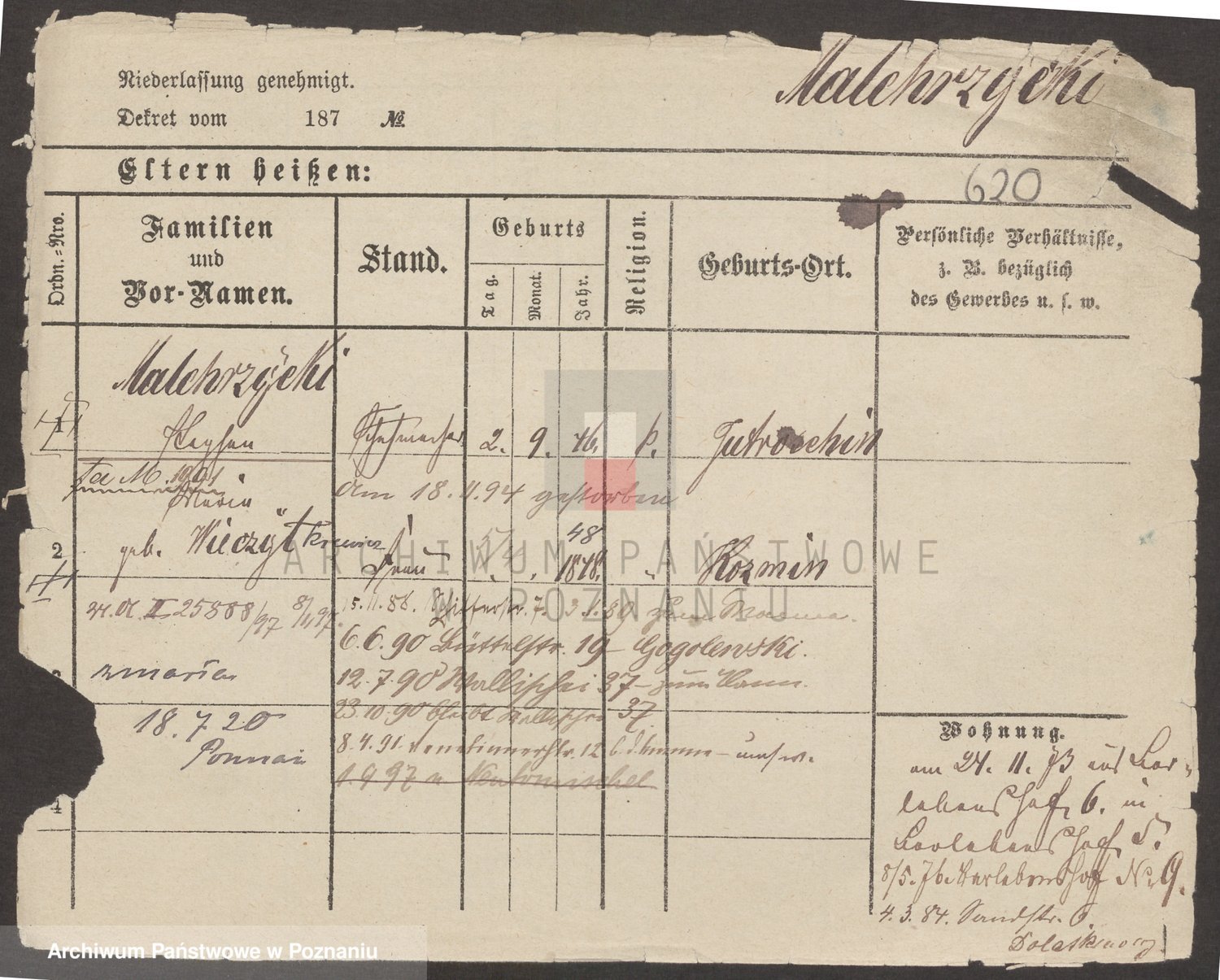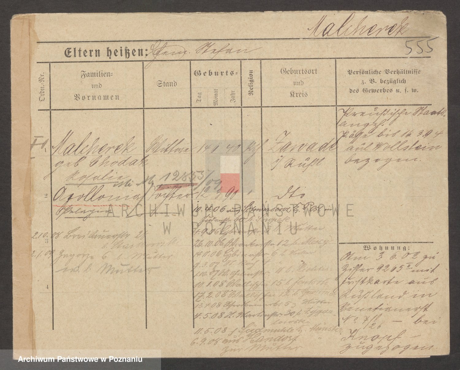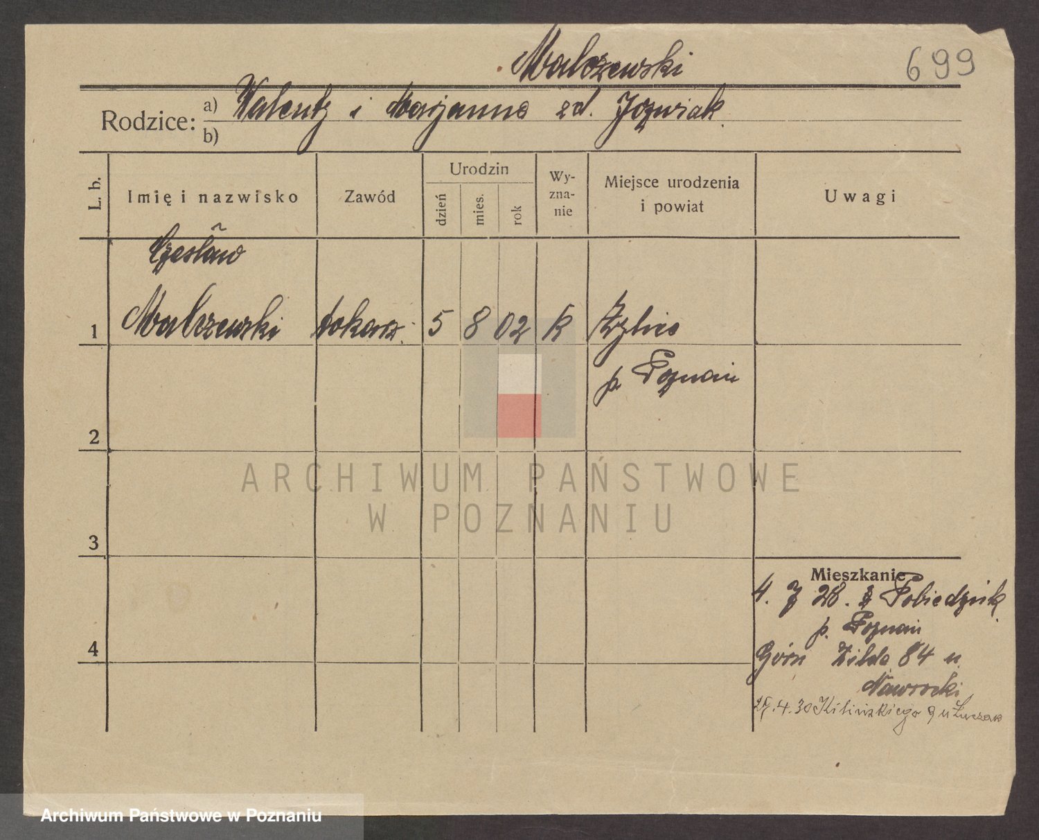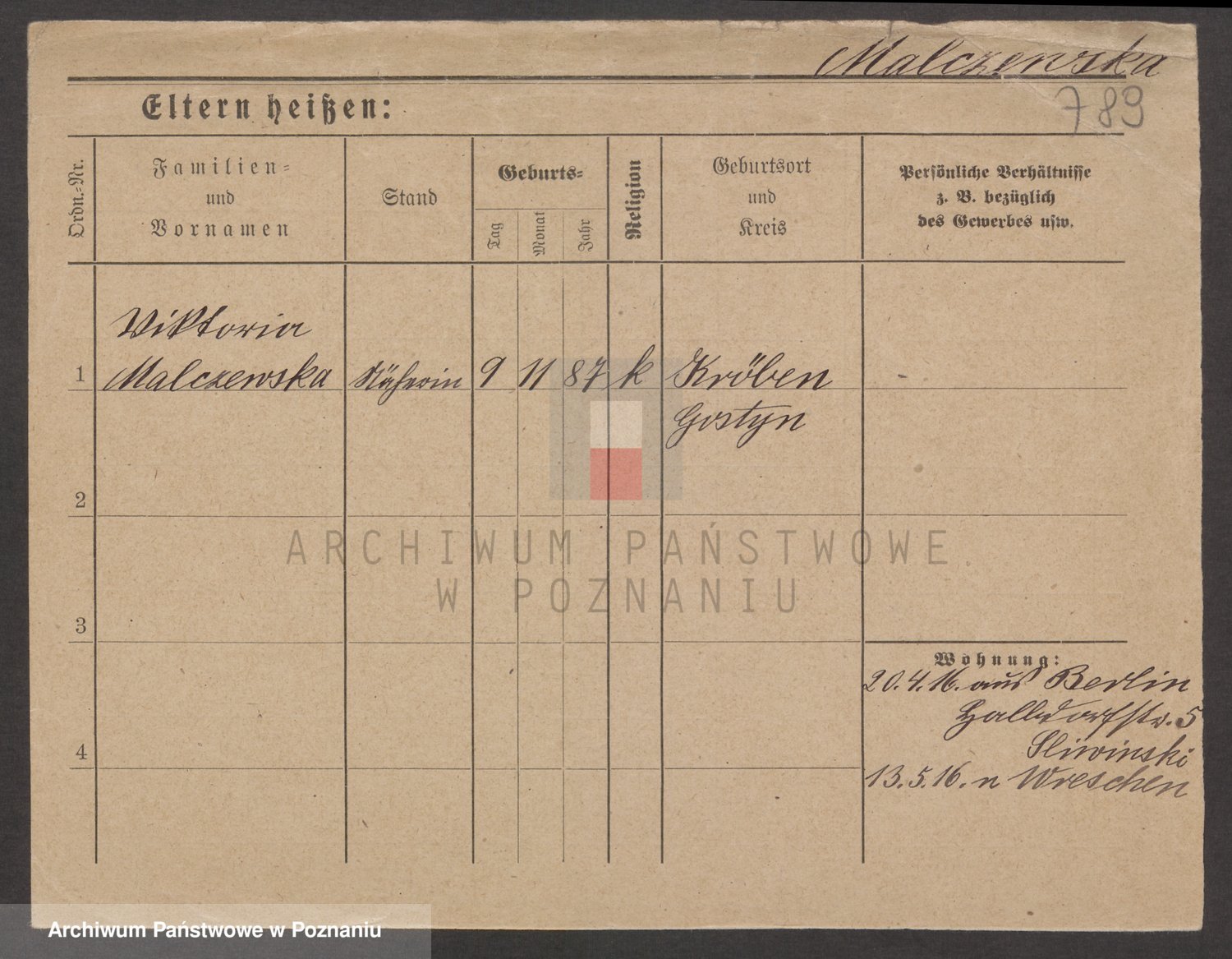 Podgląd karty osobowej dostępny jest po kliknięciu na nazwisko lub ikonkę karty. Można dokonywać powiększenia (ikony na górze) lub przechodzić między kolejnymi skanami (strzałki po bokach).
