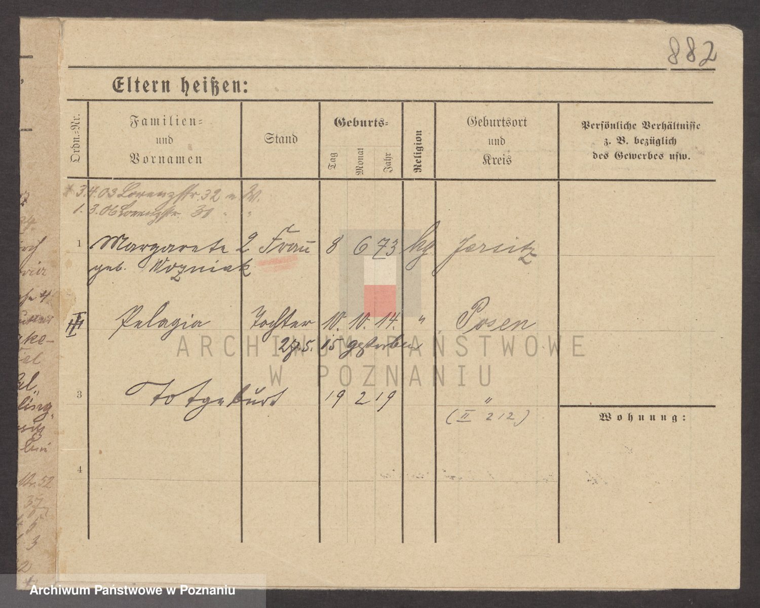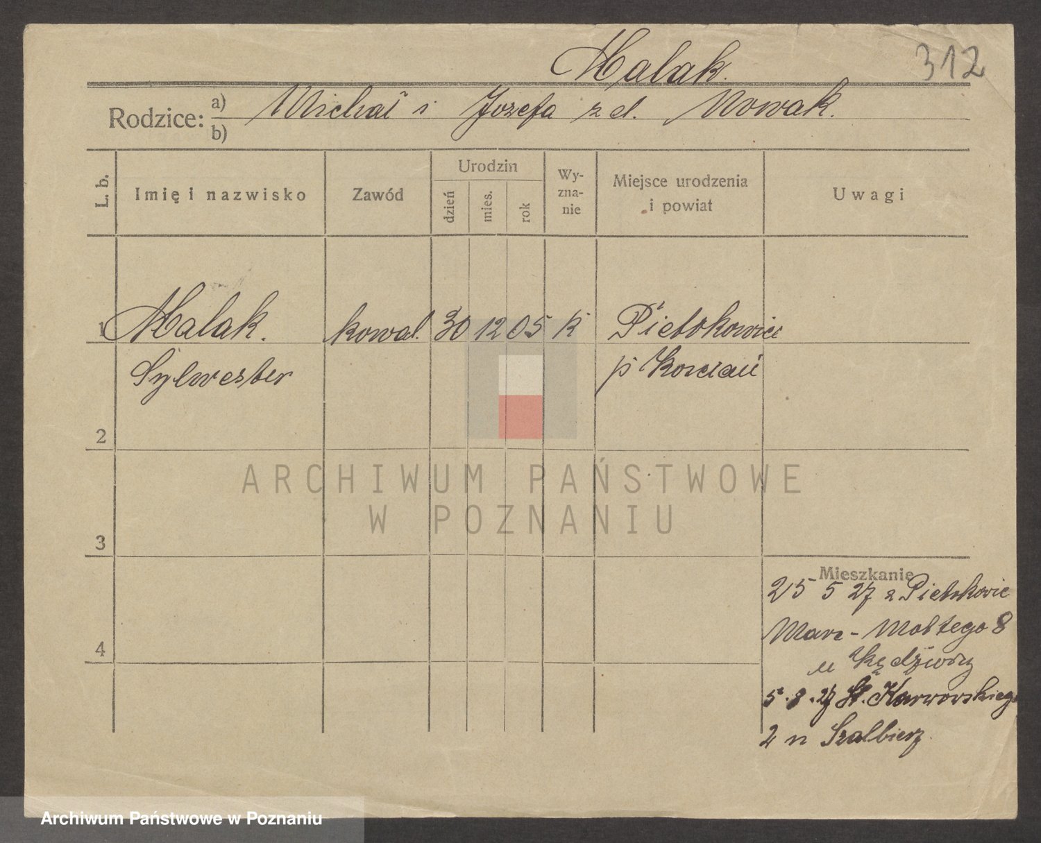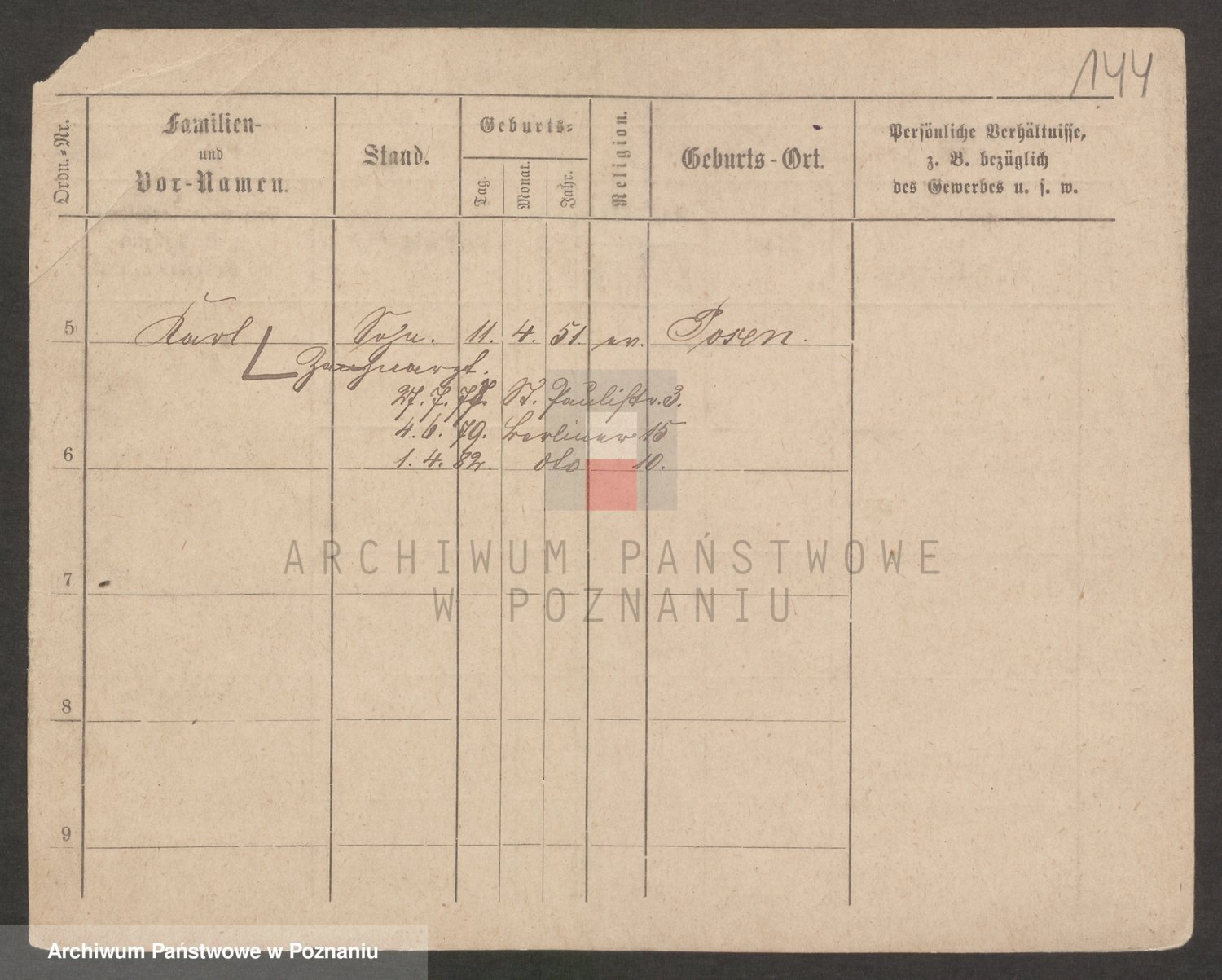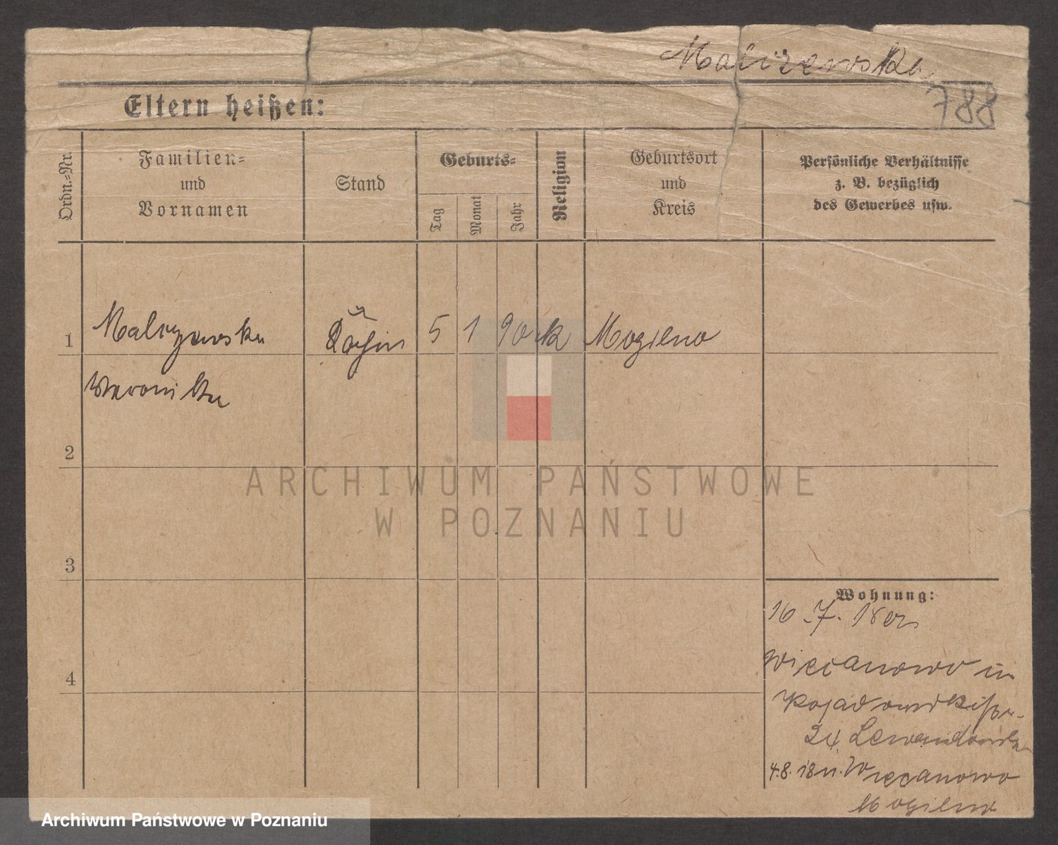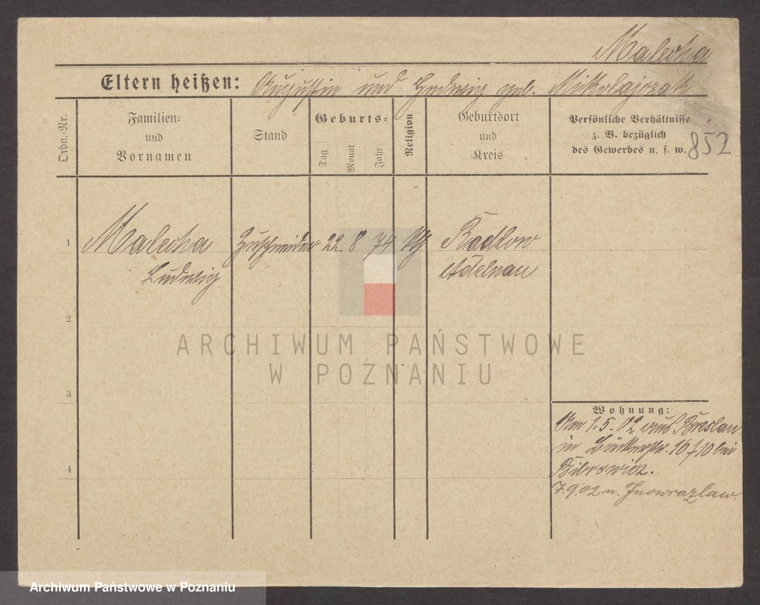 Podgląd karty osobowej dostępny jest po kliknięciu na nazwisko lub ikonkę karty. Można dokonywać powiększenia (ikony na górze) lub przechodzić między kolejnymi skanami (strzałki po bokach).