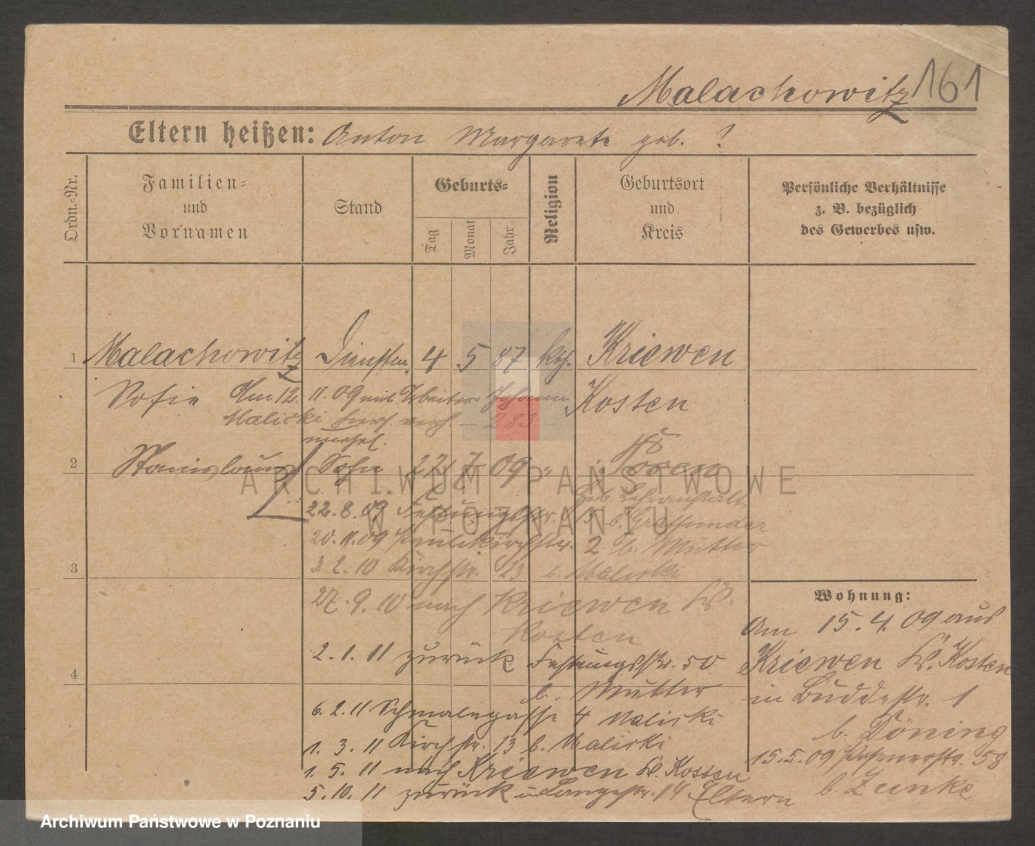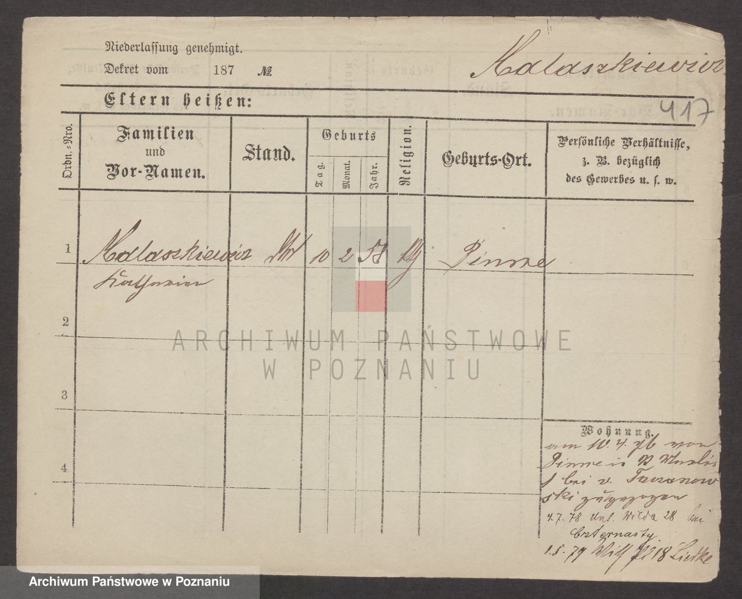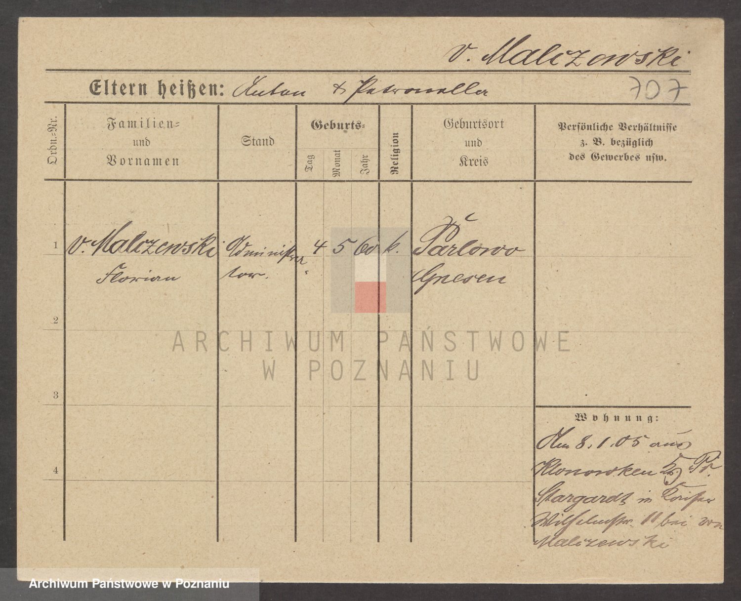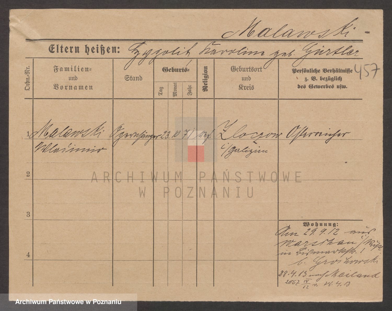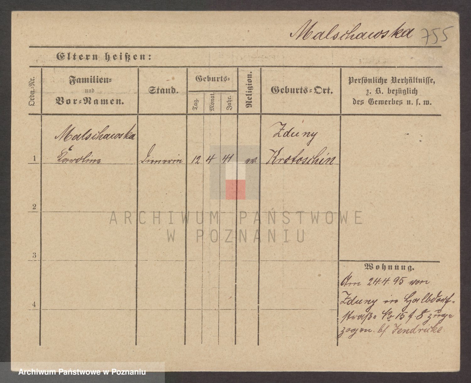 Podgląd karty osobowej dostępny jest po kliknięciu na nazwisko lub ikonkę karty. Można dokonywać powiększenia (ikony na górze) lub przechodzić między kolejnymi skanami (strzałki po bokach).