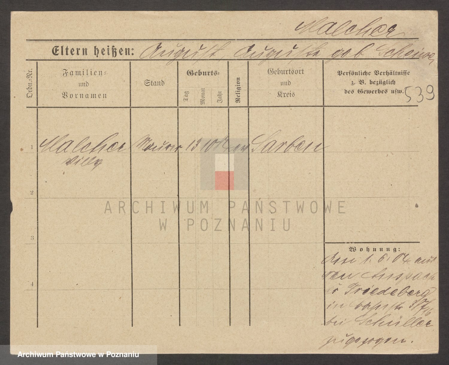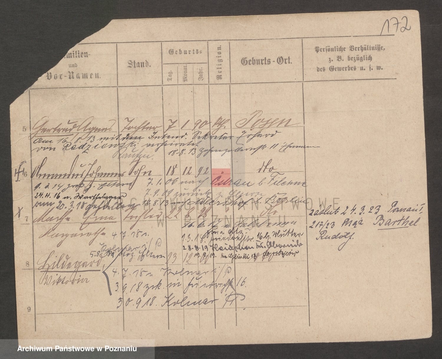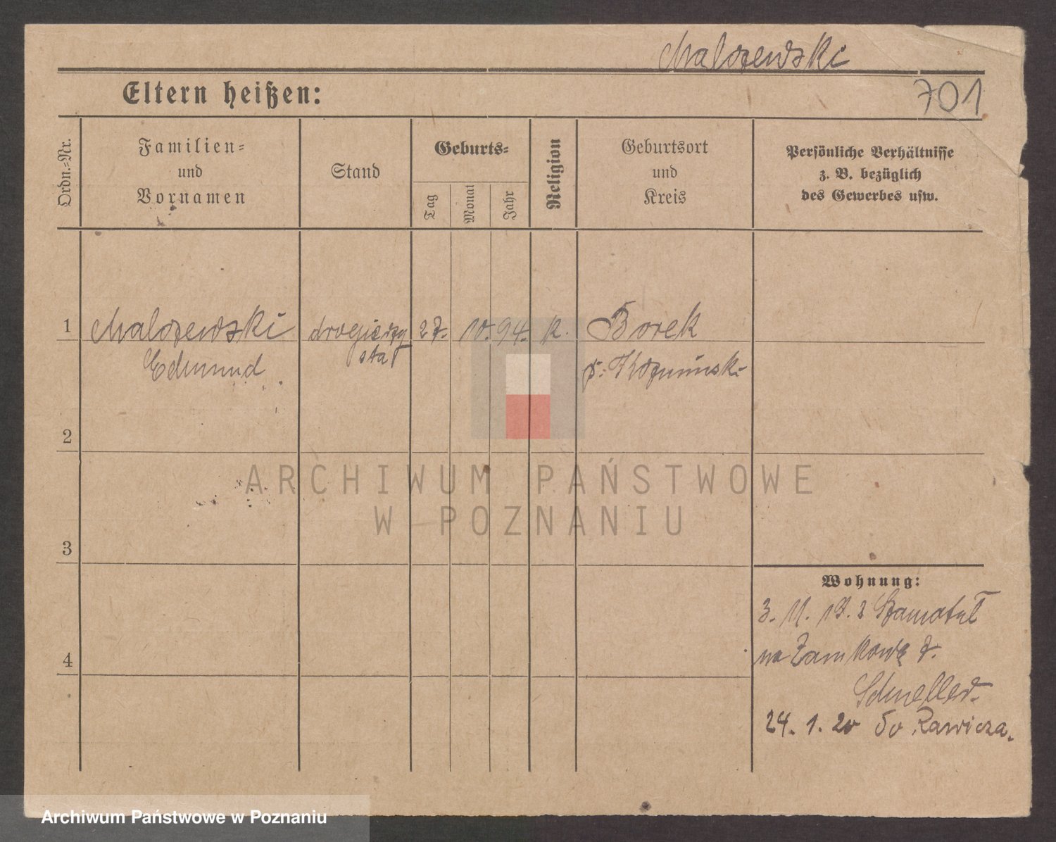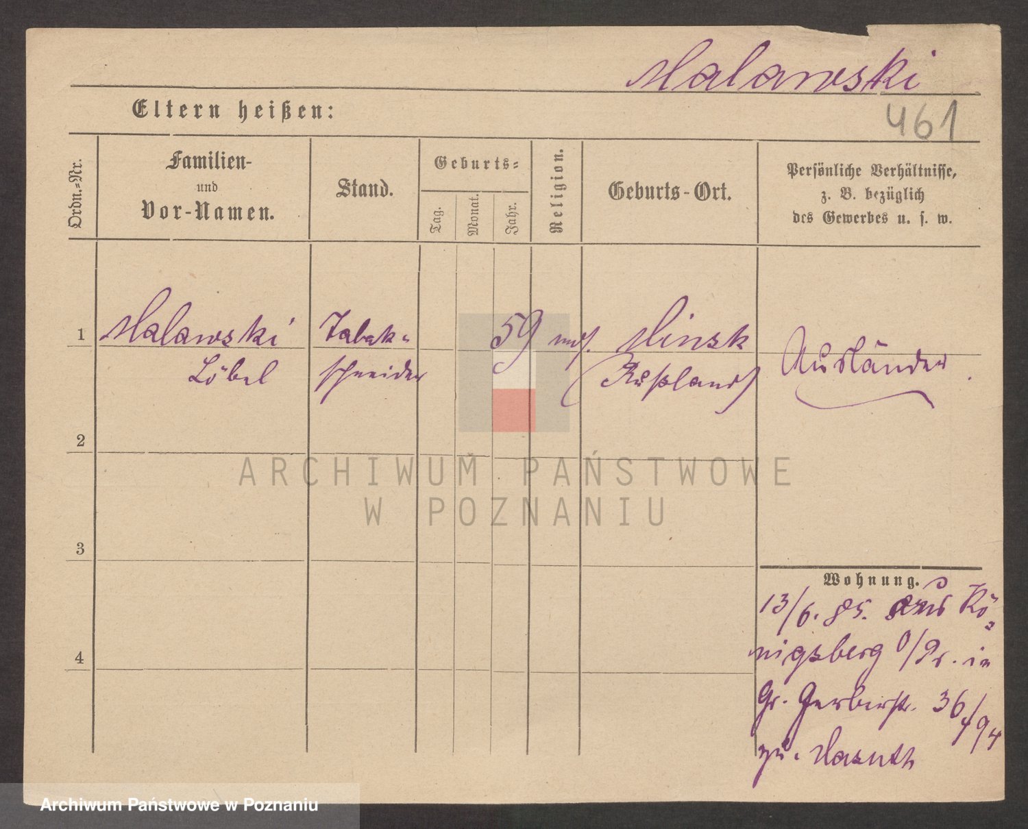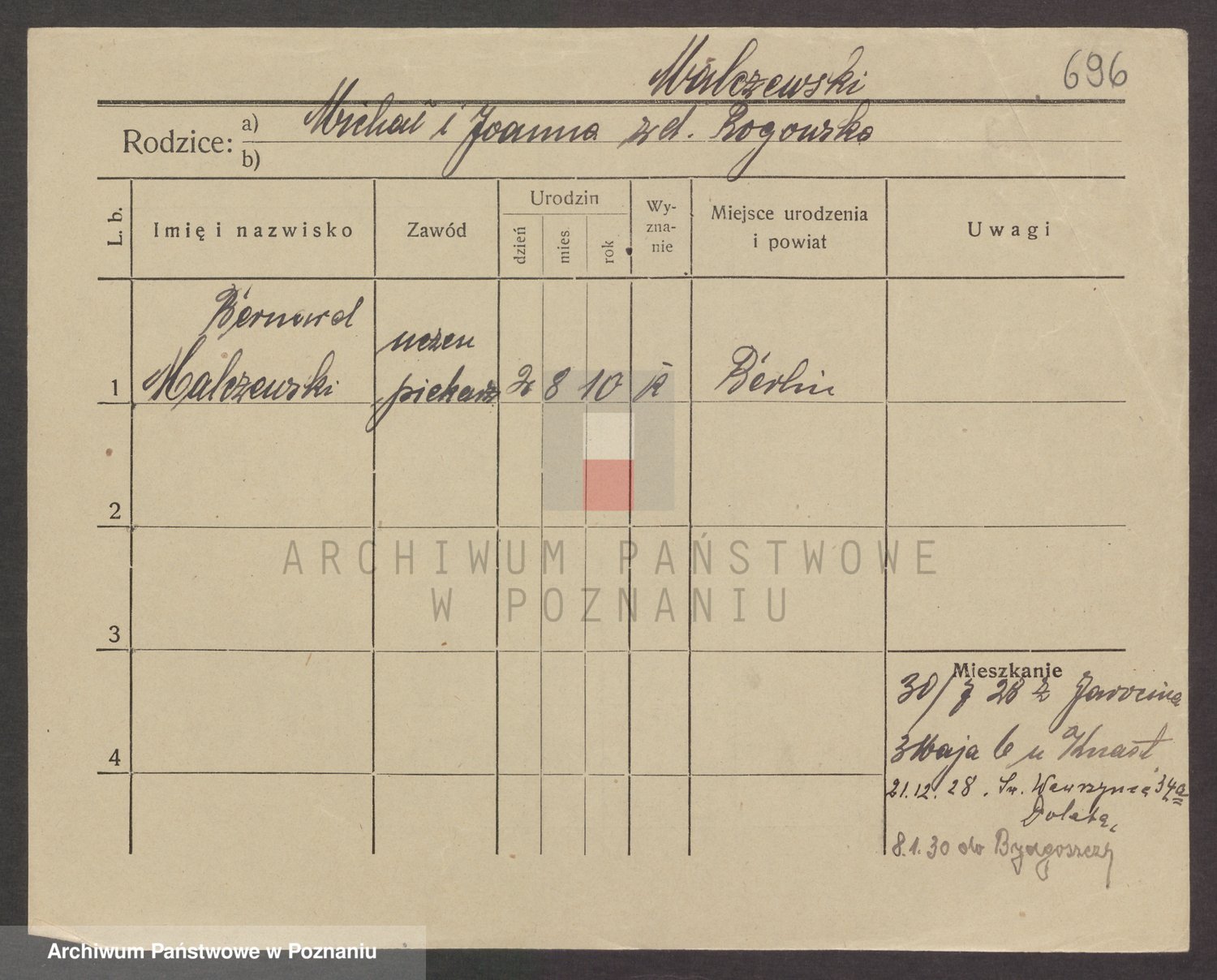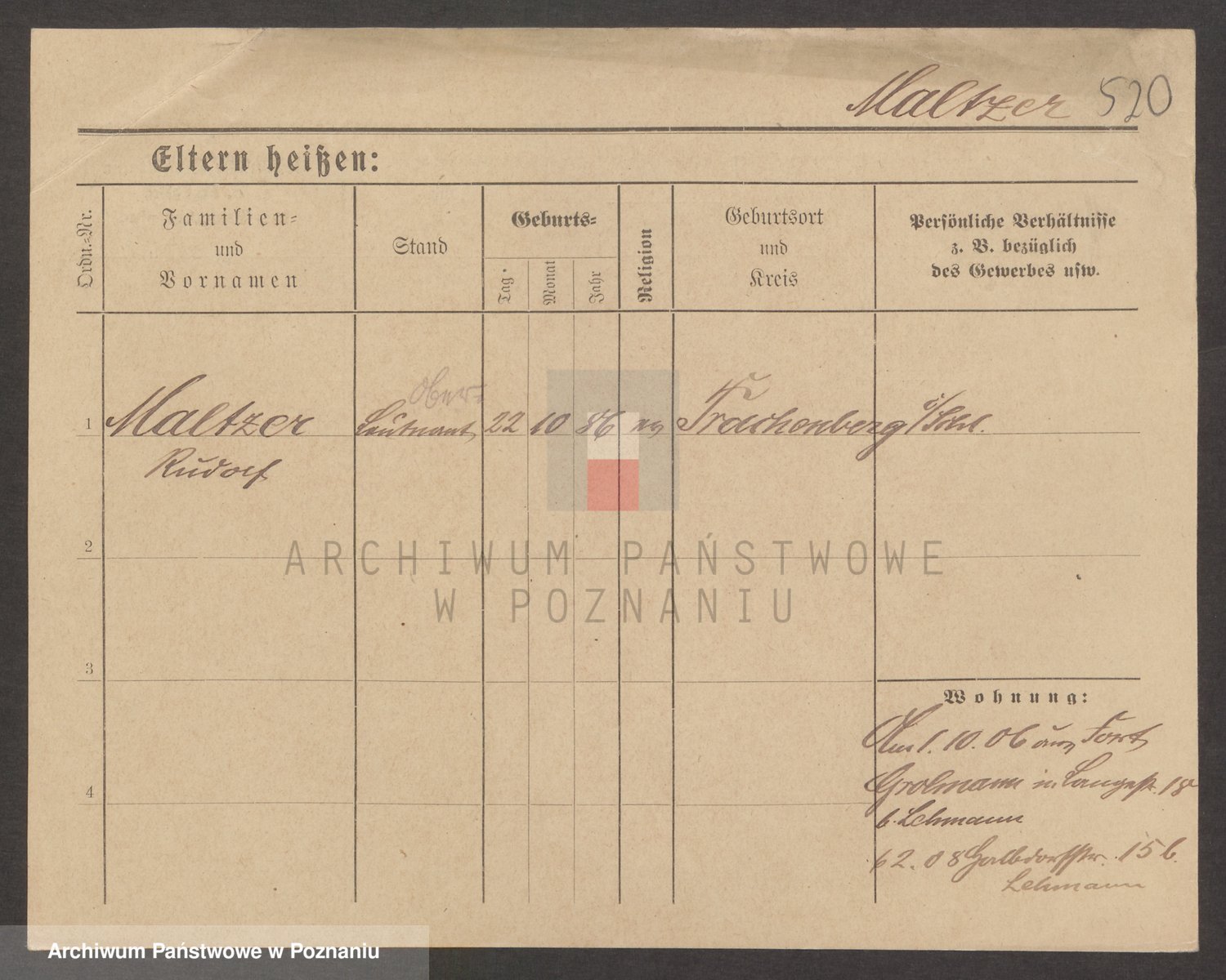 Podgląd karty osobowej dostępny jest po kliknięciu na nazwisko lub ikonkę karty. Można dokonywać powiększenia (ikony na górze) lub przechodzić między kolejnymi skanami (strzałki po bokach).