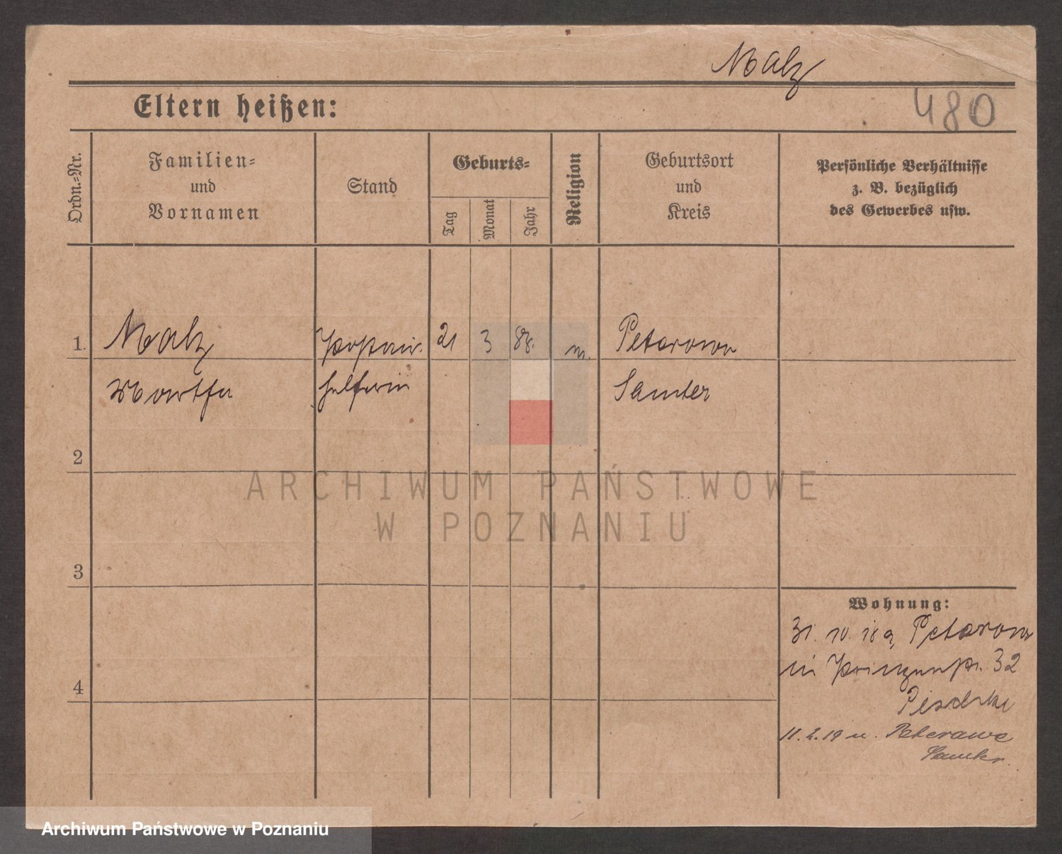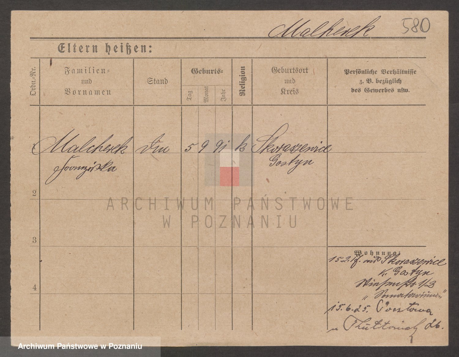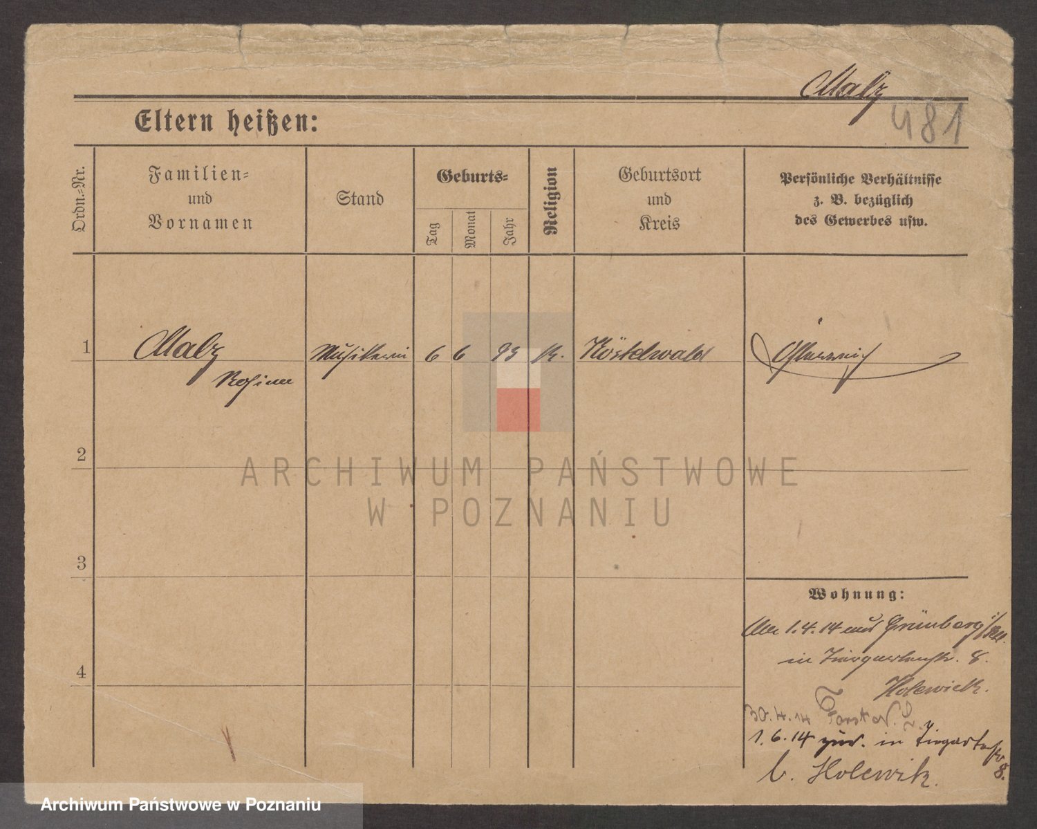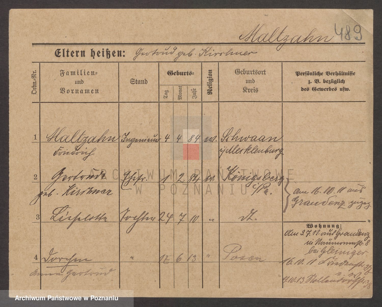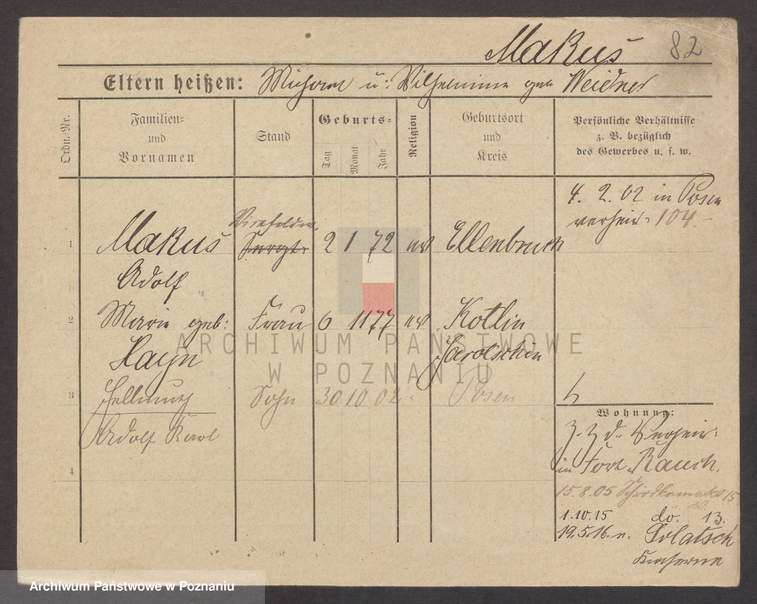 Podgląd karty osobowej dostępny jest po kliknięciu na nazwisko lub ikonkę karty. Można dokonywać powiększenia (ikony na górze) lub przechodzić między kolejnymi skanami (strzałki po bokach).