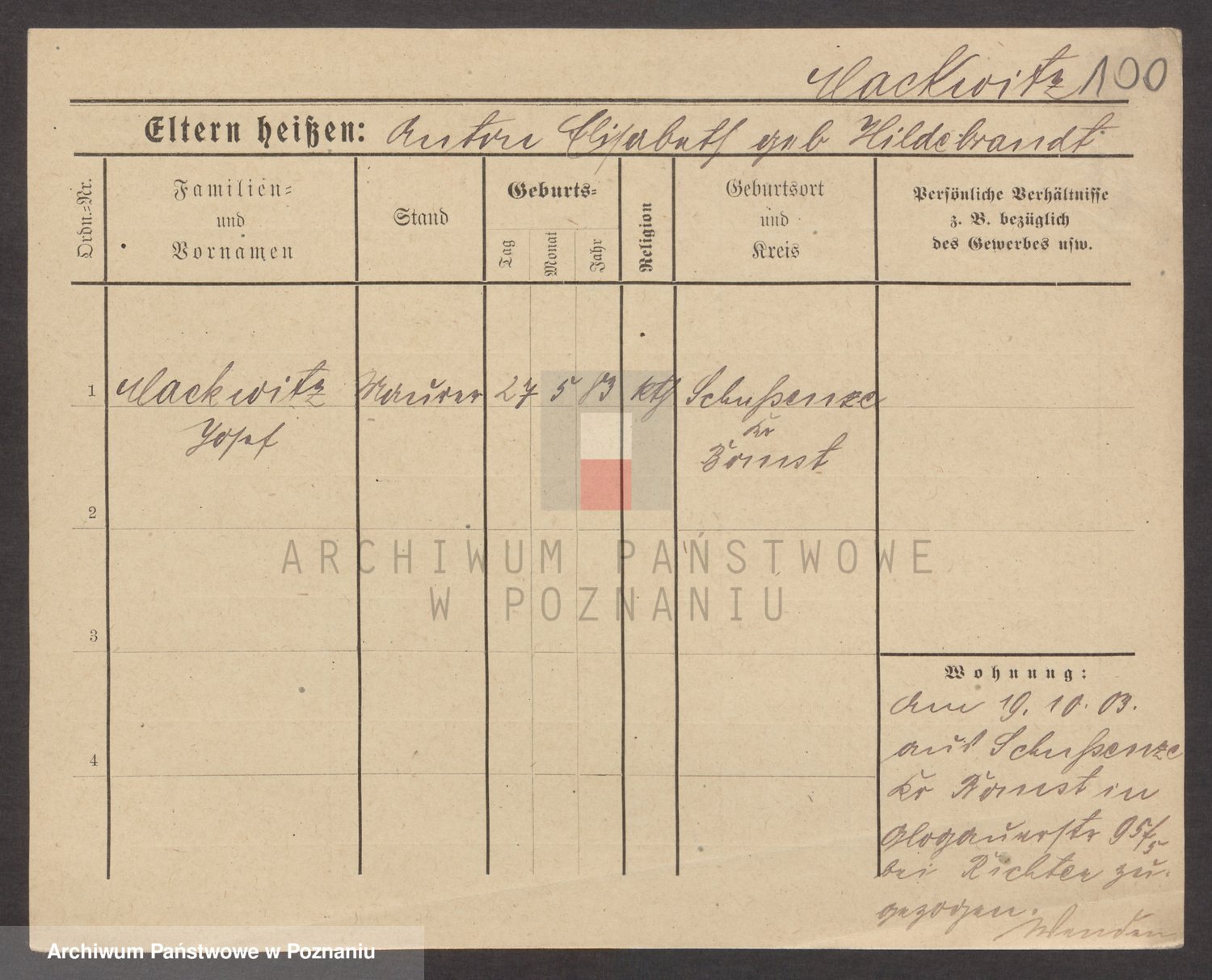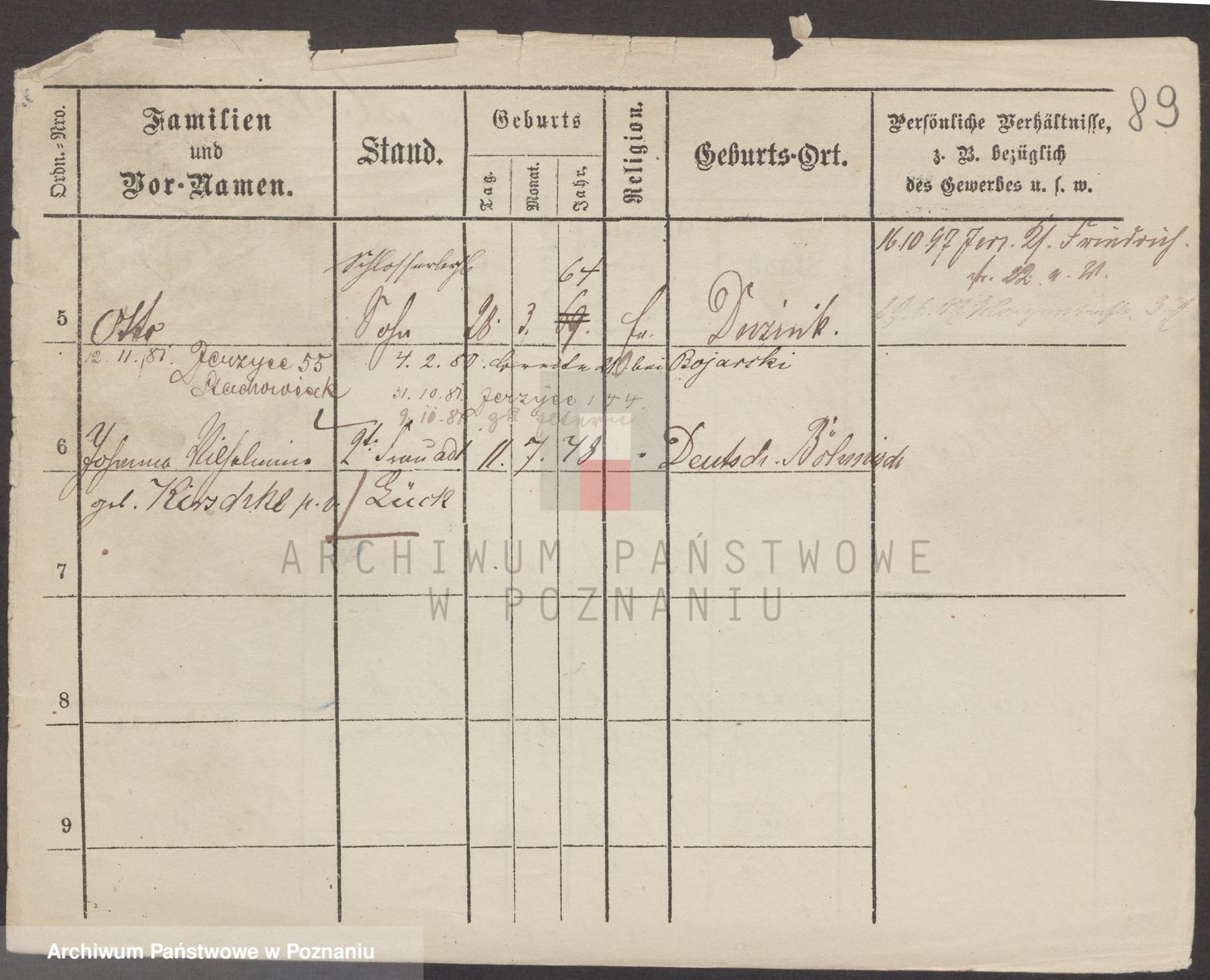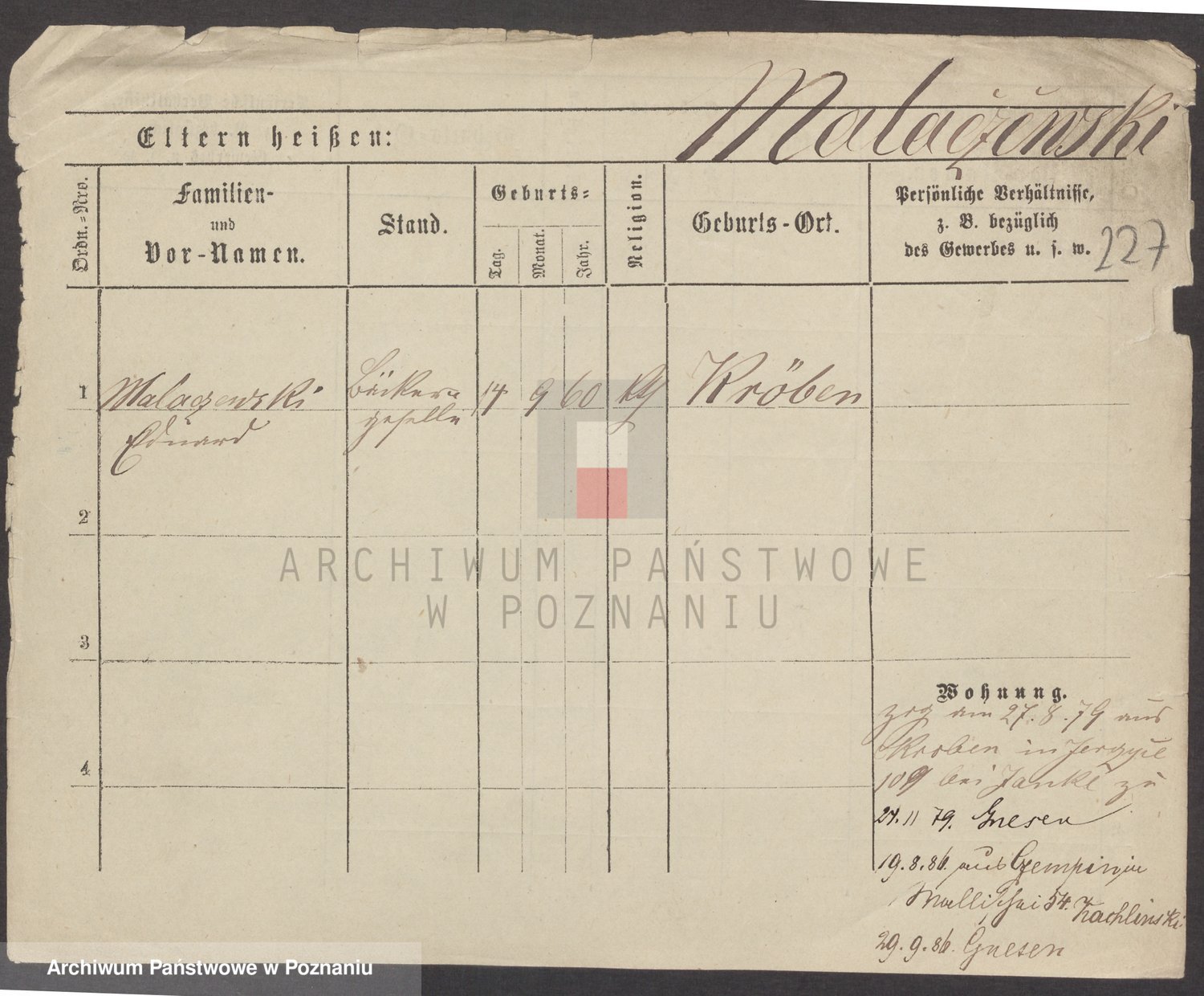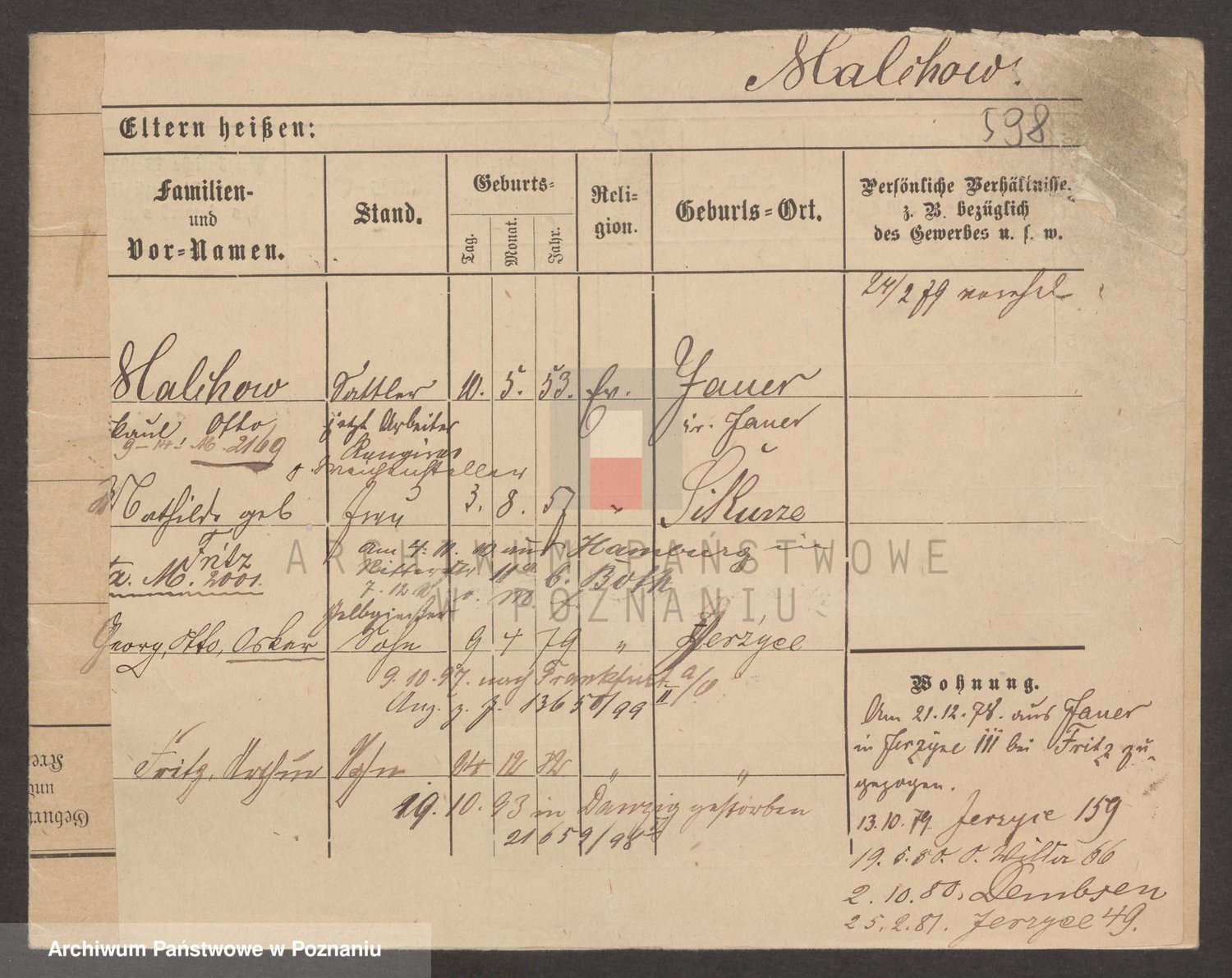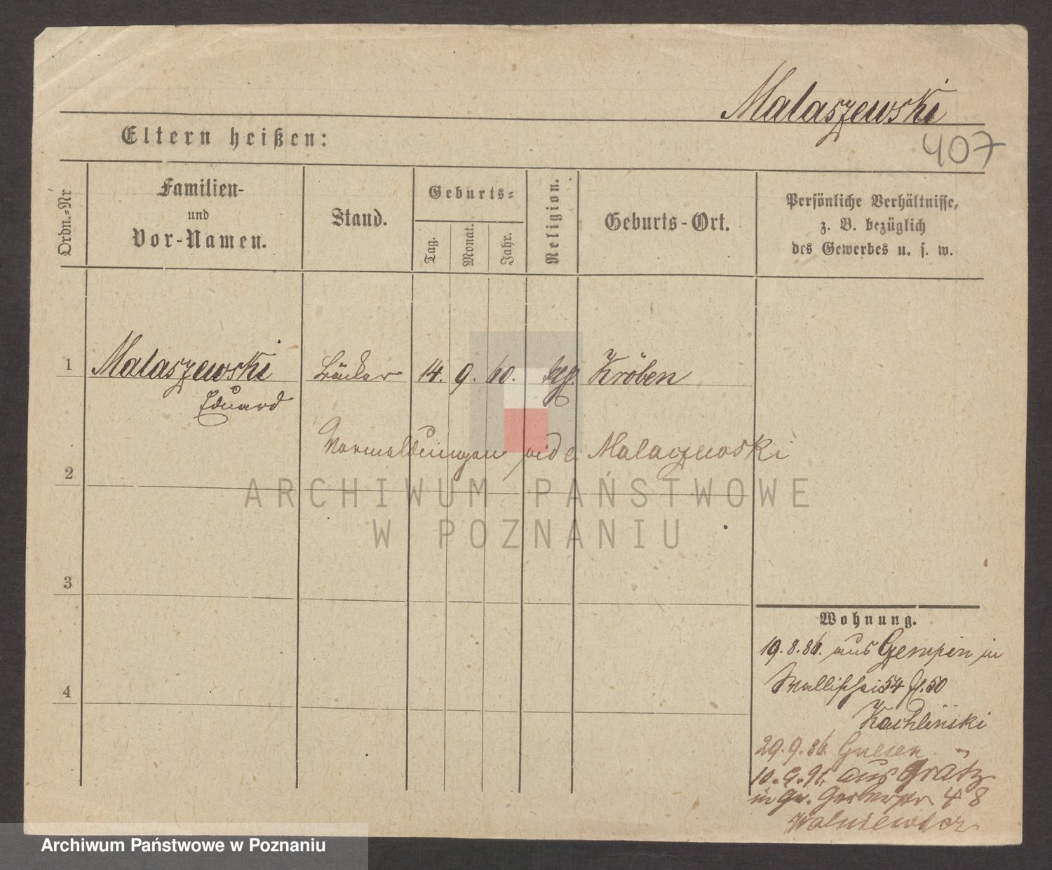 Podgląd karty osobowej dostępny jest po kliknięciu na nazwisko lub ikonkę karty. Można dokonywać powiększenia (ikony na górze) lub przechodzić między kolejnymi skanami (strzałki po bokach).