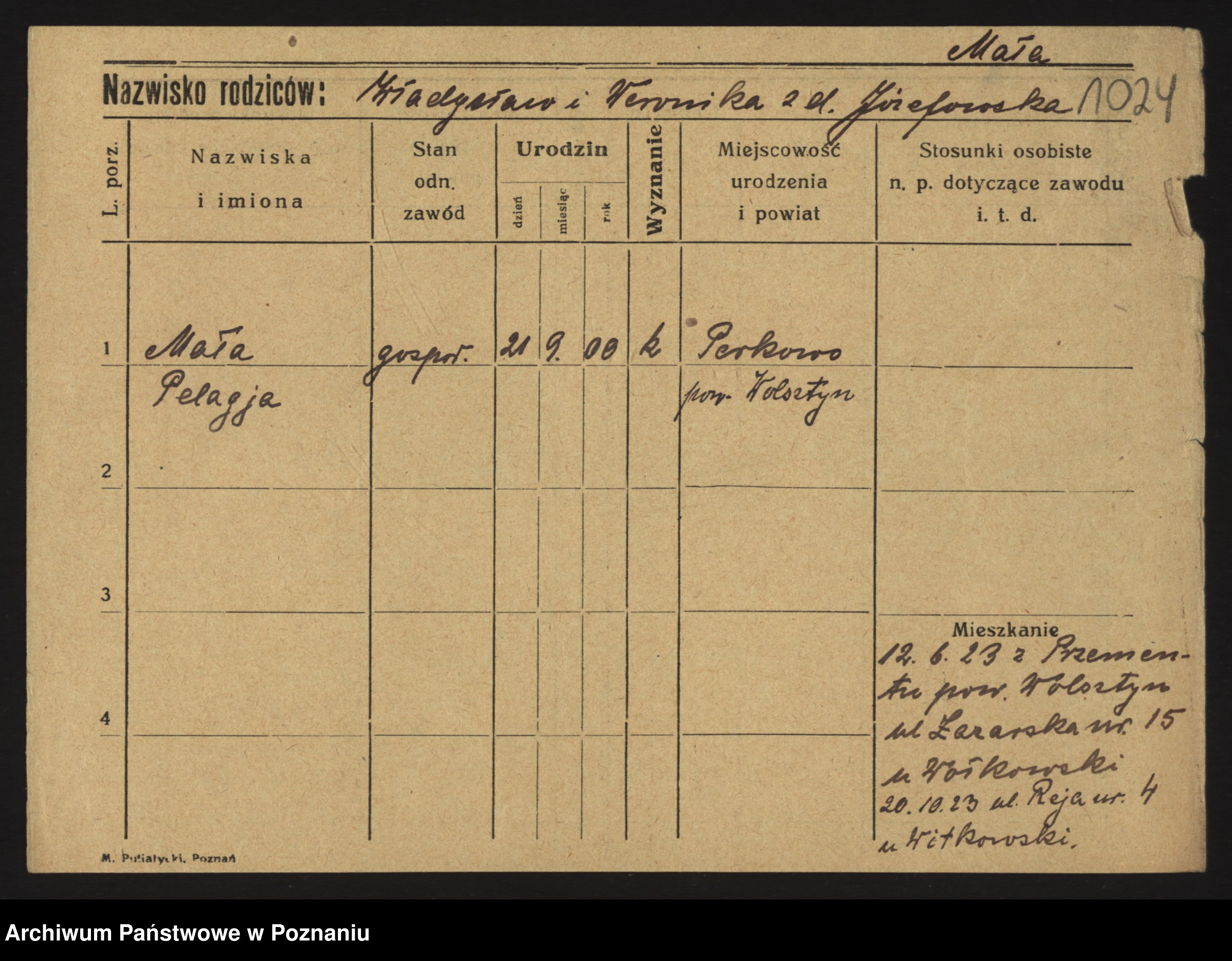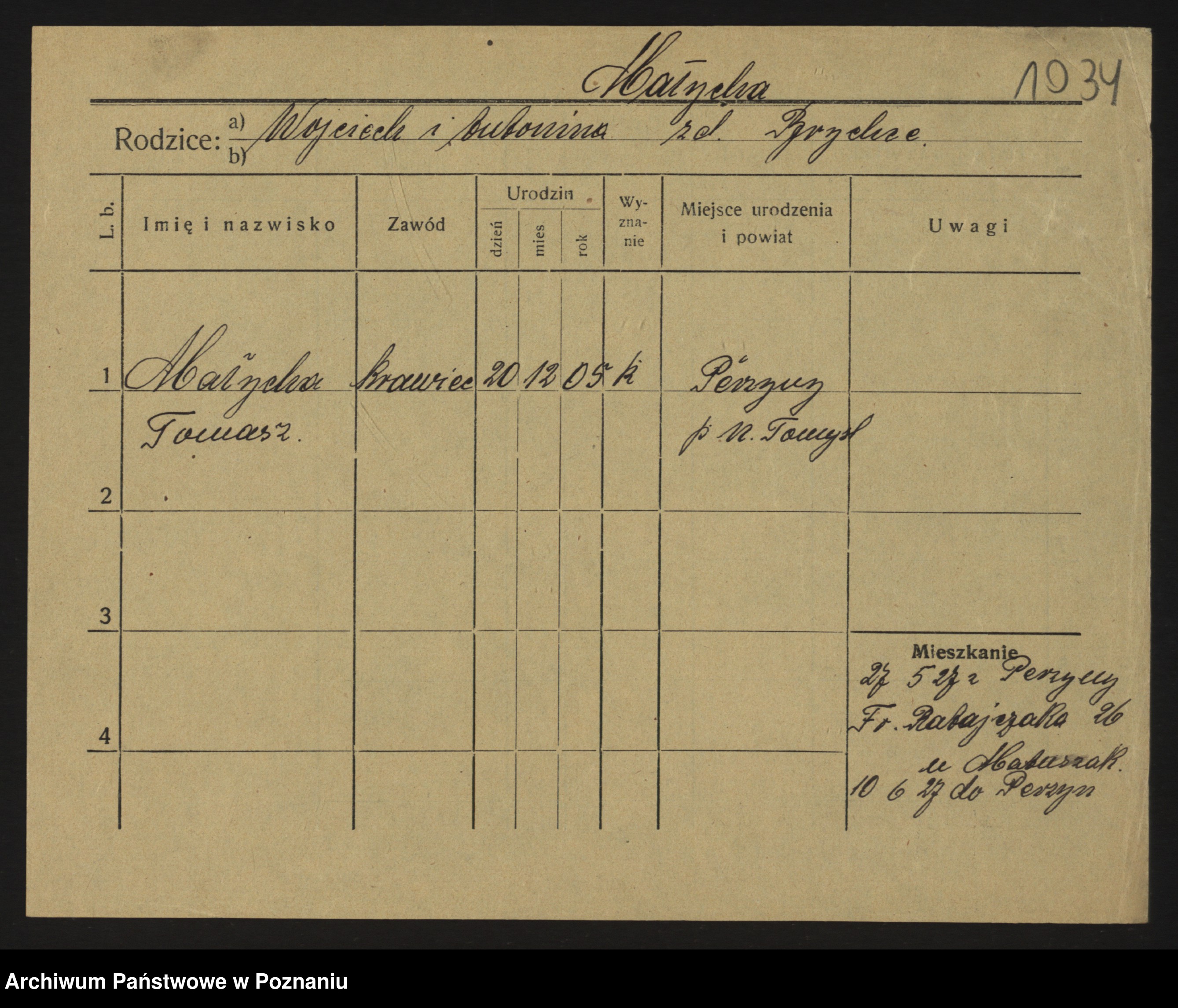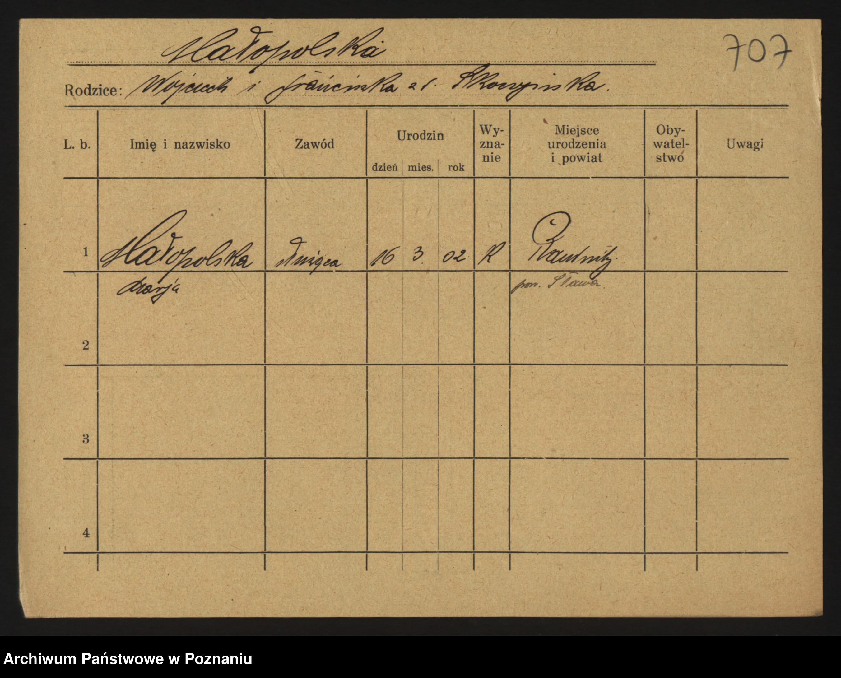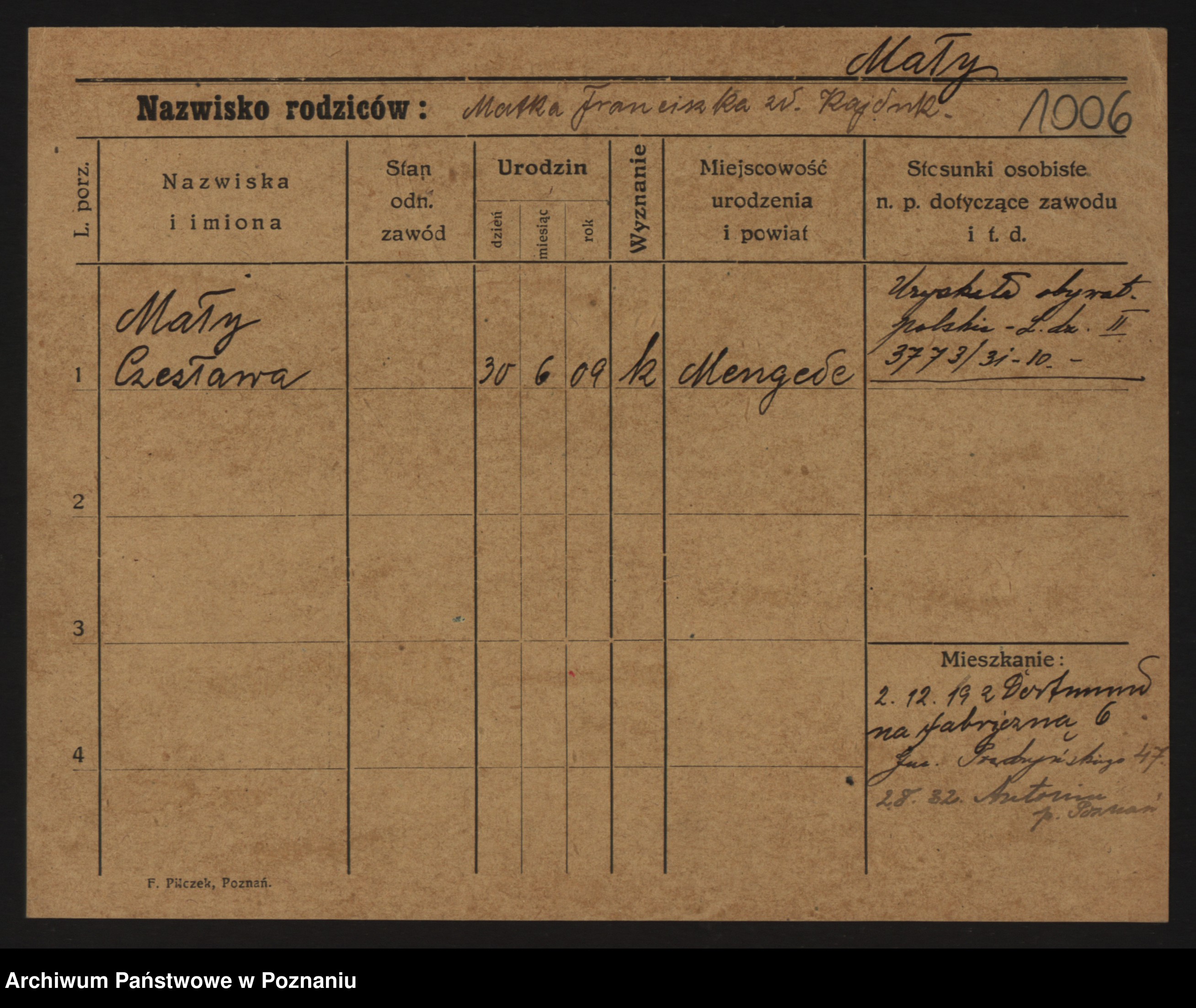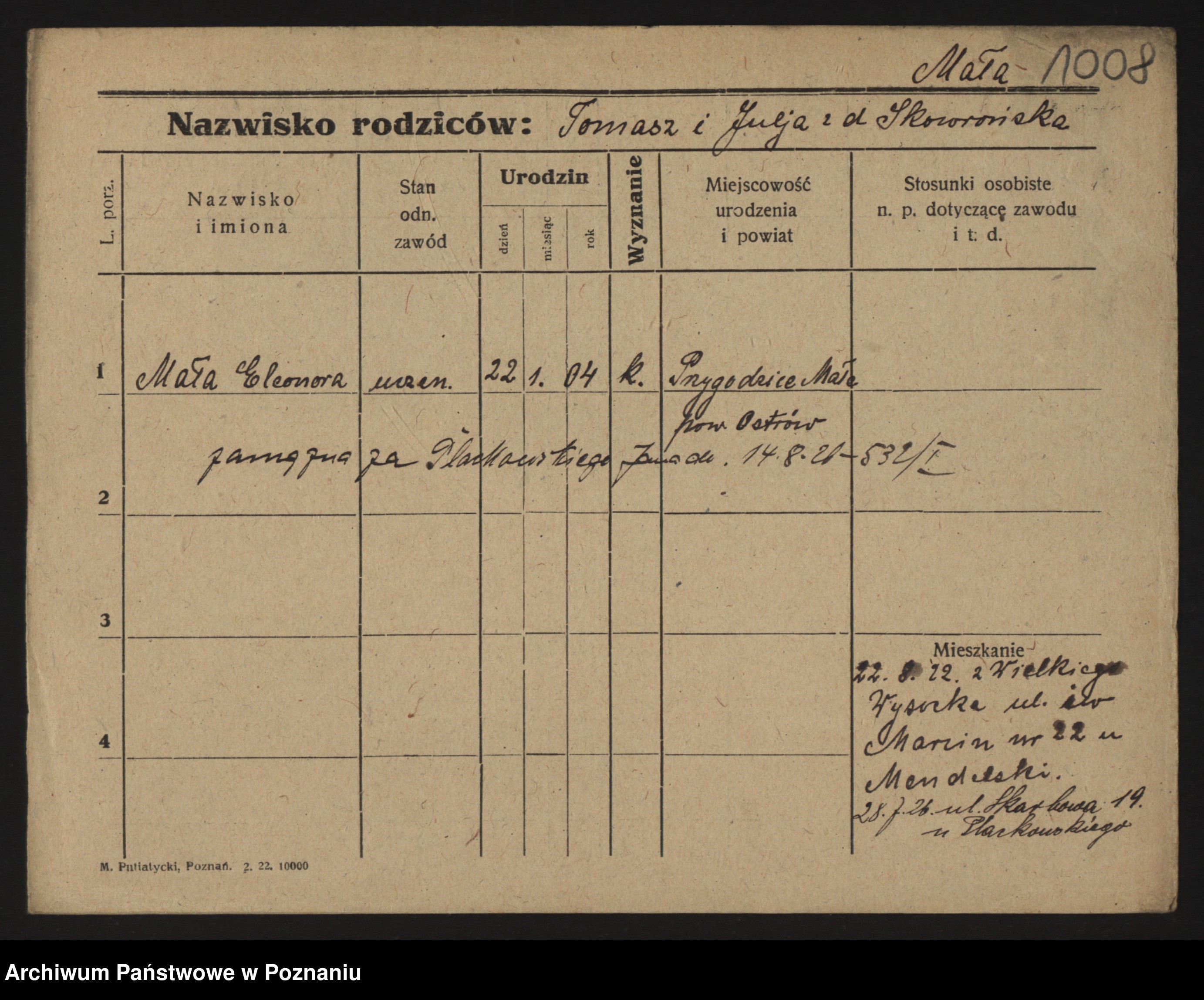 Podgląd karty osobowej dostępny jest po kliknięciu na nazwisko lub ikonkę karty. Można dokonywać powiększenia (ikony na górze) lub przechodzić między kolejnymi skanami (strzałki po bokach).
