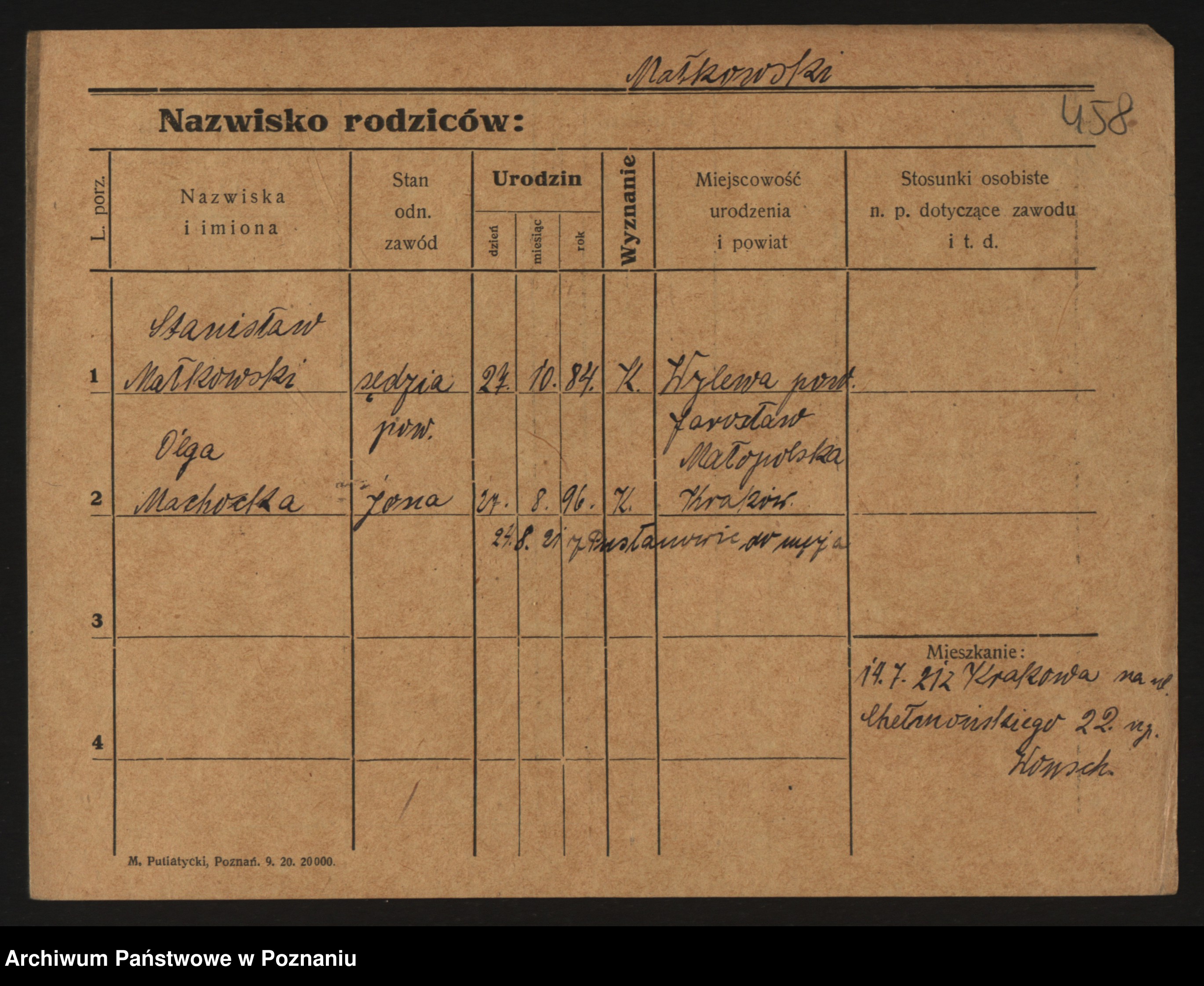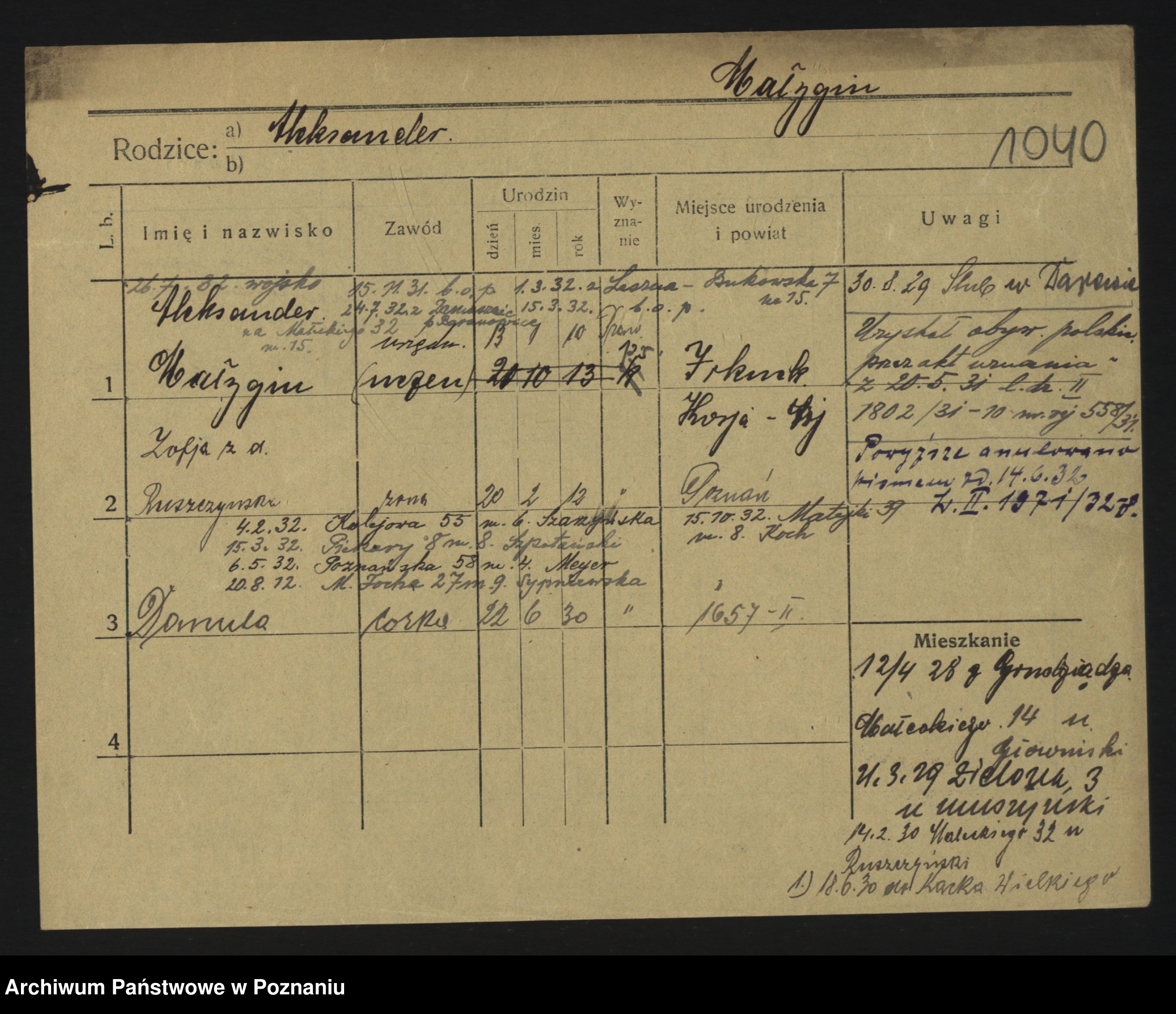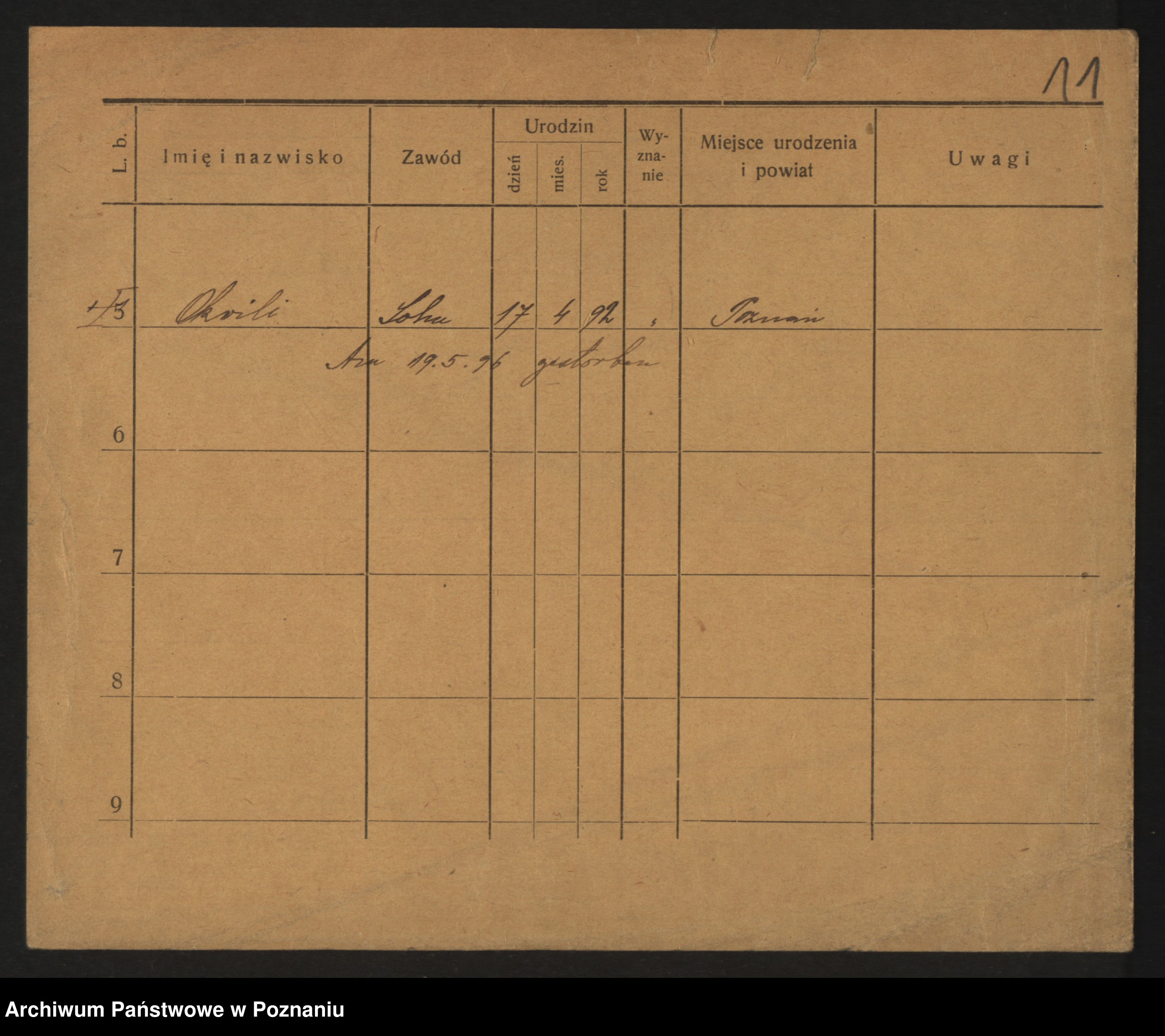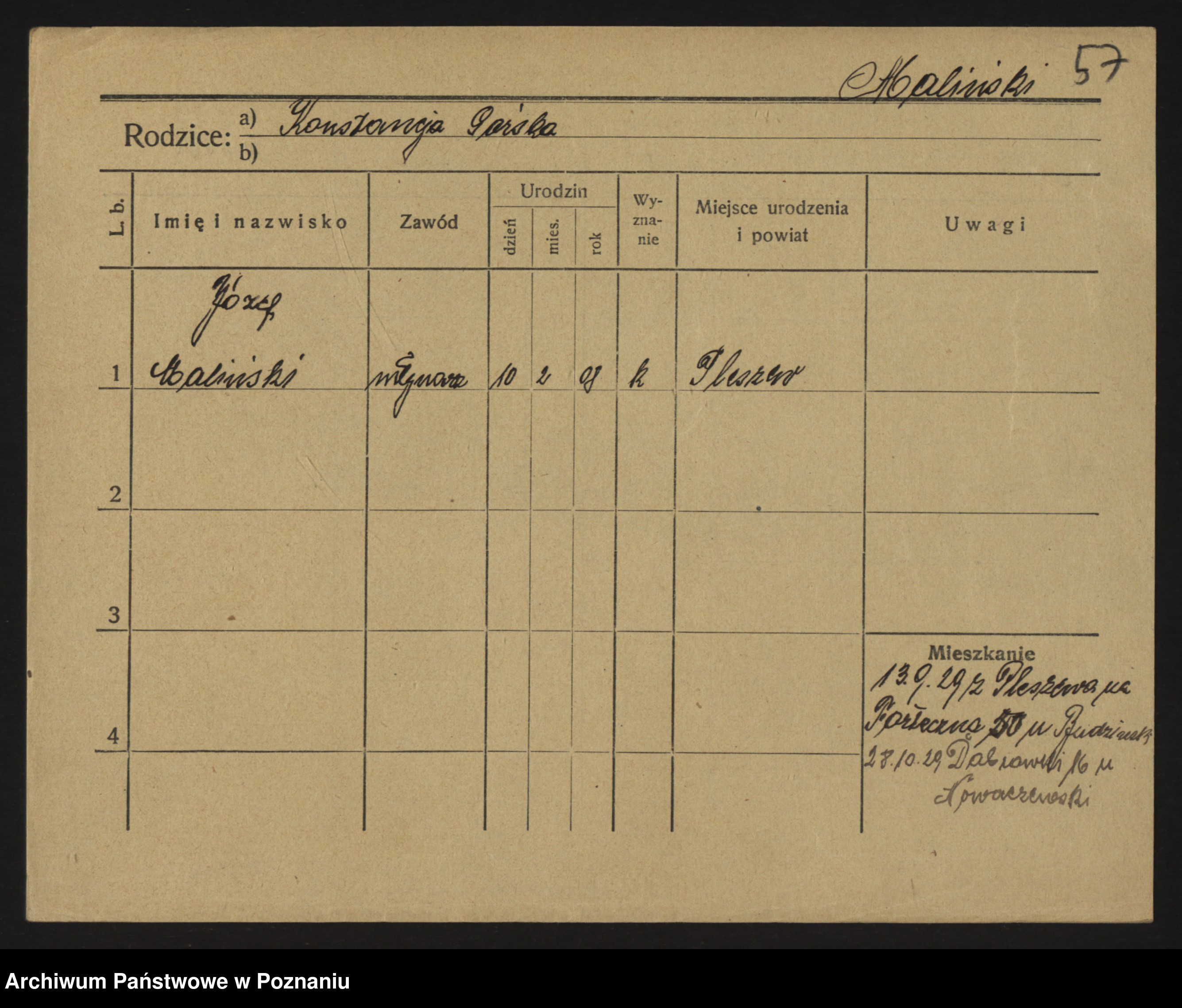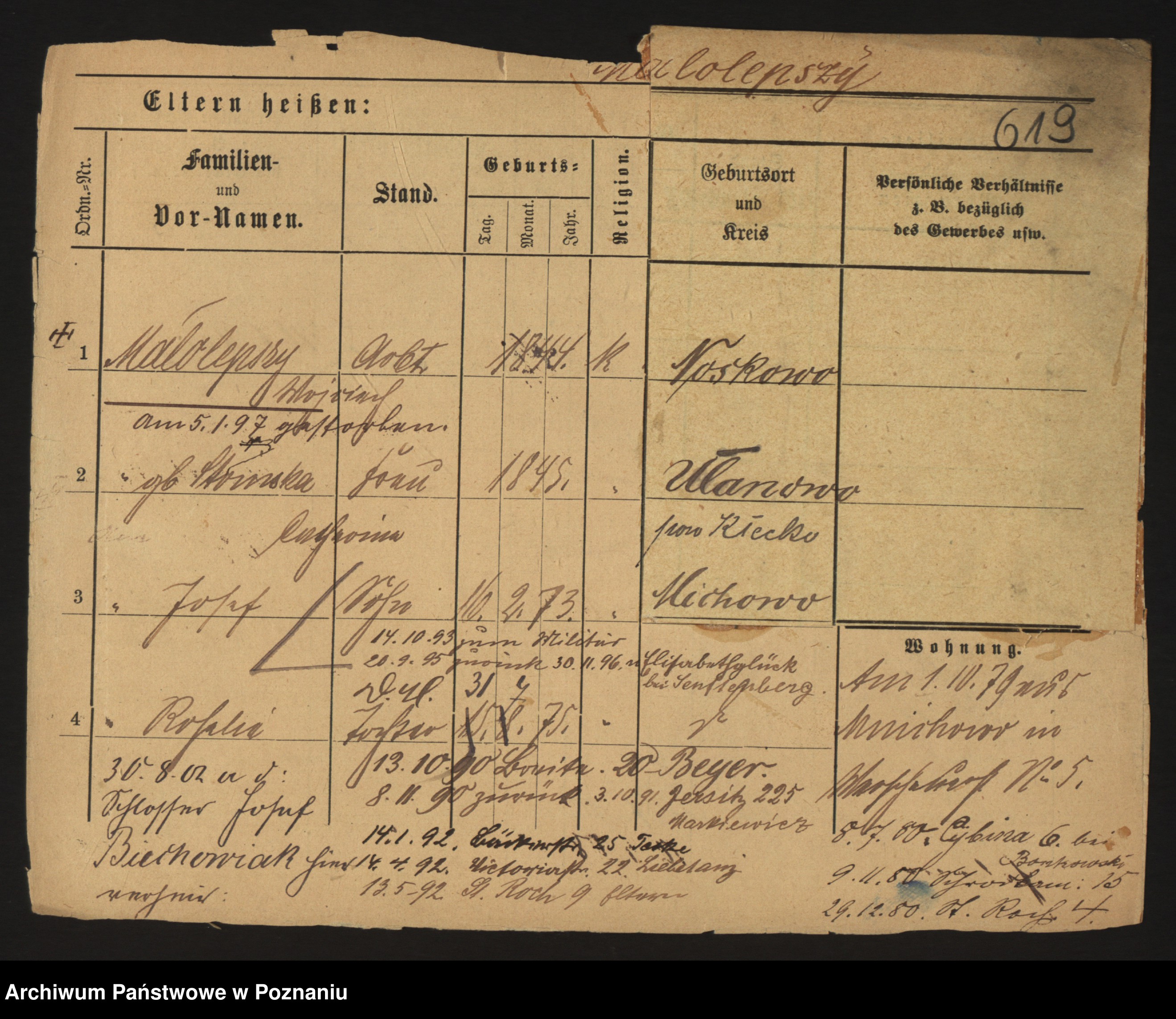 Podgląd karty osobowej dostępny jest po kliknięciu na nazwisko lub ikonkę karty. Można dokonywać powiększenia (ikony na górze) lub przechodzić między kolejnymi skanami (strzałki po bokach).