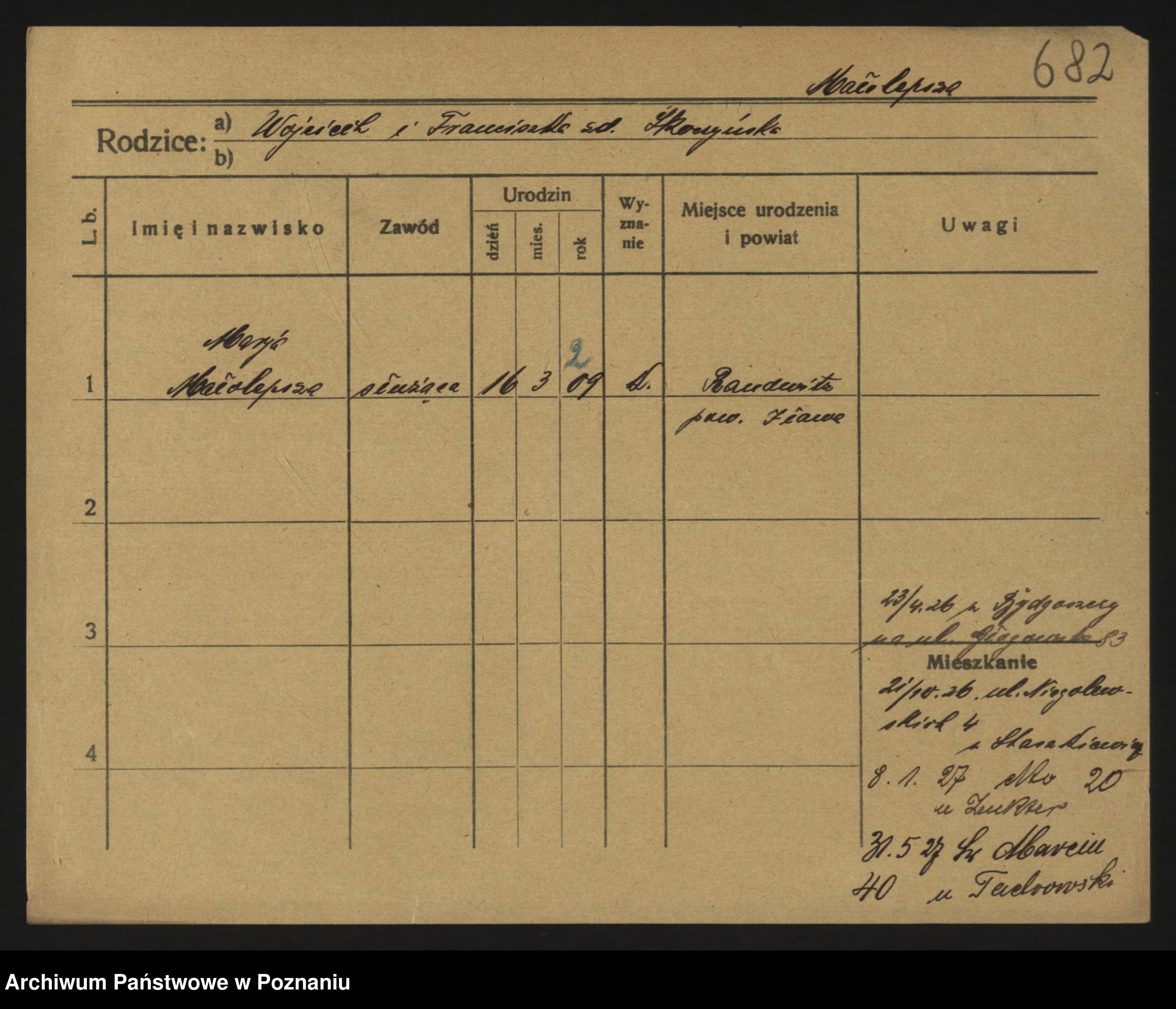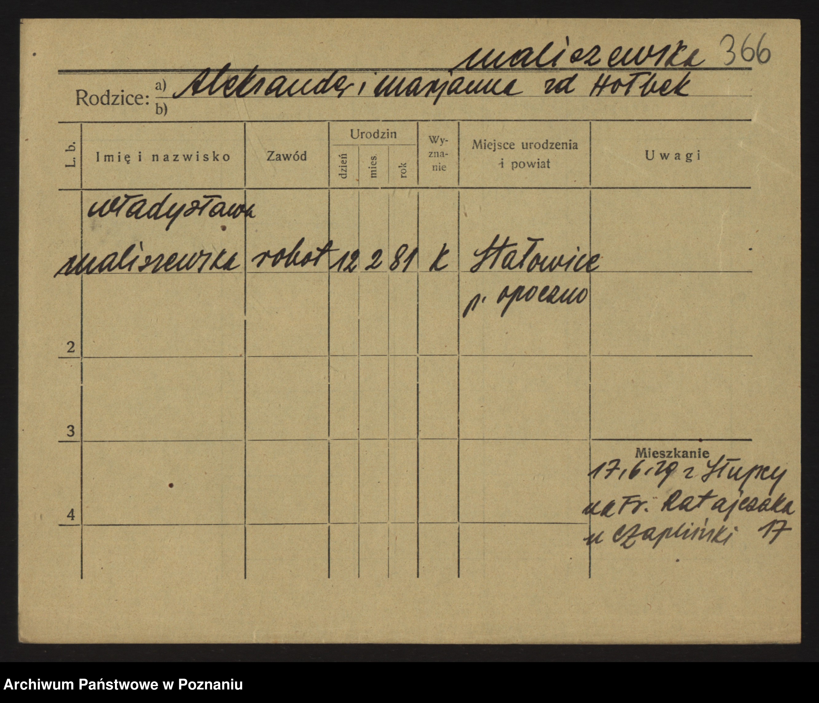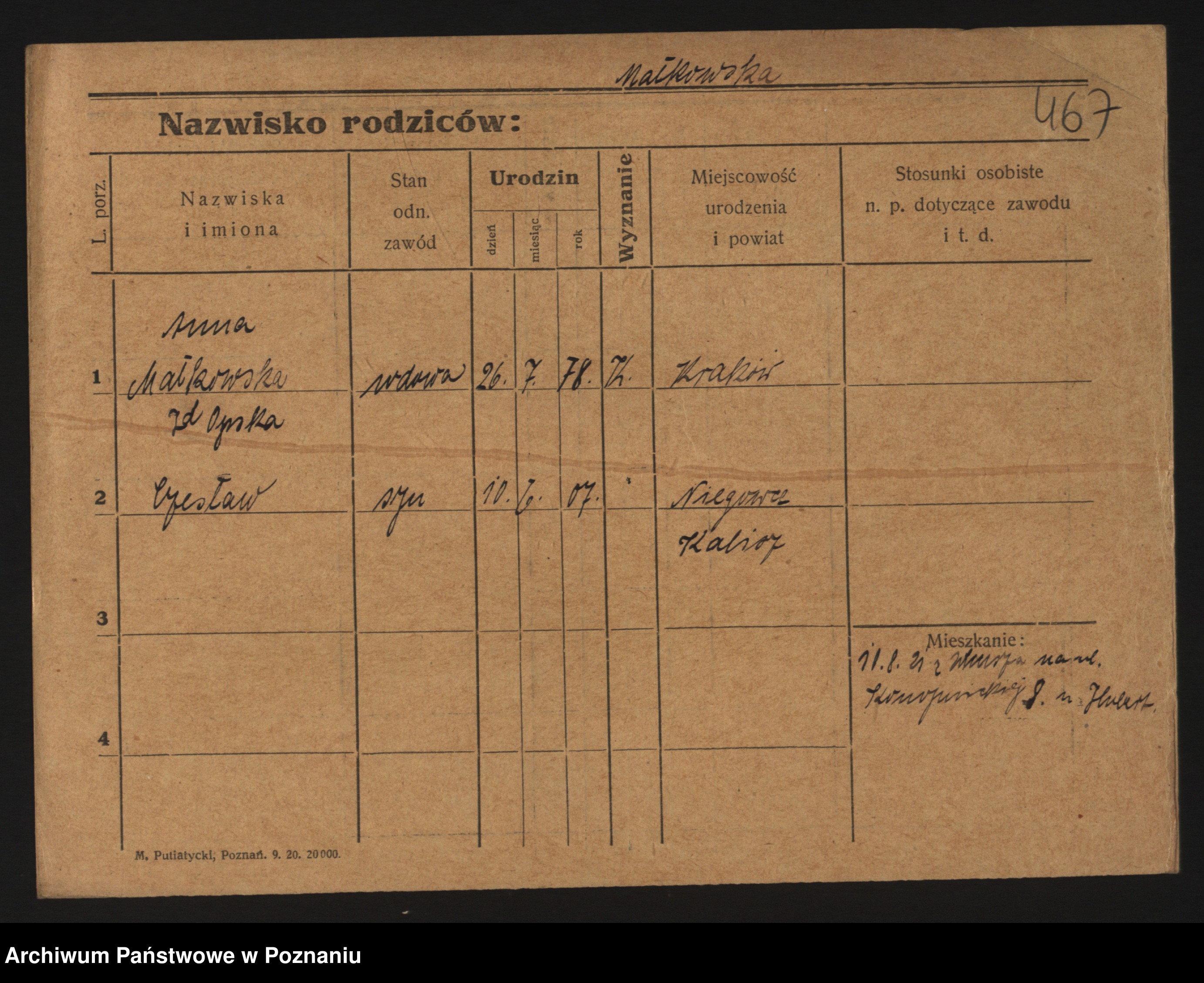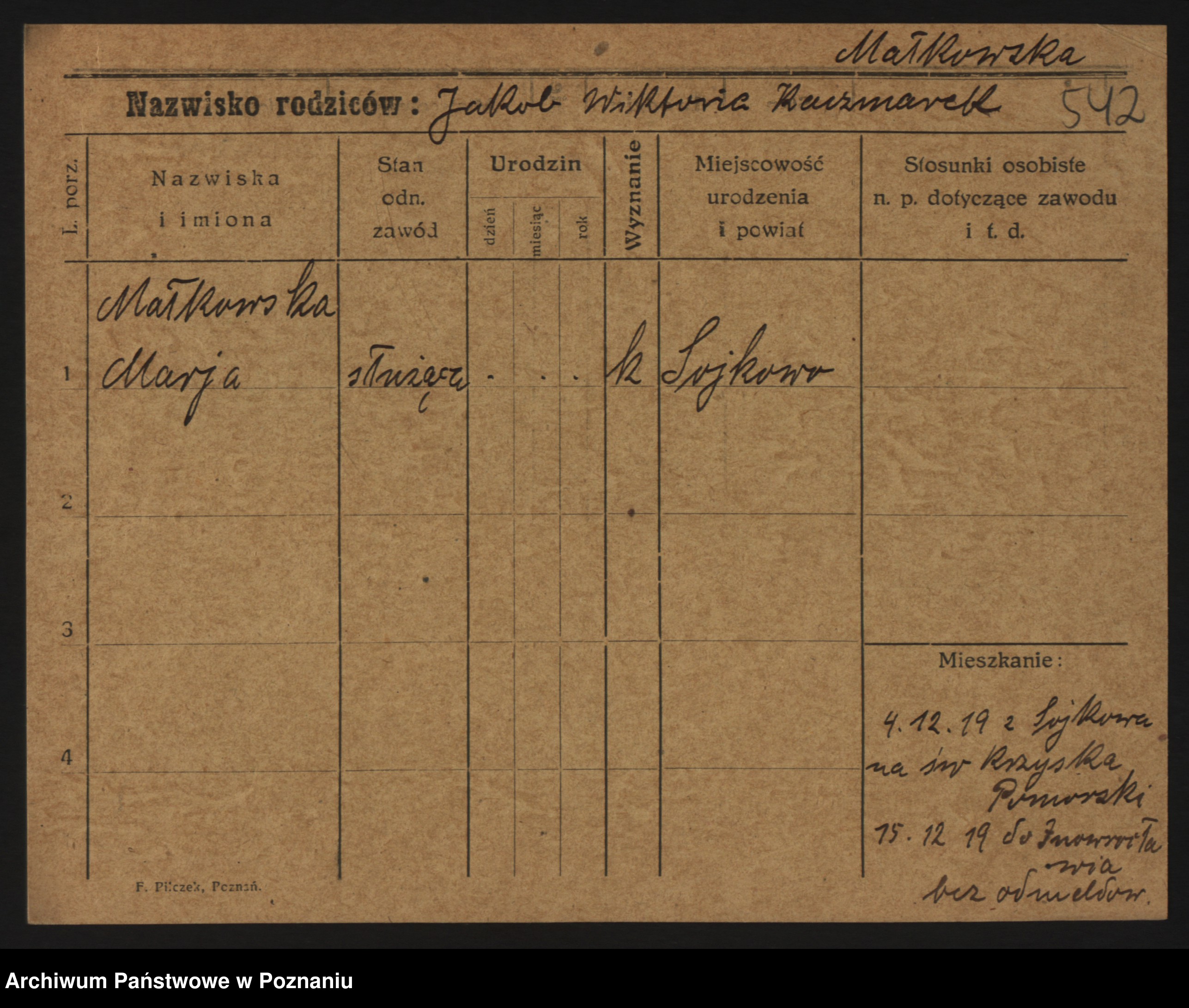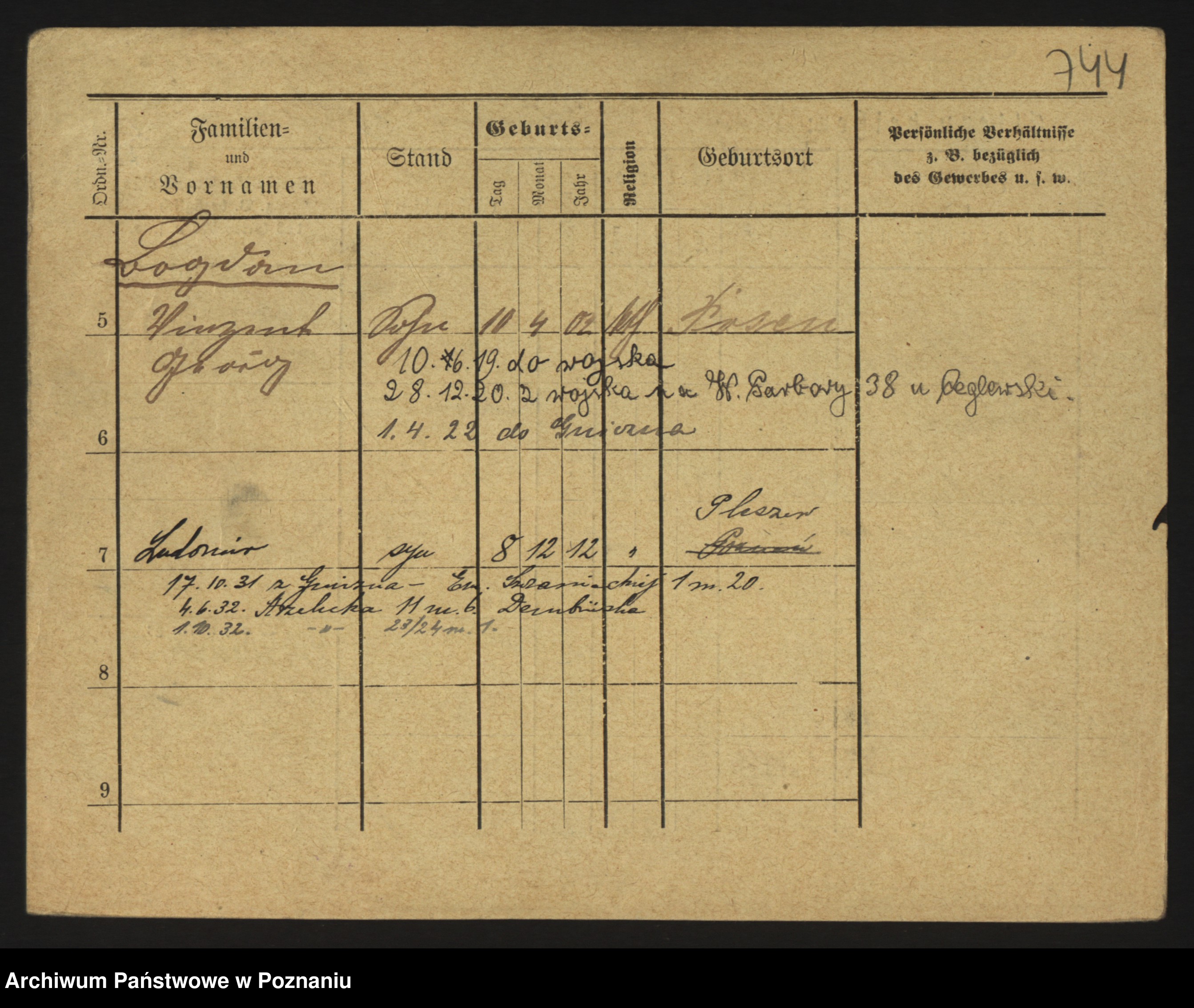 Podgląd karty osobowej dostępny jest po kliknięciu na nazwisko lub ikonkę karty. Można dokonywać powiększenia (ikony na górze) lub przechodzić między kolejnymi skanami (strzałki po bokach).