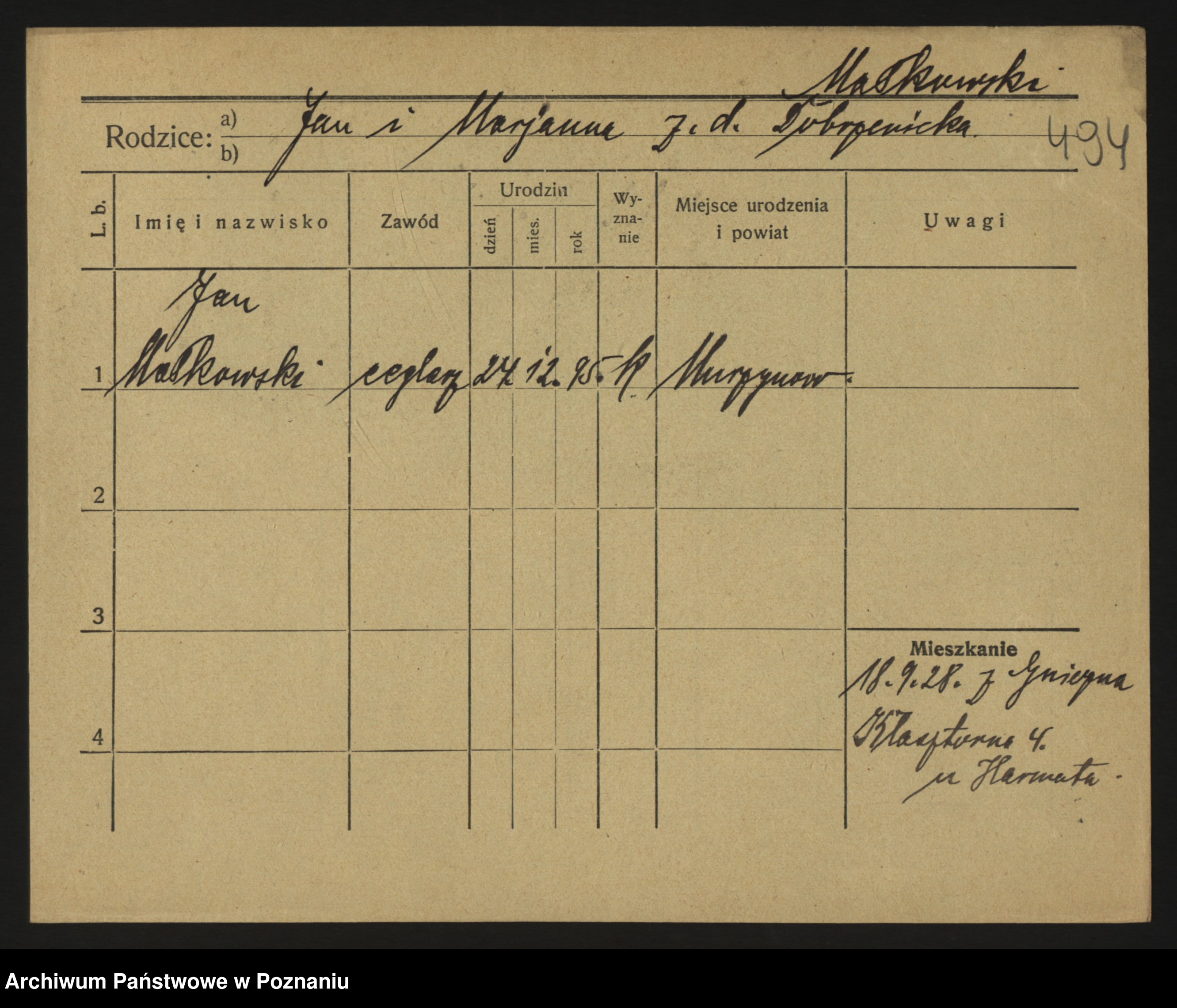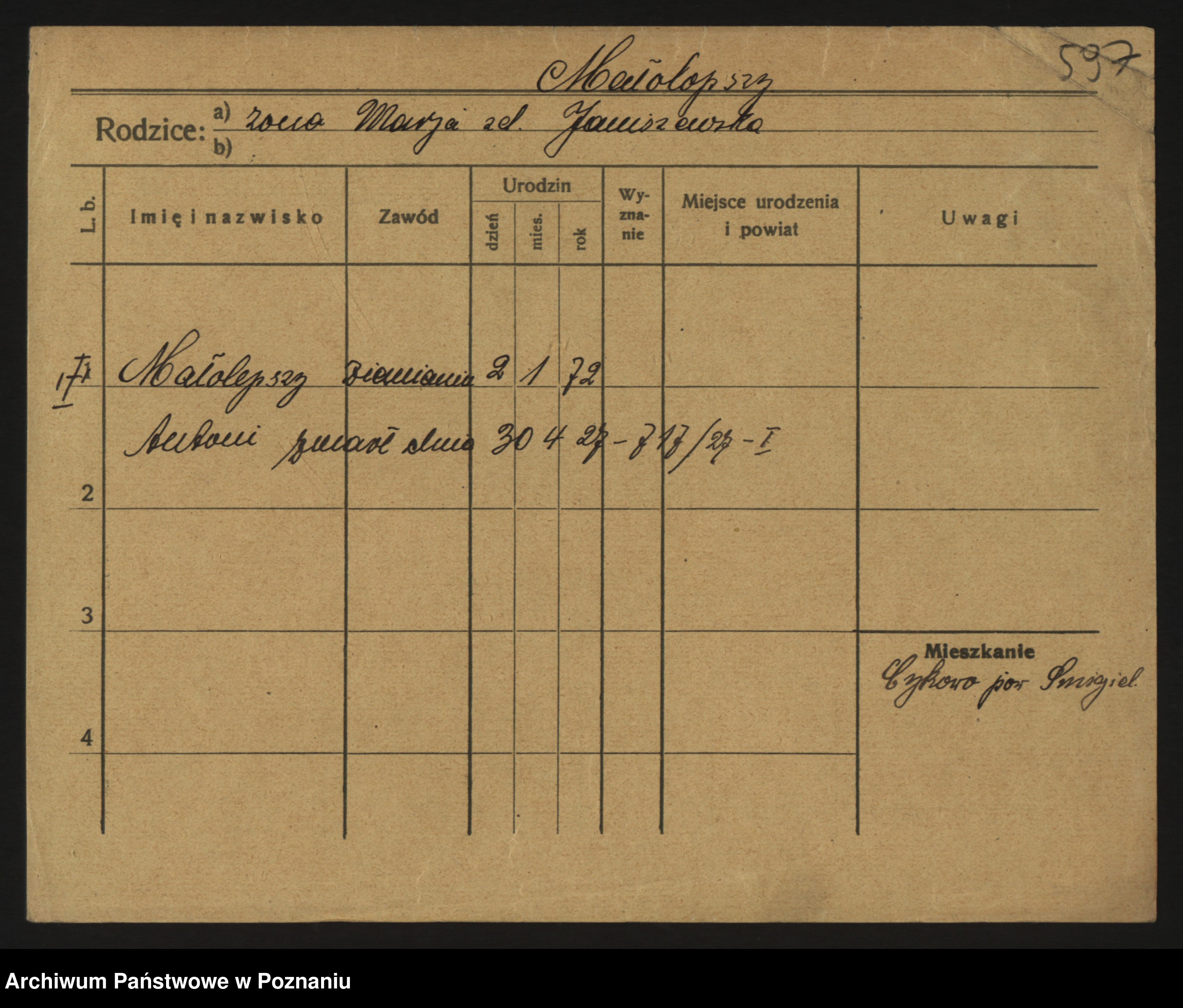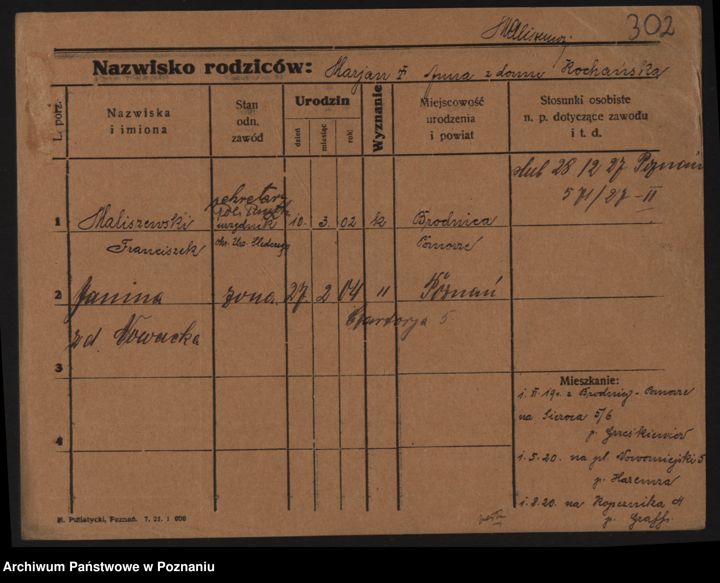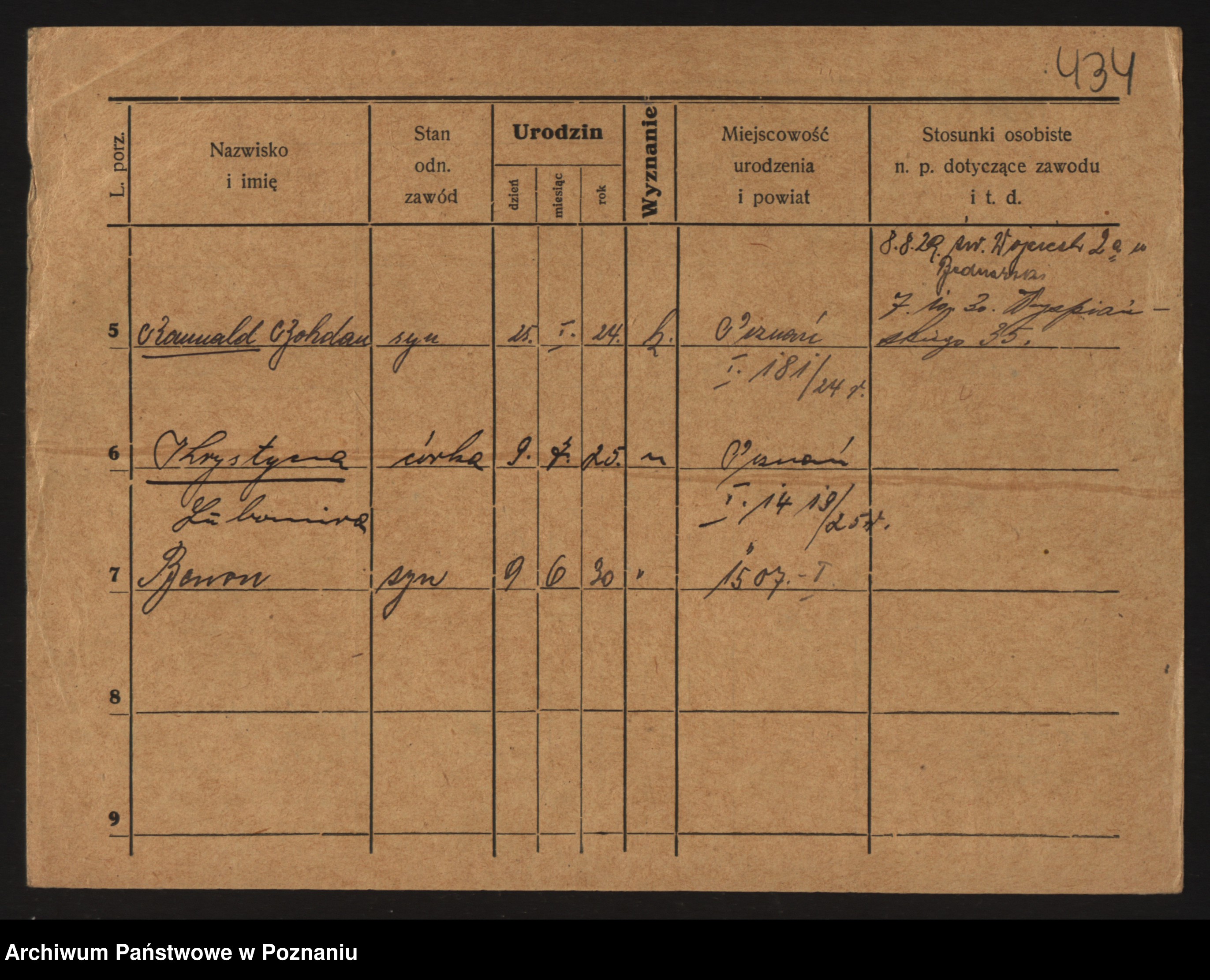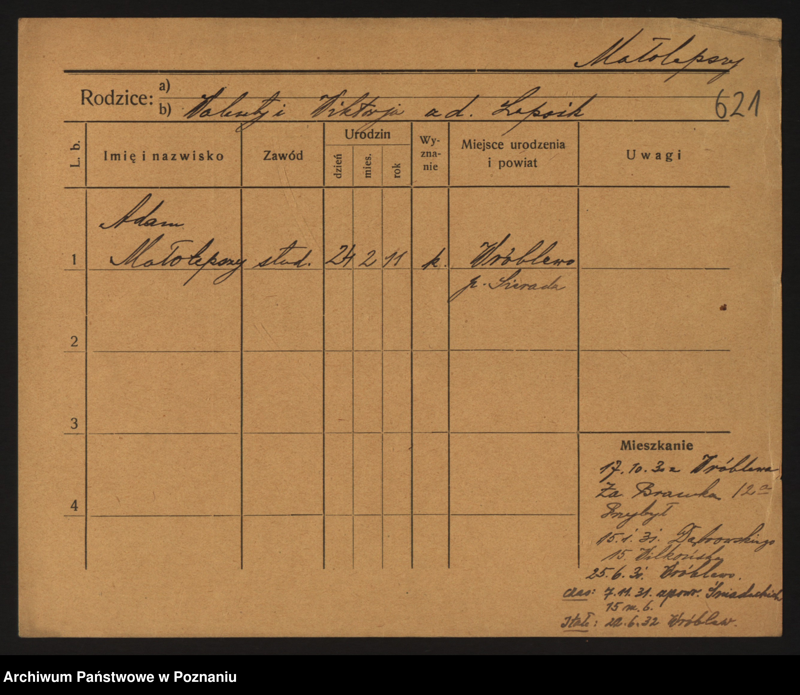 Podgląd karty osobowej dostępny jest po kliknięciu na nazwisko lub ikonkę karty. Można dokonywać powiększenia (ikony na górze) lub przechodzić między kolejnymi skanami (strzałki po bokach).