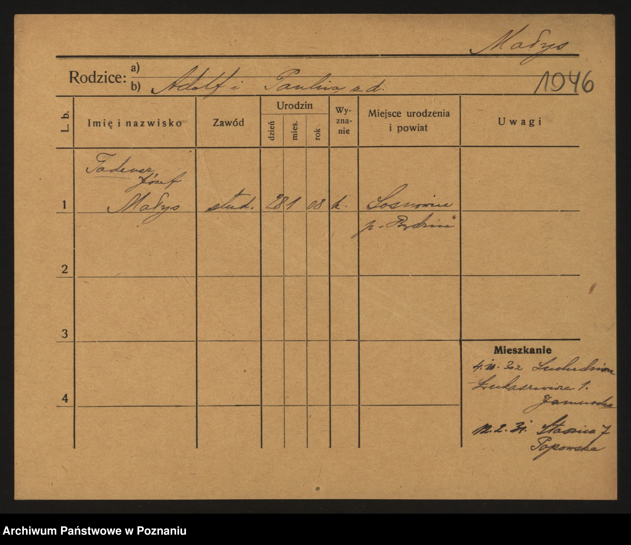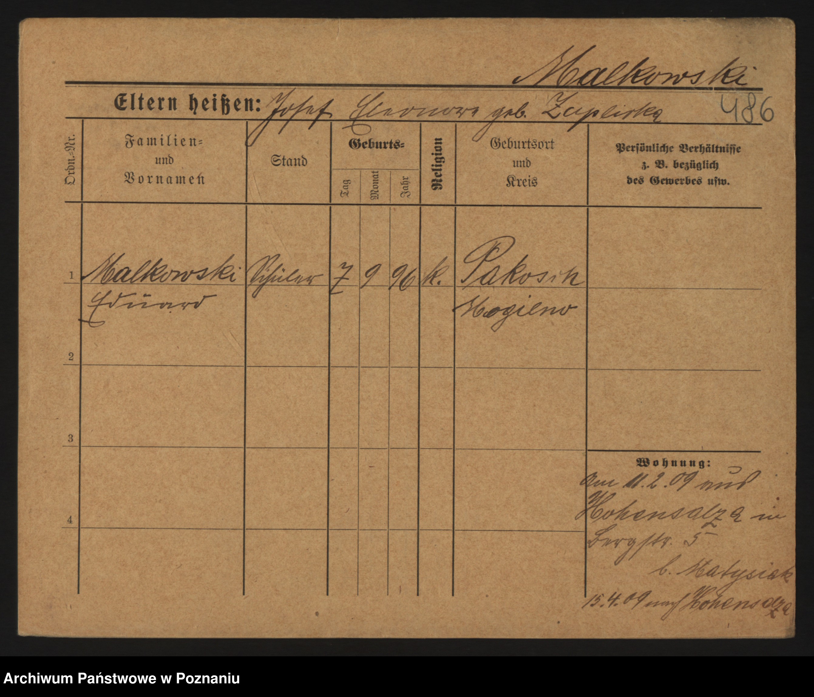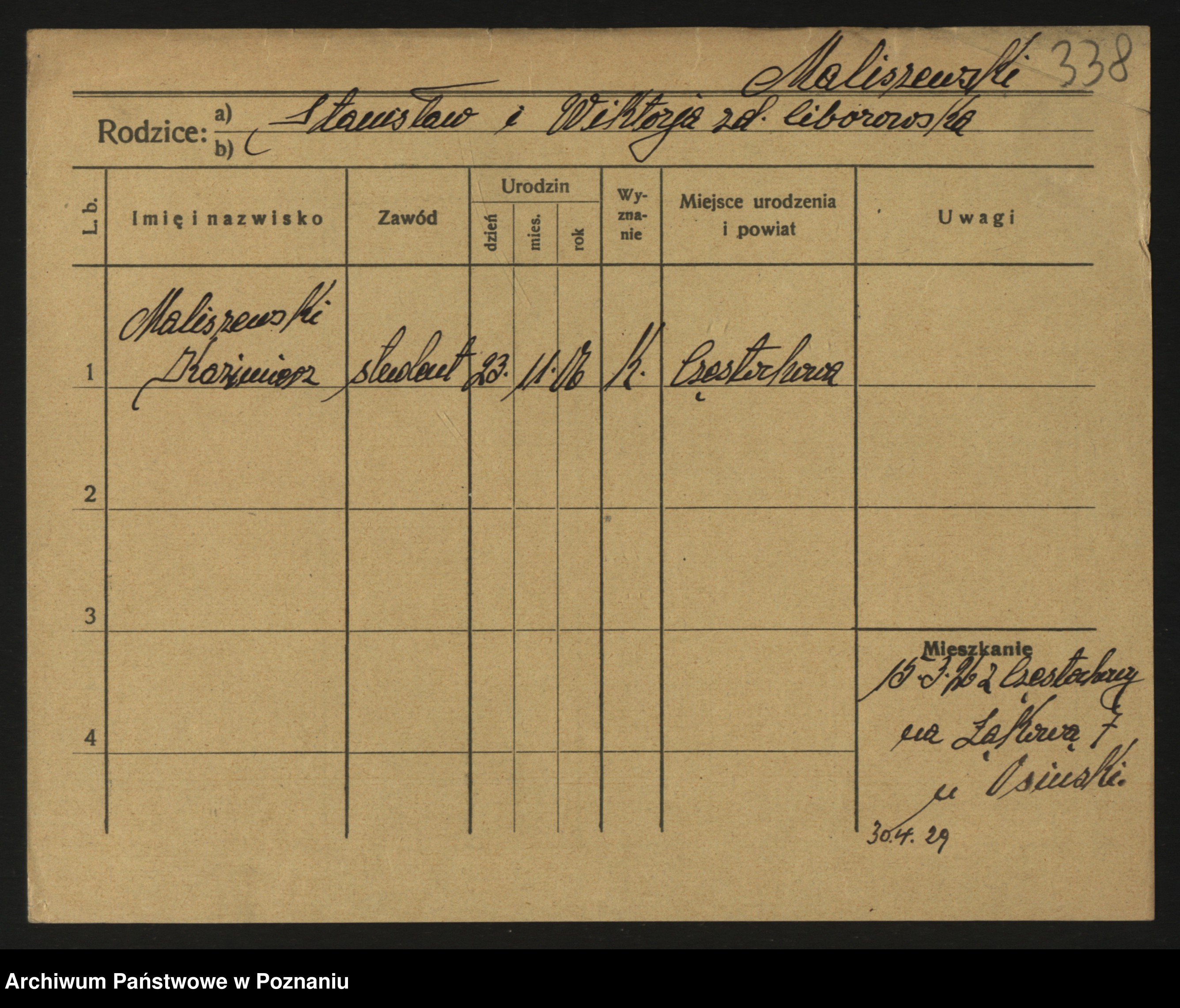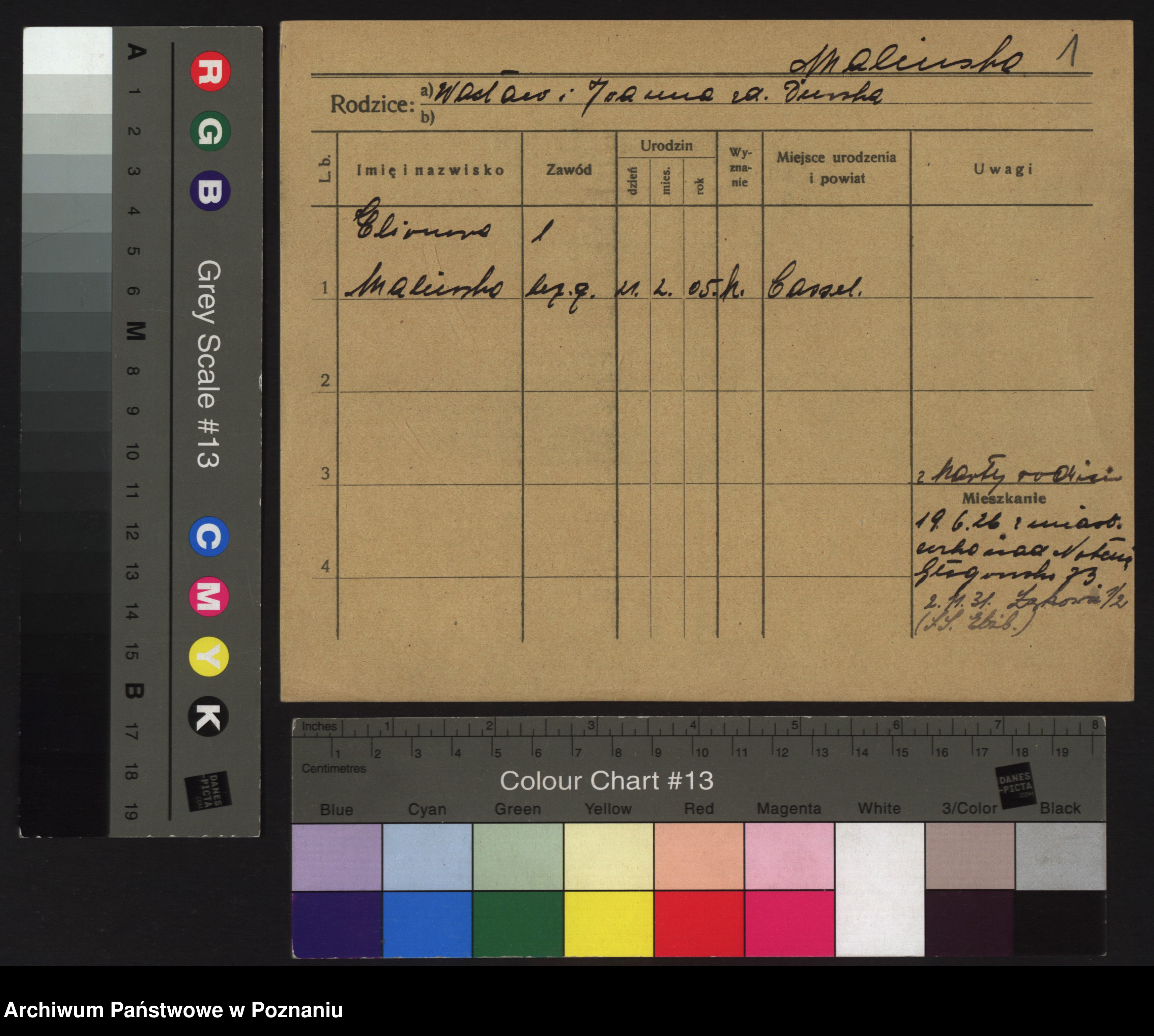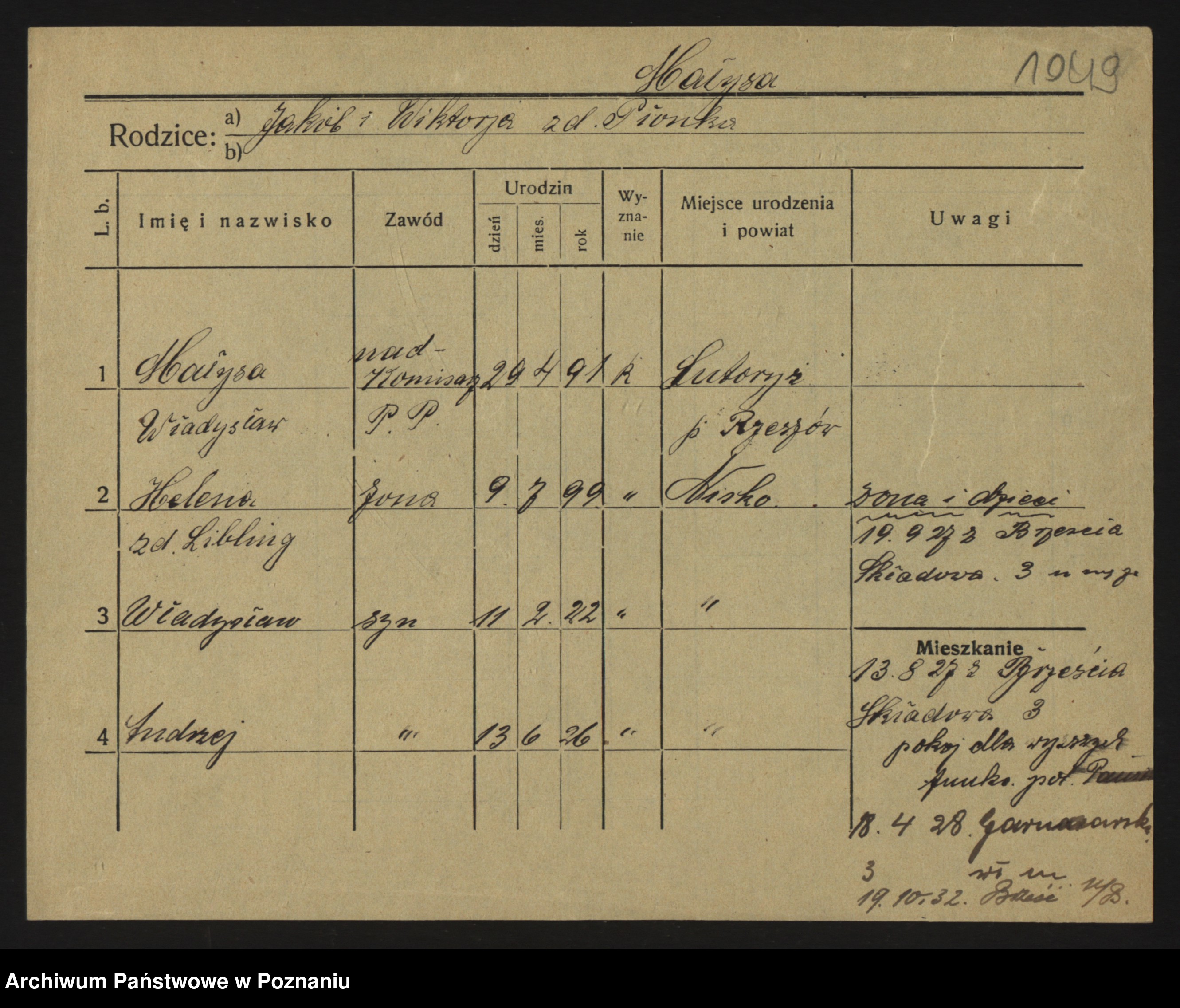 Podgląd karty osobowej dostępny jest po kliknięciu na nazwisko lub ikonkę karty. Można dokonywać powiększenia (ikony na górze) lub przechodzić między kolejnymi skanami (strzałki po bokach).