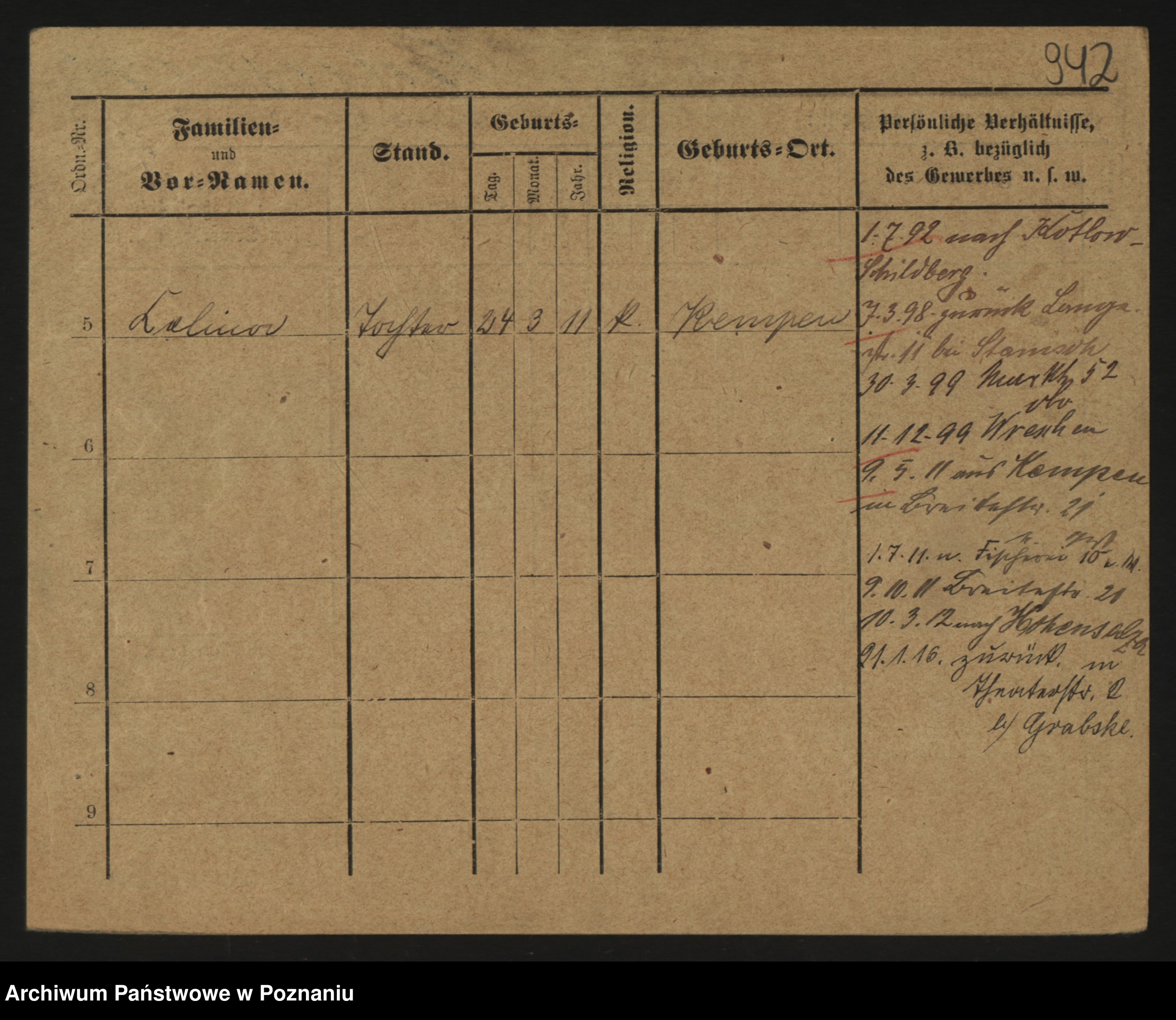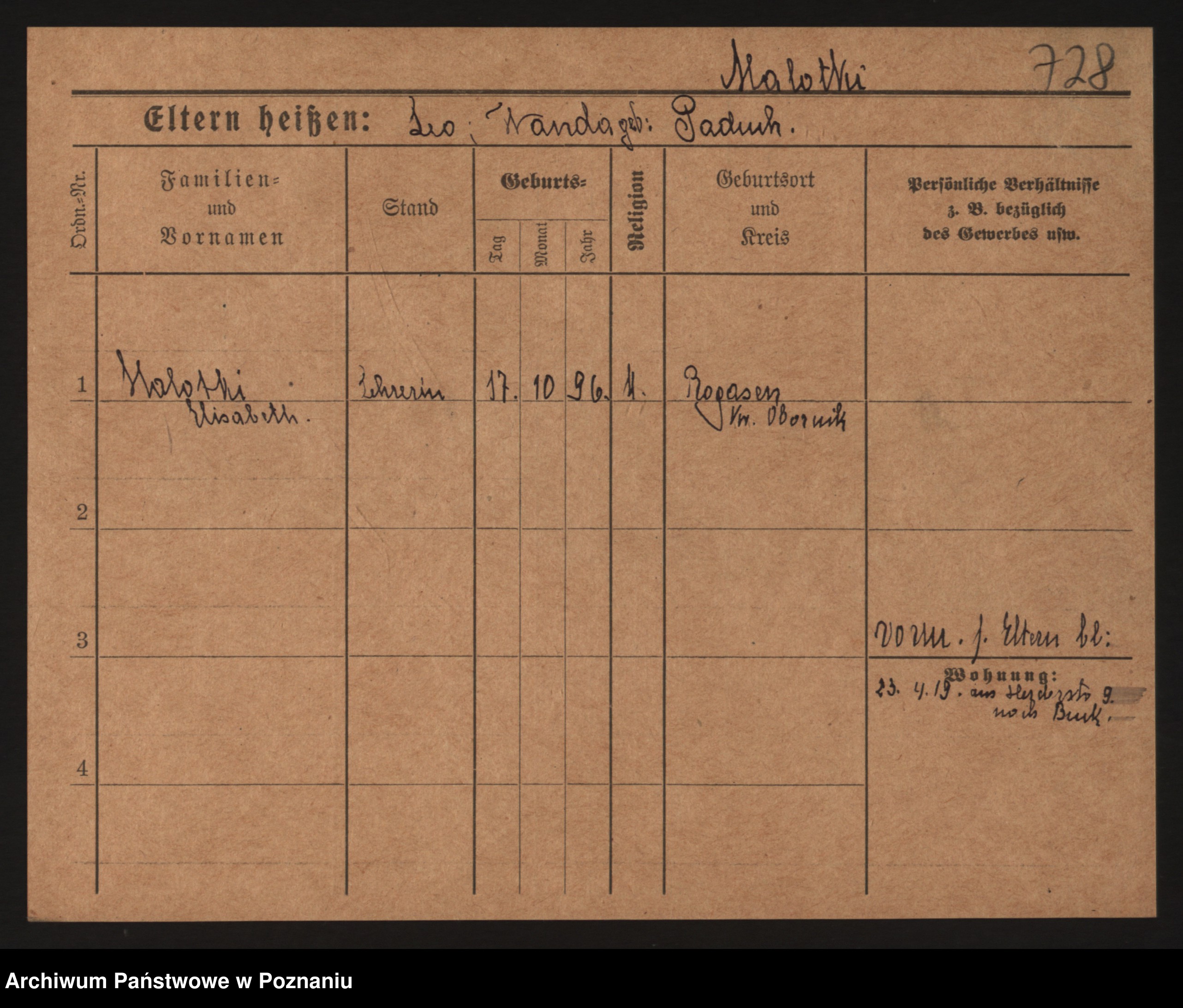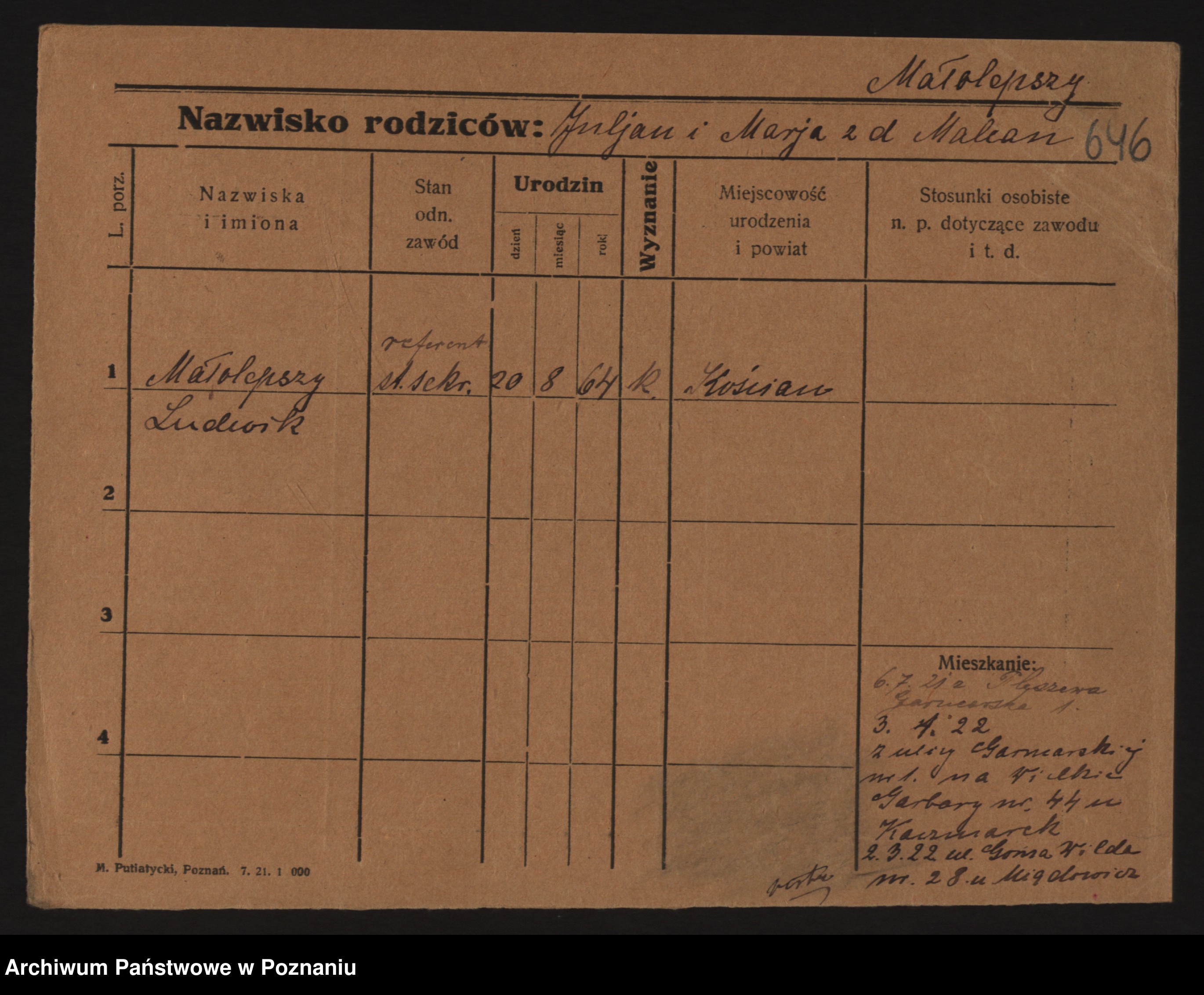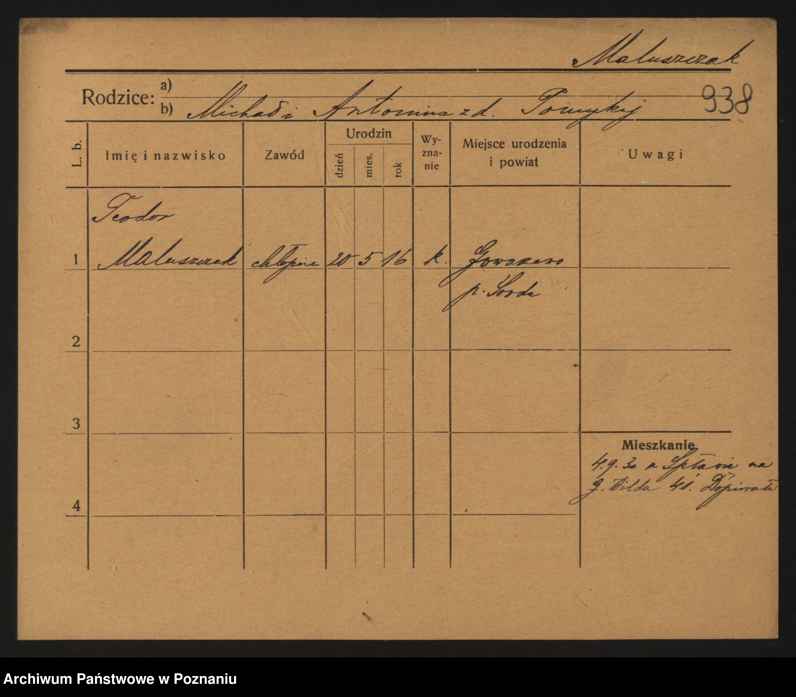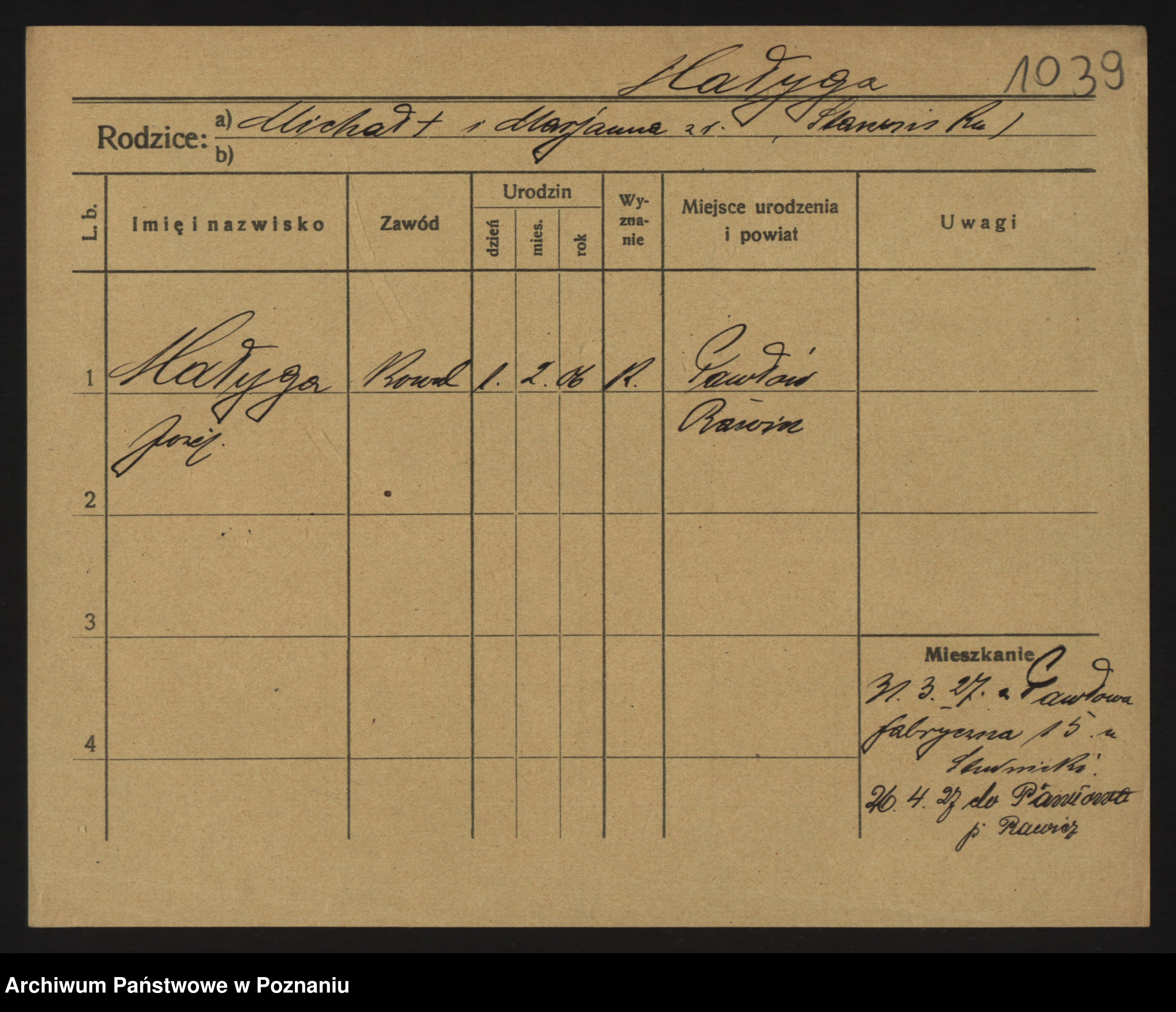 Podgląd karty osobowej dostępny jest po kliknięciu na nazwisko lub ikonkę karty. Można dokonywać powiększenia (ikony na górze) lub przechodzić między kolejnymi skanami (strzałki po bokach).