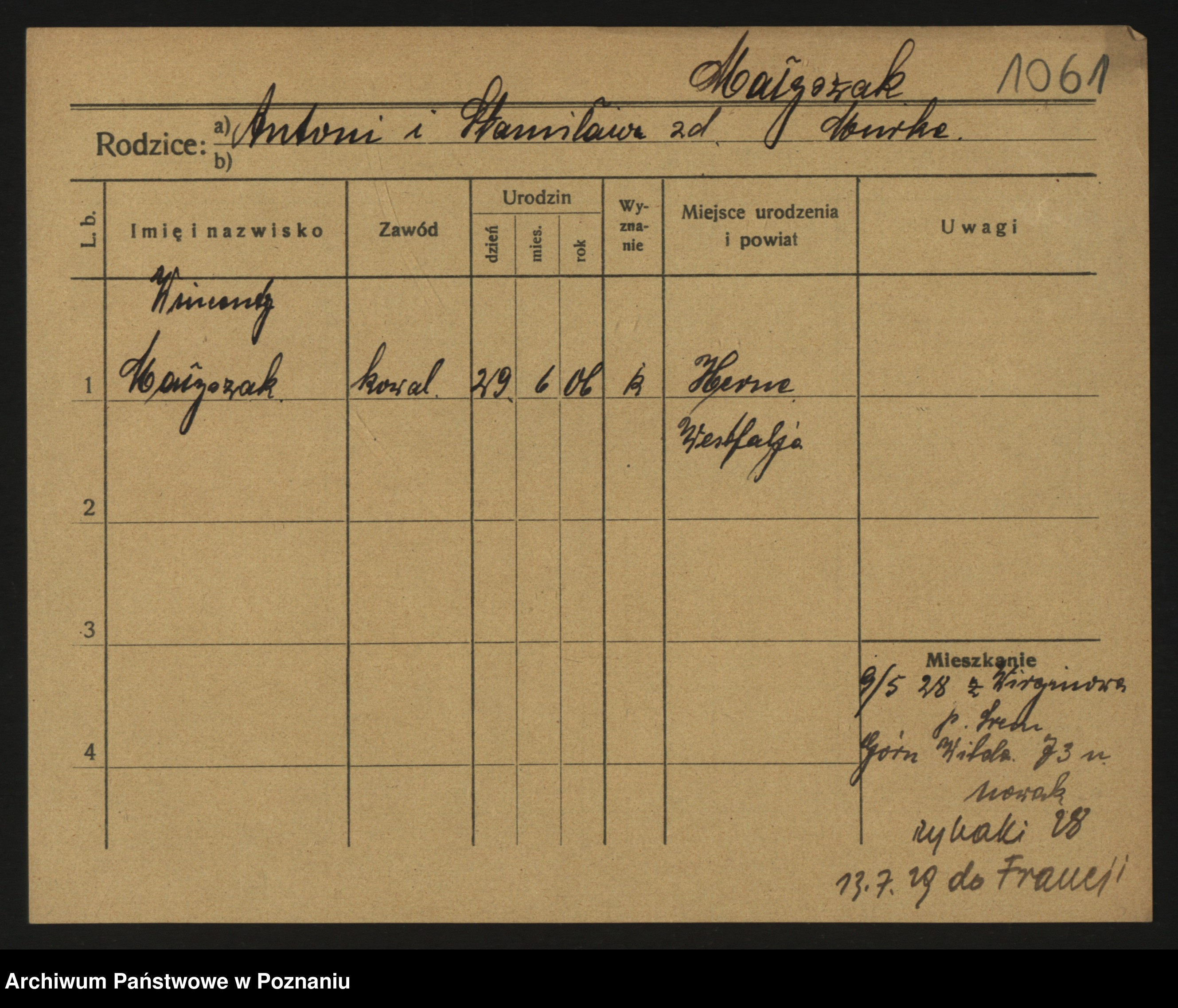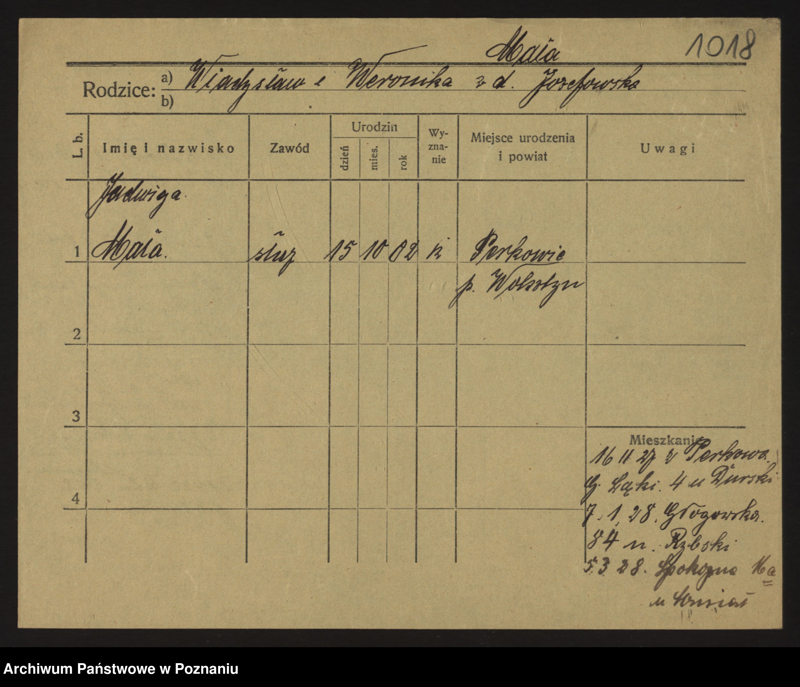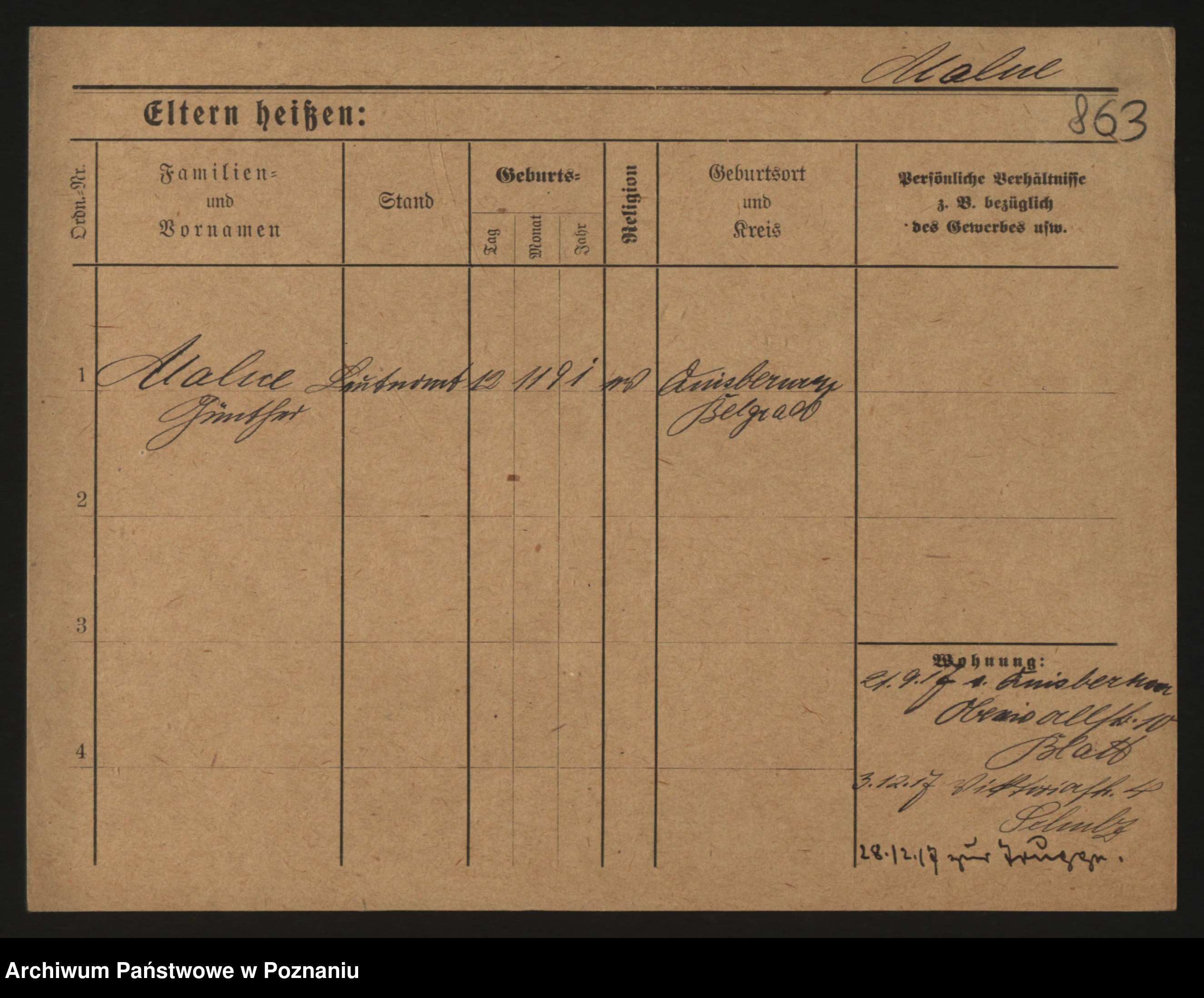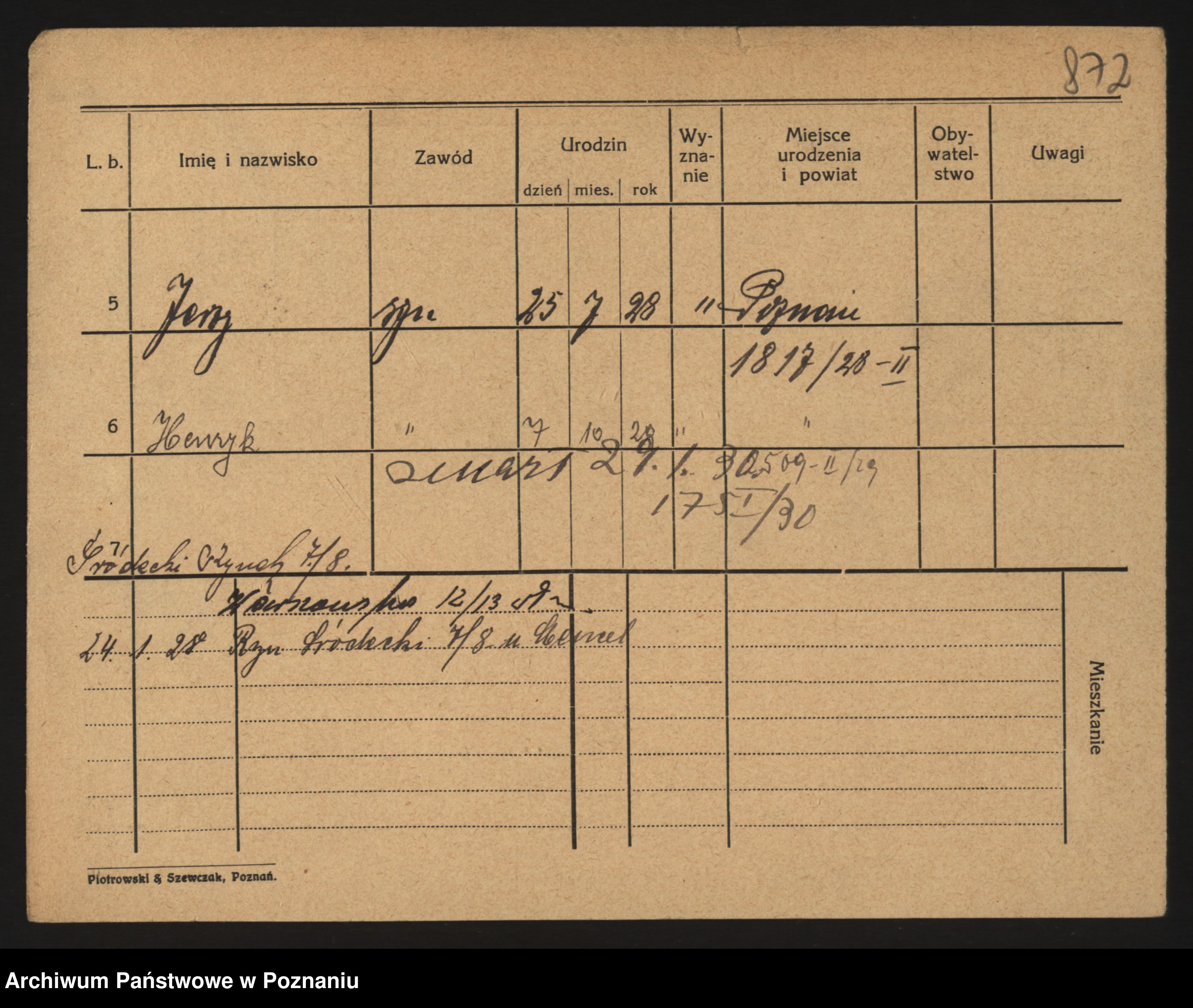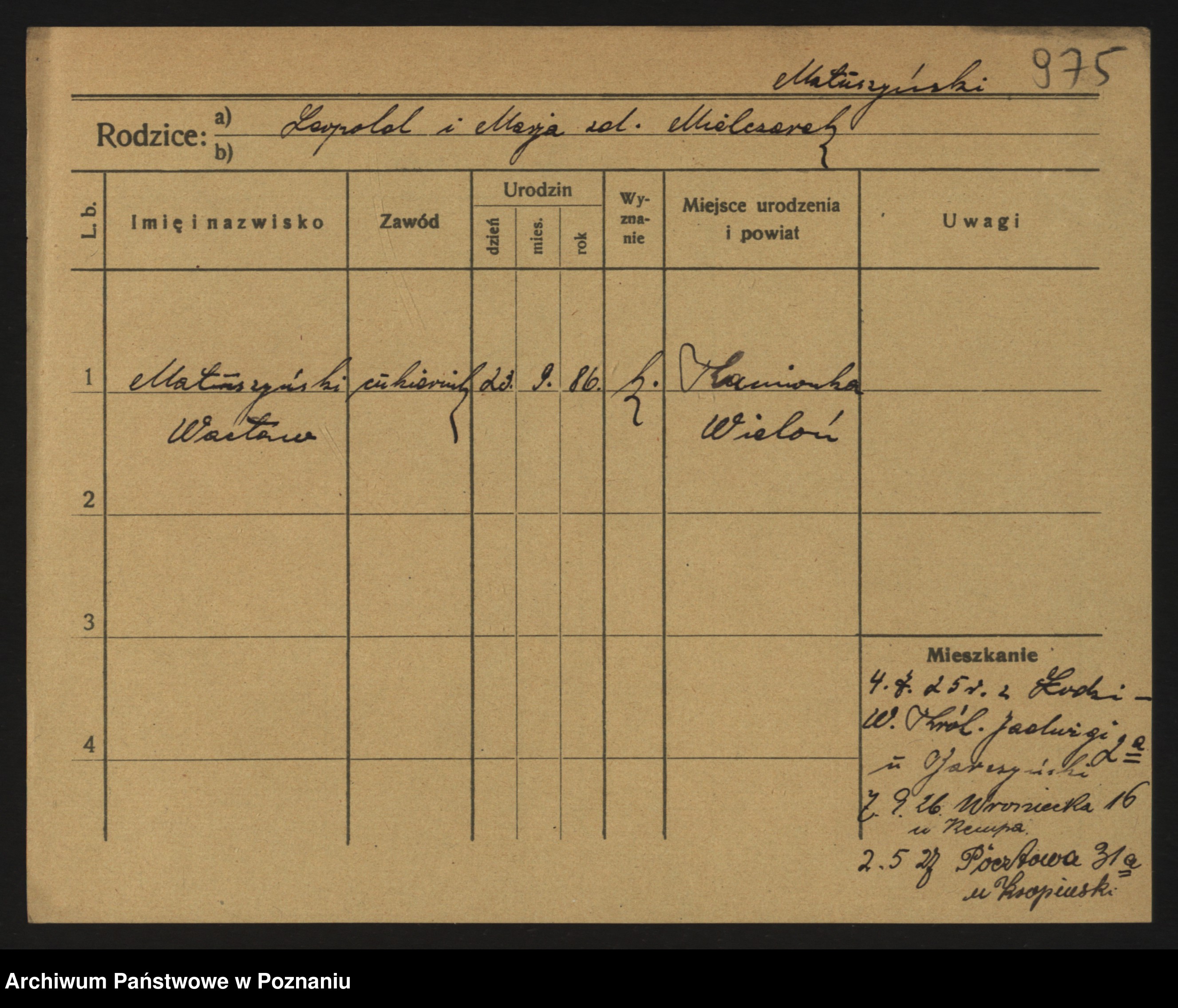 Podgląd karty osobowej dostępny jest po kliknięciu na nazwisko lub ikonkę karty. Można dokonywać powiększenia (ikony na górze) lub przechodzić między kolejnymi skanami (strzałki po bokach).