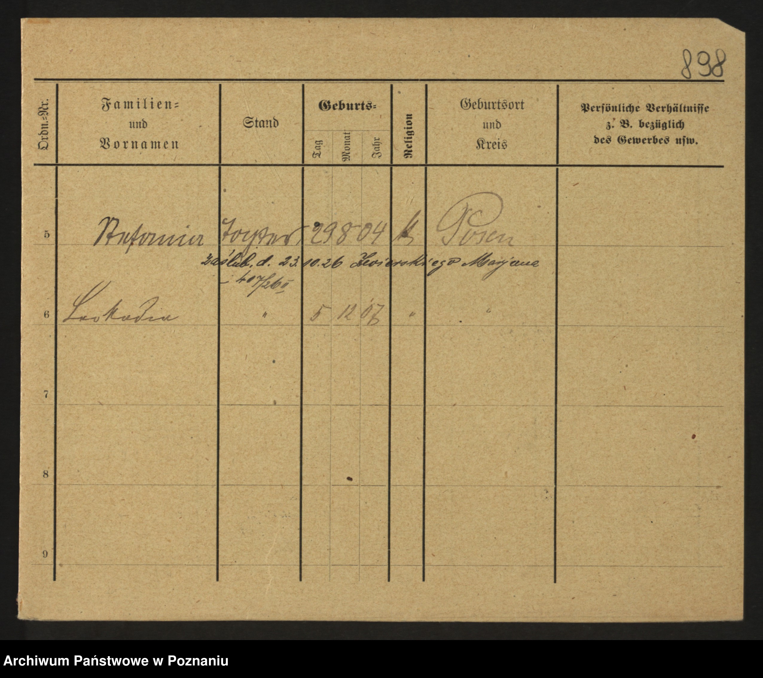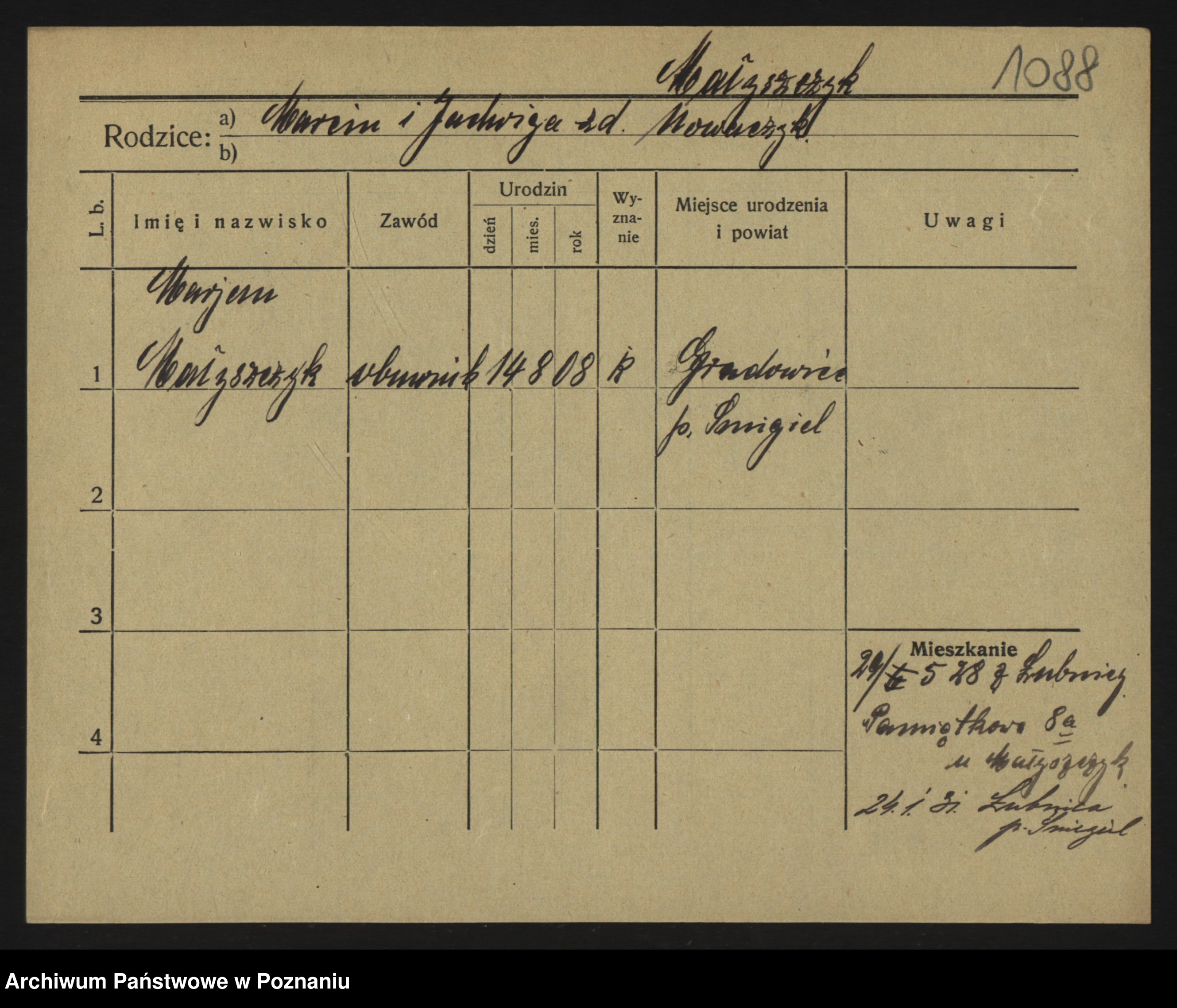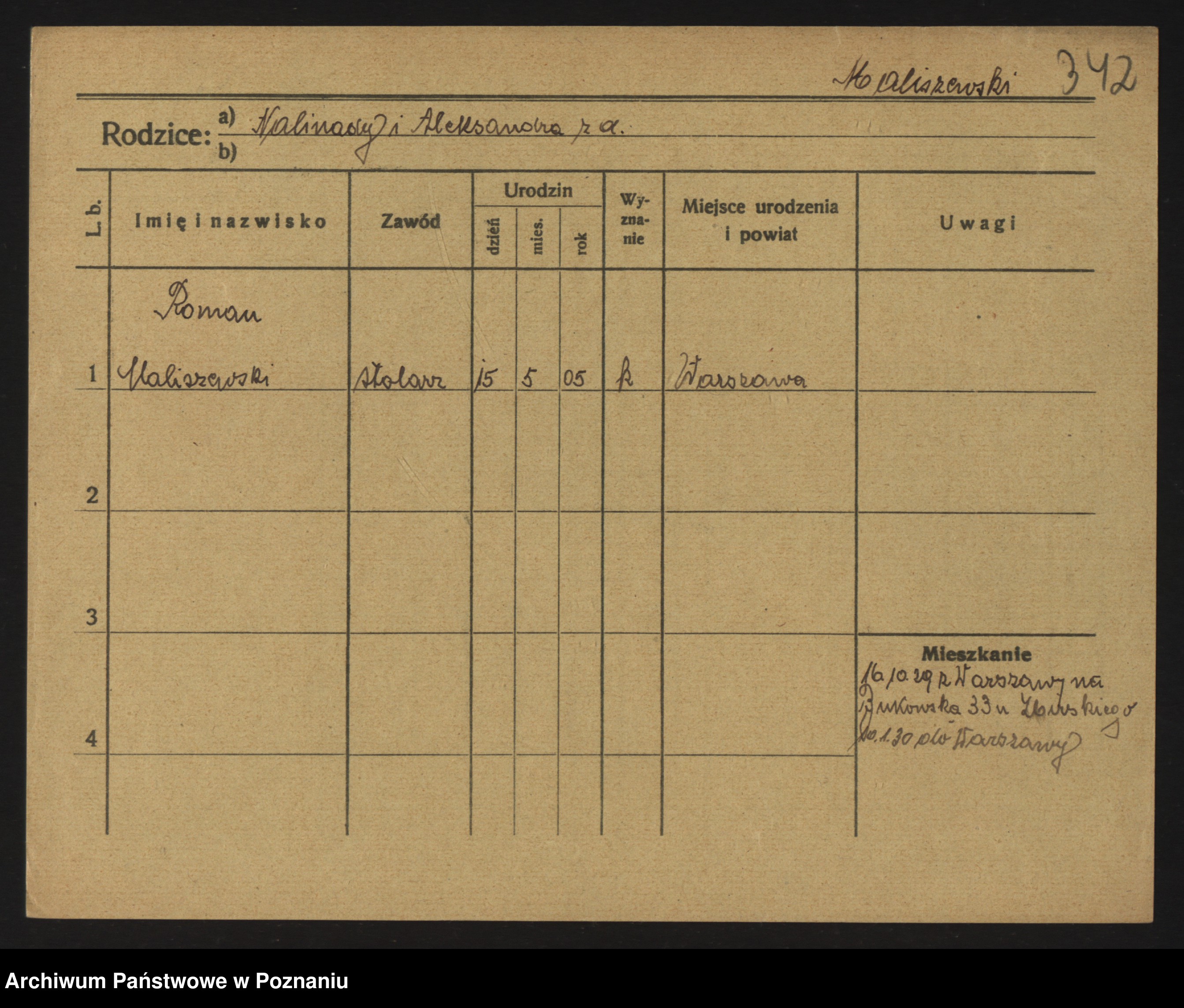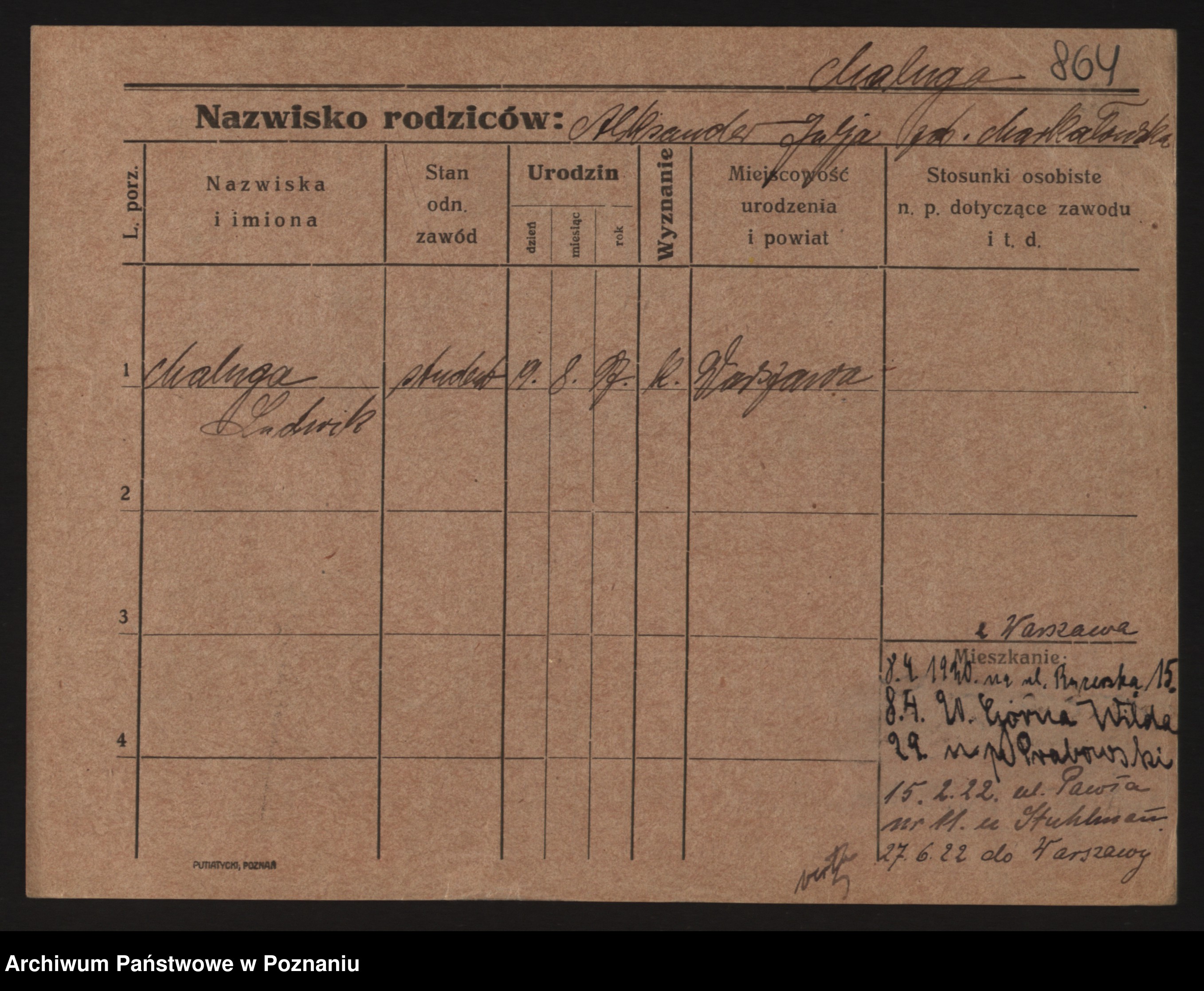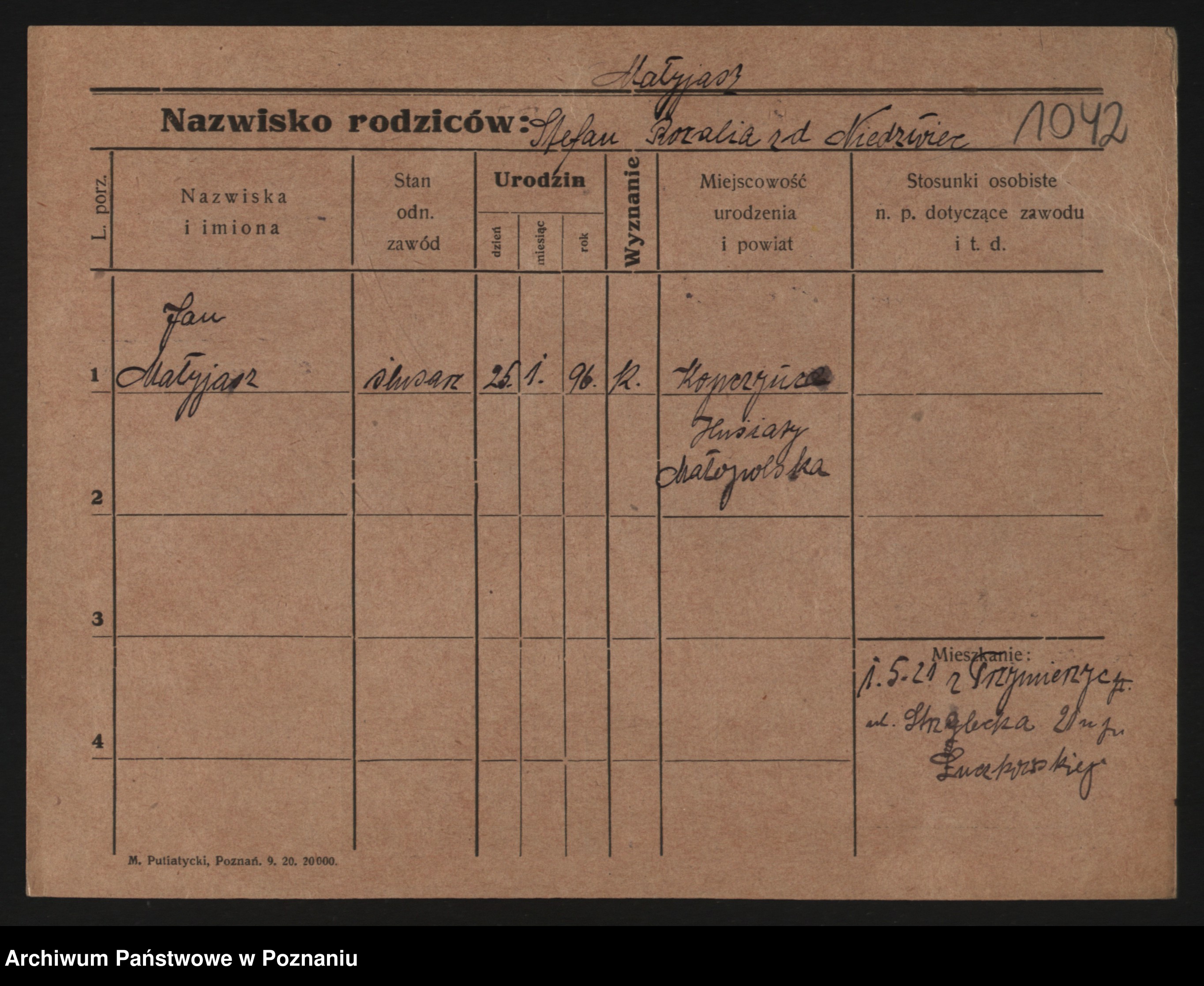 Podgląd karty osobowej dostępny jest po kliknięciu na nazwisko lub ikonkę karty. Można dokonywać powiększenia (ikony na górze) lub przechodzić między kolejnymi skanami (strzałki po bokach).