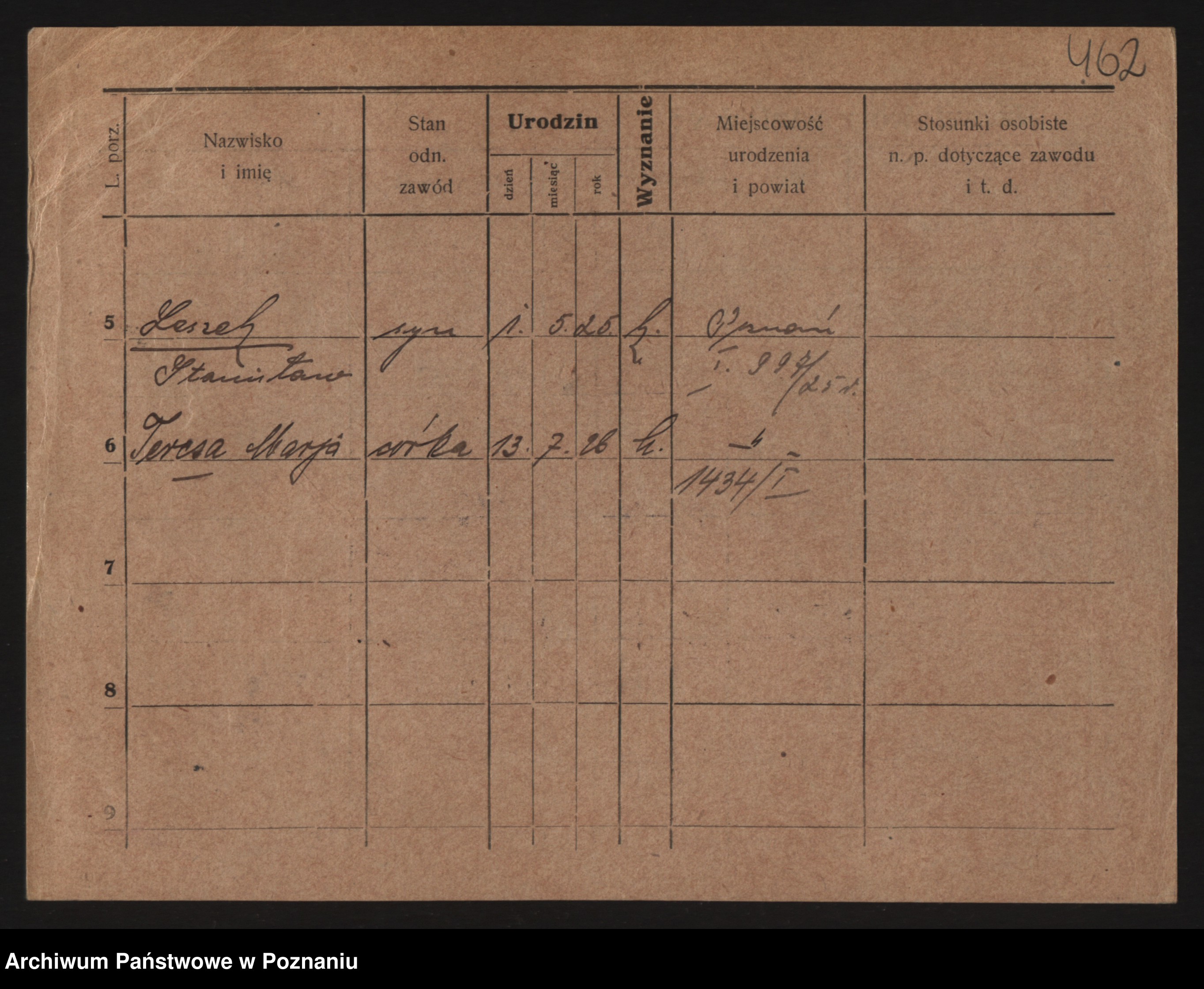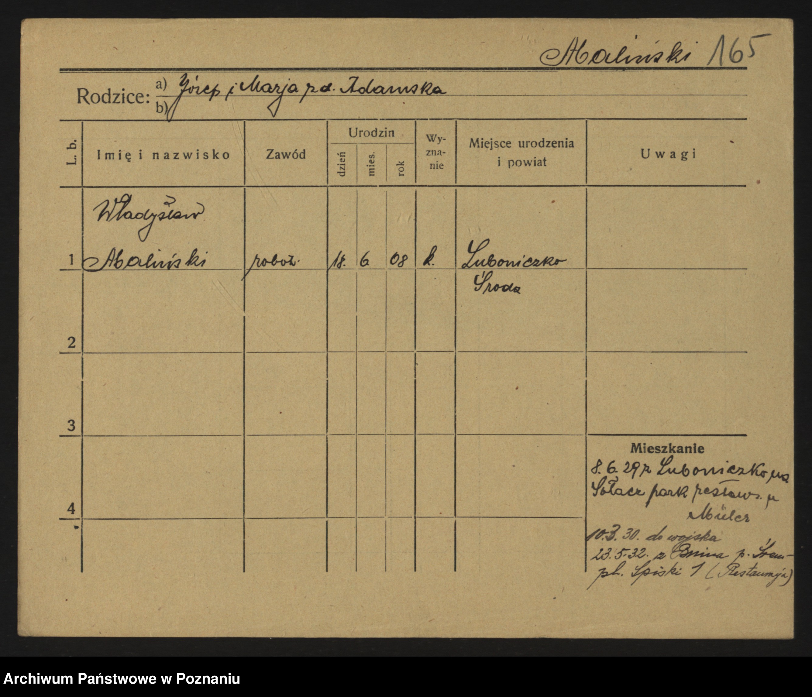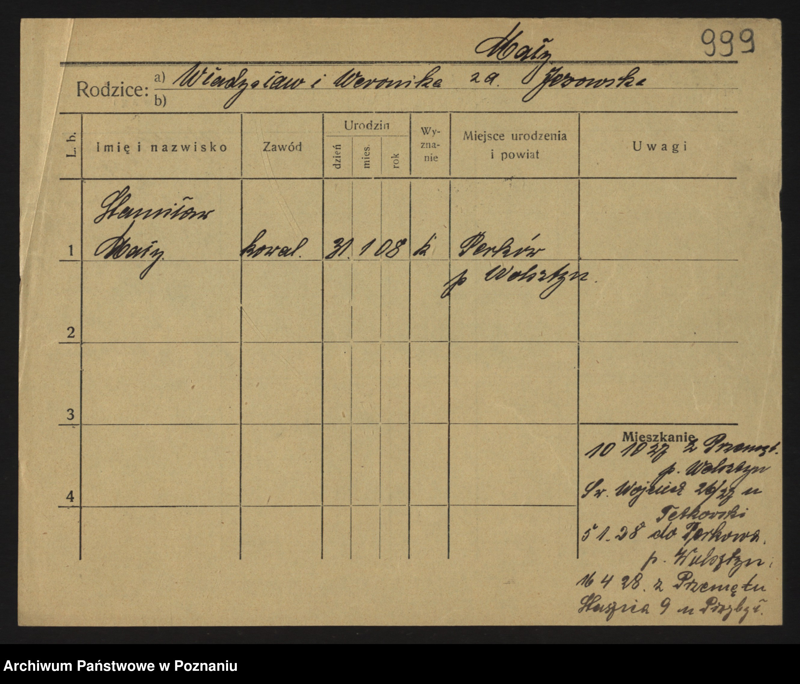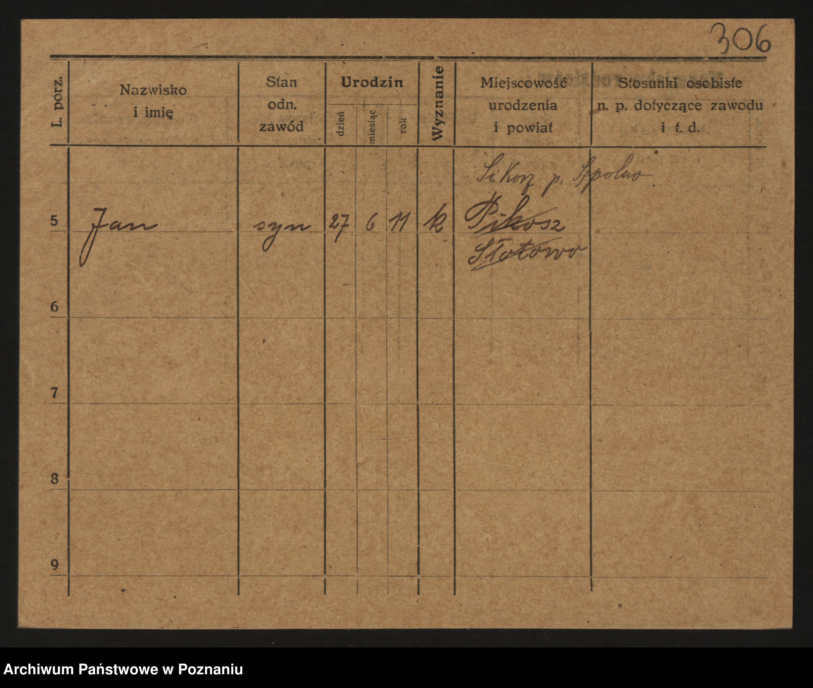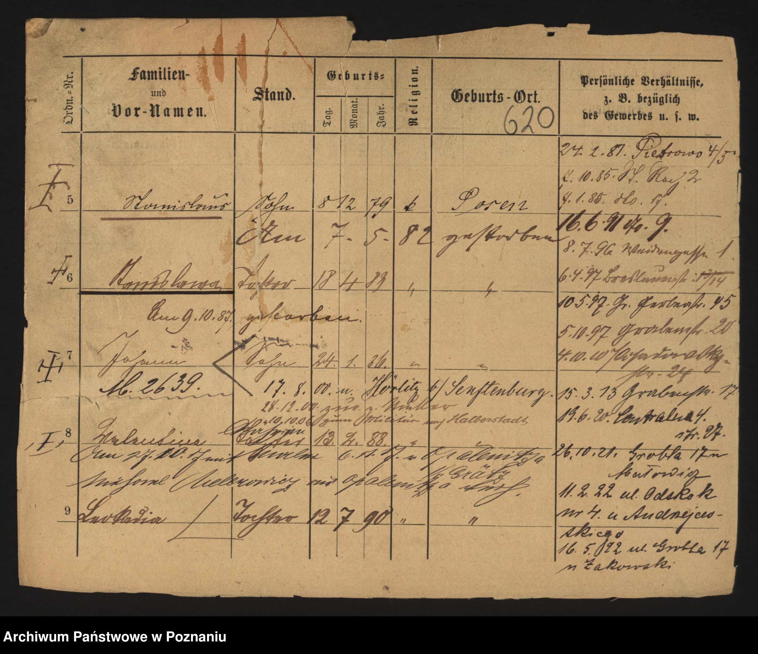 Podgląd karty osobowej dostępny jest po kliknięciu na nazwisko lub ikonkę karty. Można dokonywać powiększenia (ikony na górze) lub przechodzić między kolejnymi skanami (strzałki po bokach).