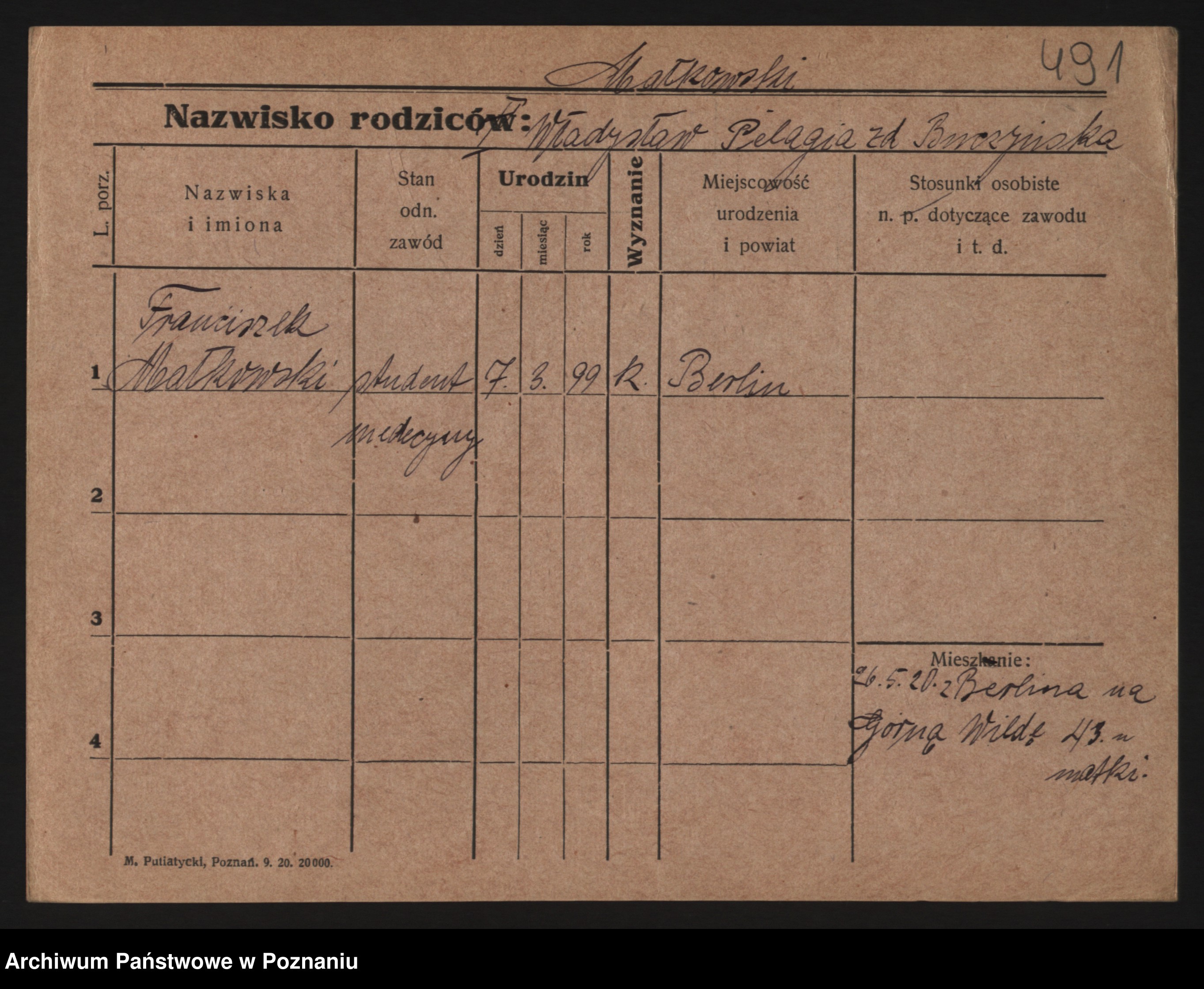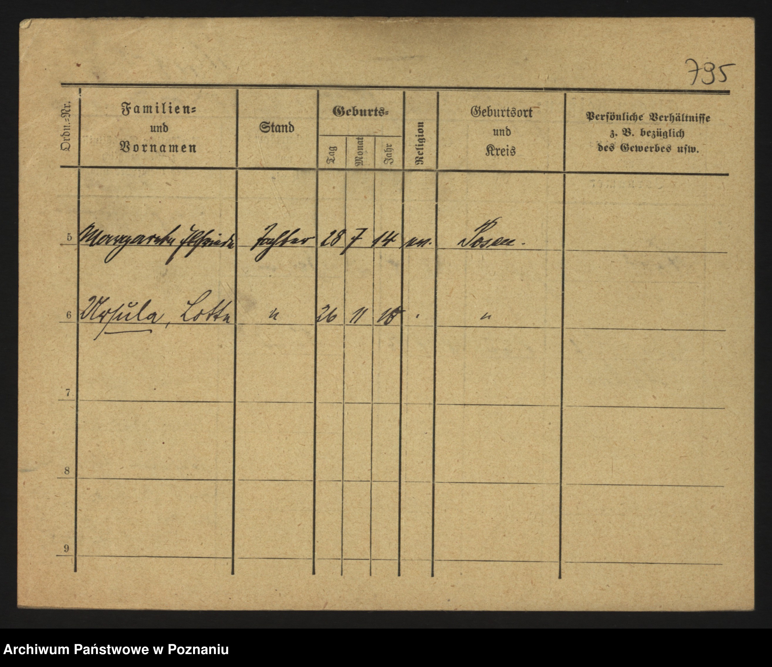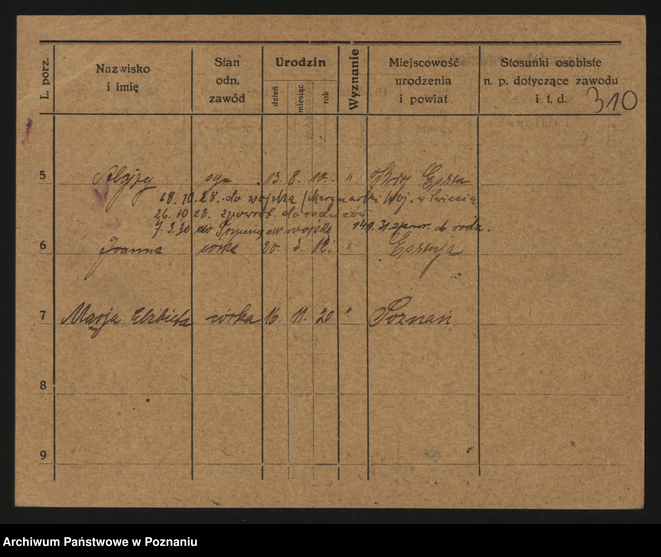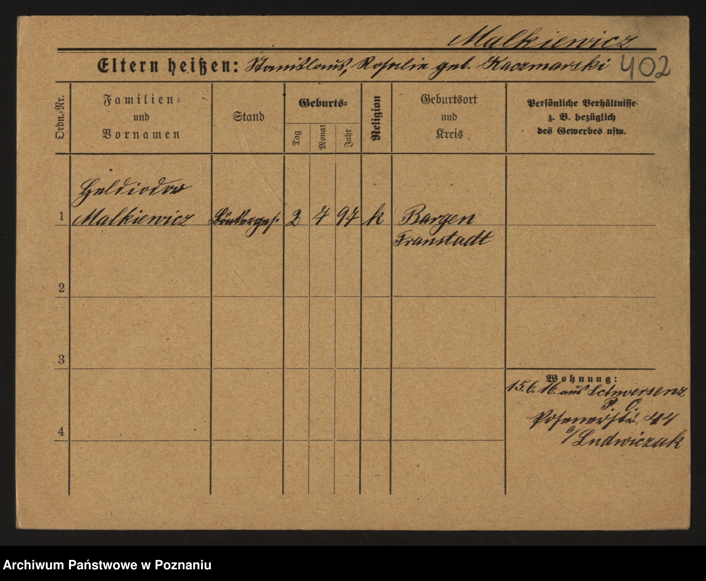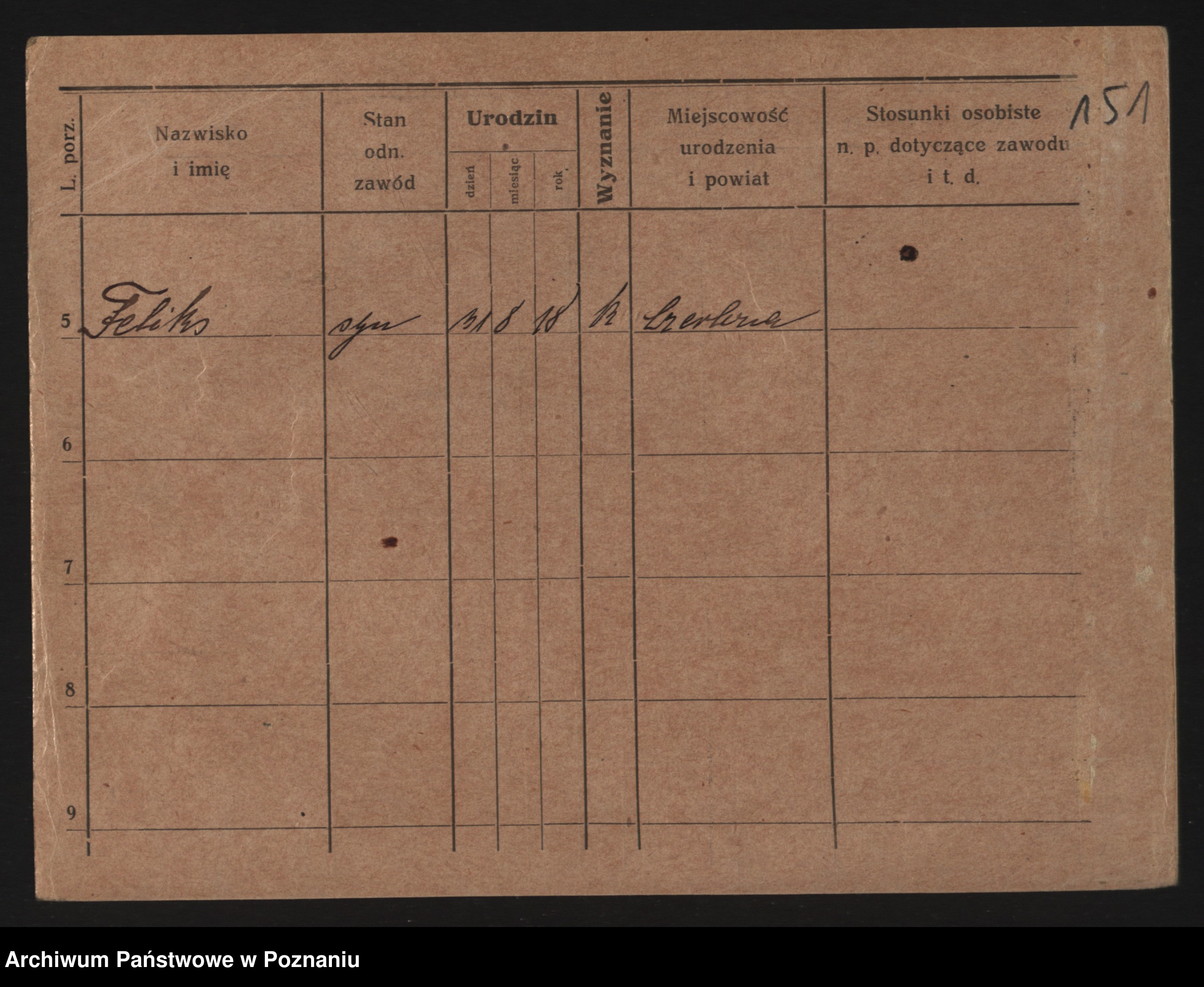 Podgląd karty osobowej dostępny jest po kliknięciu na nazwisko lub ikonkę karty. Można dokonywać powiększenia (ikony na górze) lub przechodzić między kolejnymi skanami (strzałki po bokach).