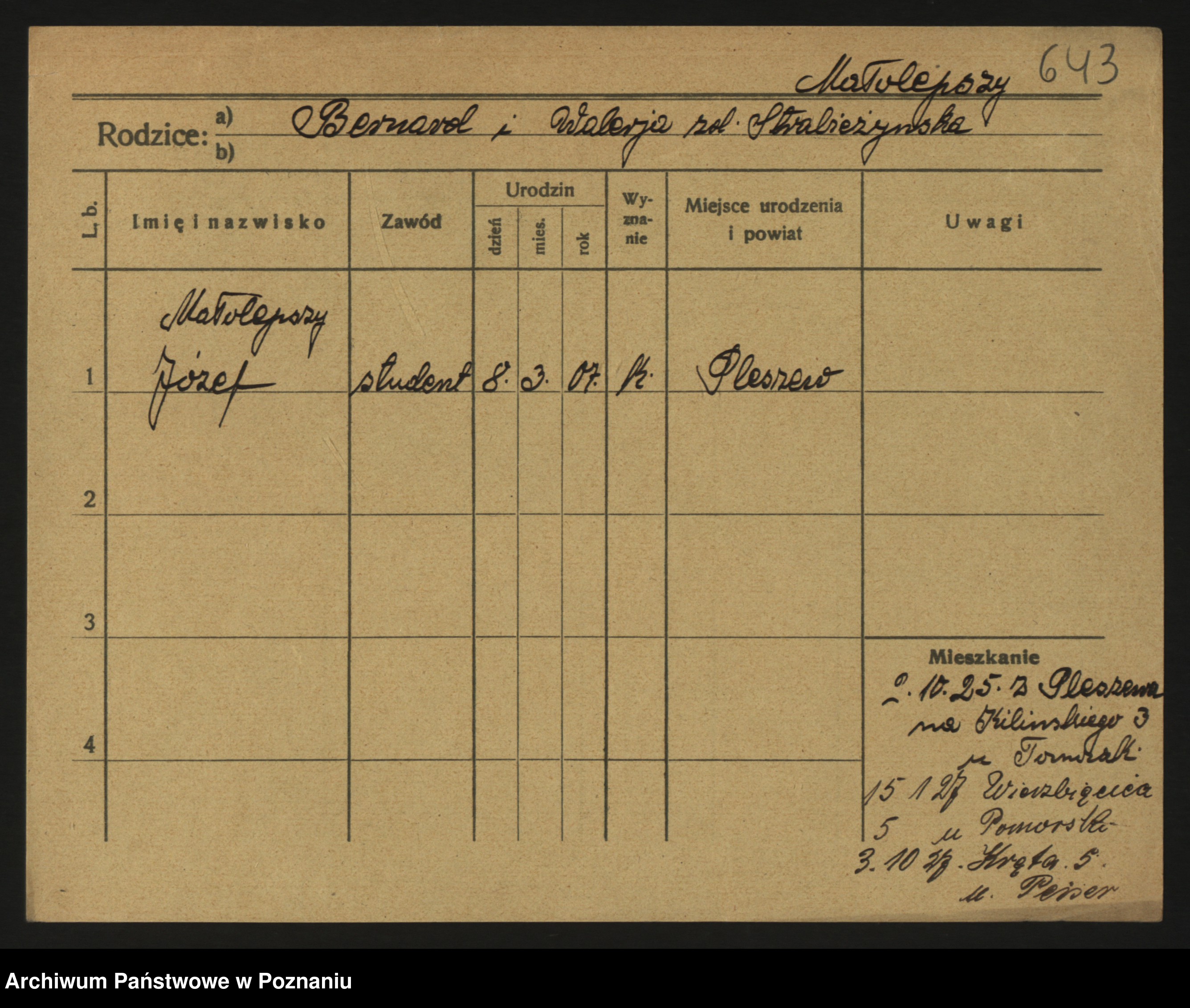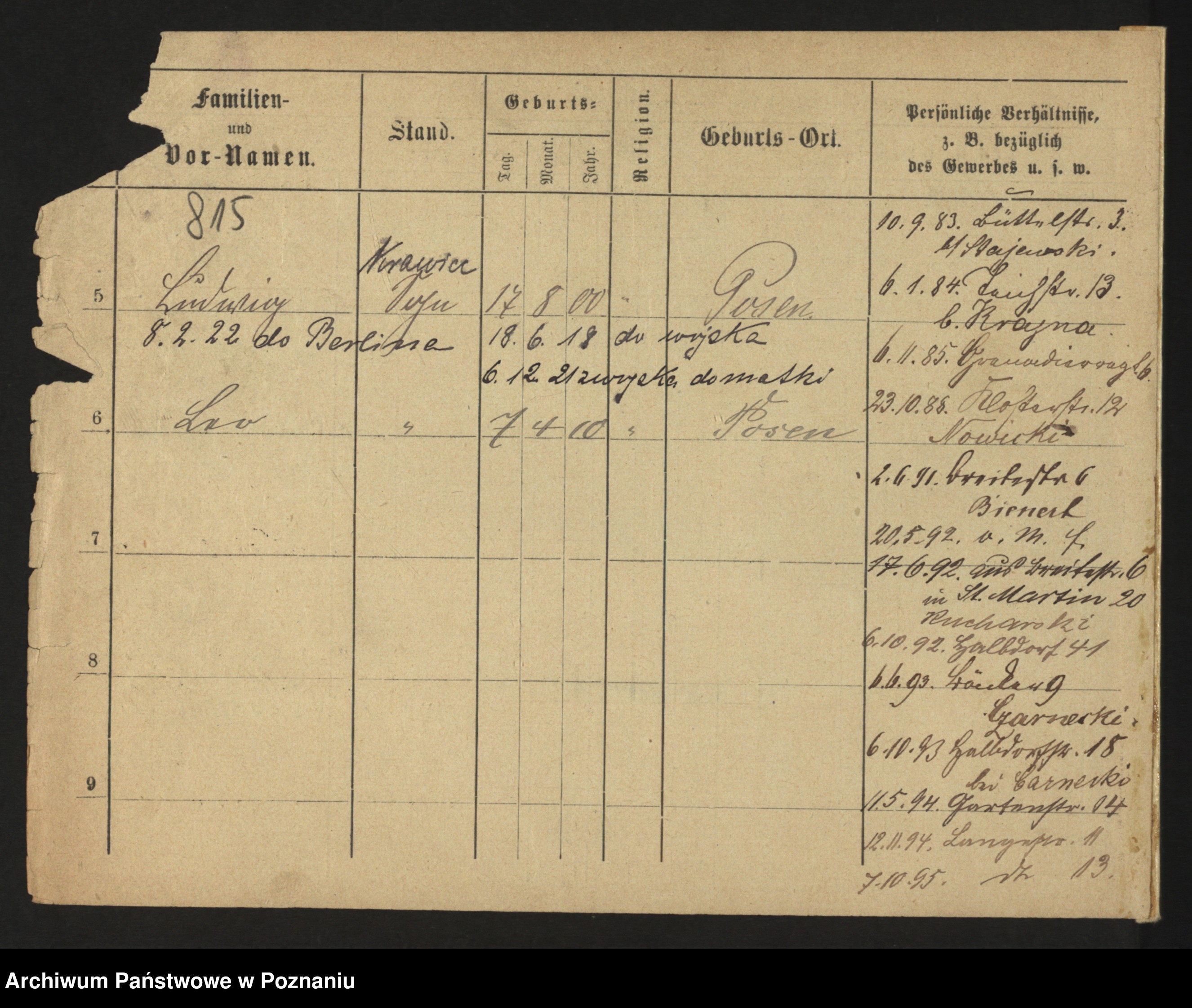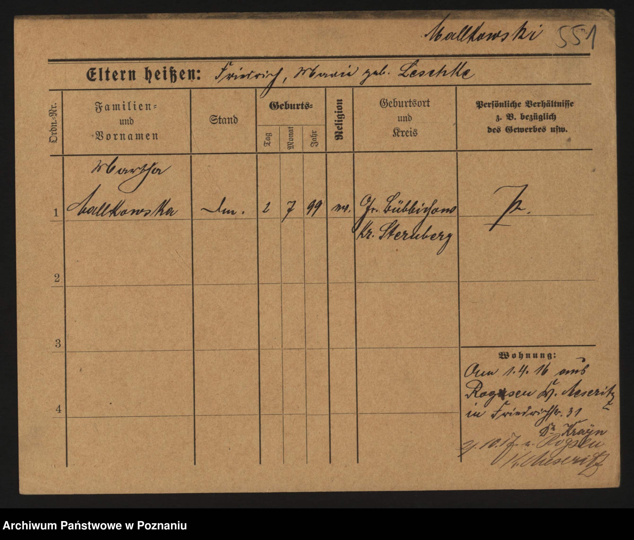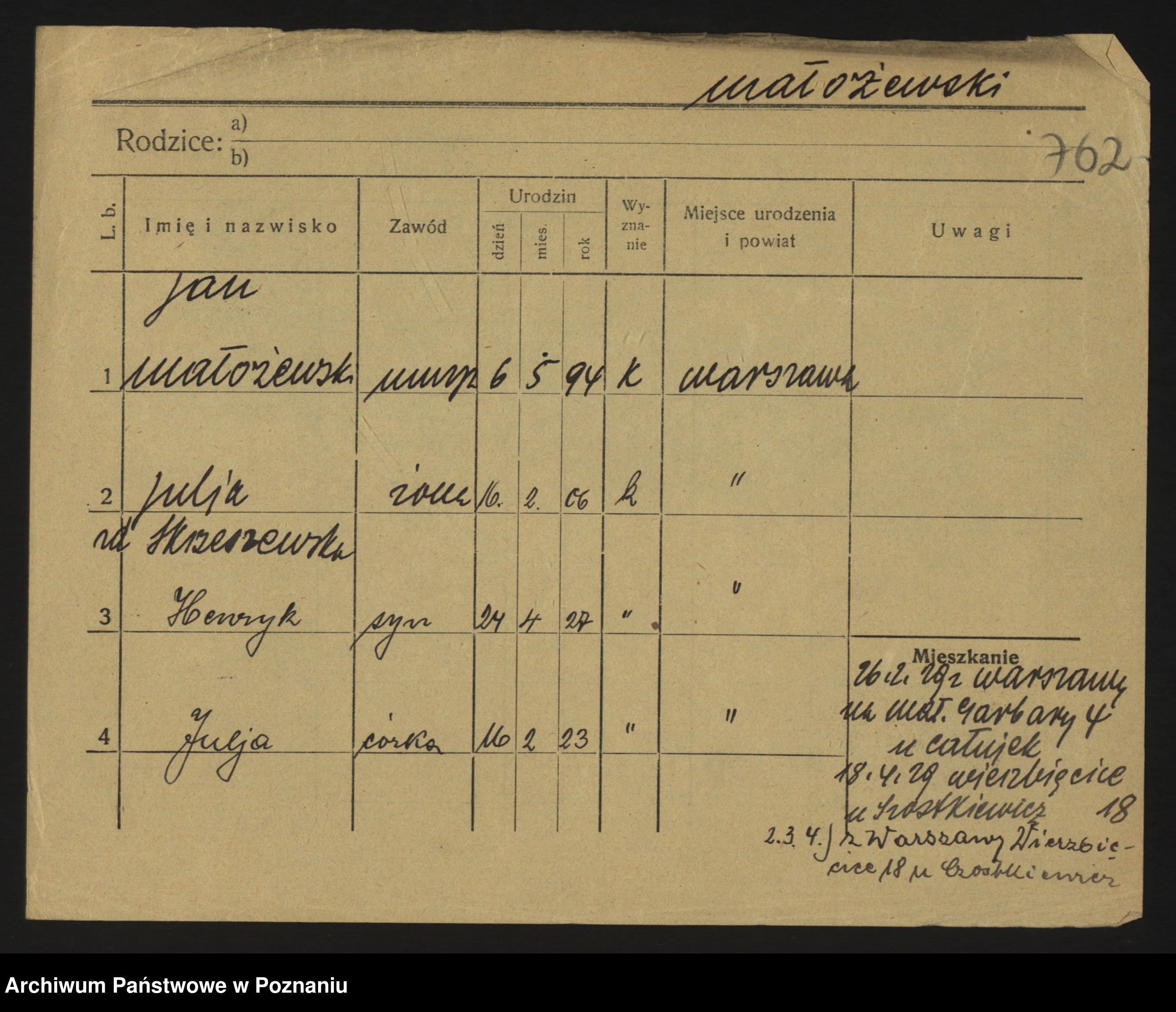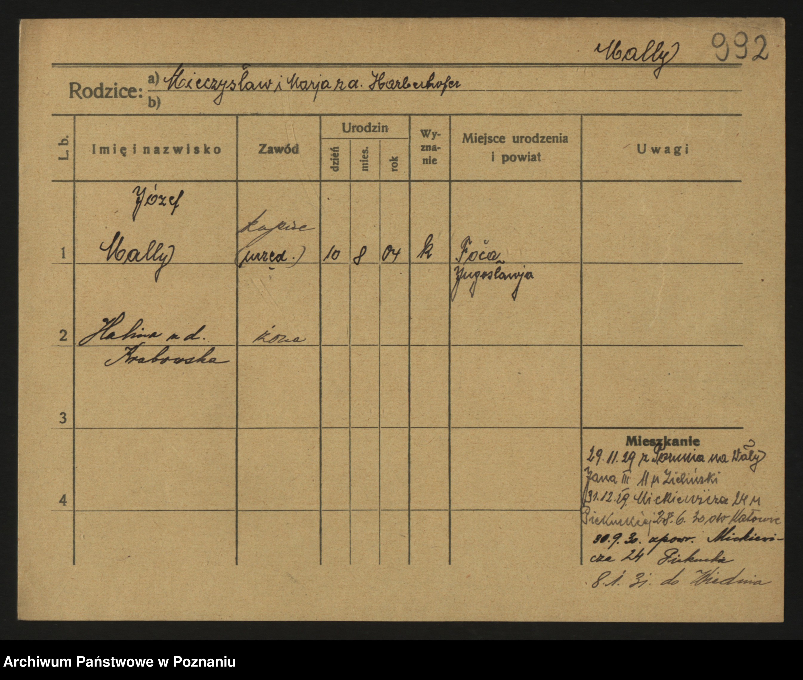 Podgląd karty osobowej dostępny jest po kliknięciu na nazwisko lub ikonkę karty. Można dokonywać powiększenia (ikony na górze) lub przechodzić między kolejnymi skanami (strzałki po bokach).