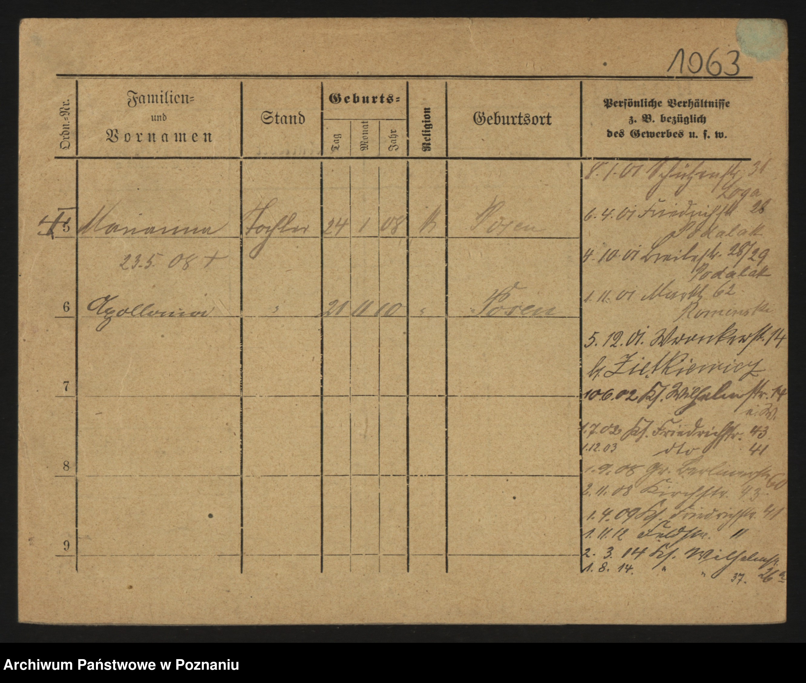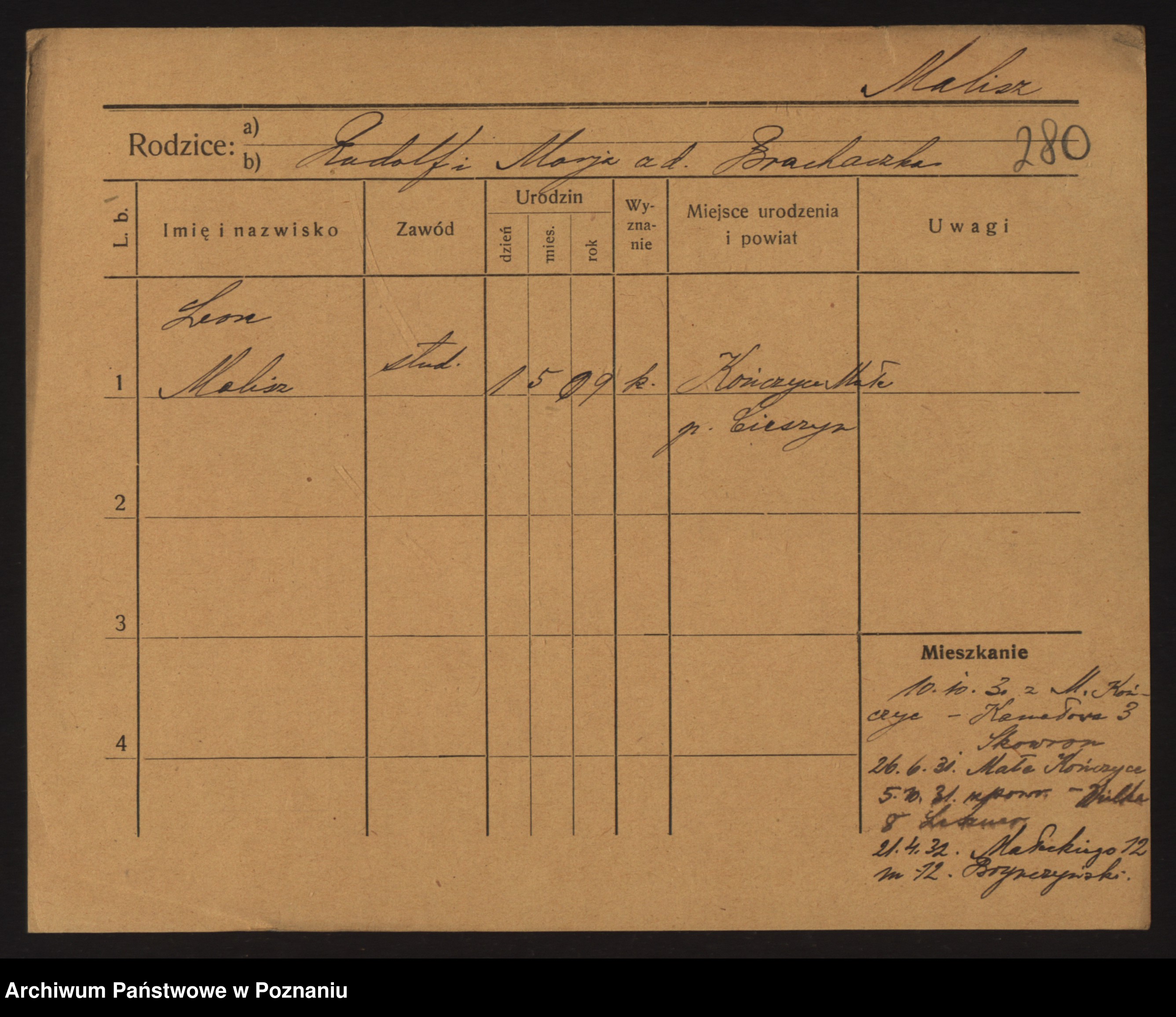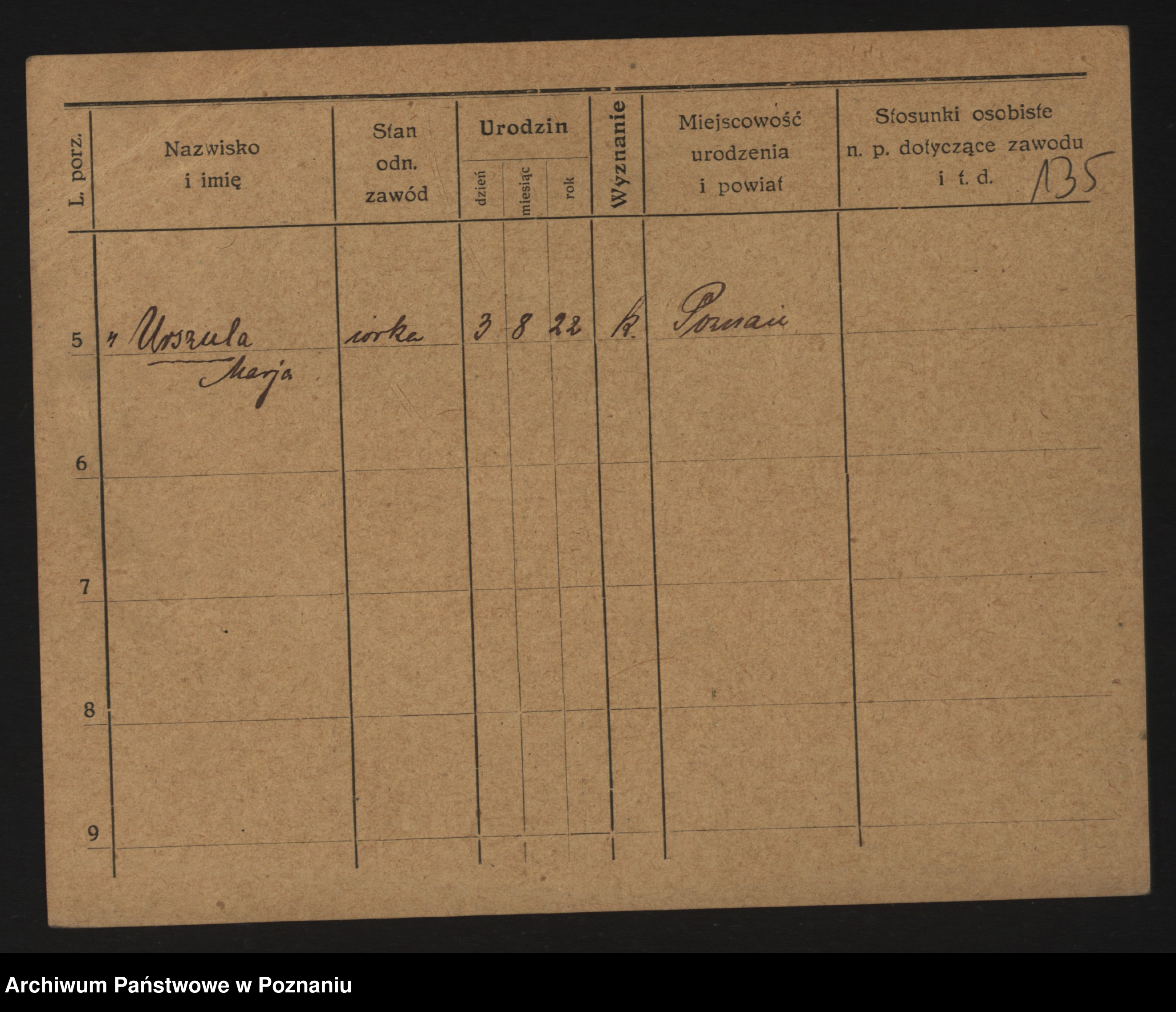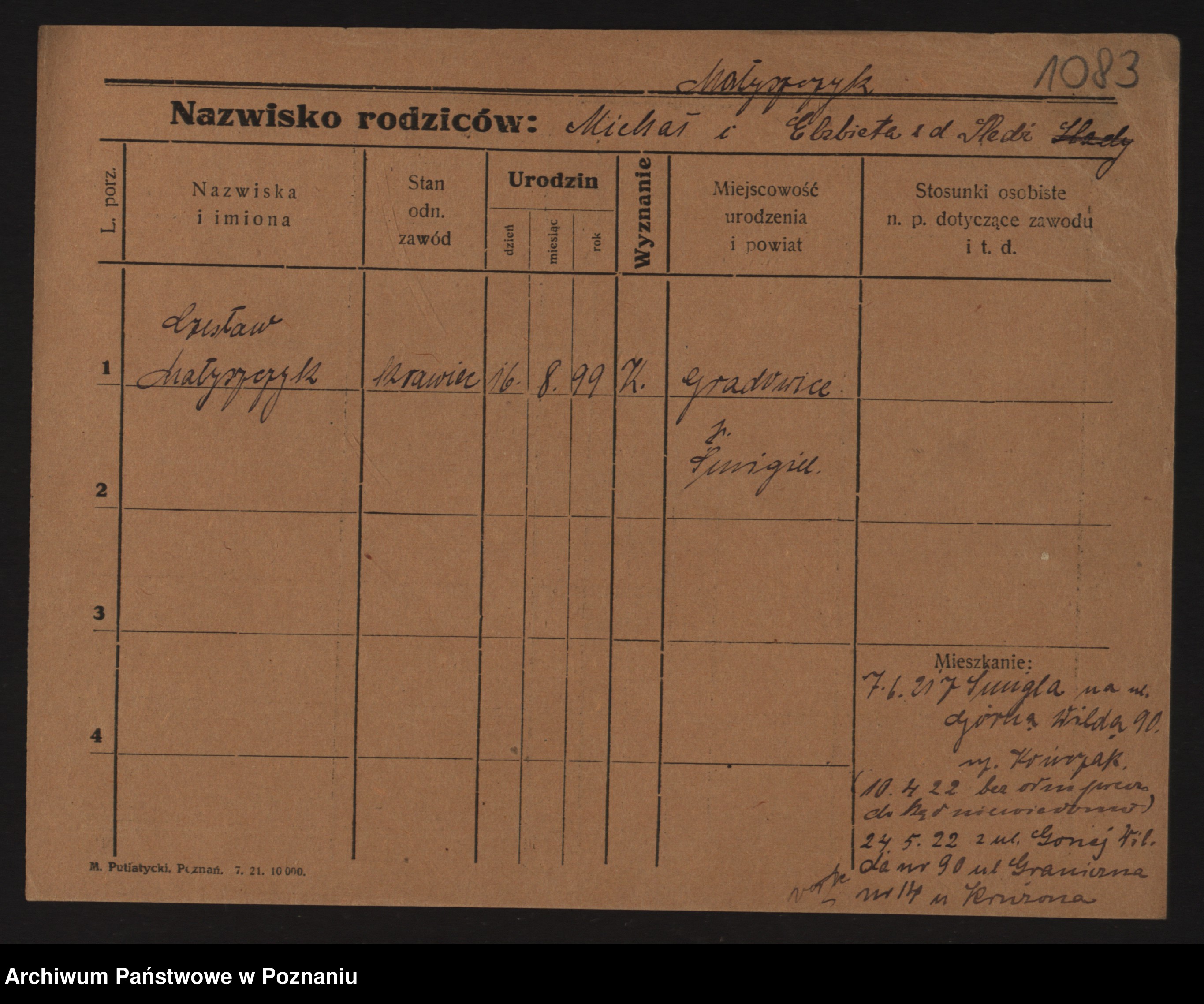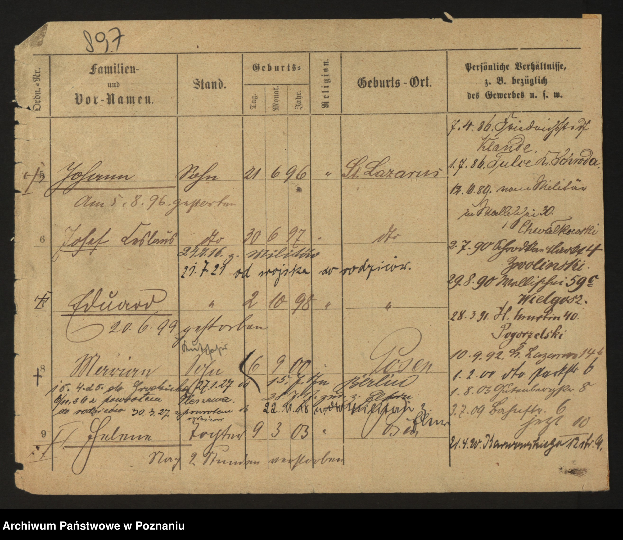 Podgląd karty osobowej dostępny jest po kliknięciu na nazwisko lub ikonkę karty. Można dokonywać powiększenia (ikony na górze) lub przechodzić między kolejnymi skanami (strzałki po bokach).