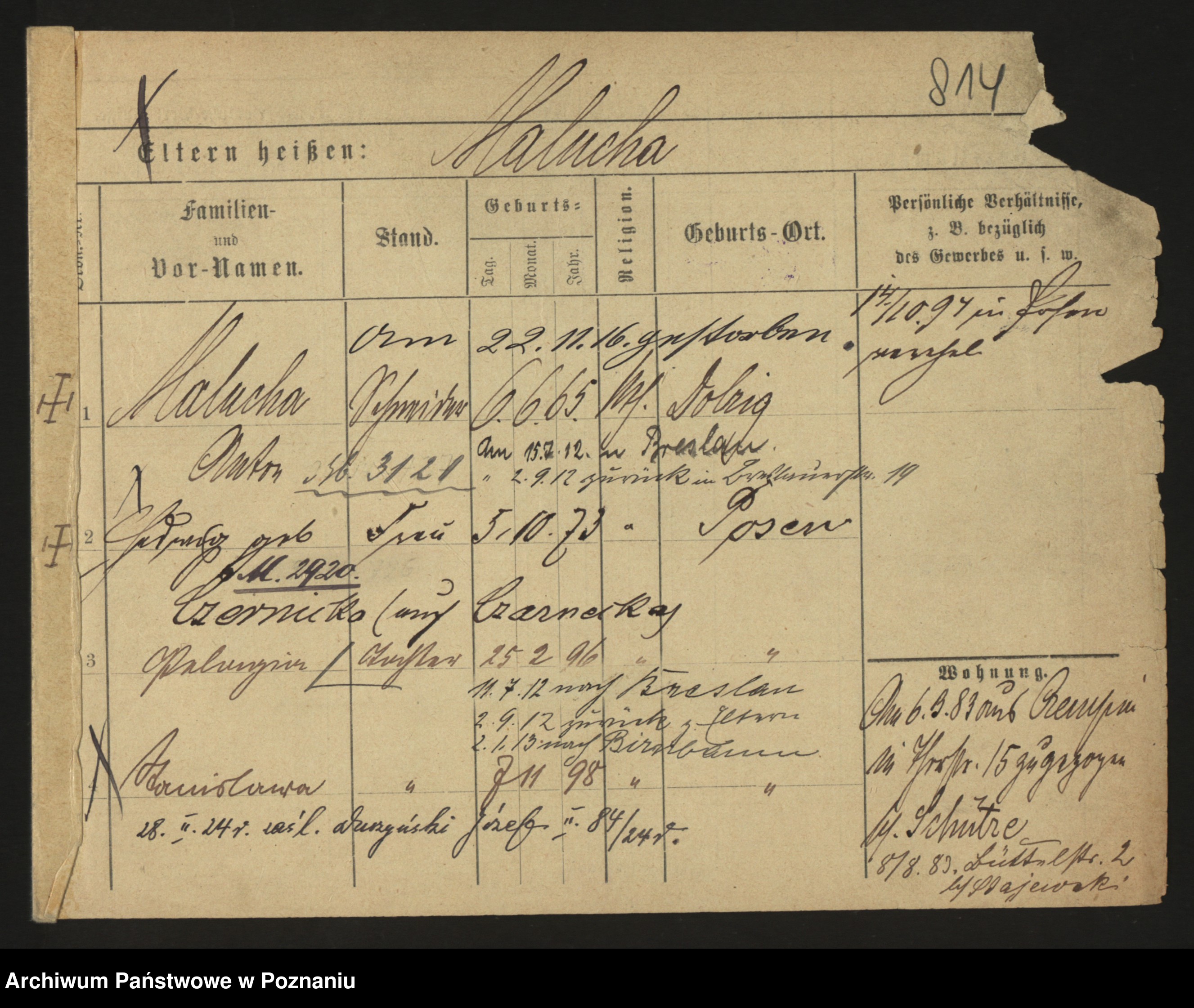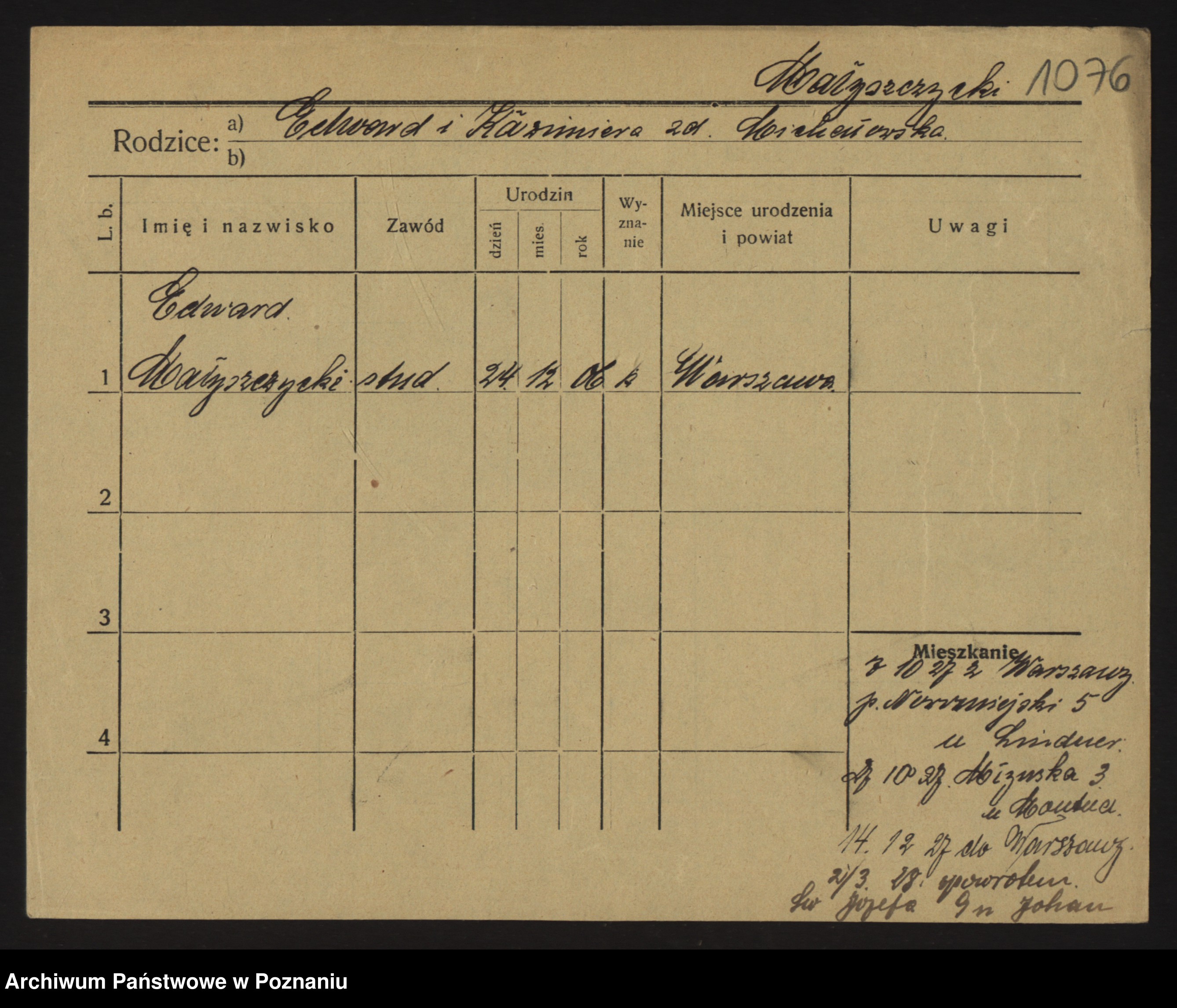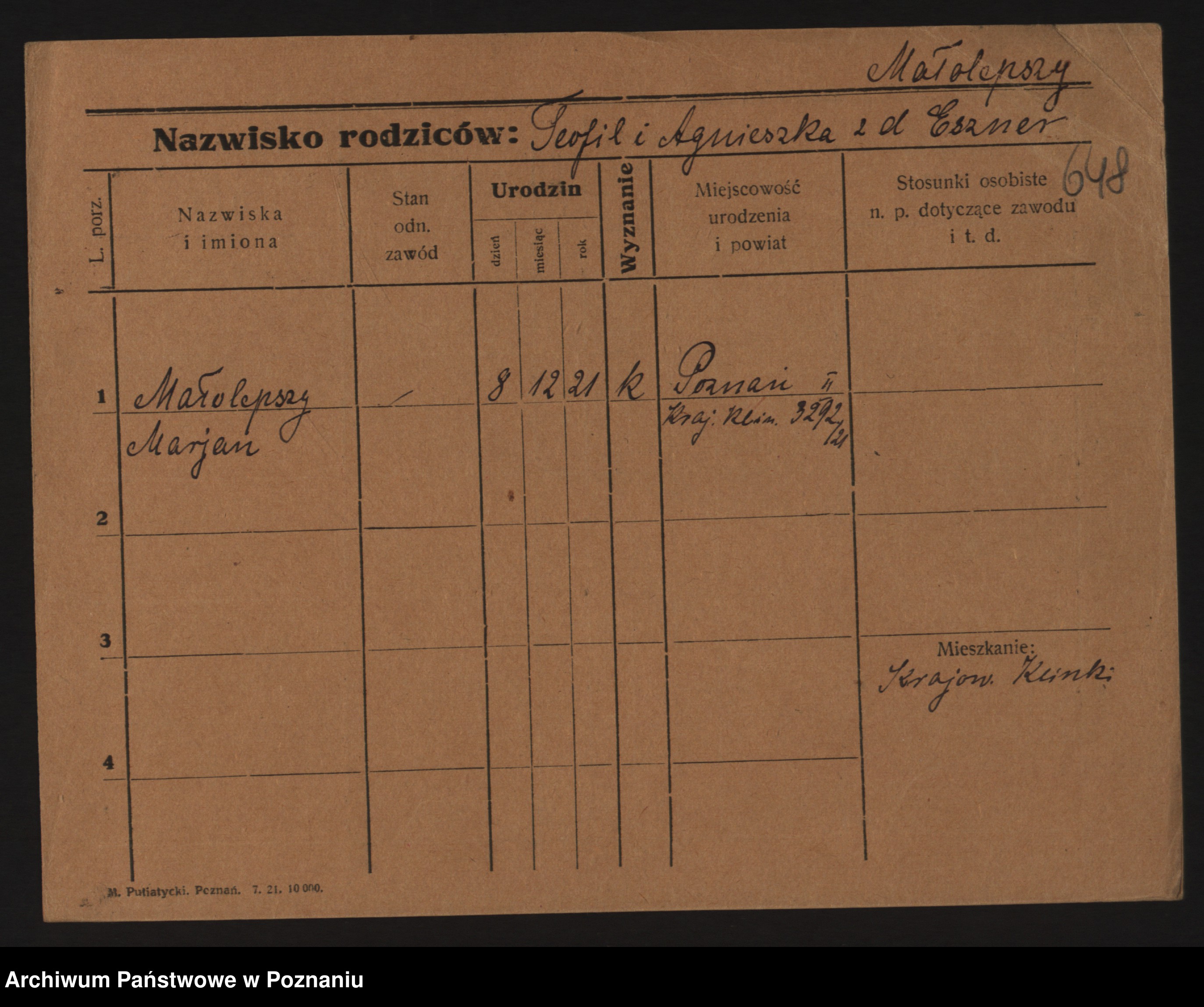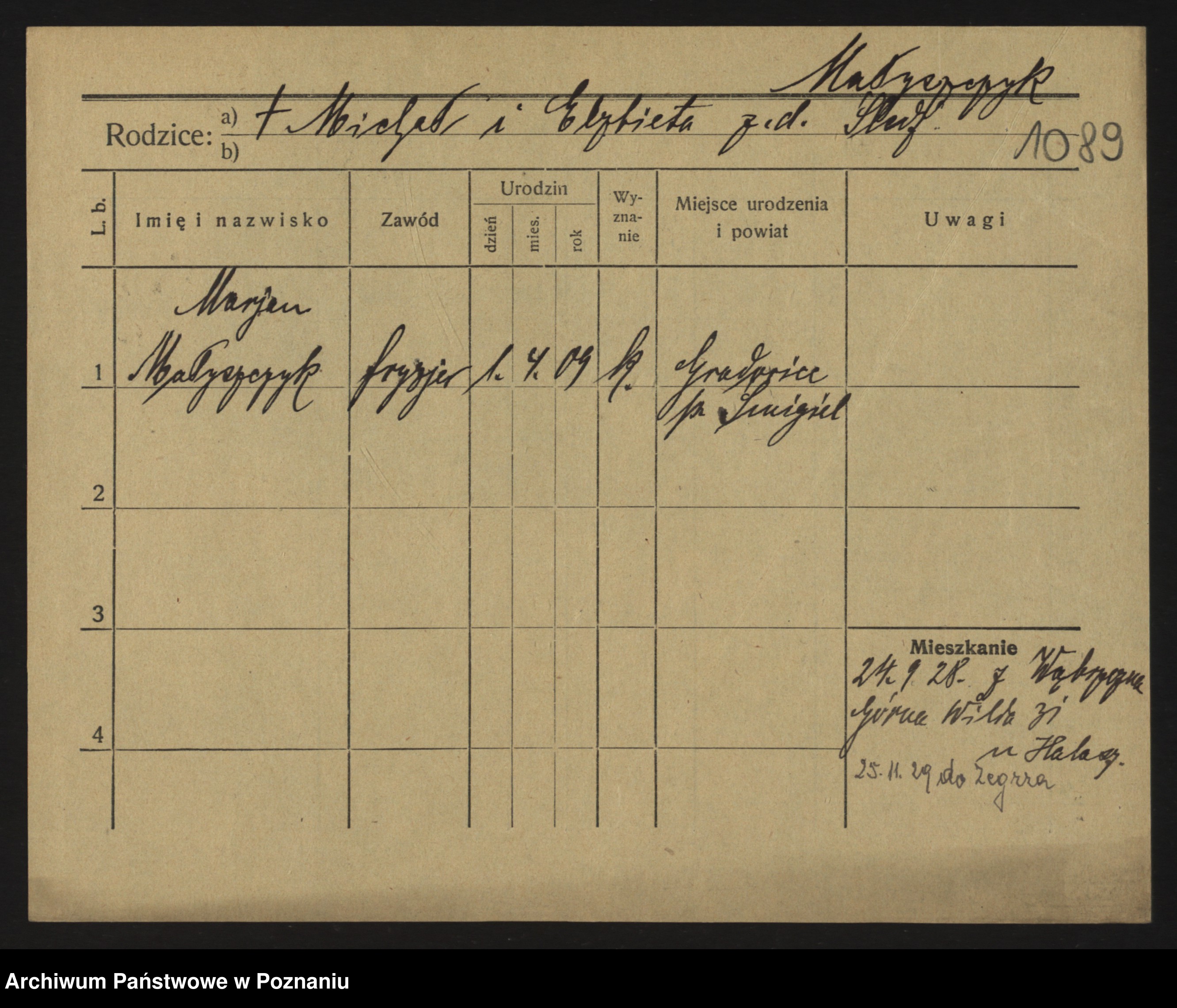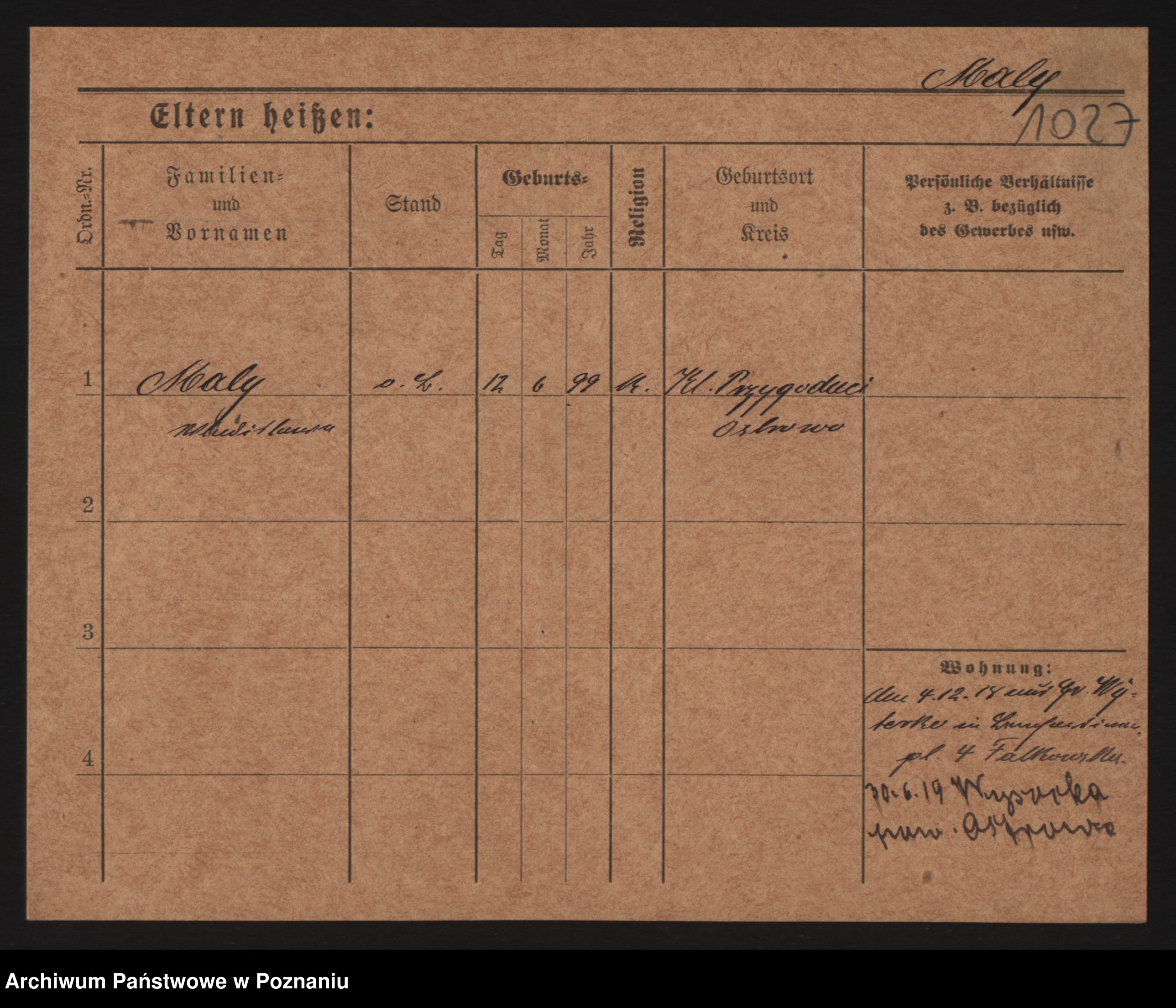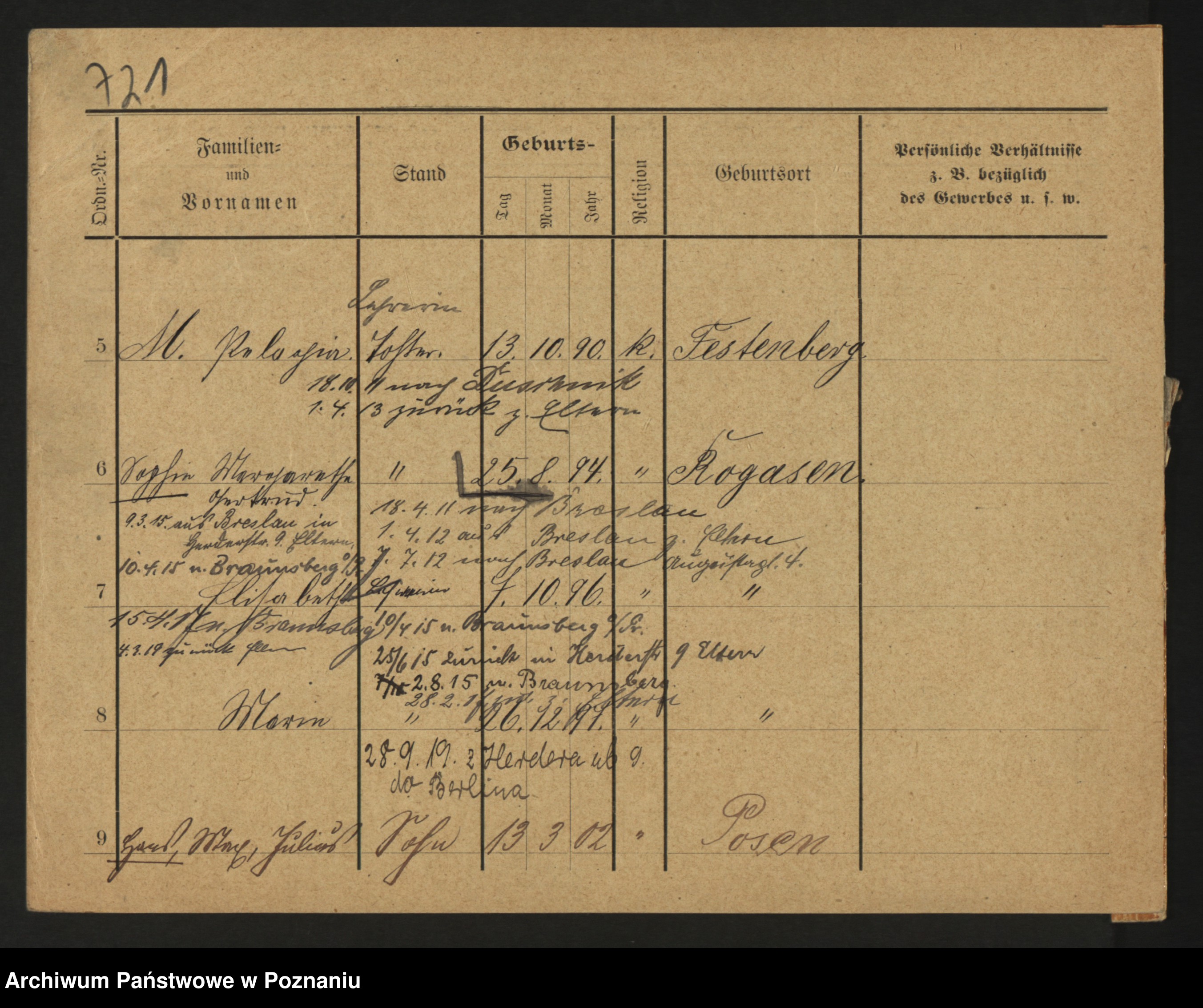 Podgląd karty osobowej dostępny jest po kliknięciu na nazwisko lub ikonkę karty. Można dokonywać powiększenia (ikony na górze) lub przechodzić między kolejnymi skanami (strzałki po bokach).