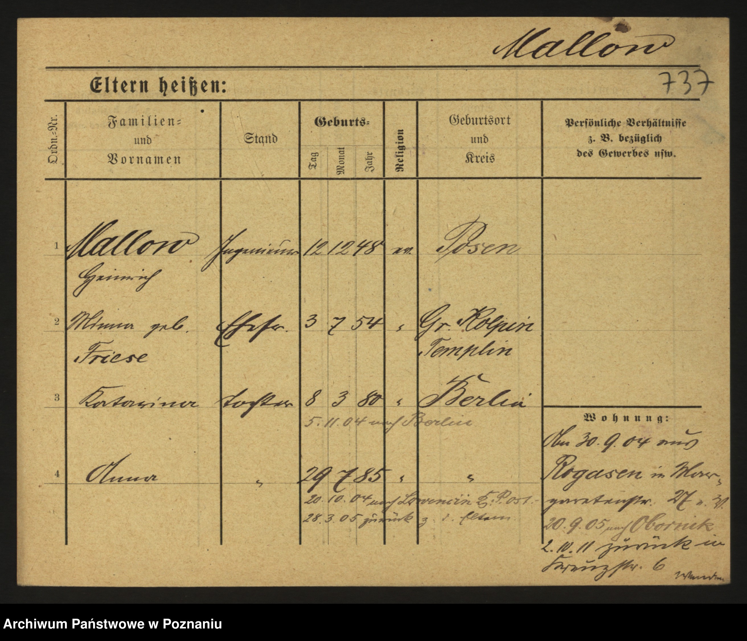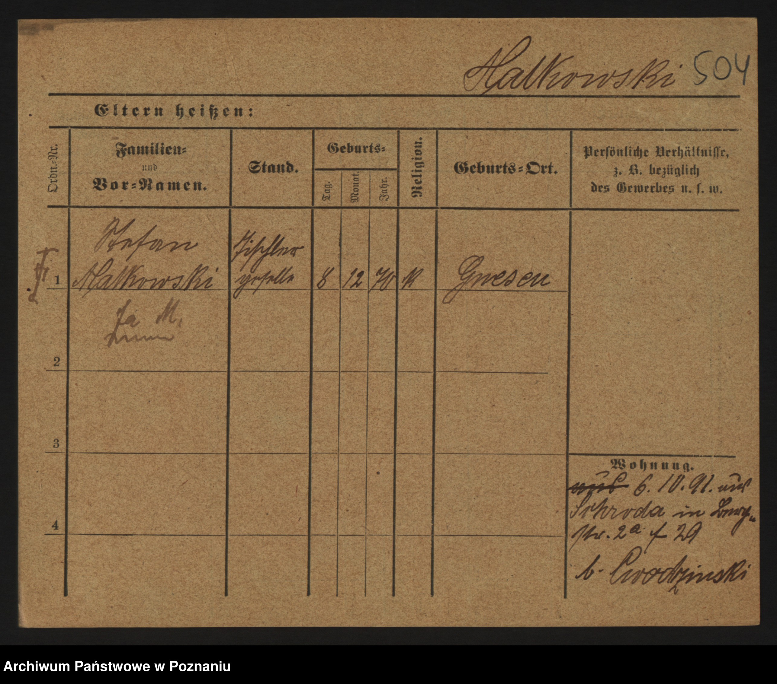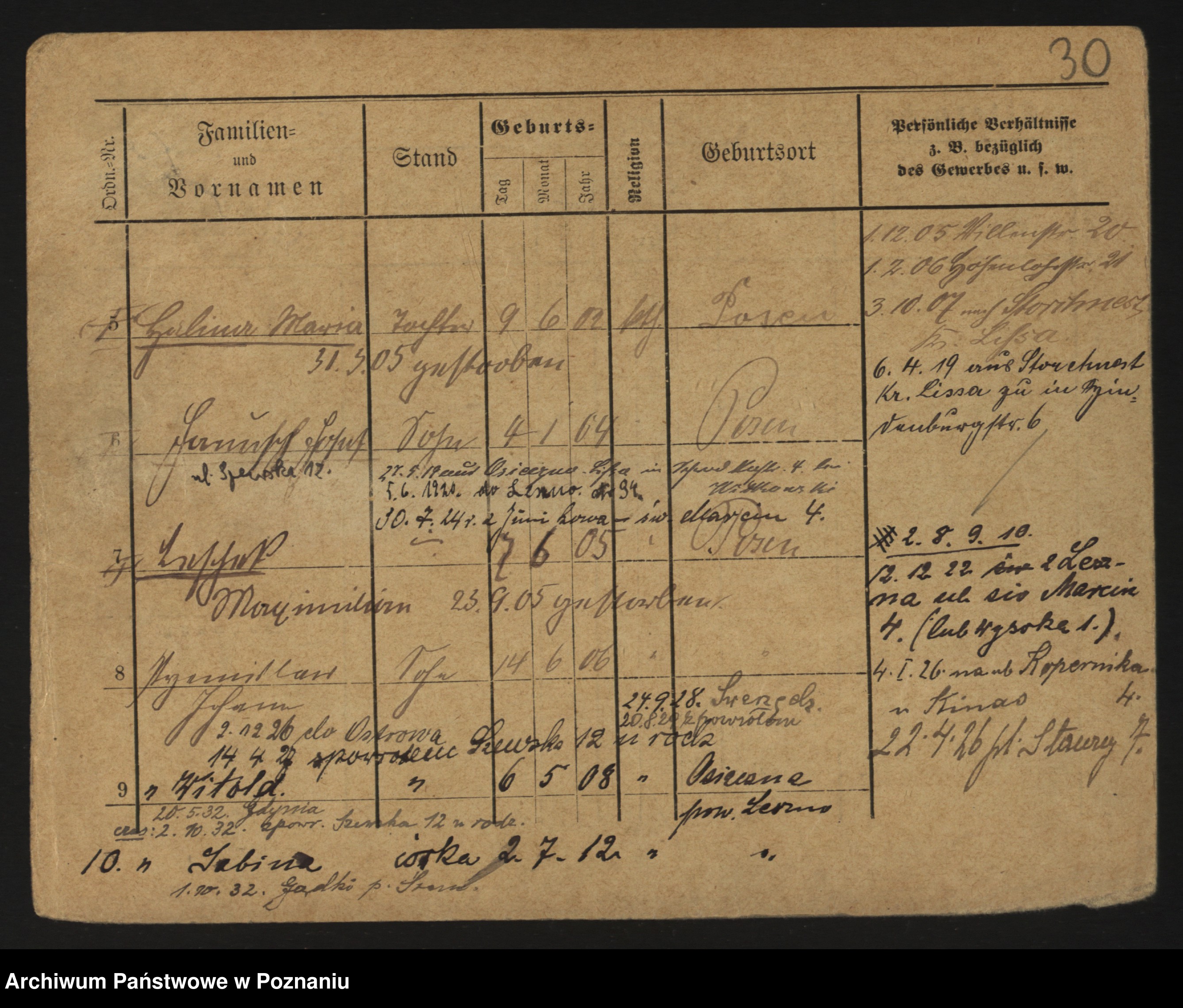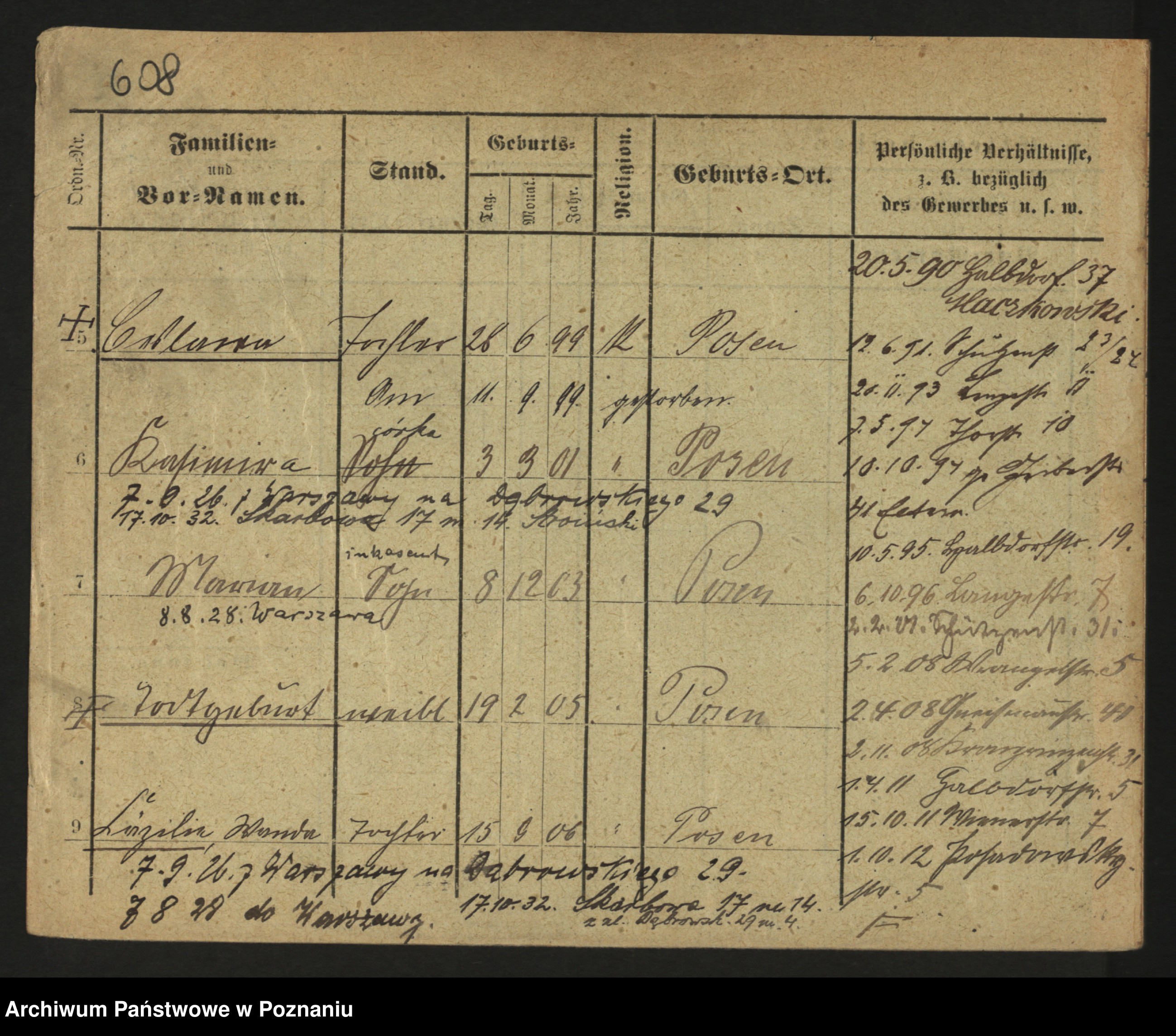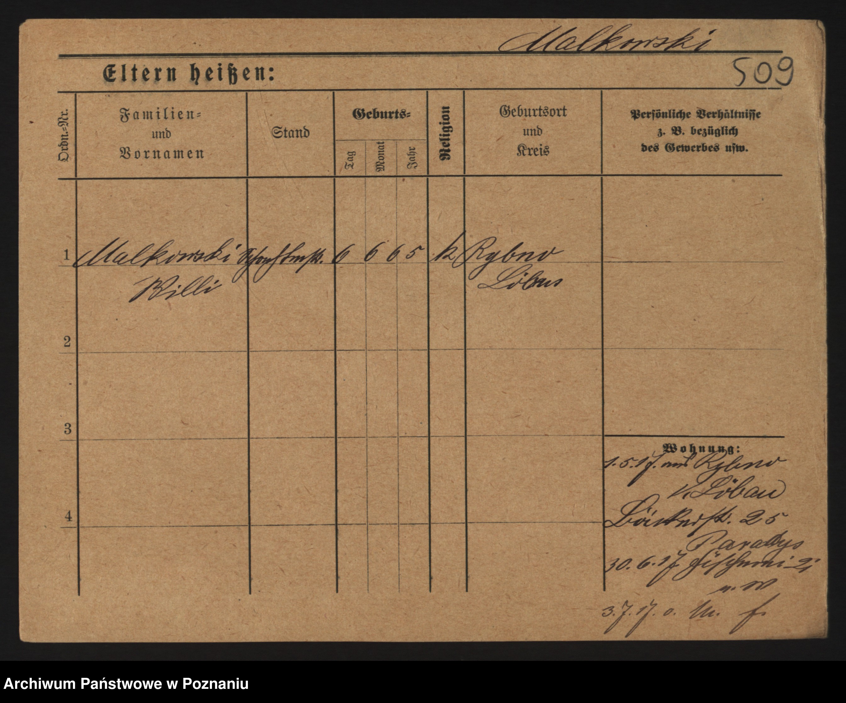Podgląd karty osobowej dostępny jest po kliknięciu na nazwisko lub ikonkę karty. Można dokonywać powiększenia (ikony na górze) lub przechodzić między kolejnymi skanami (strzałki po bokach).