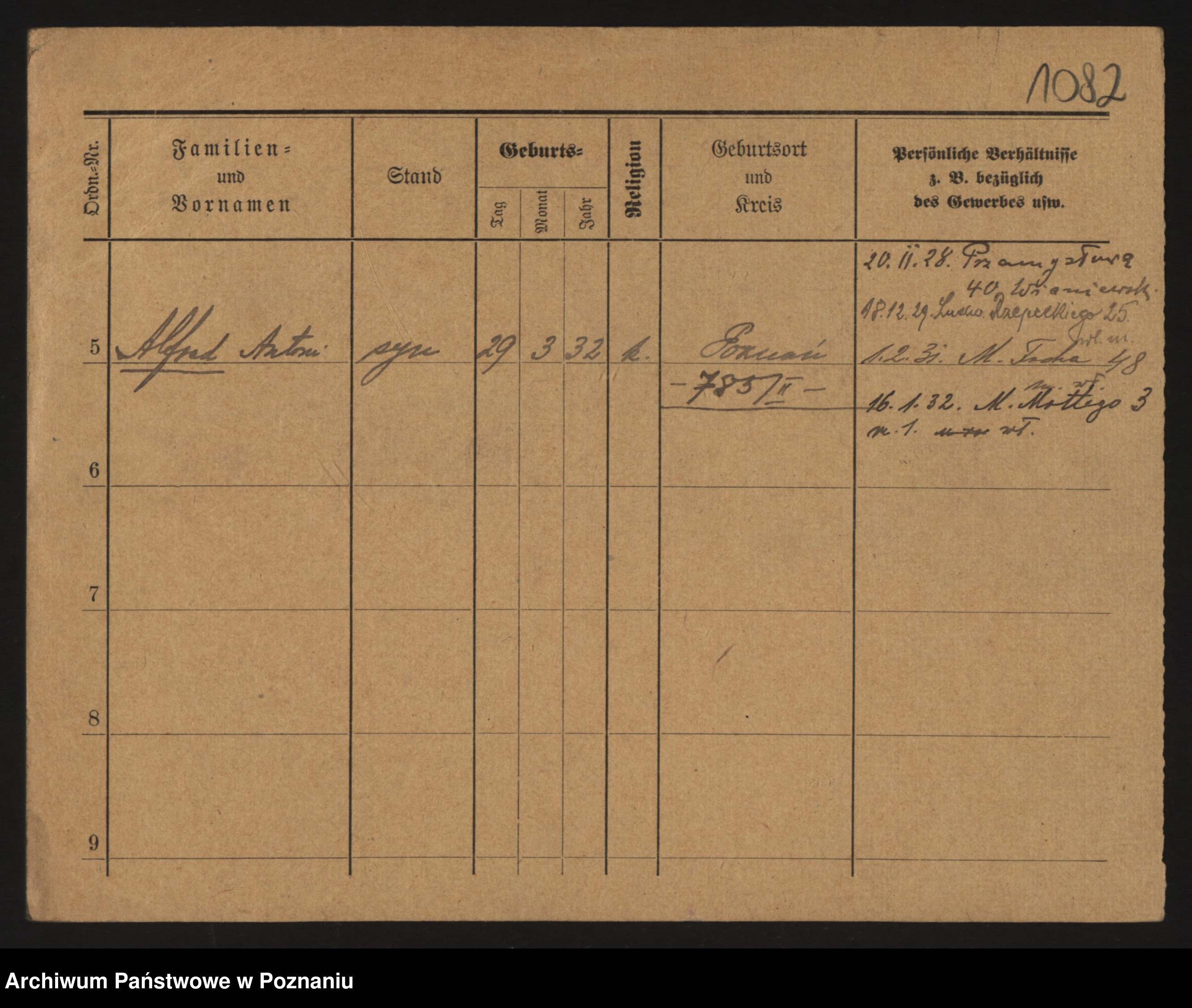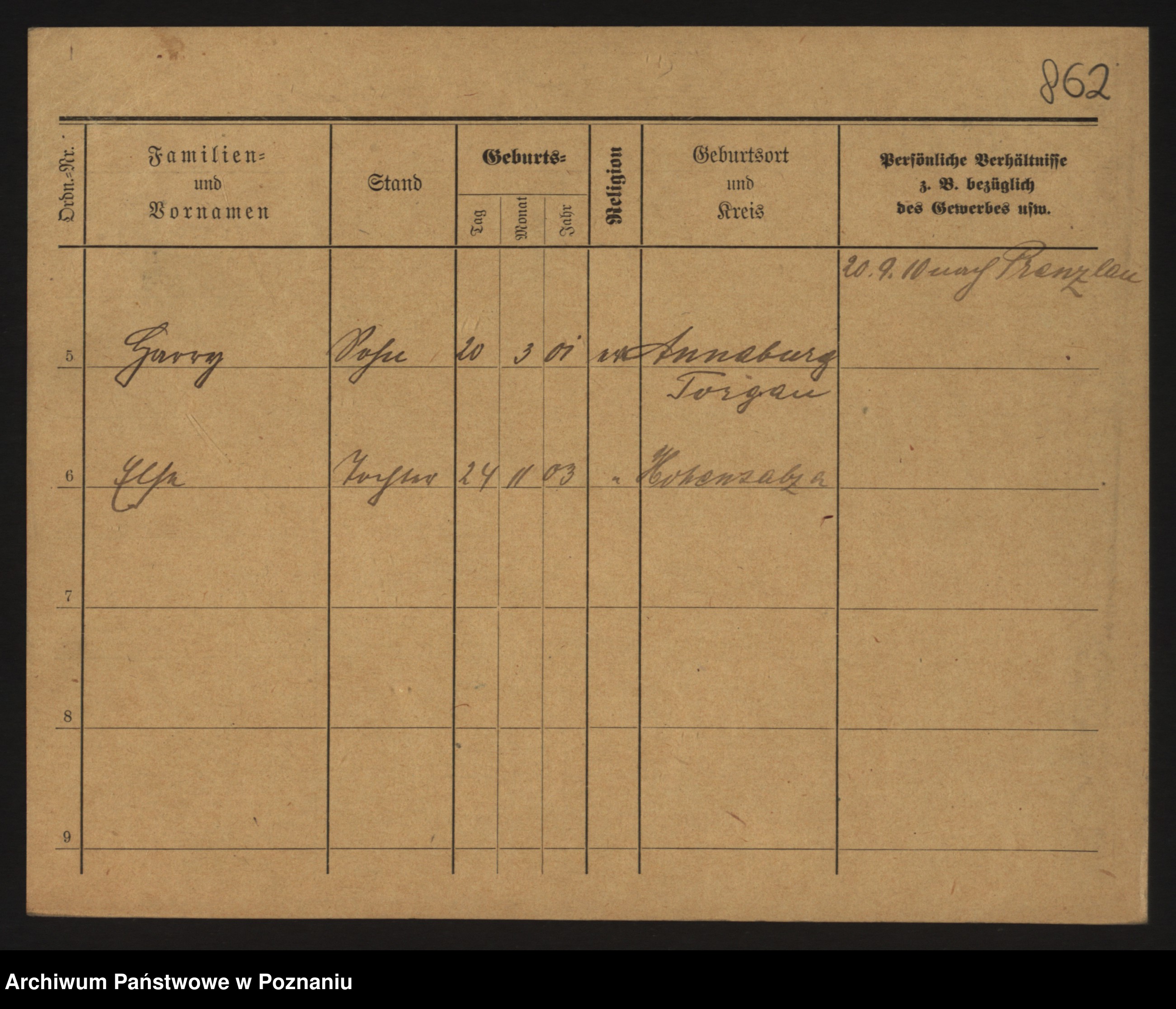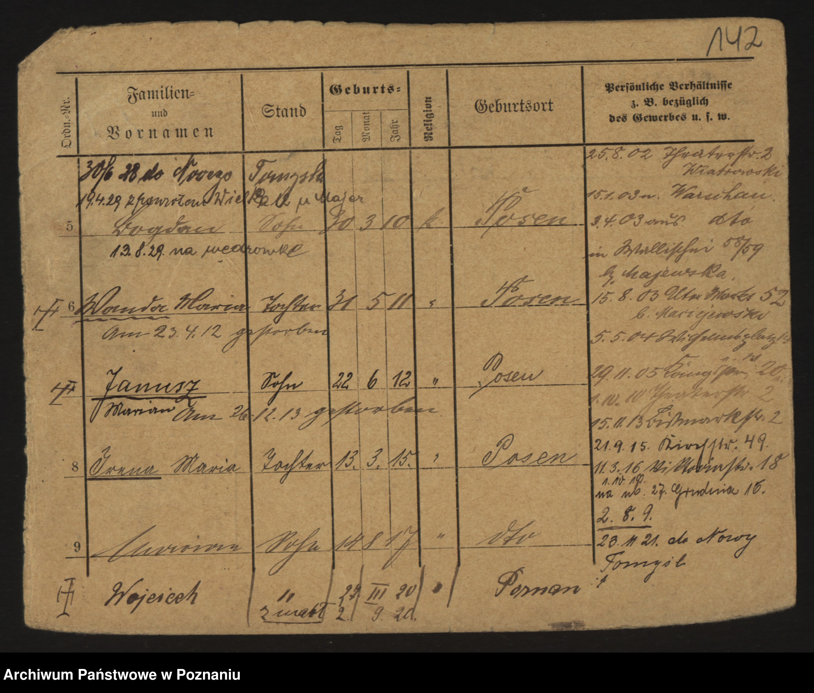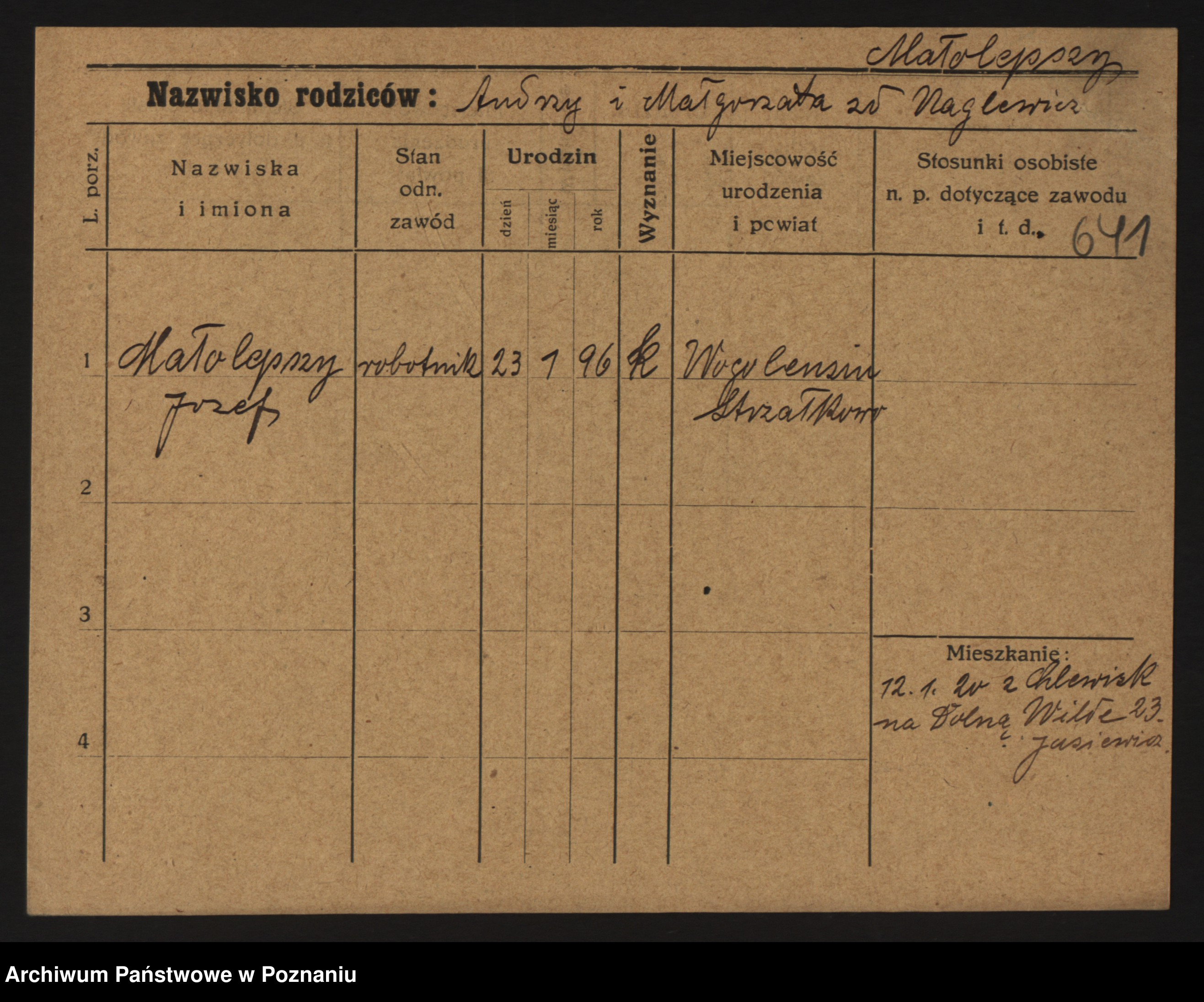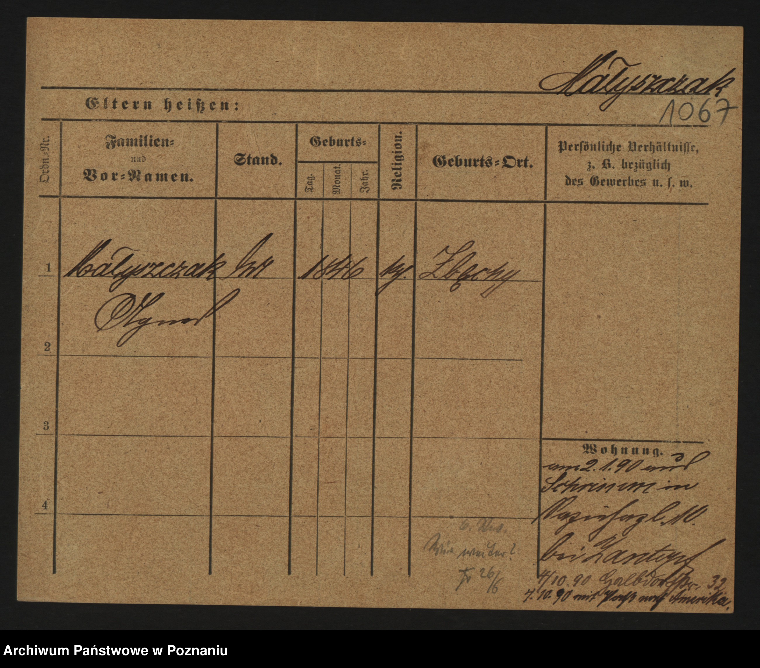 Podgląd karty osobowej dostępny jest po kliknięciu na nazwisko lub ikonkę karty. Można dokonywać powiększenia (ikony na górze) lub przechodzić między kolejnymi skanami (strzałki po bokach).