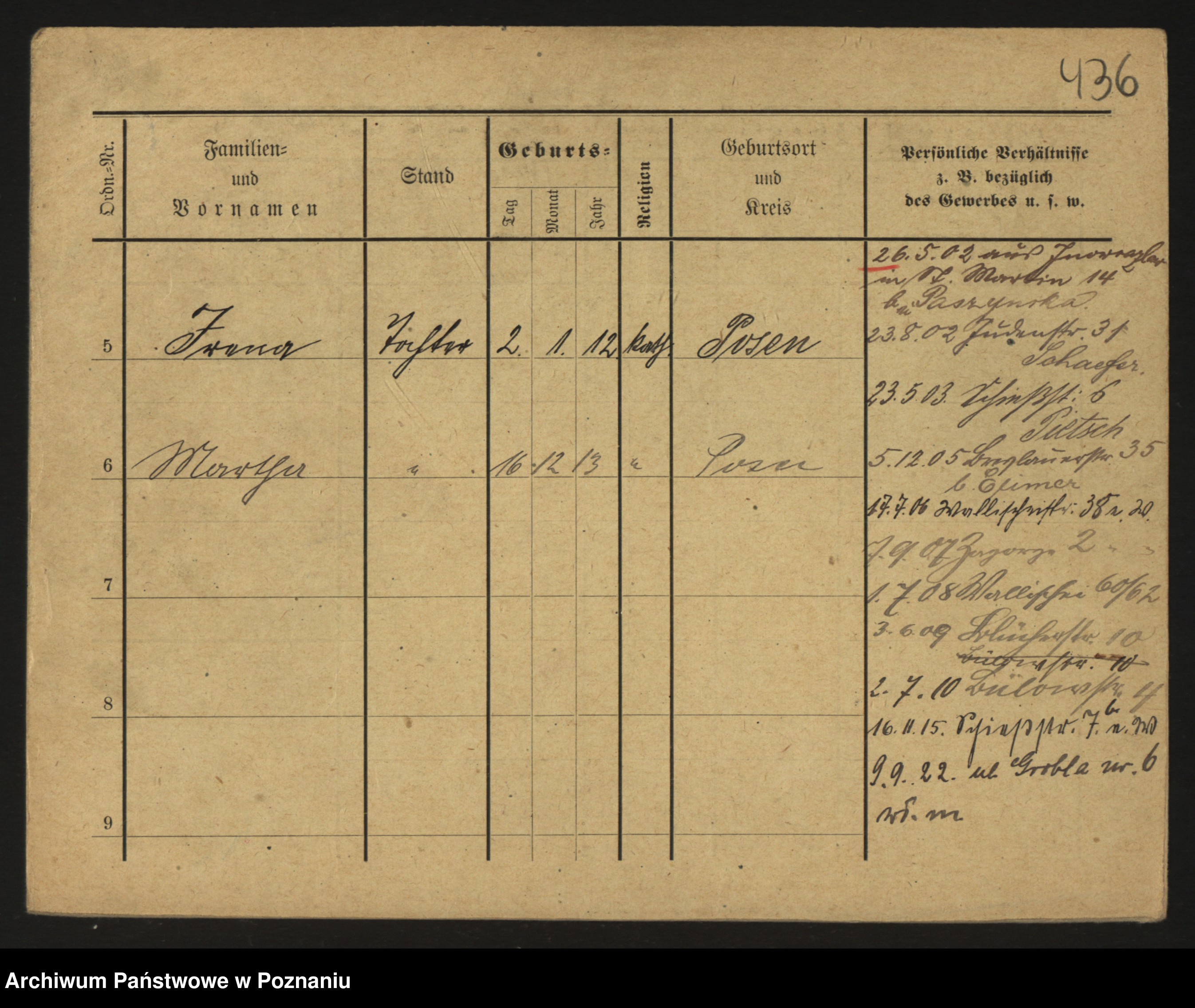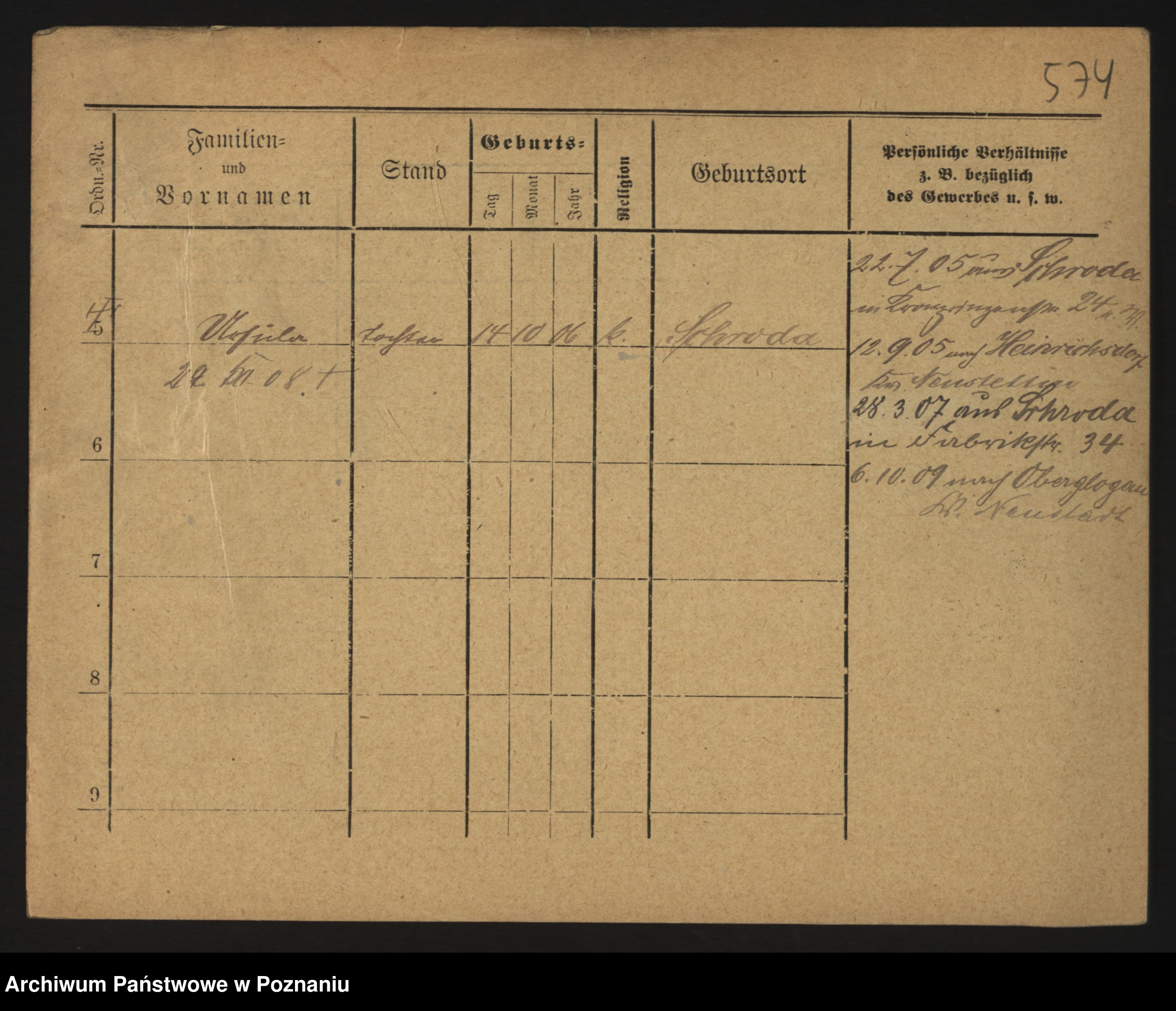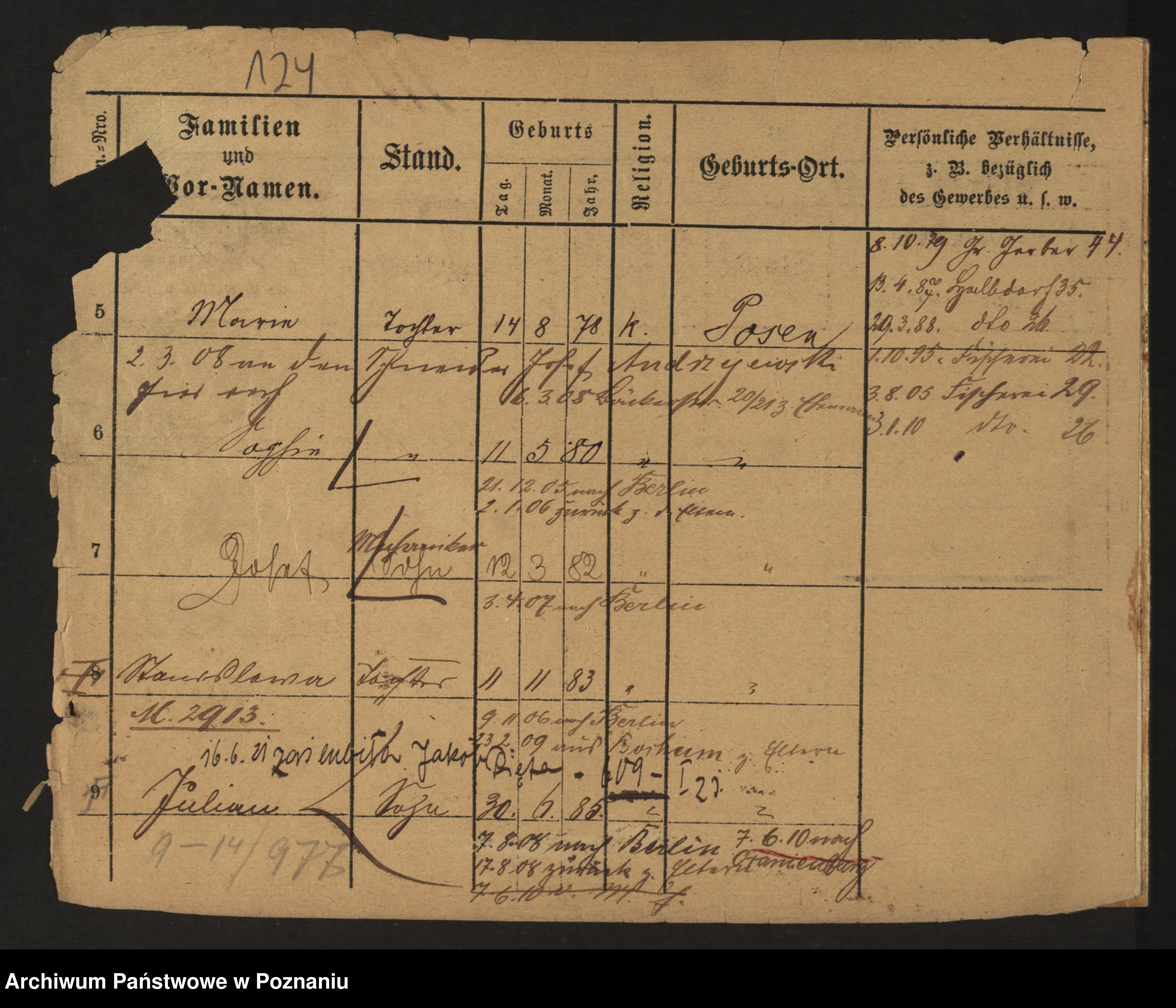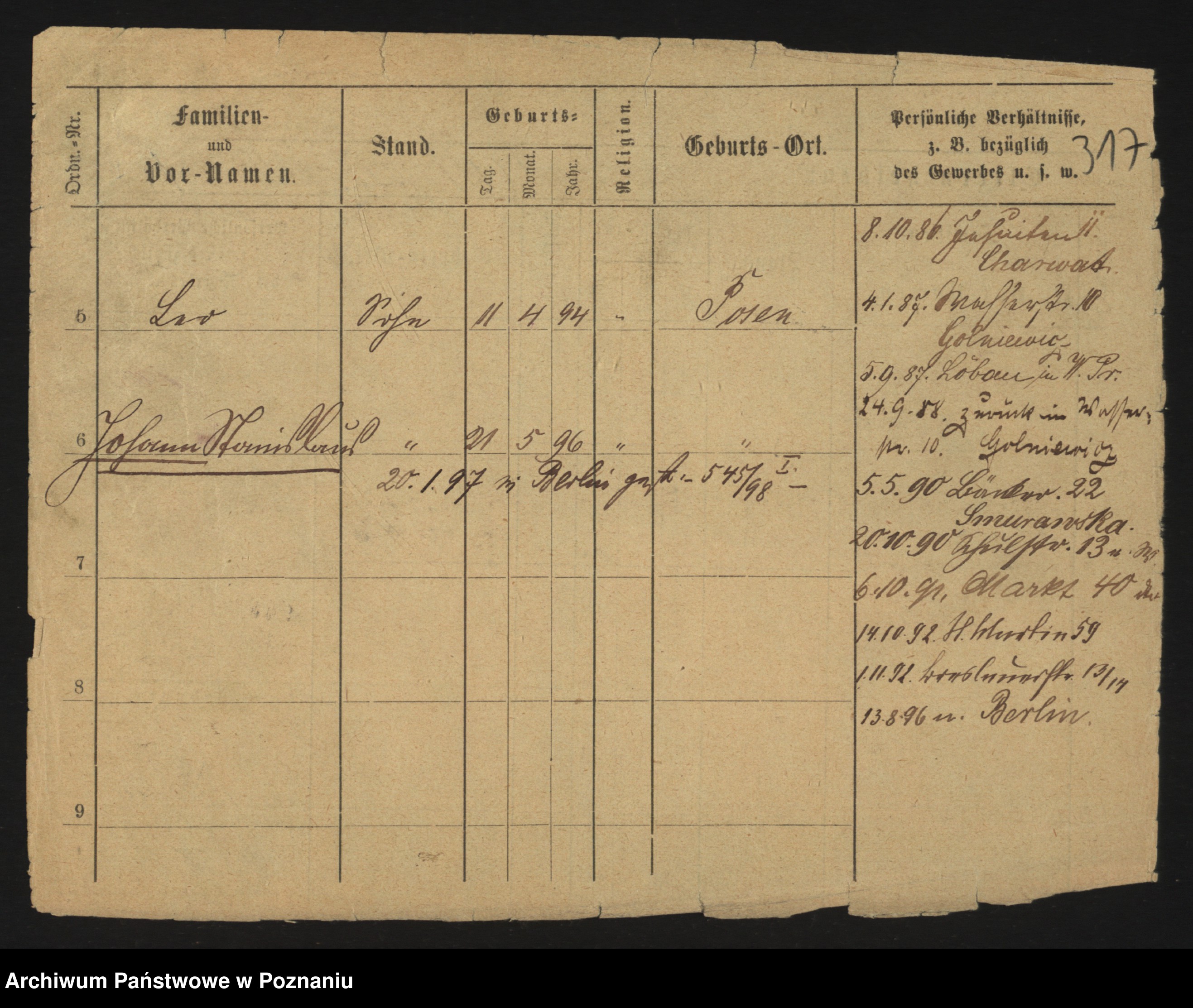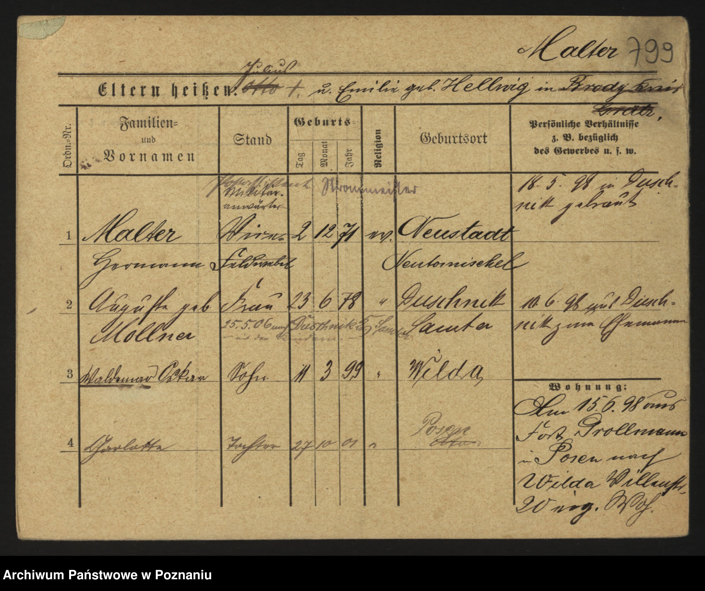 Podgląd karty osobowej dostępny jest po kliknięciu na nazwisko lub ikonkę karty. Można dokonywać powiększenia (ikony na górze) lub przechodzić między kolejnymi skanami (strzałki po bokach).