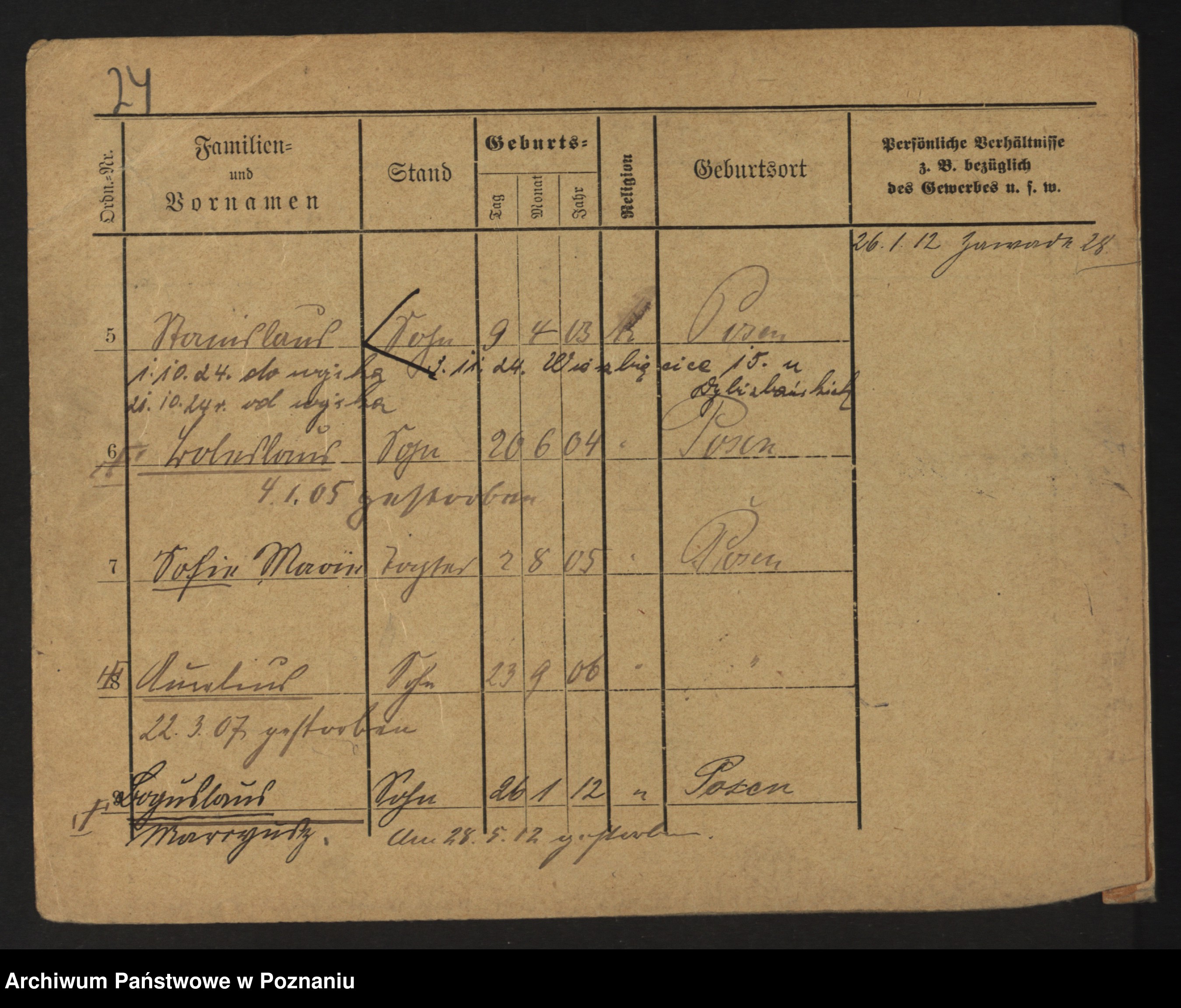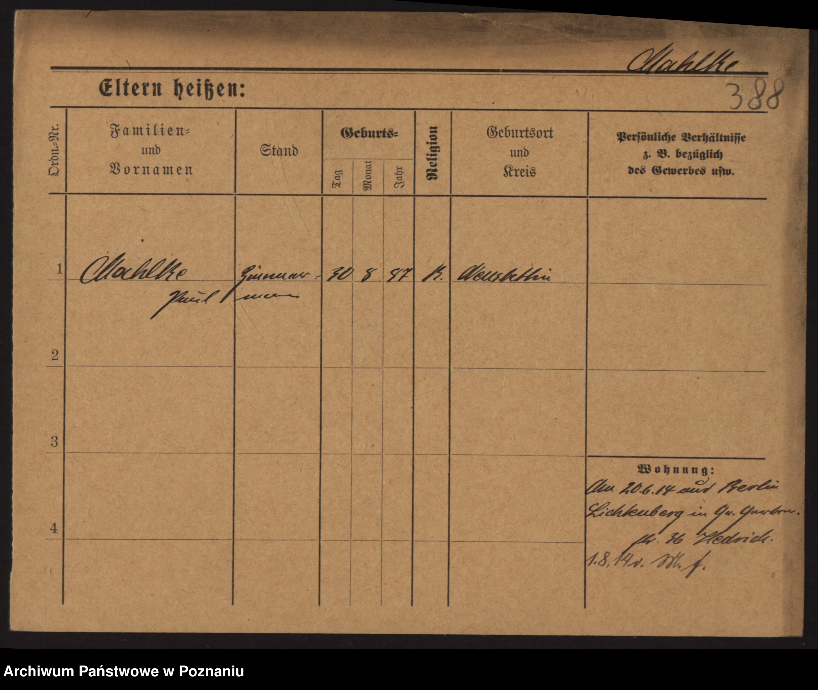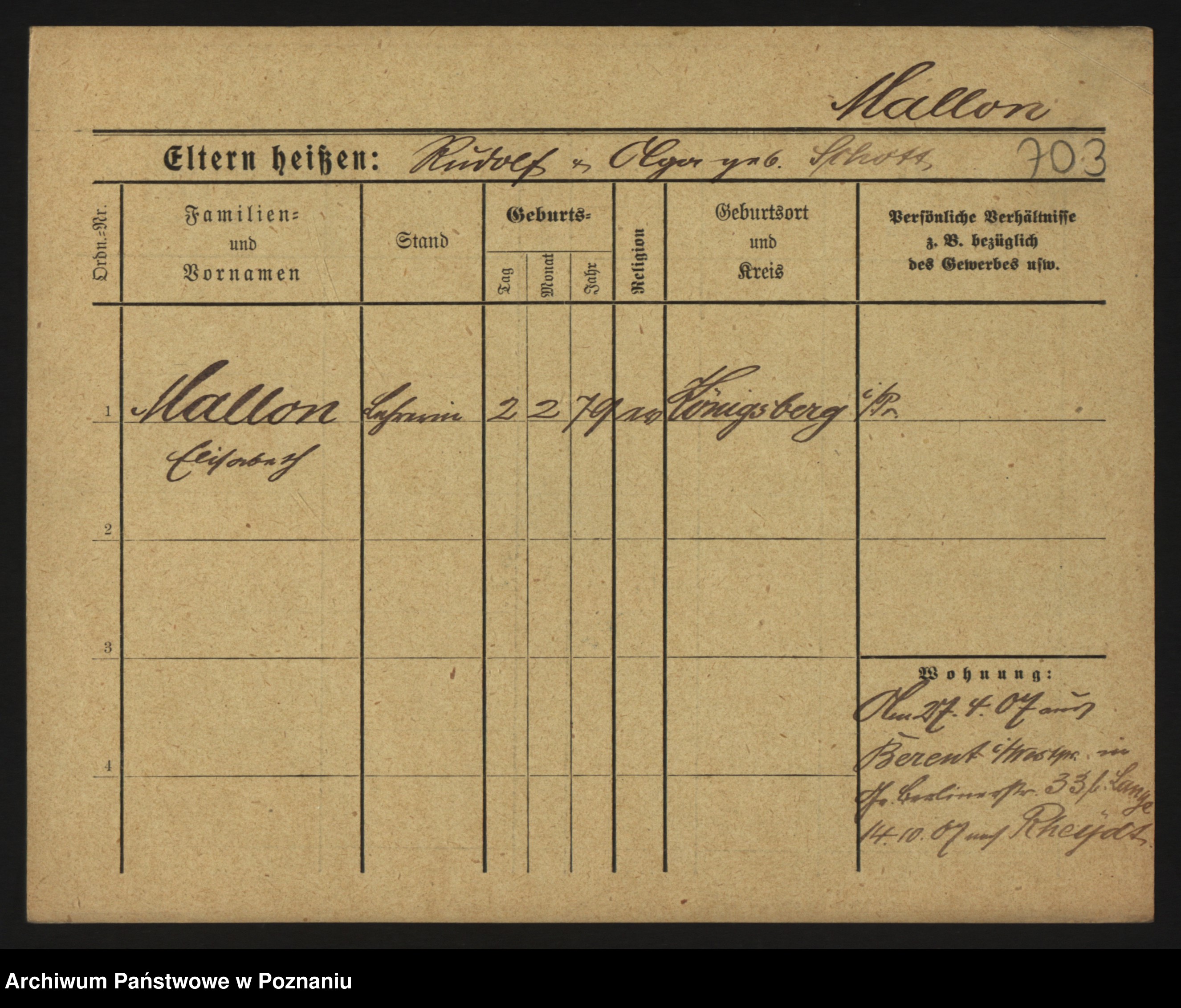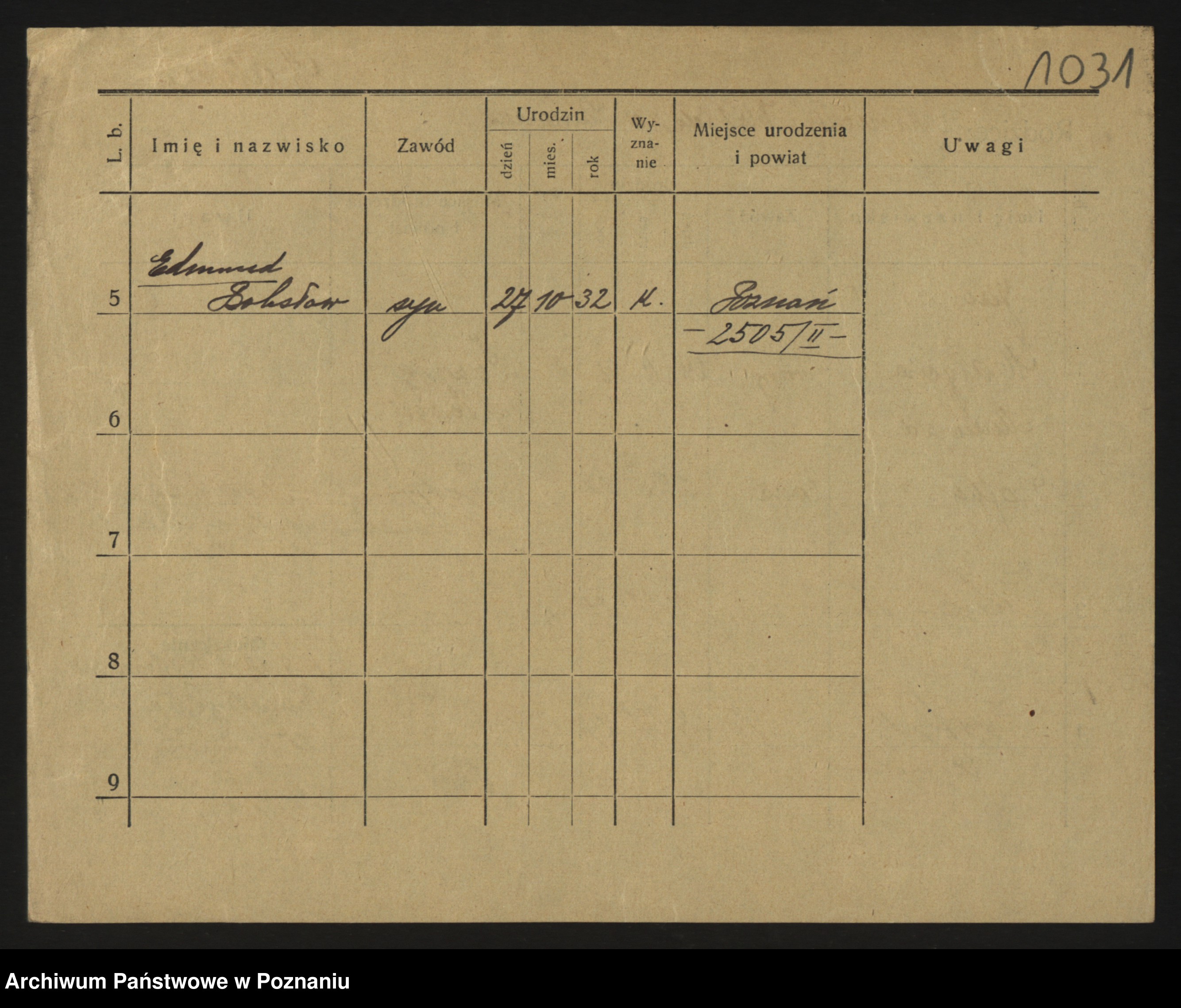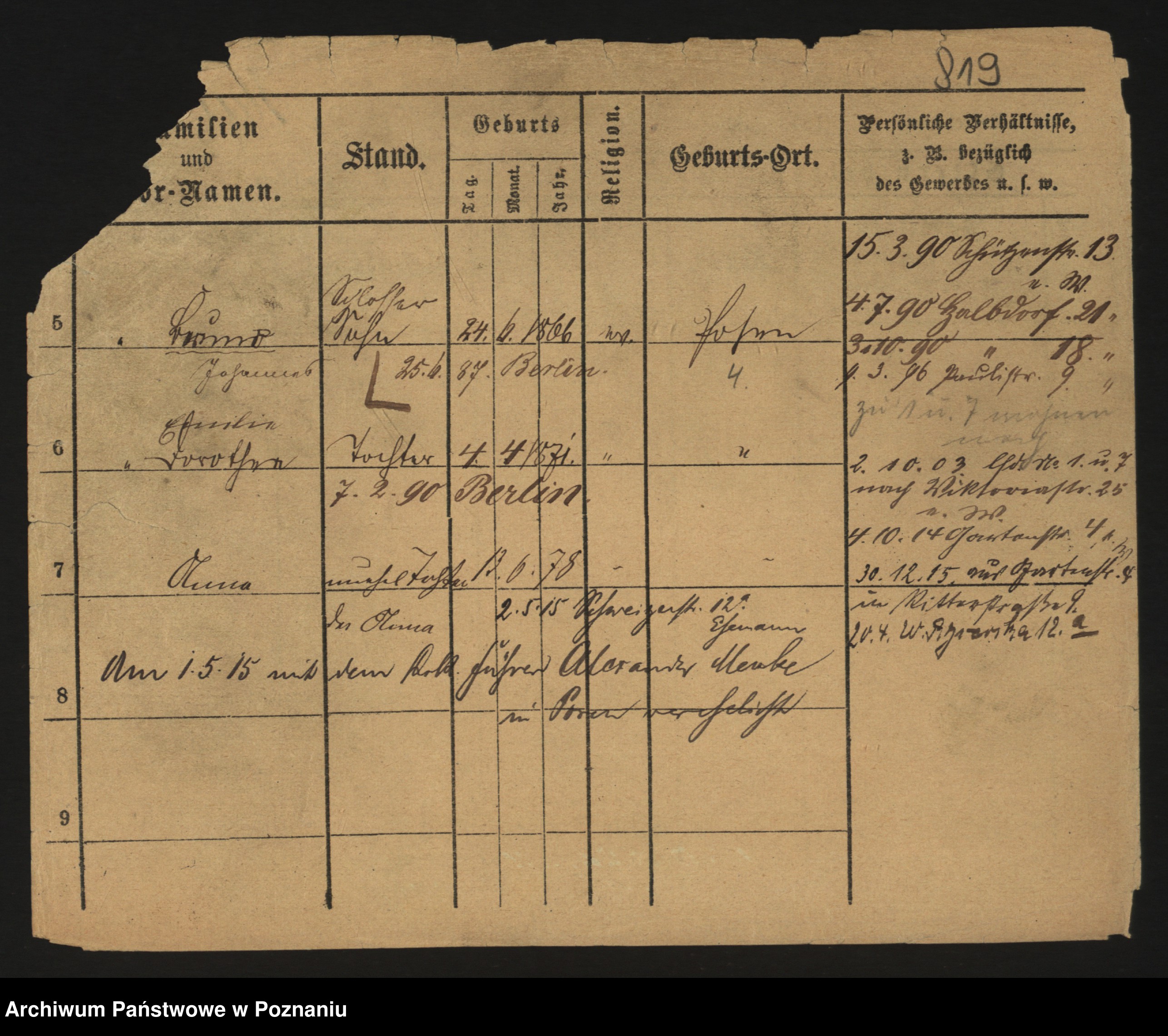 Podgląd karty osobowej dostępny jest po kliknięciu na nazwisko lub ikonkę karty. Można dokonywać powiększenia (ikony na górze) lub przechodzić między kolejnymi skanami (strzałki po bokach).