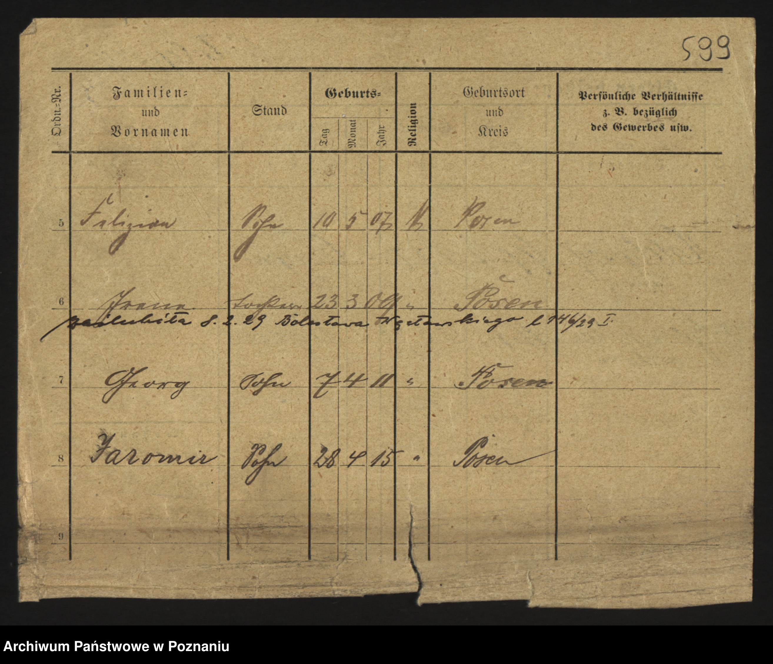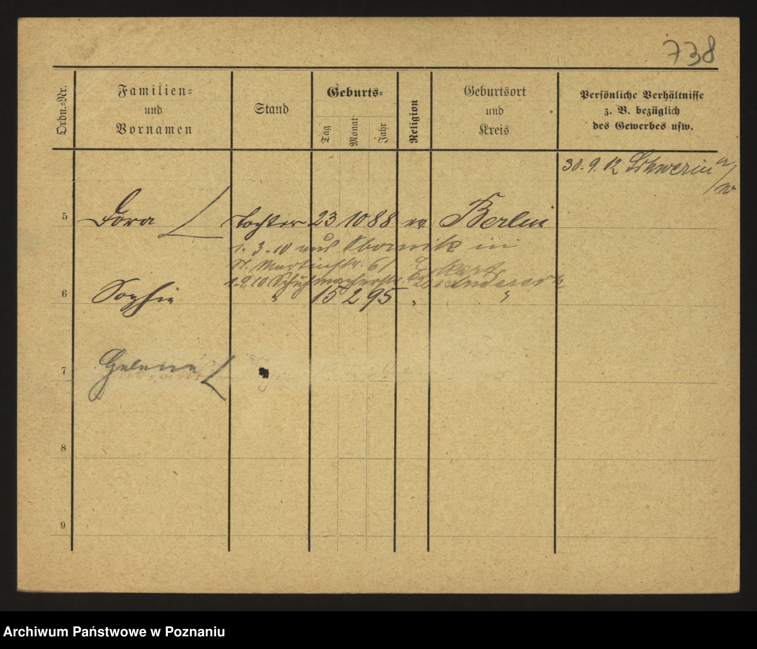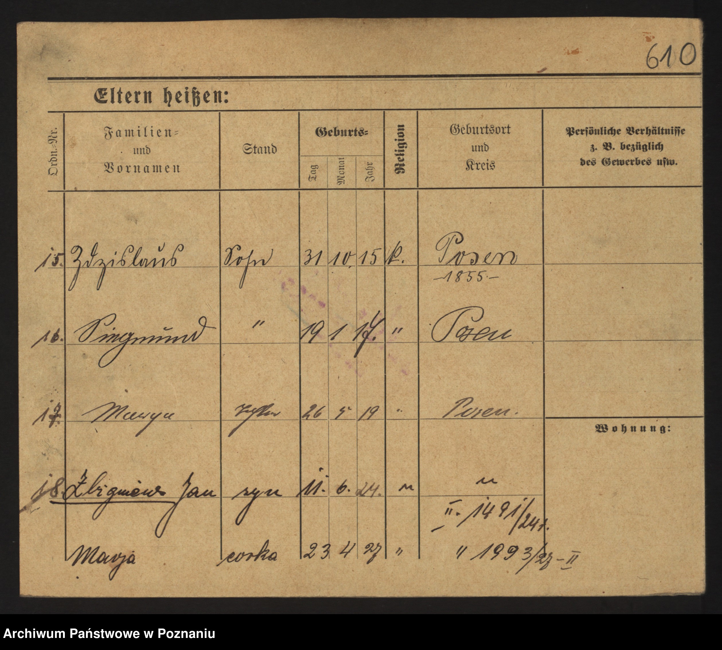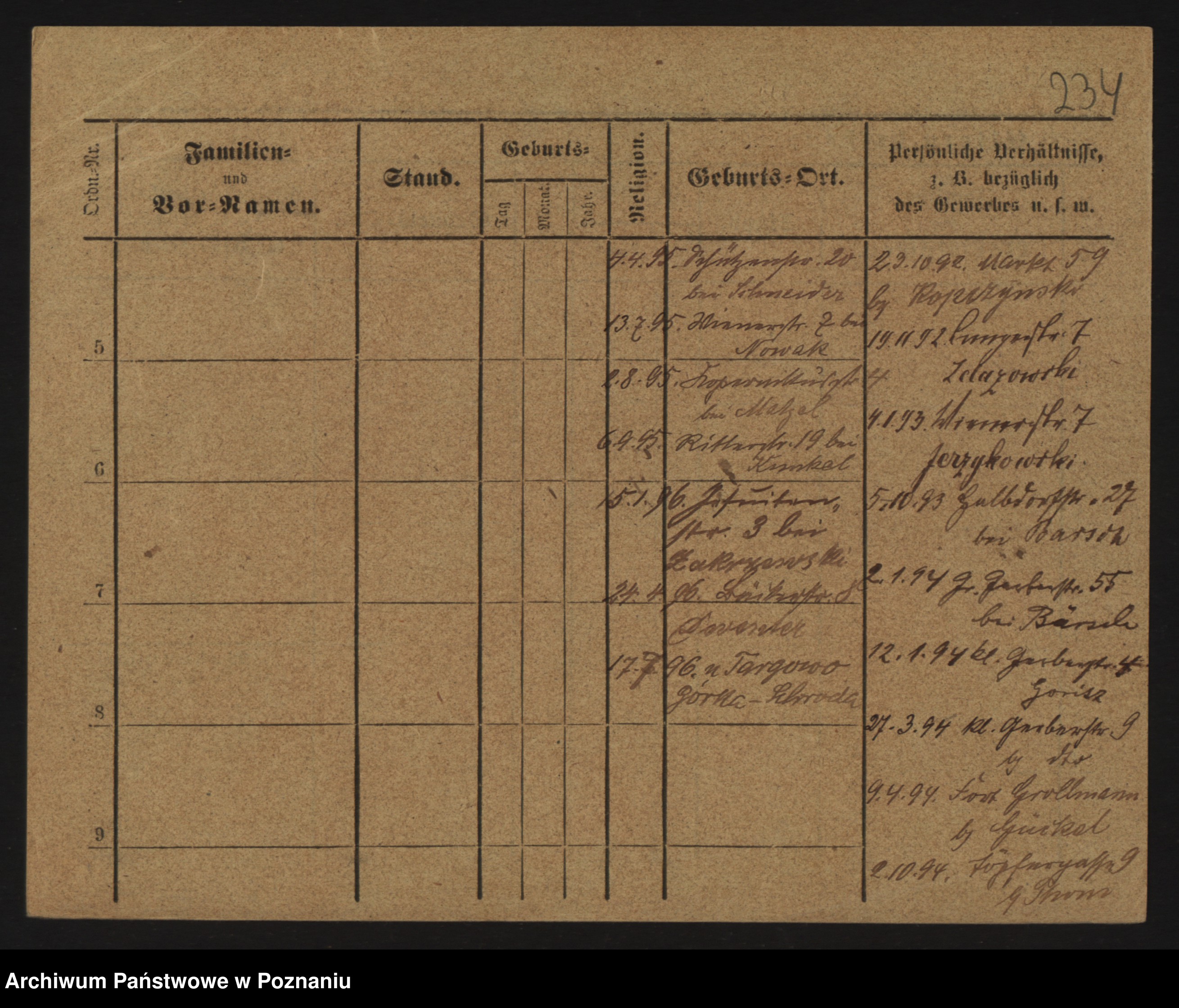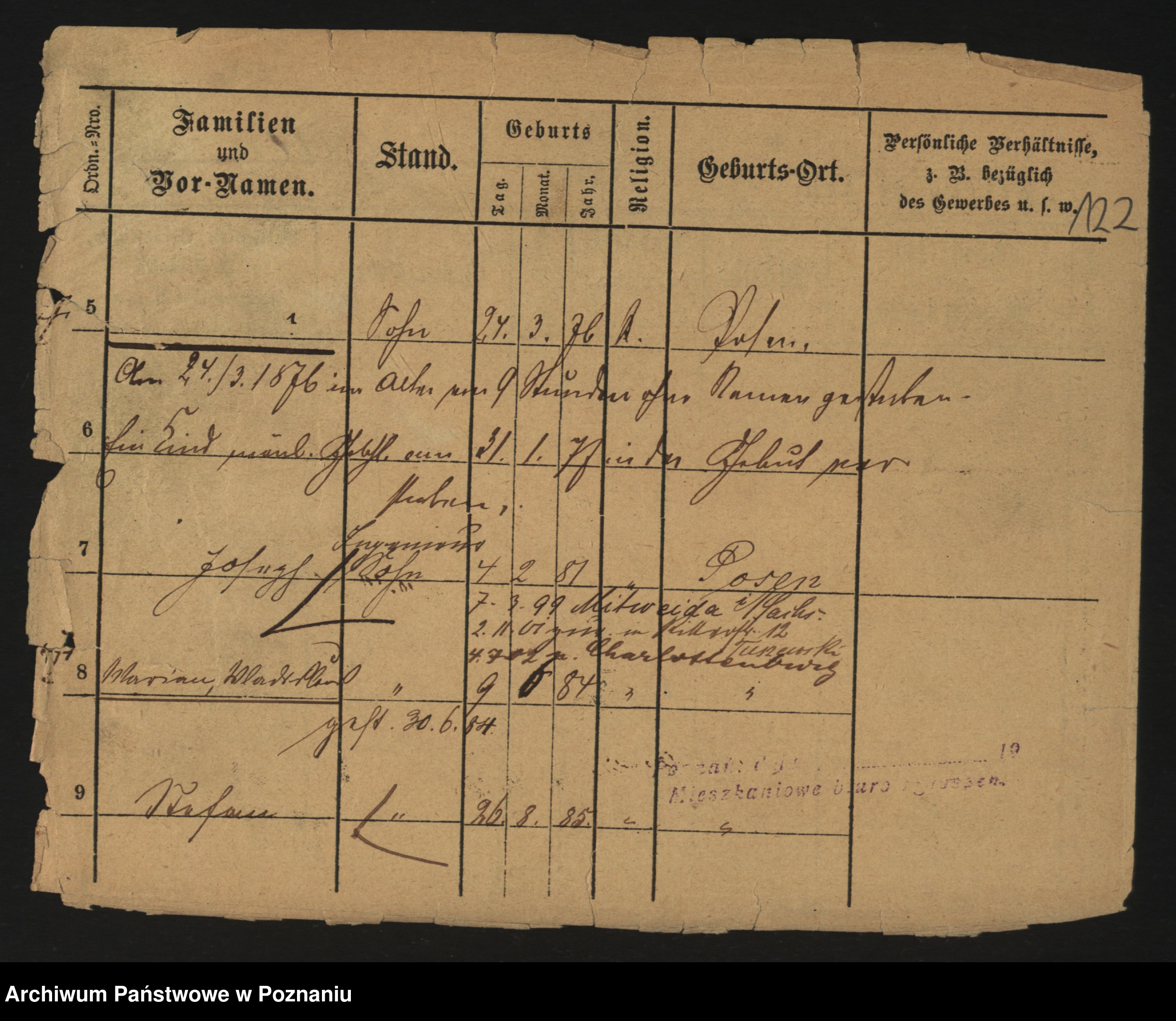 Podgląd karty osobowej dostępny jest po kliknięciu na nazwisko lub ikonkę karty. Można dokonywać powiększenia (ikony na górze) lub przechodzić między kolejnymi skanami (strzałki po bokach).