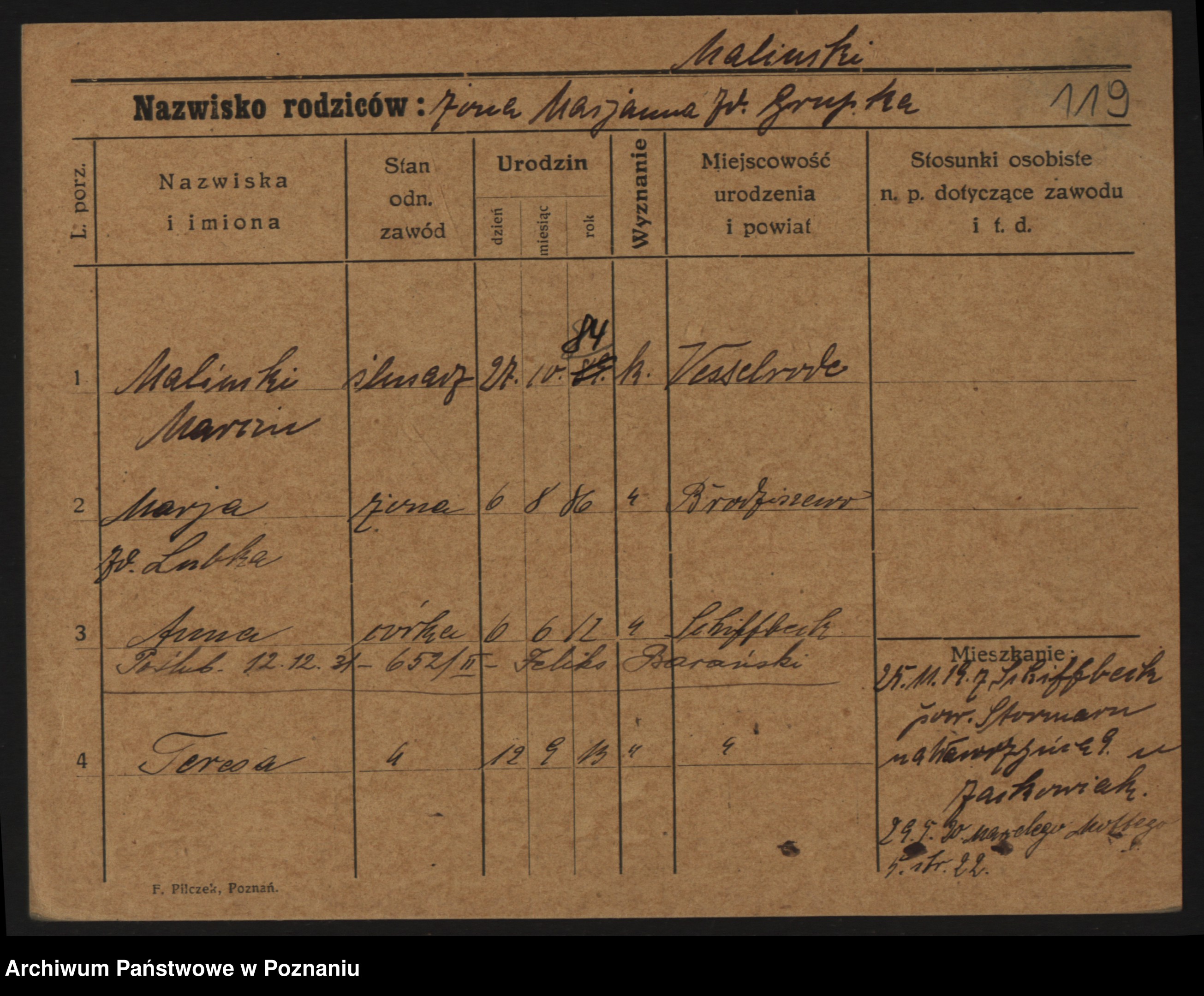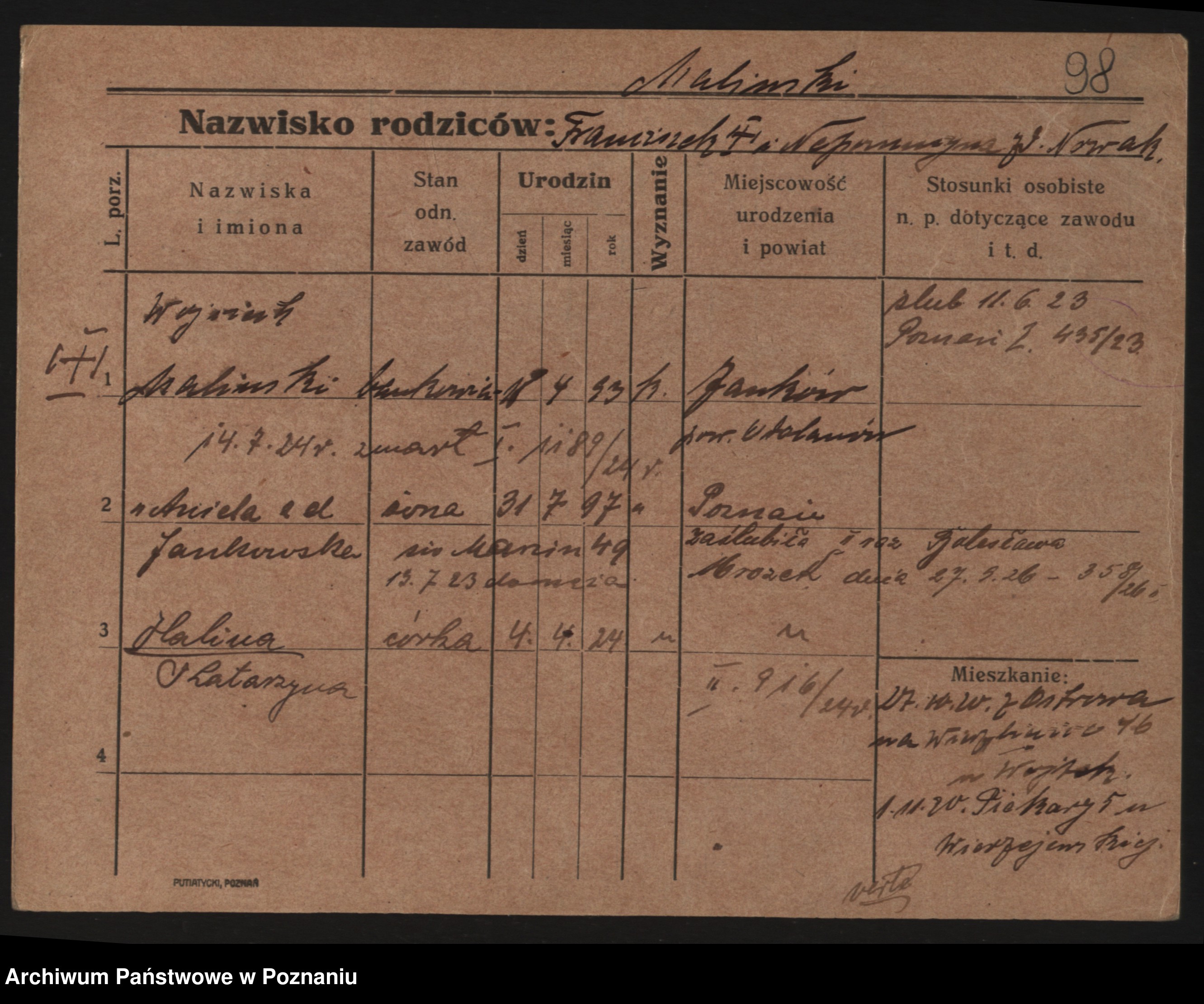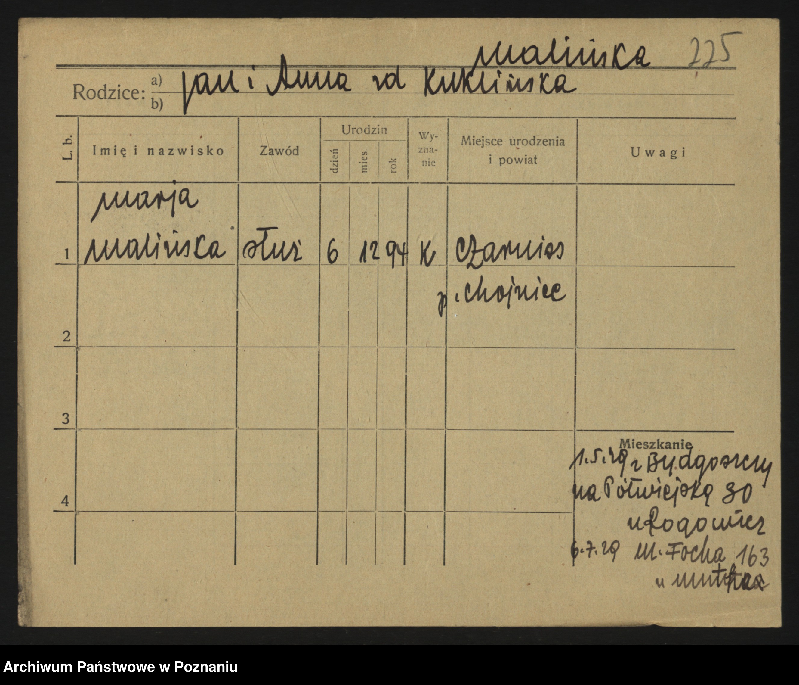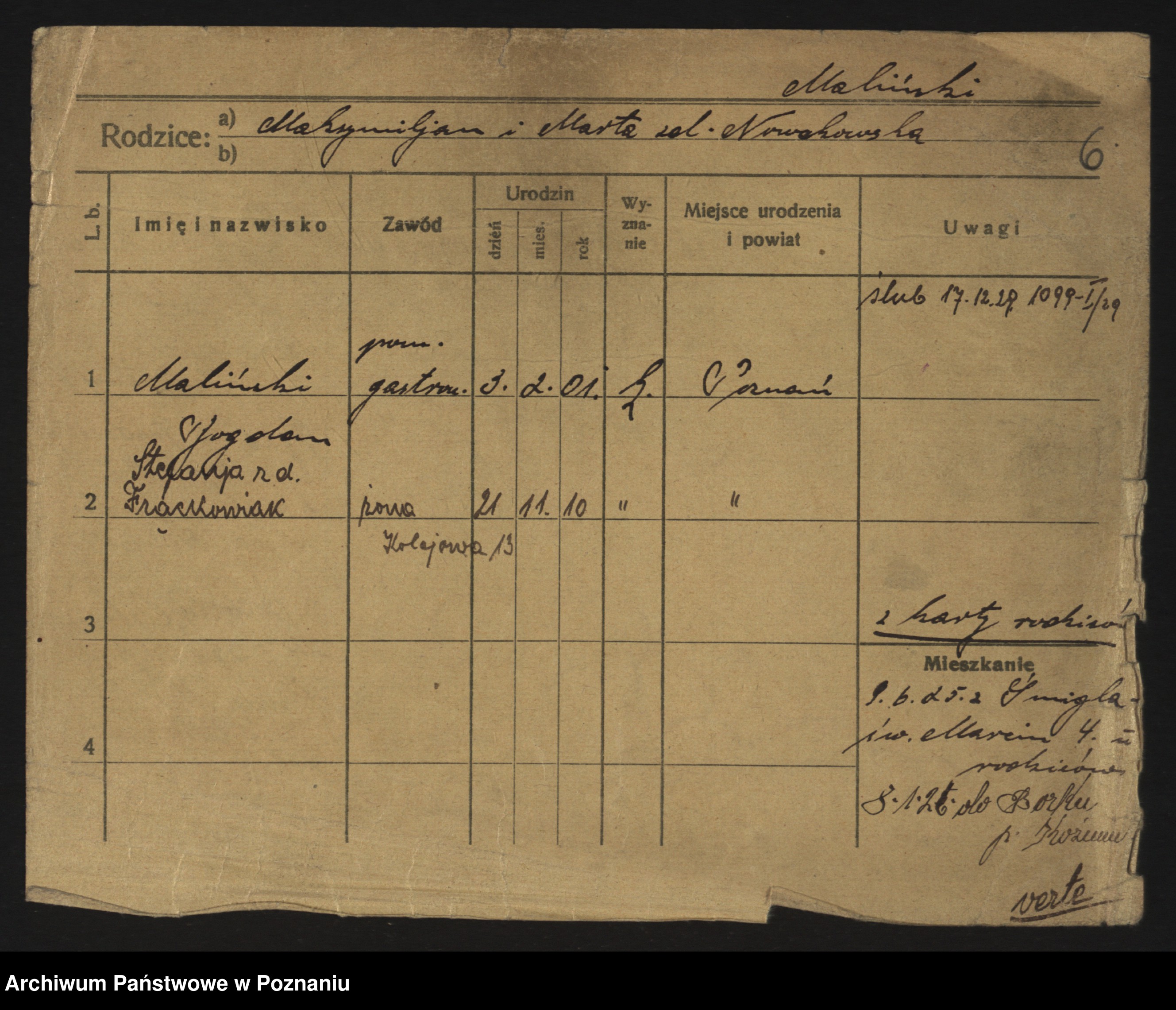 Maliński zd.Frąckowiak, Stefanja