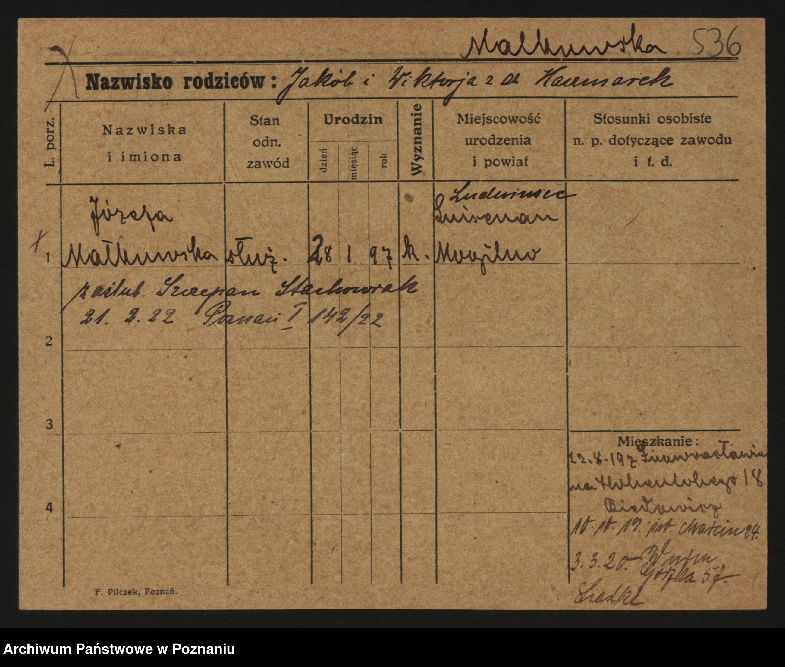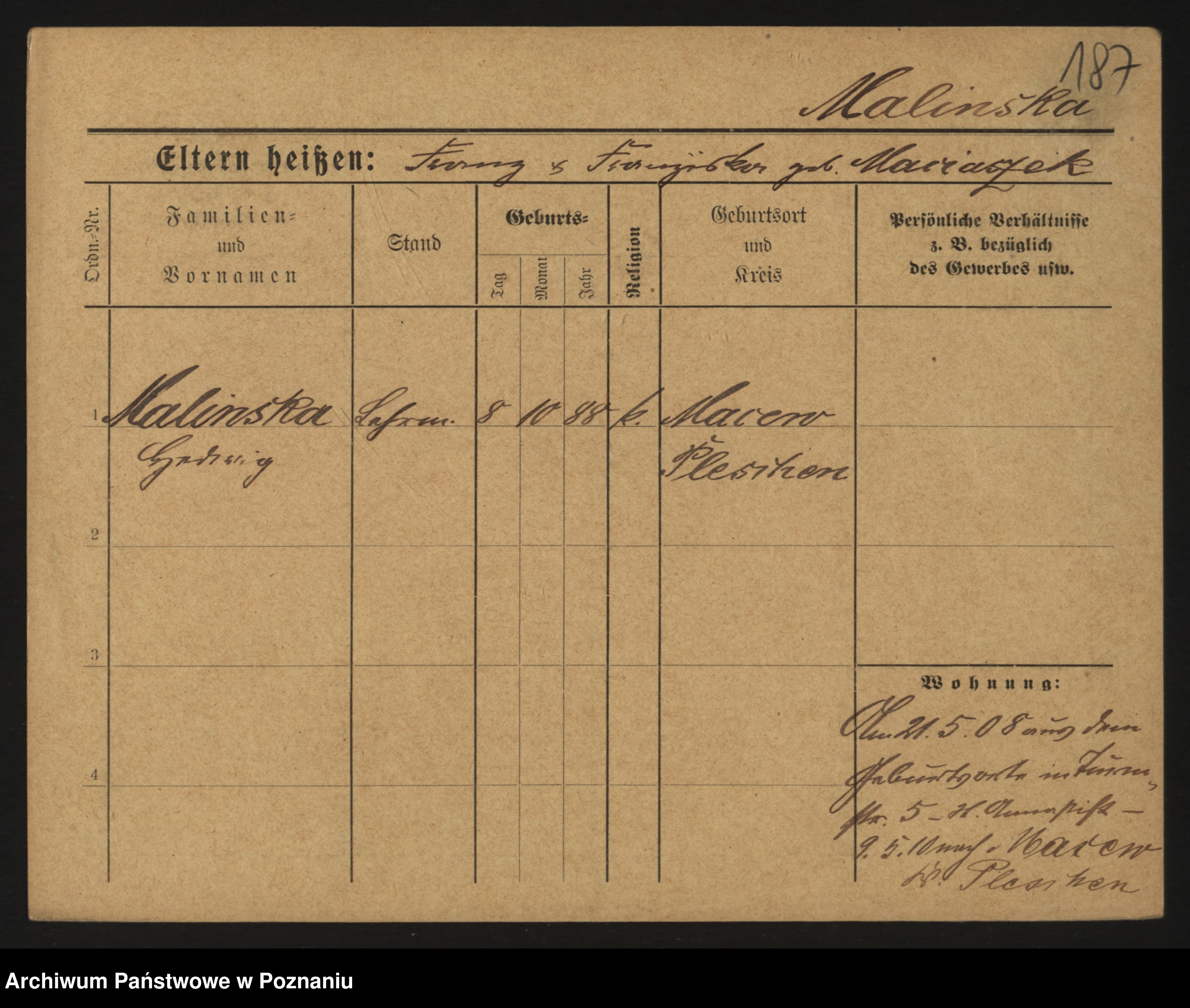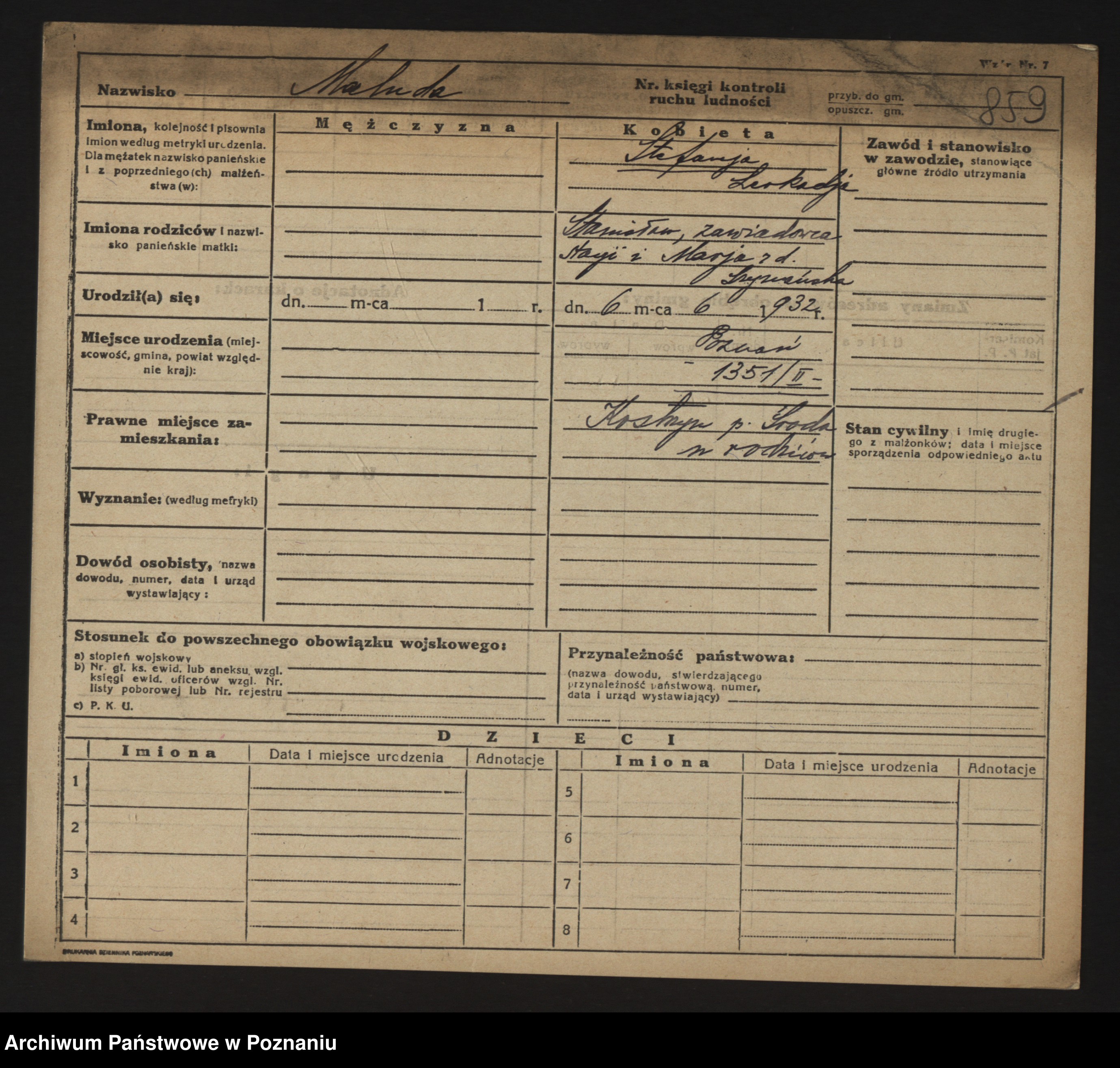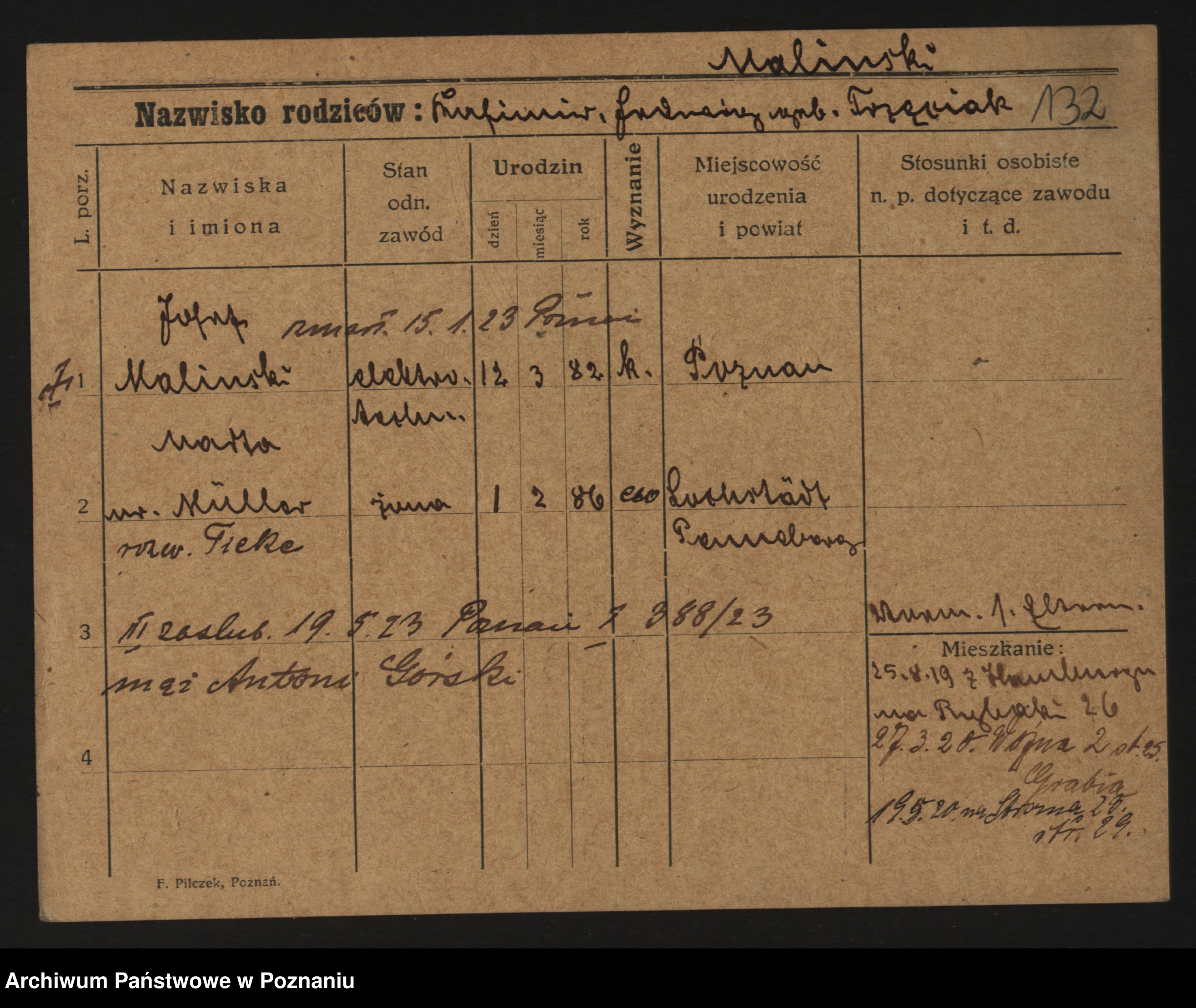 Maliński zd.Frąckowiak, Stefanja