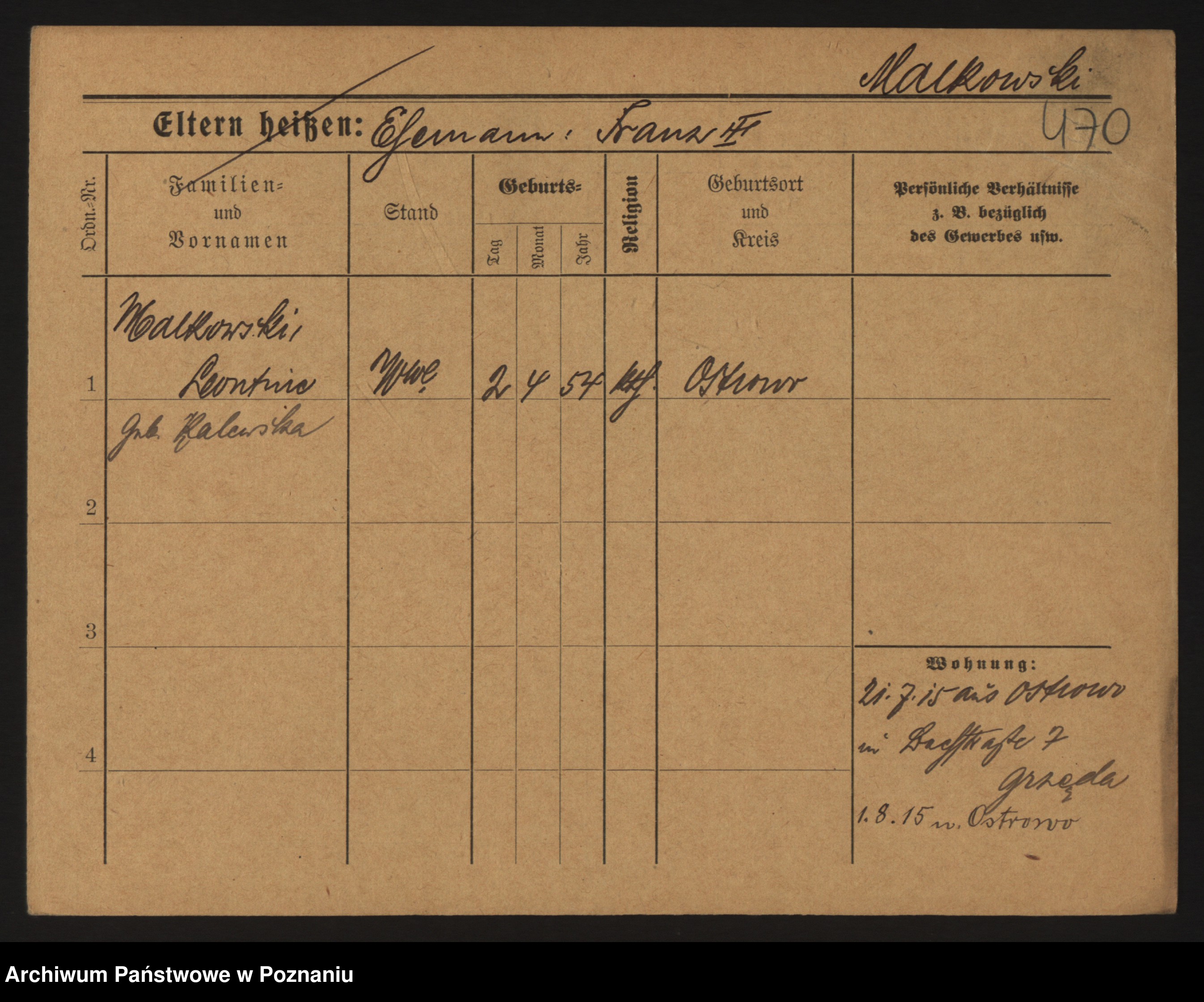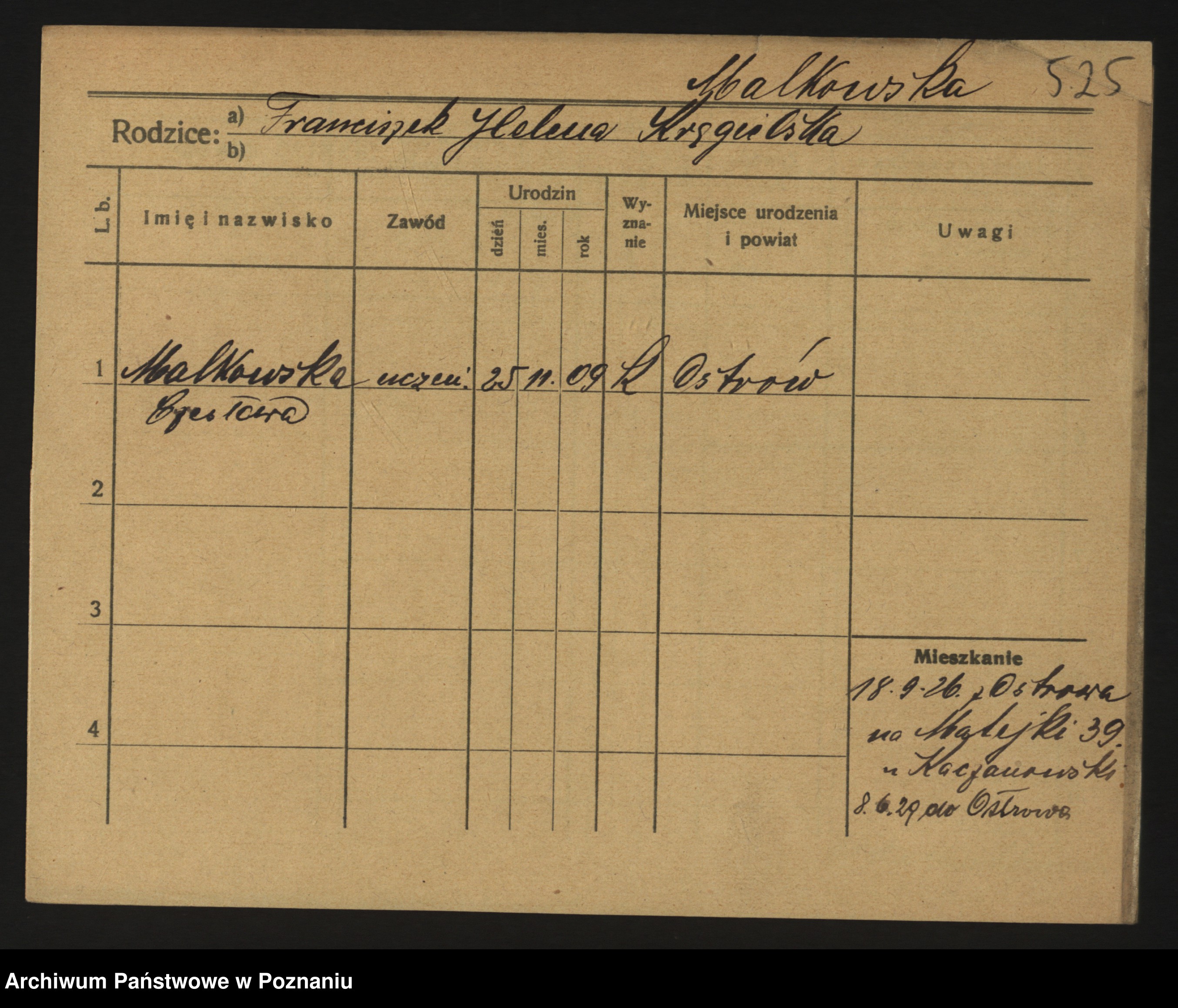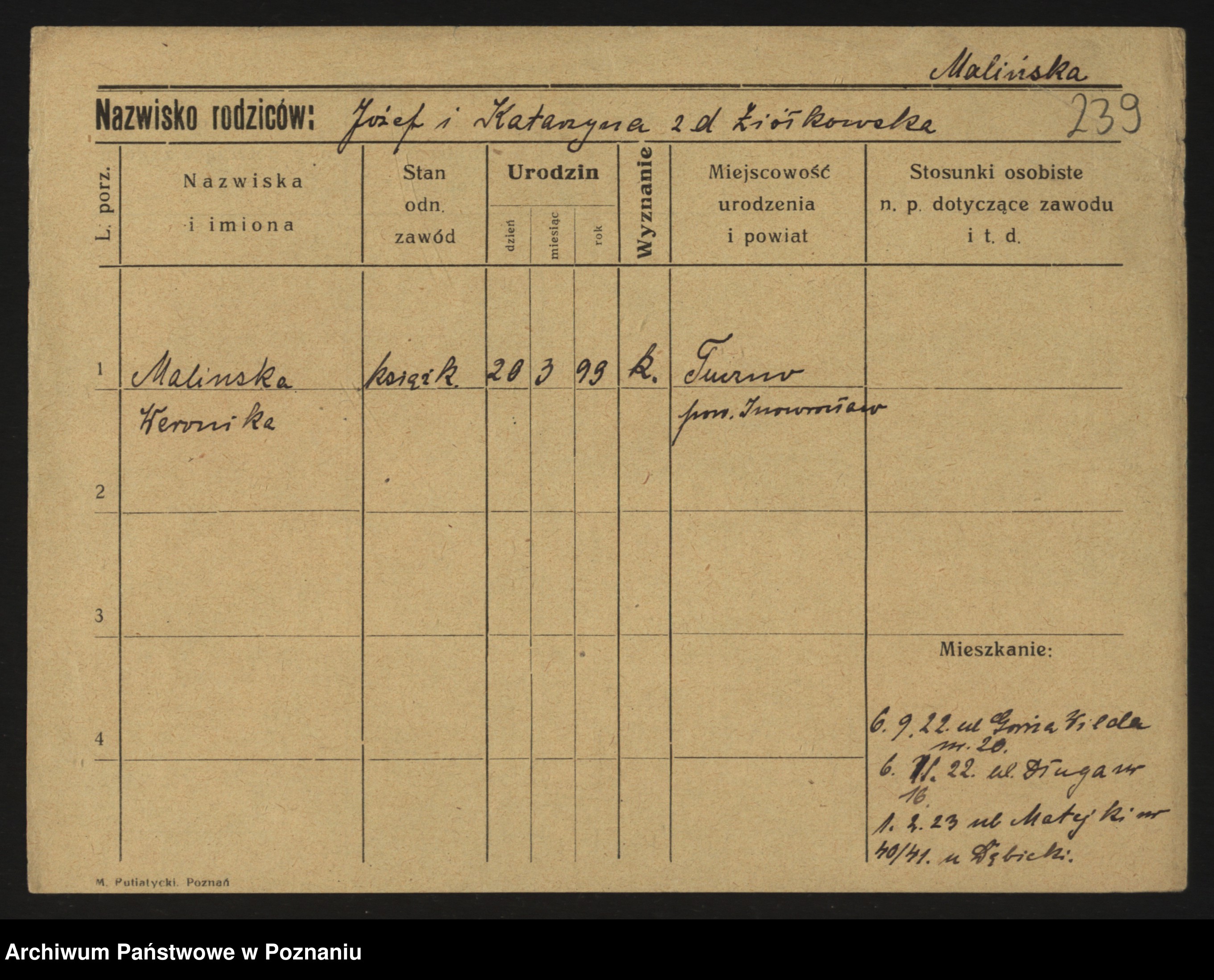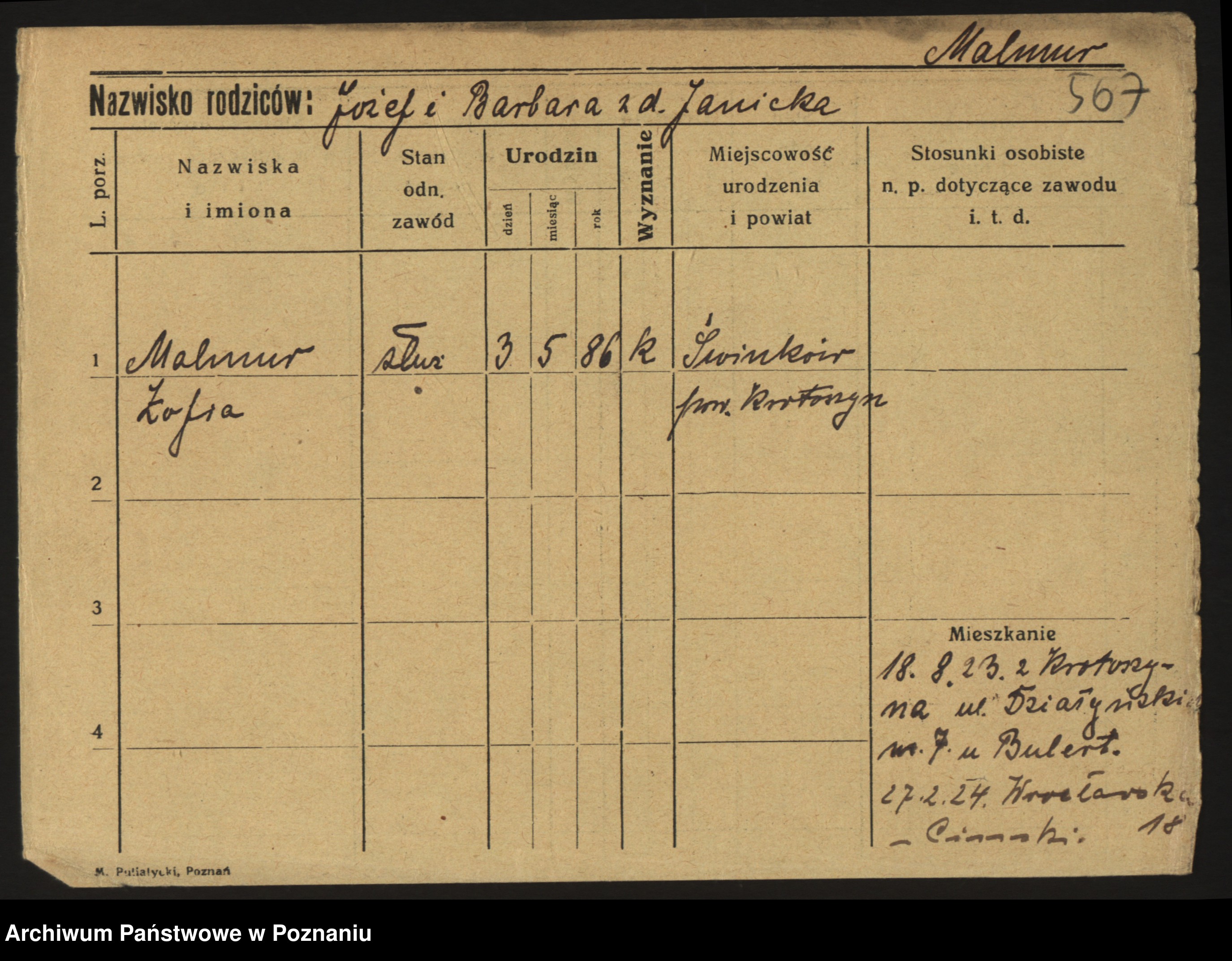 Maliński zd.Frąckowiak, Stefanja