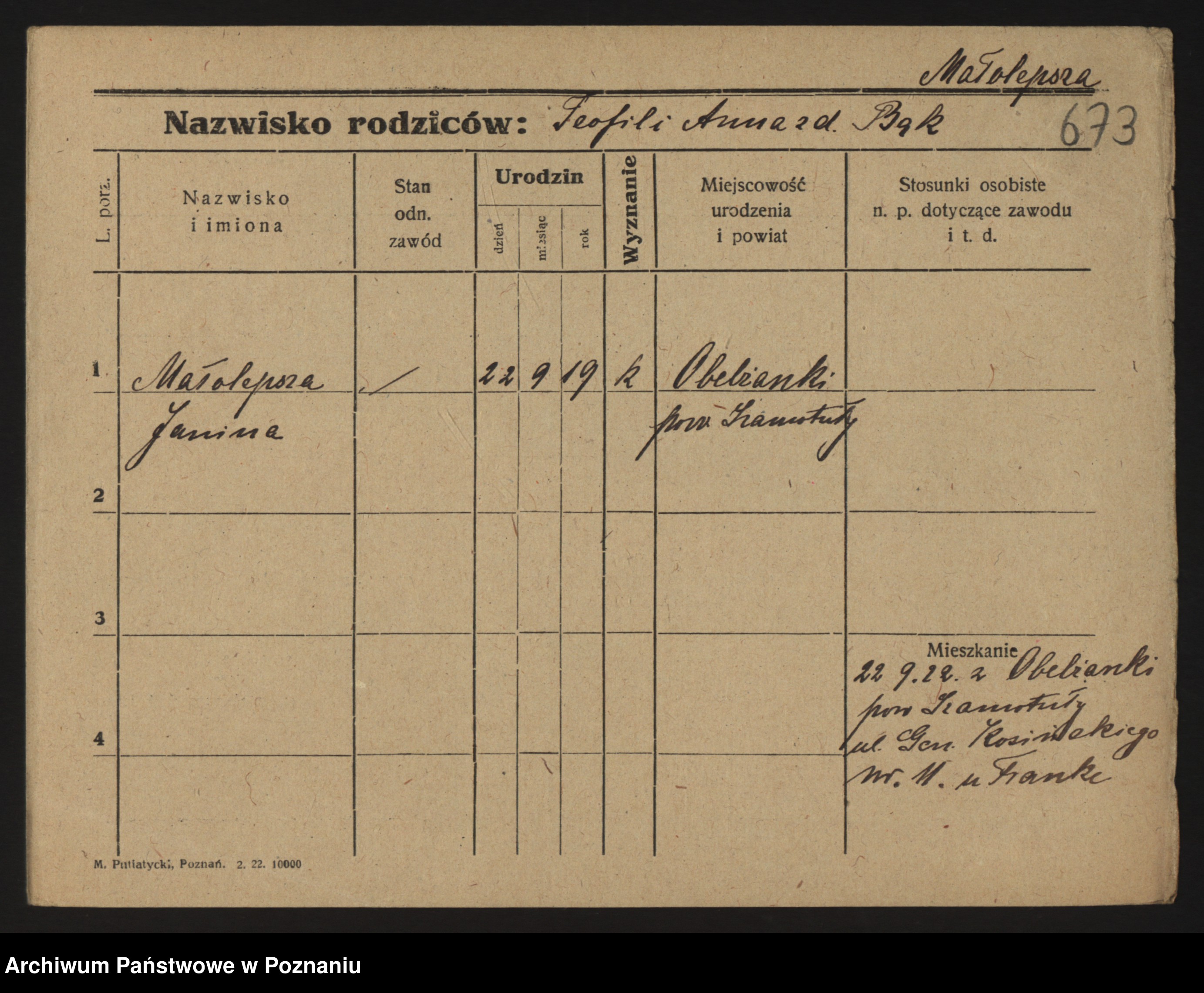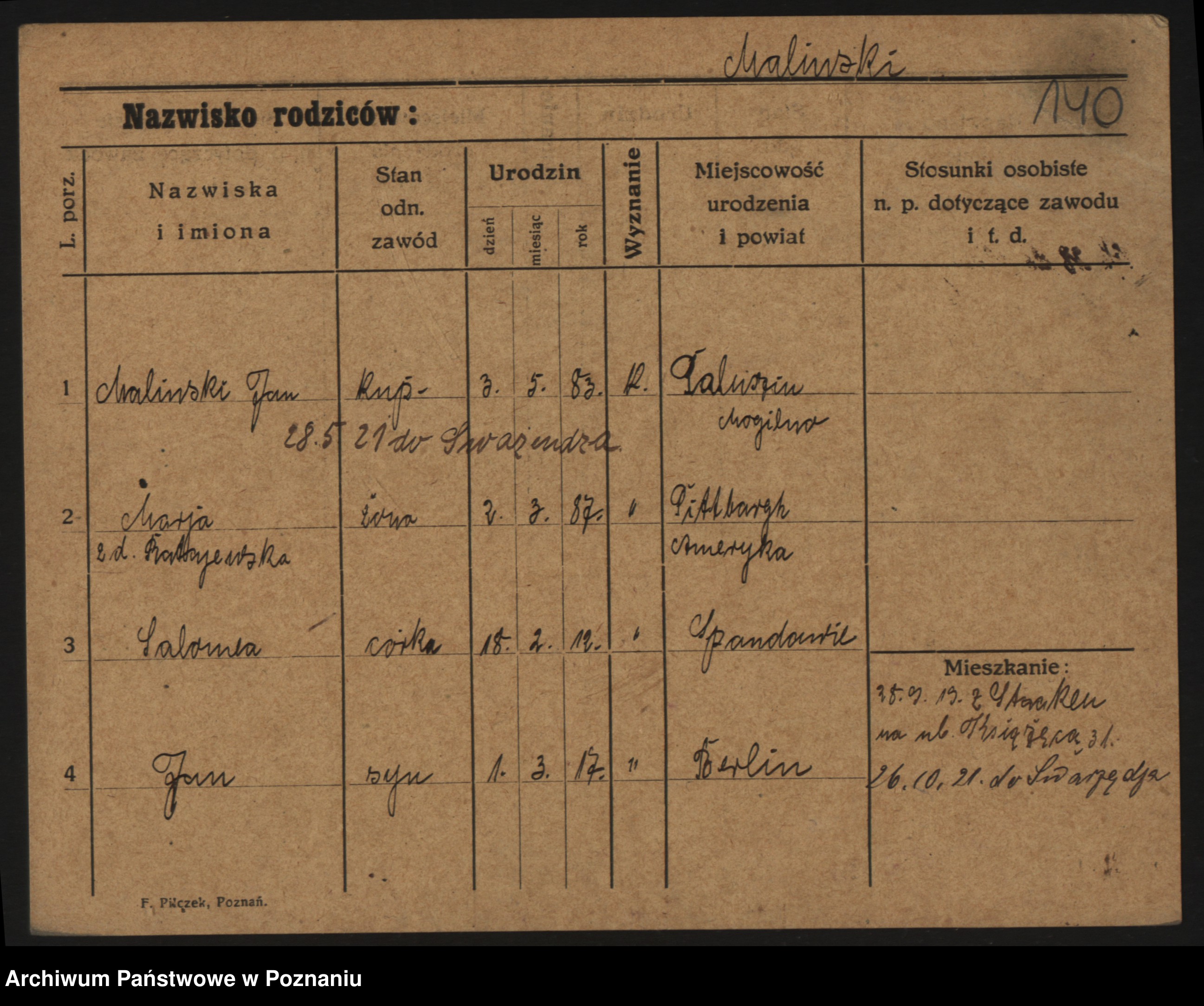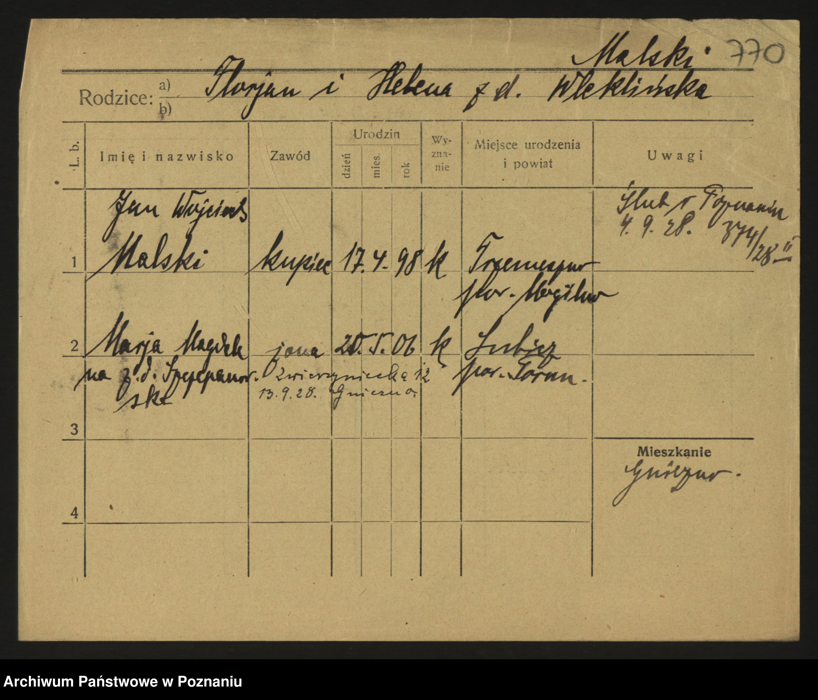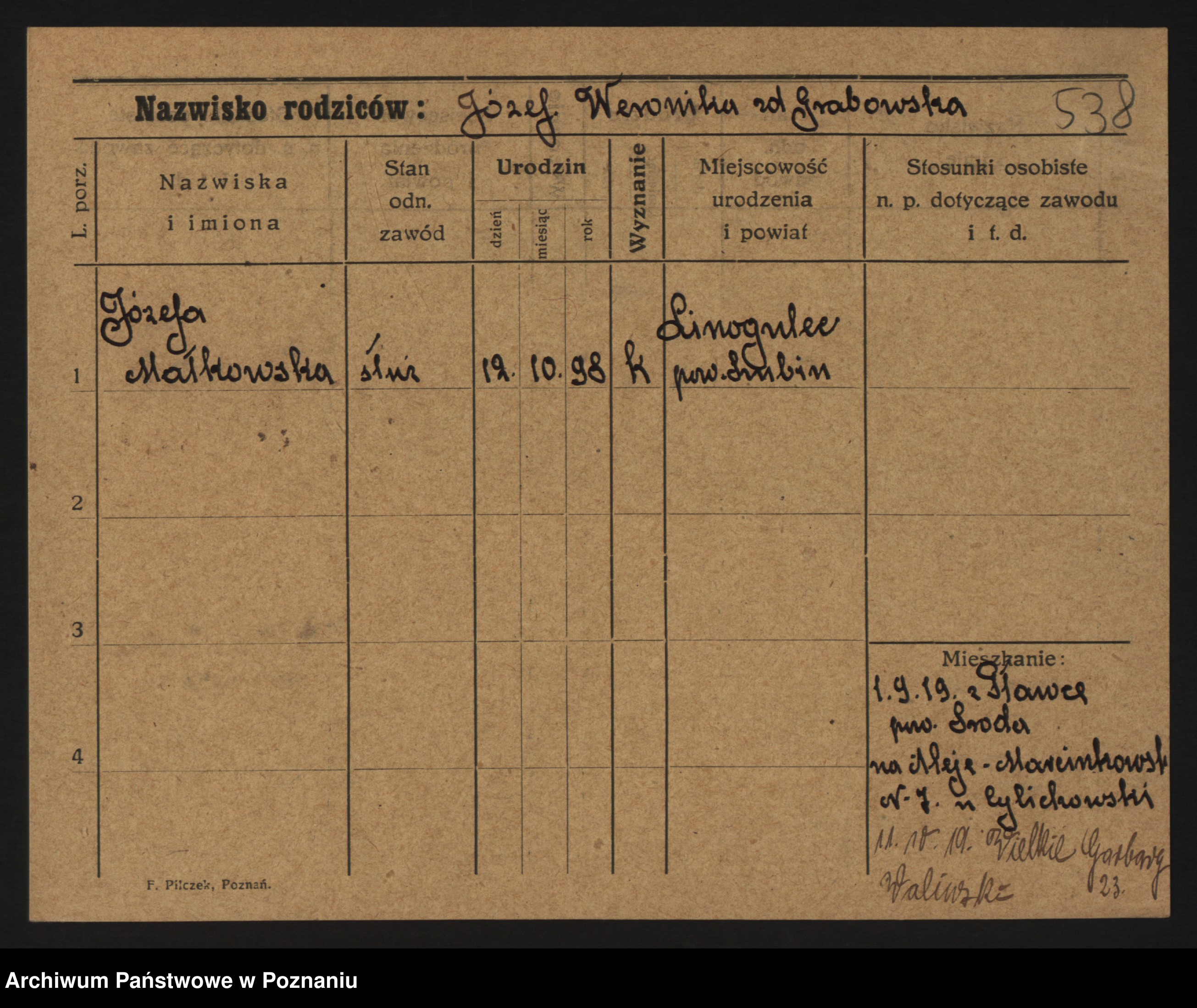 Maliński zd.Frąckowiak, Stefanja