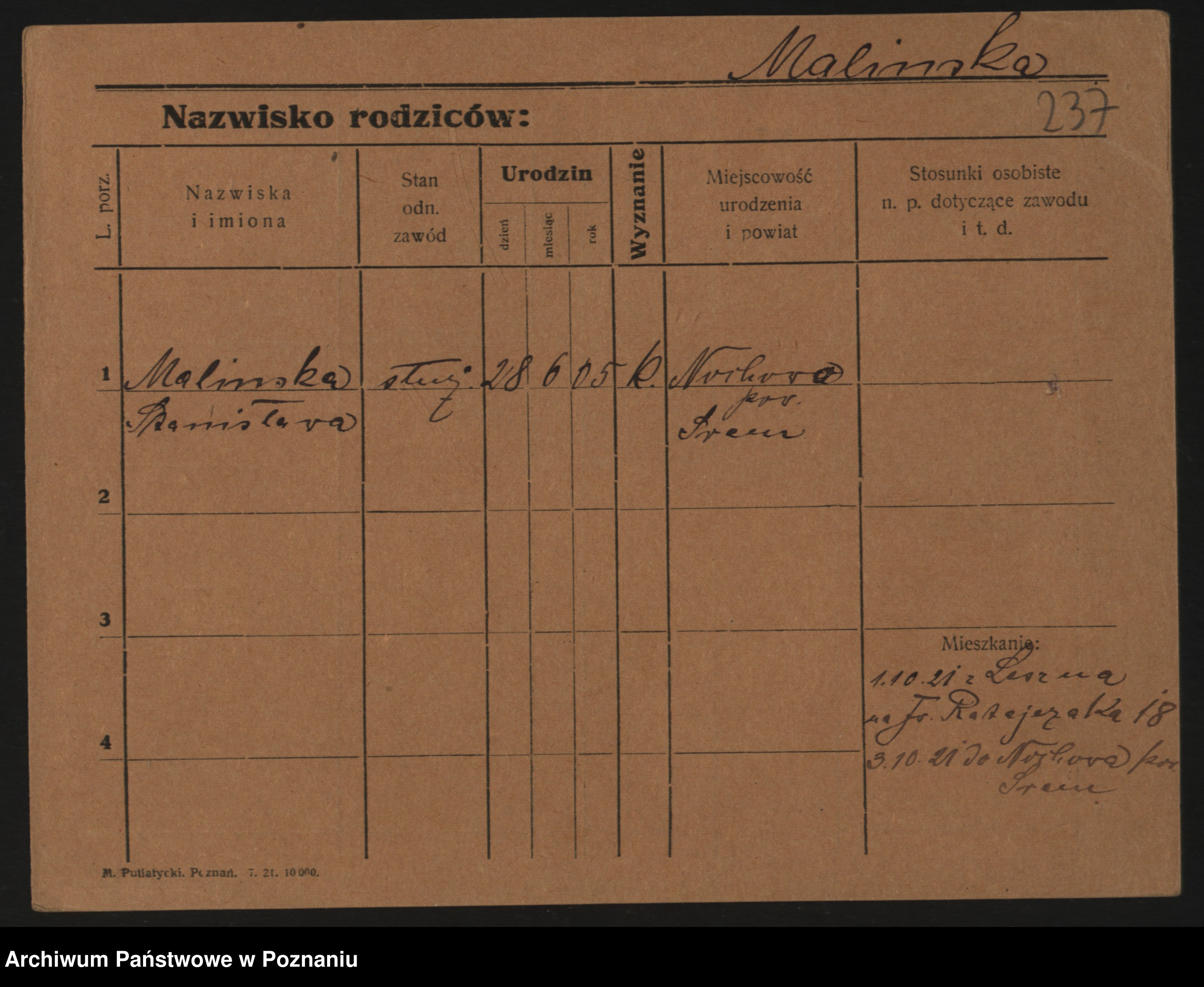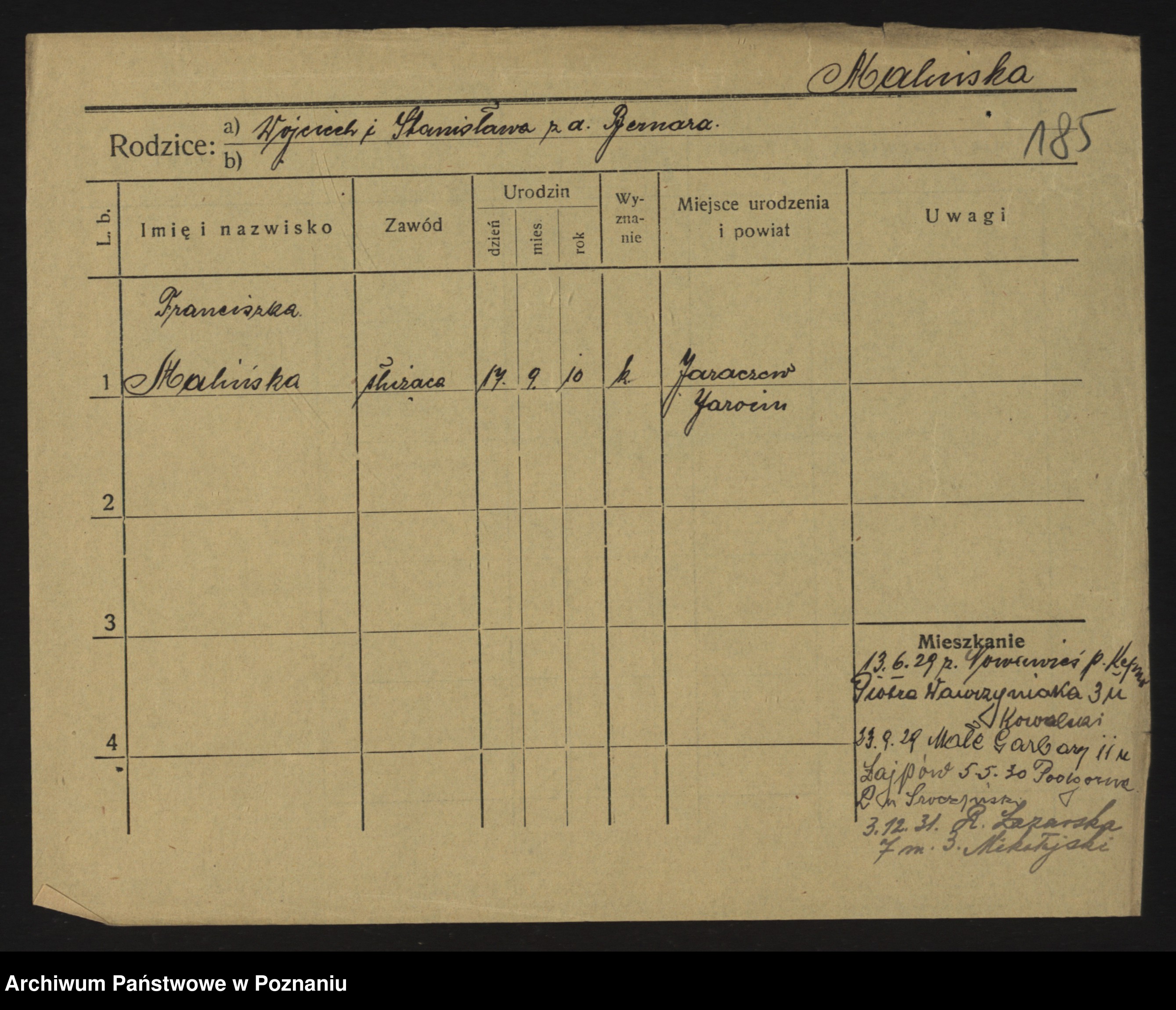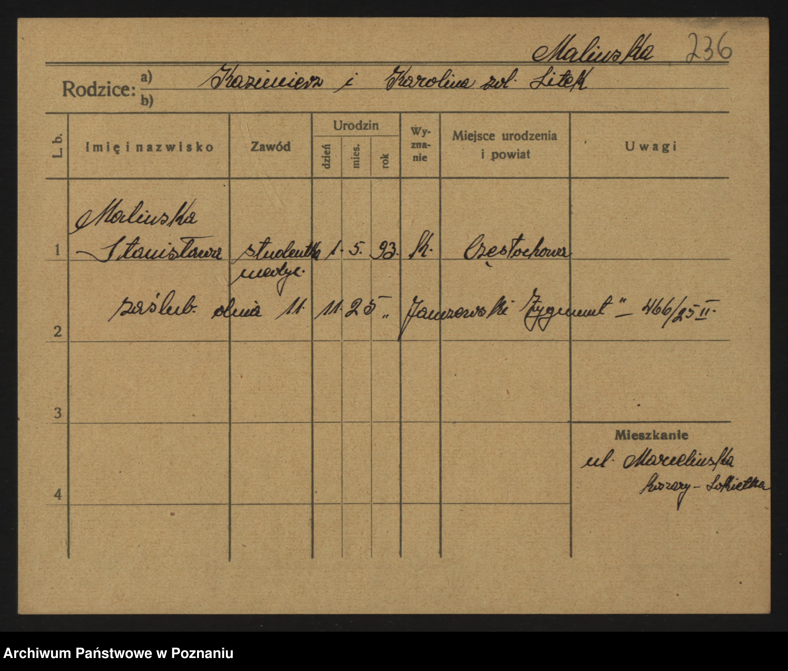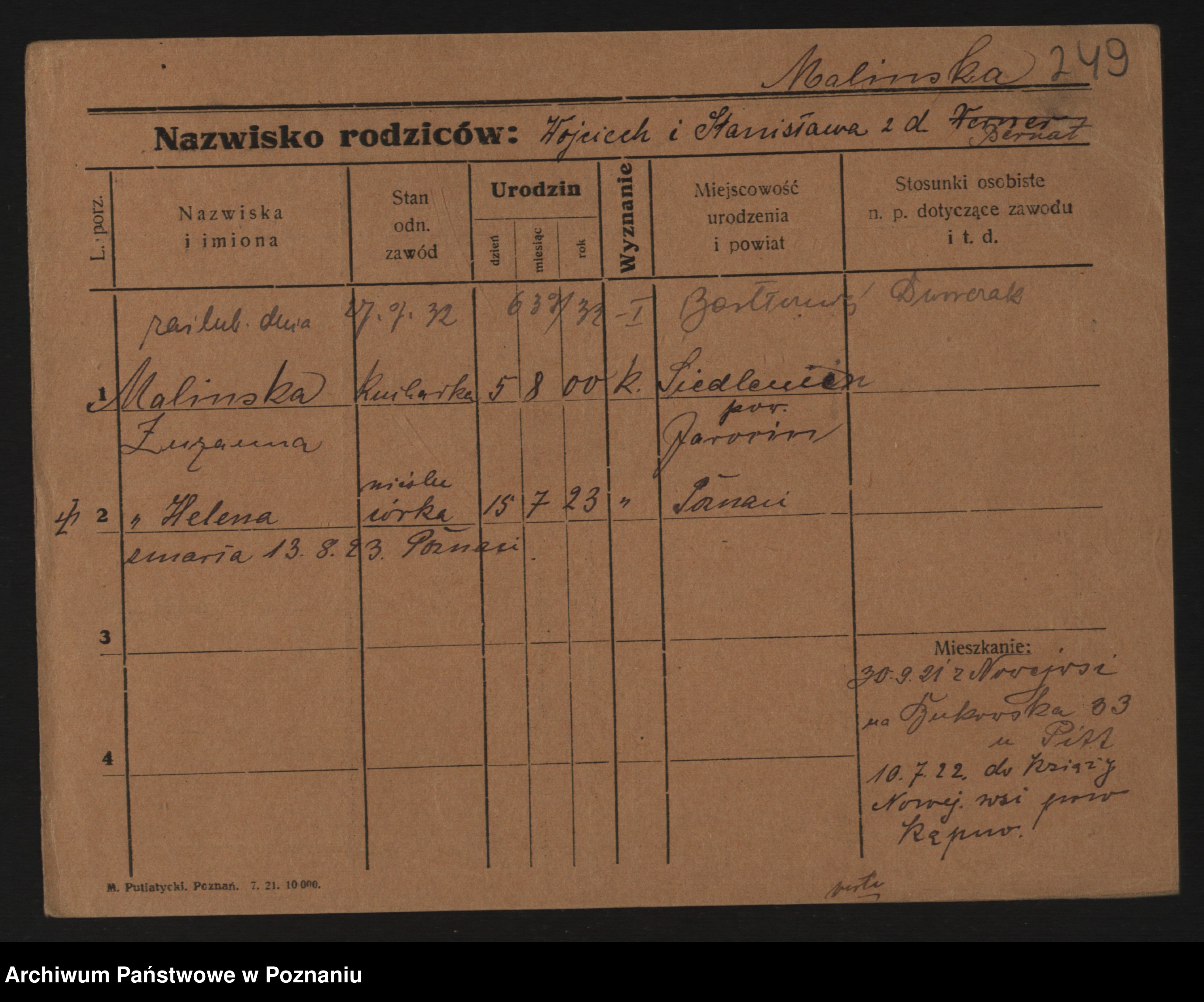 Maliński, Stanisława