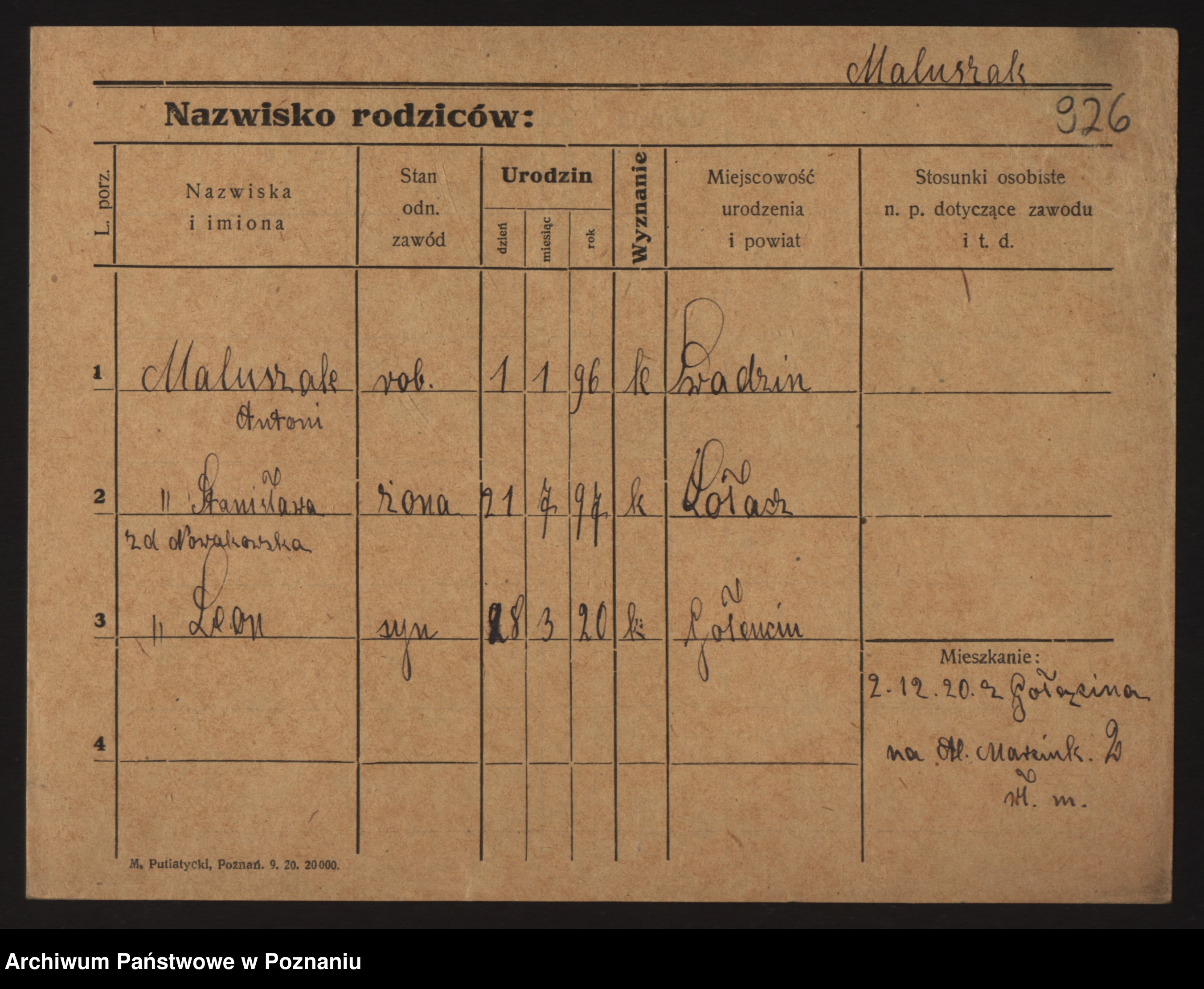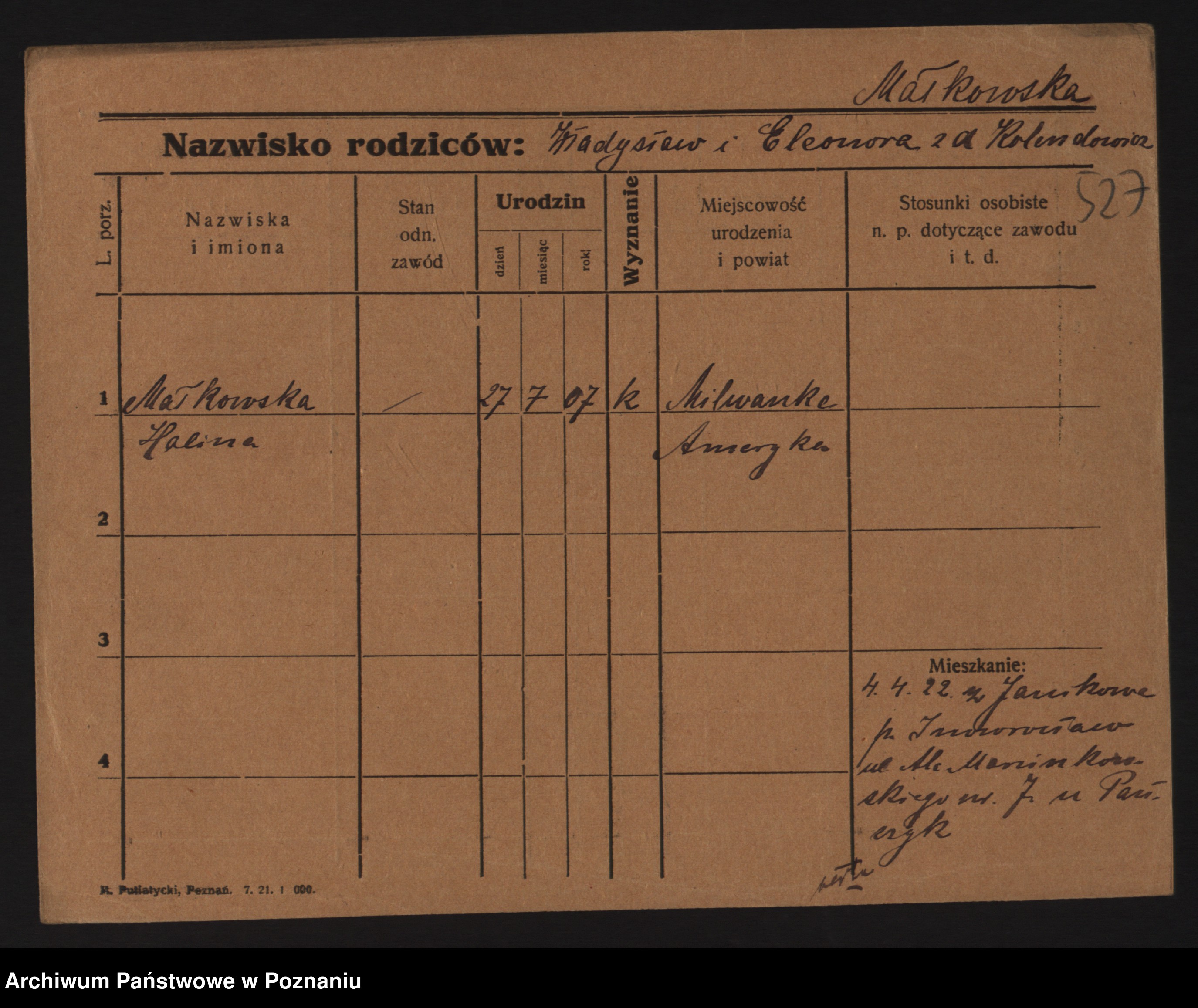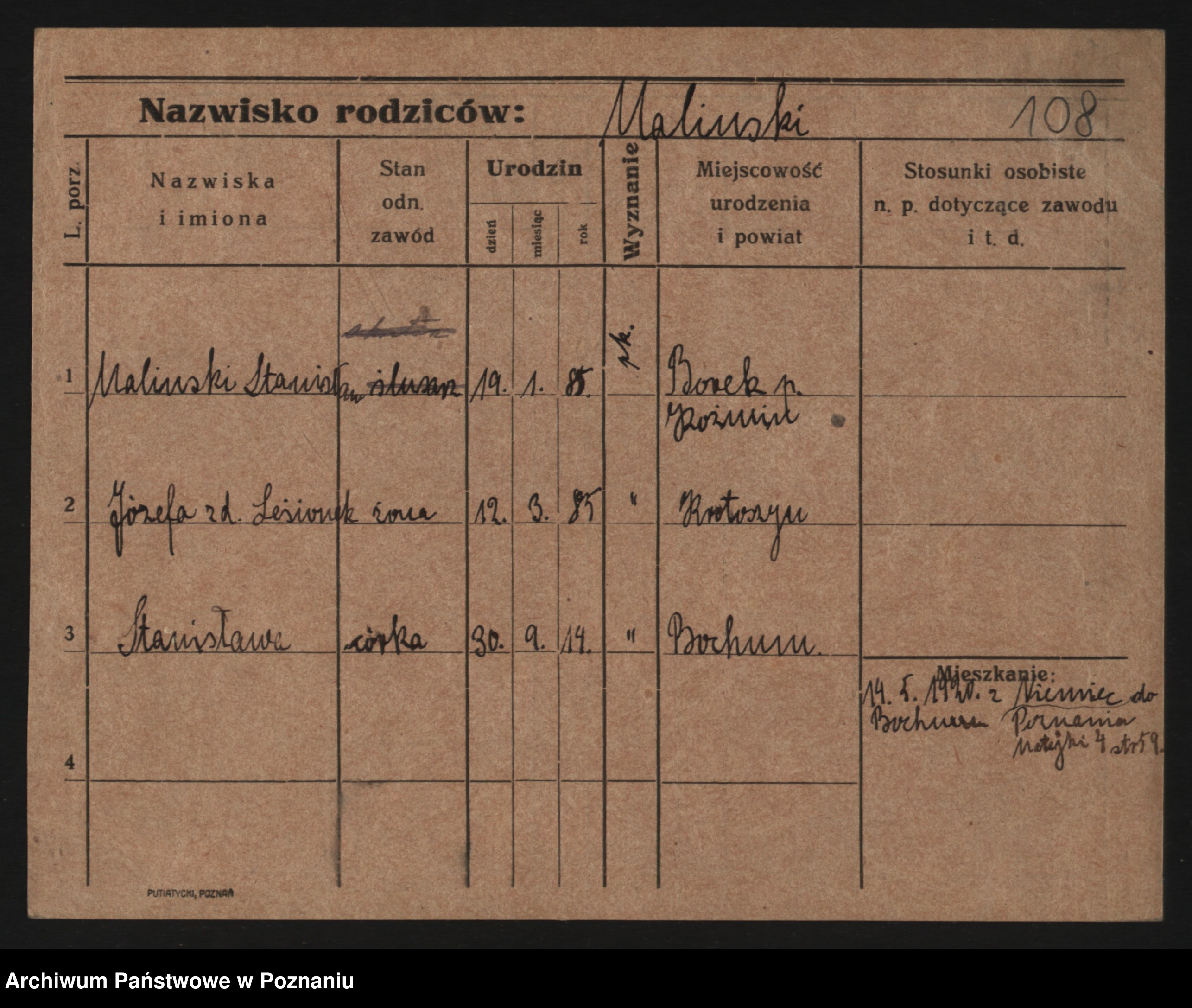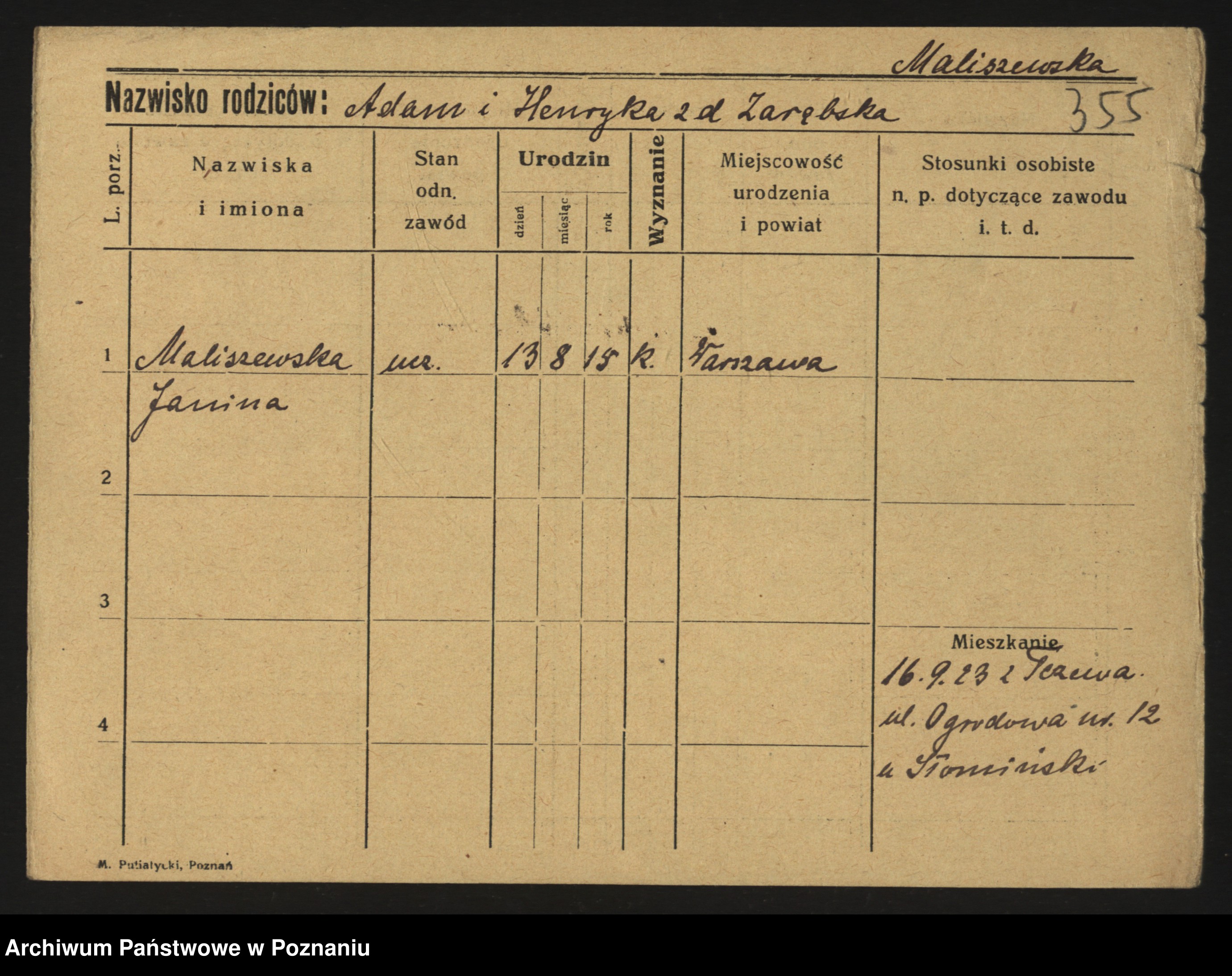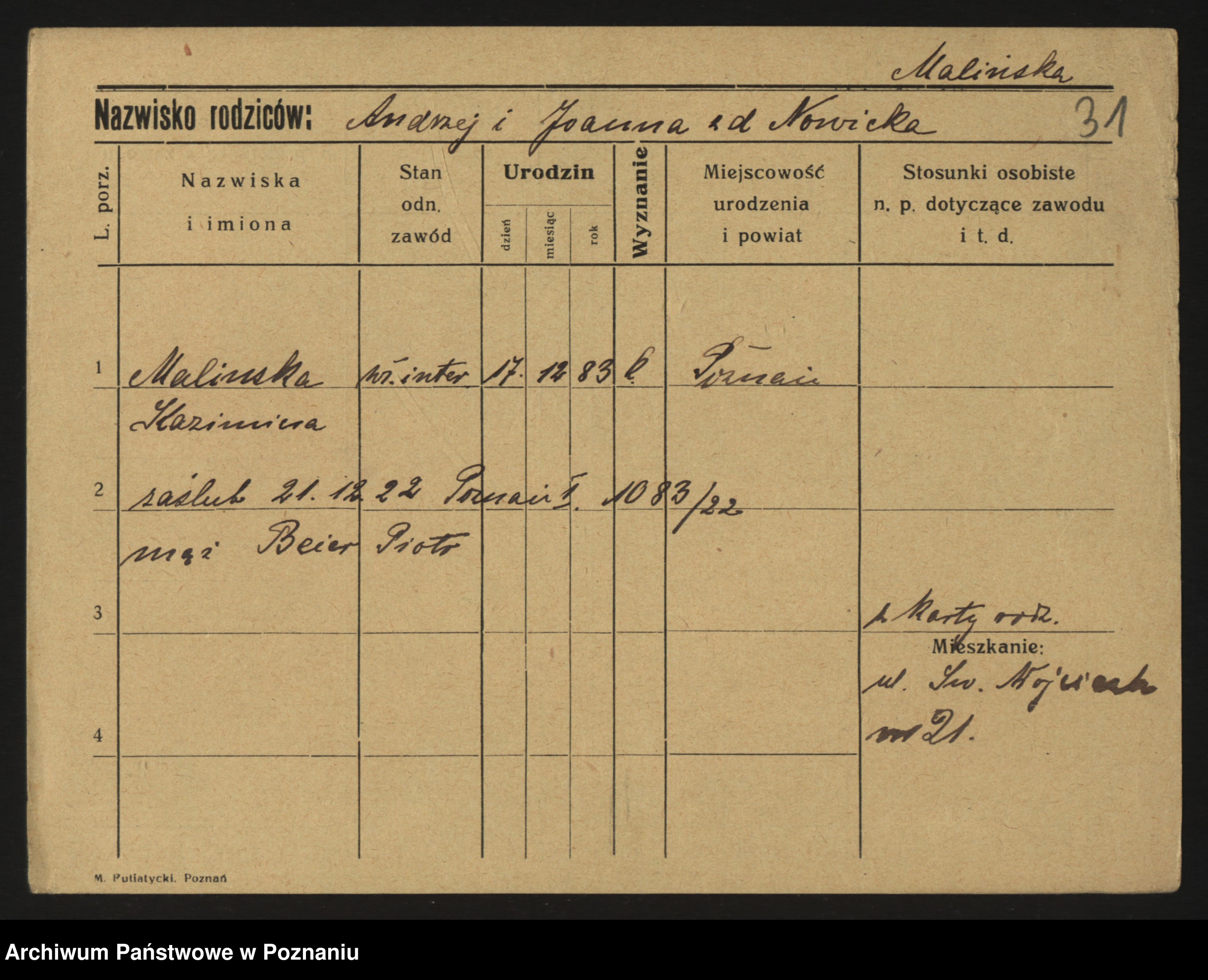 Maliński, Stanisława