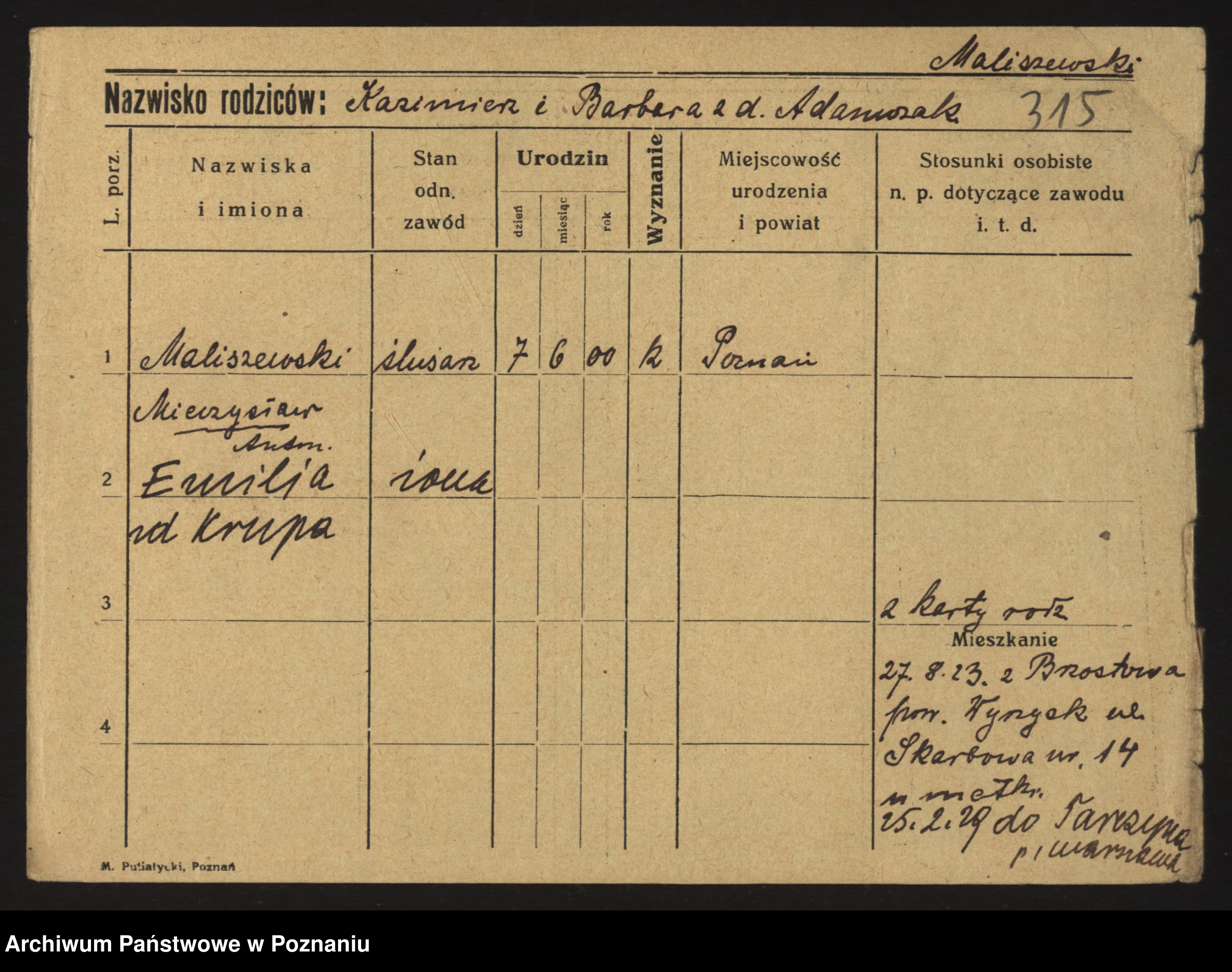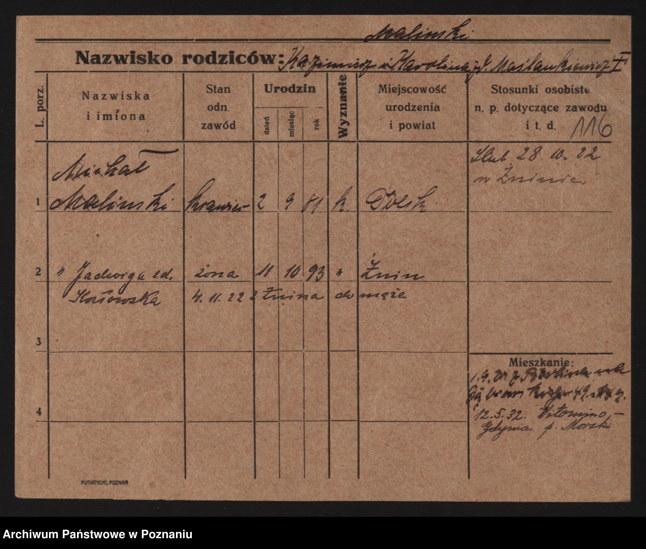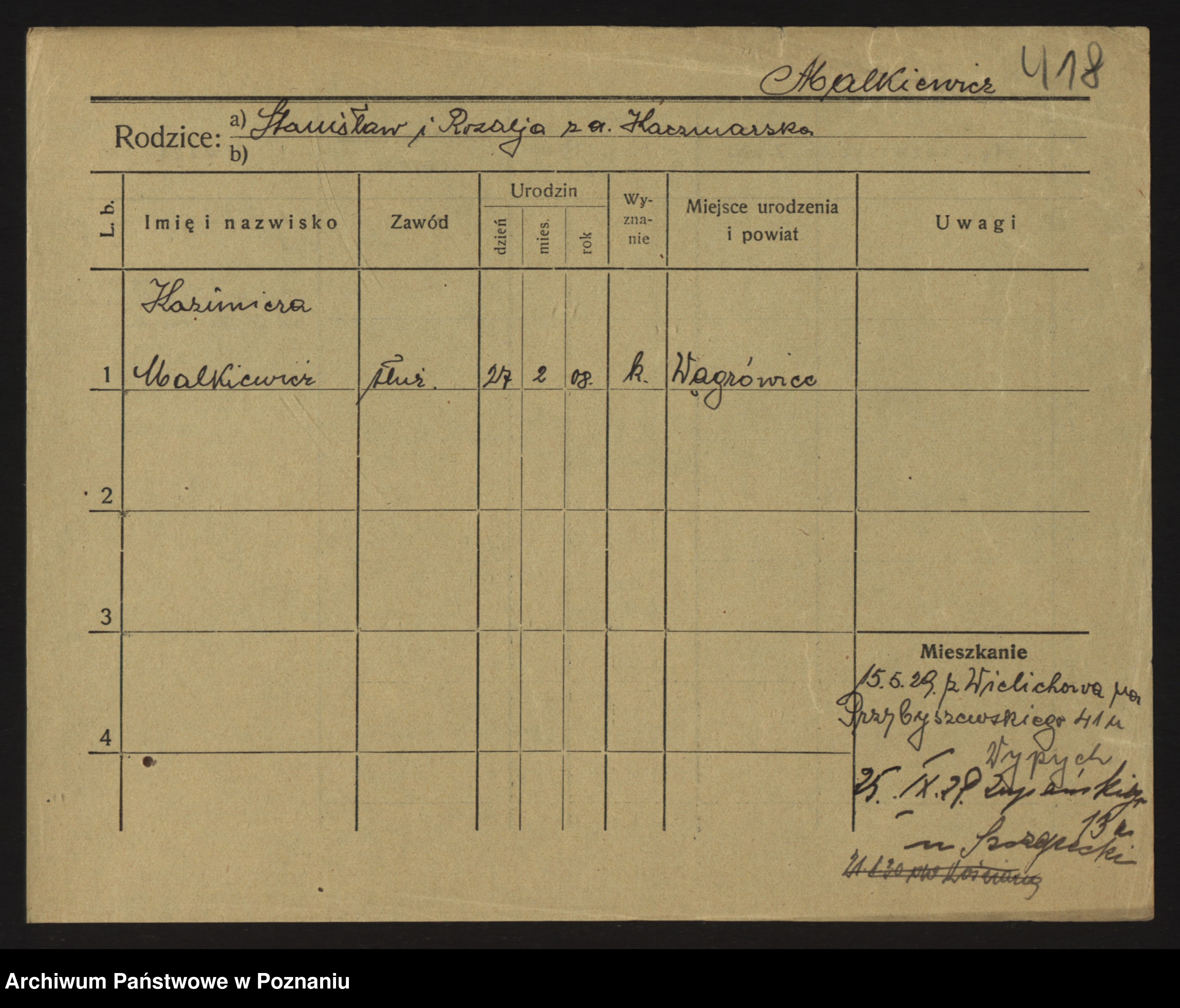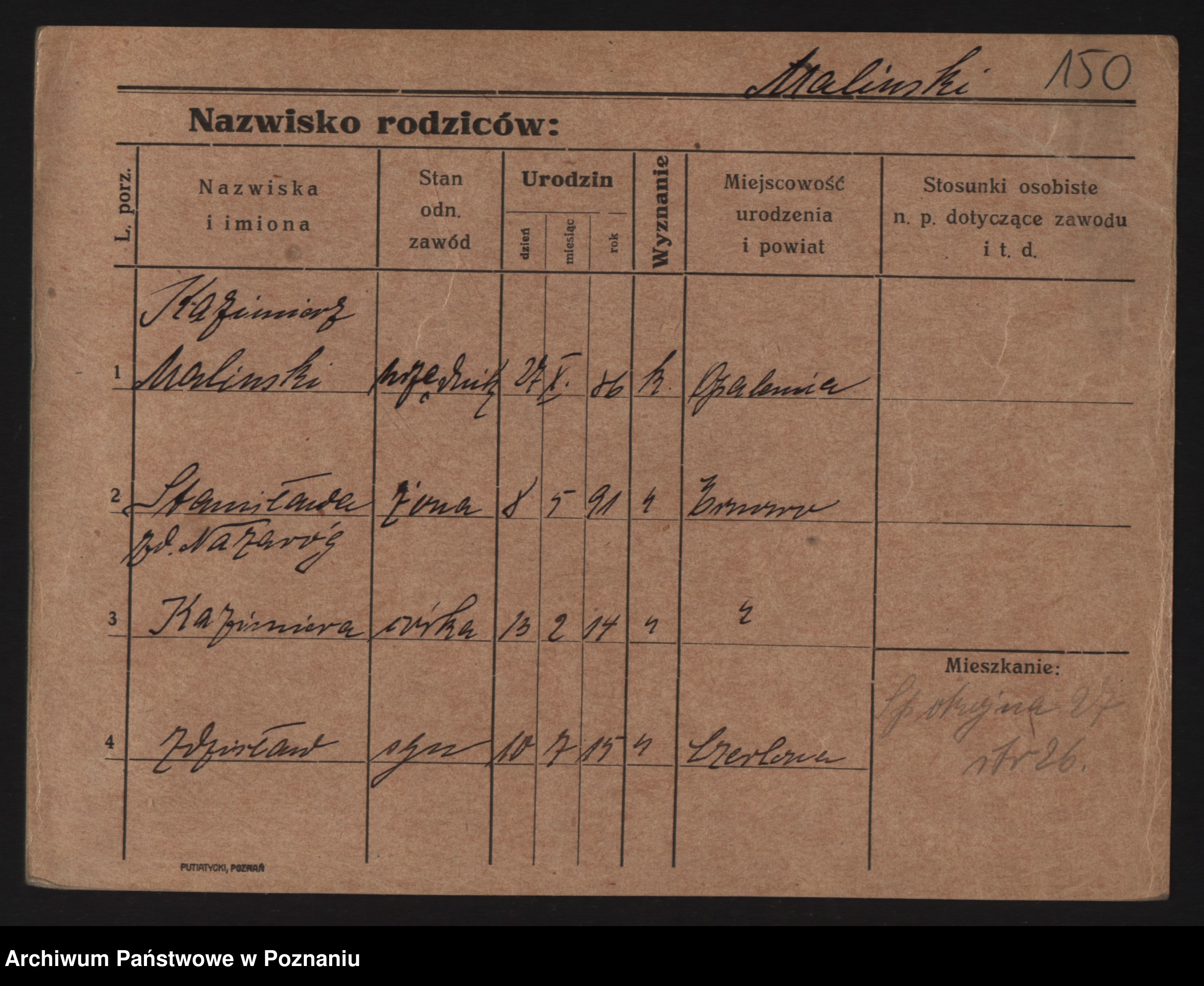 Maliński, Kazmira