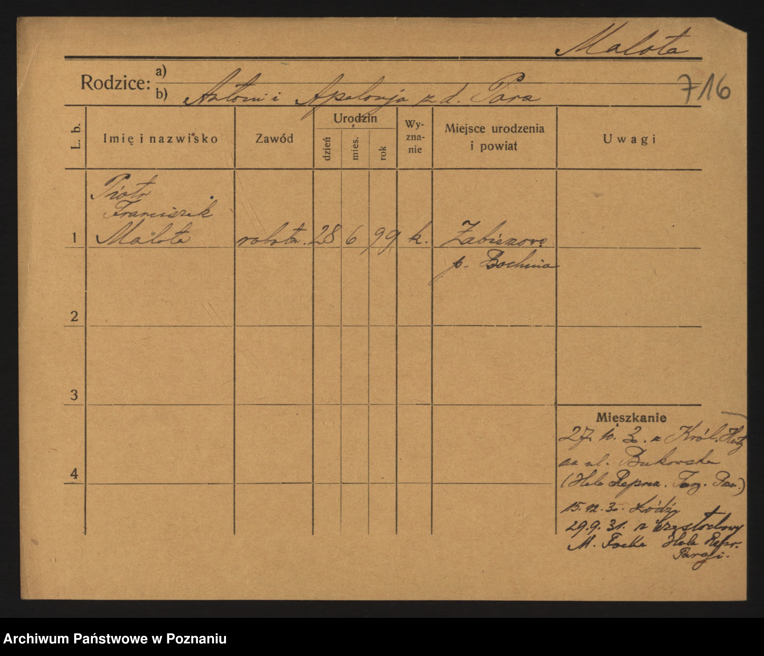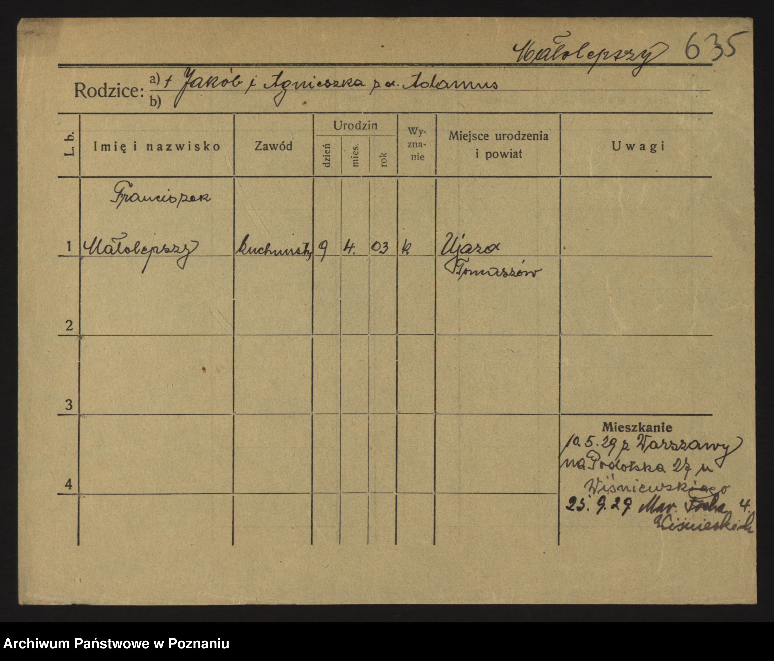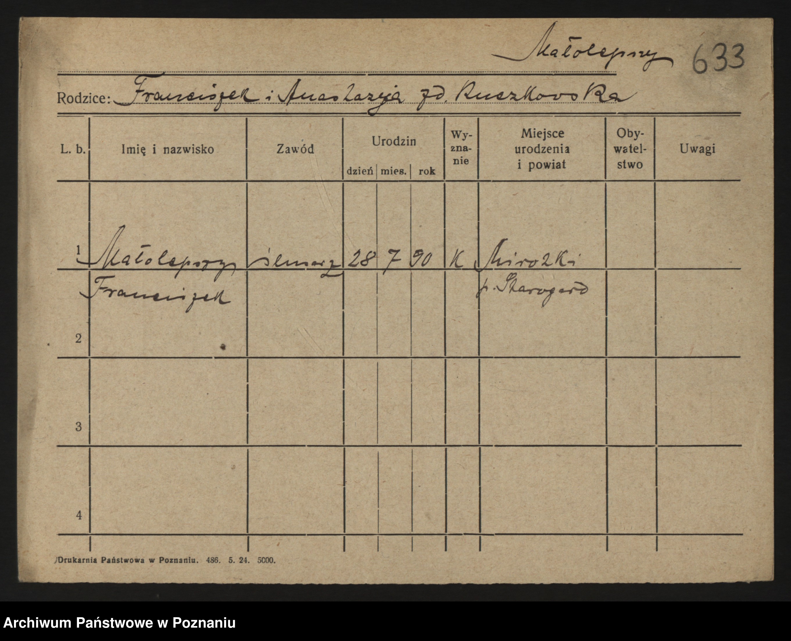 Małyszka zd. Serba, Franciszek