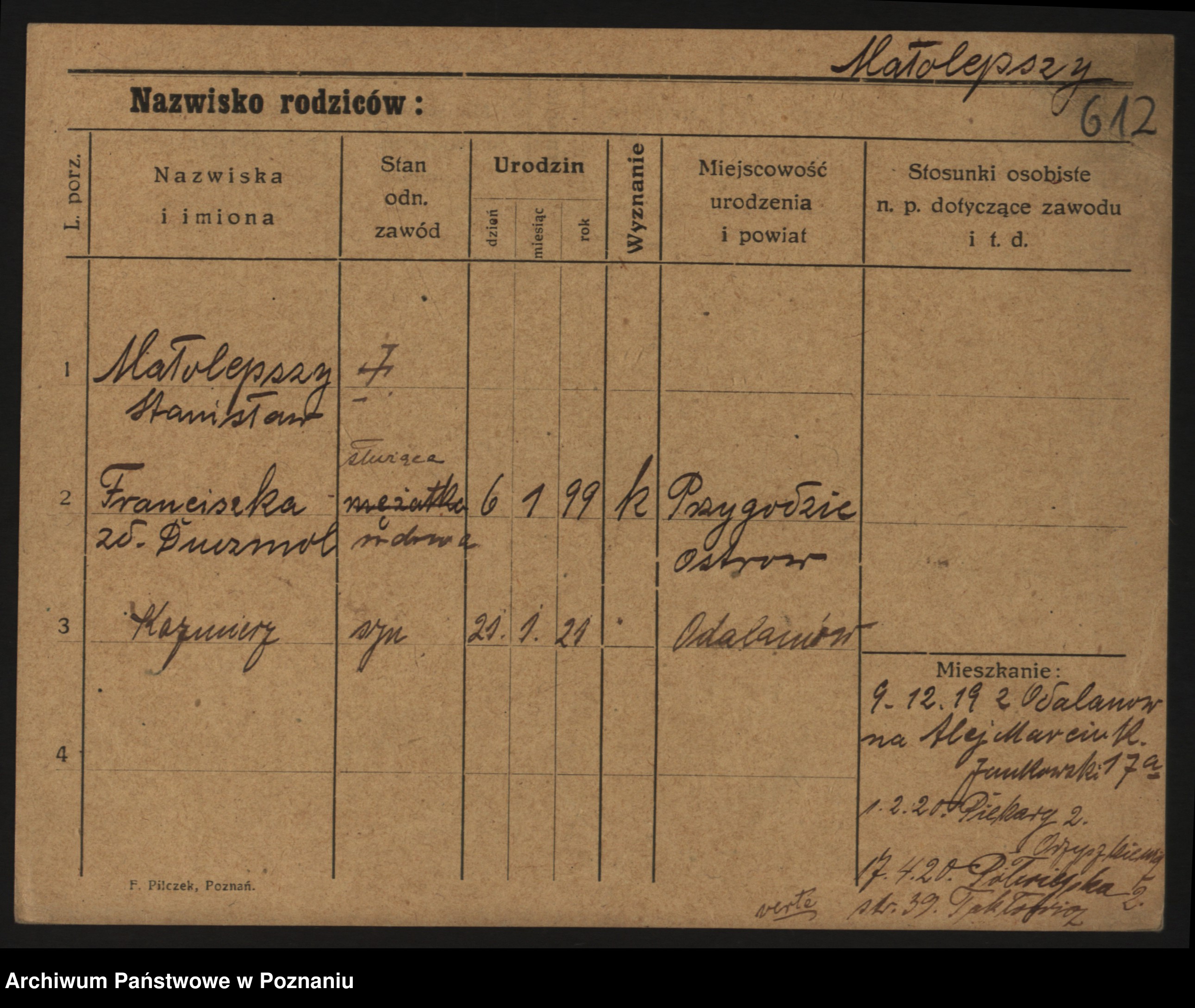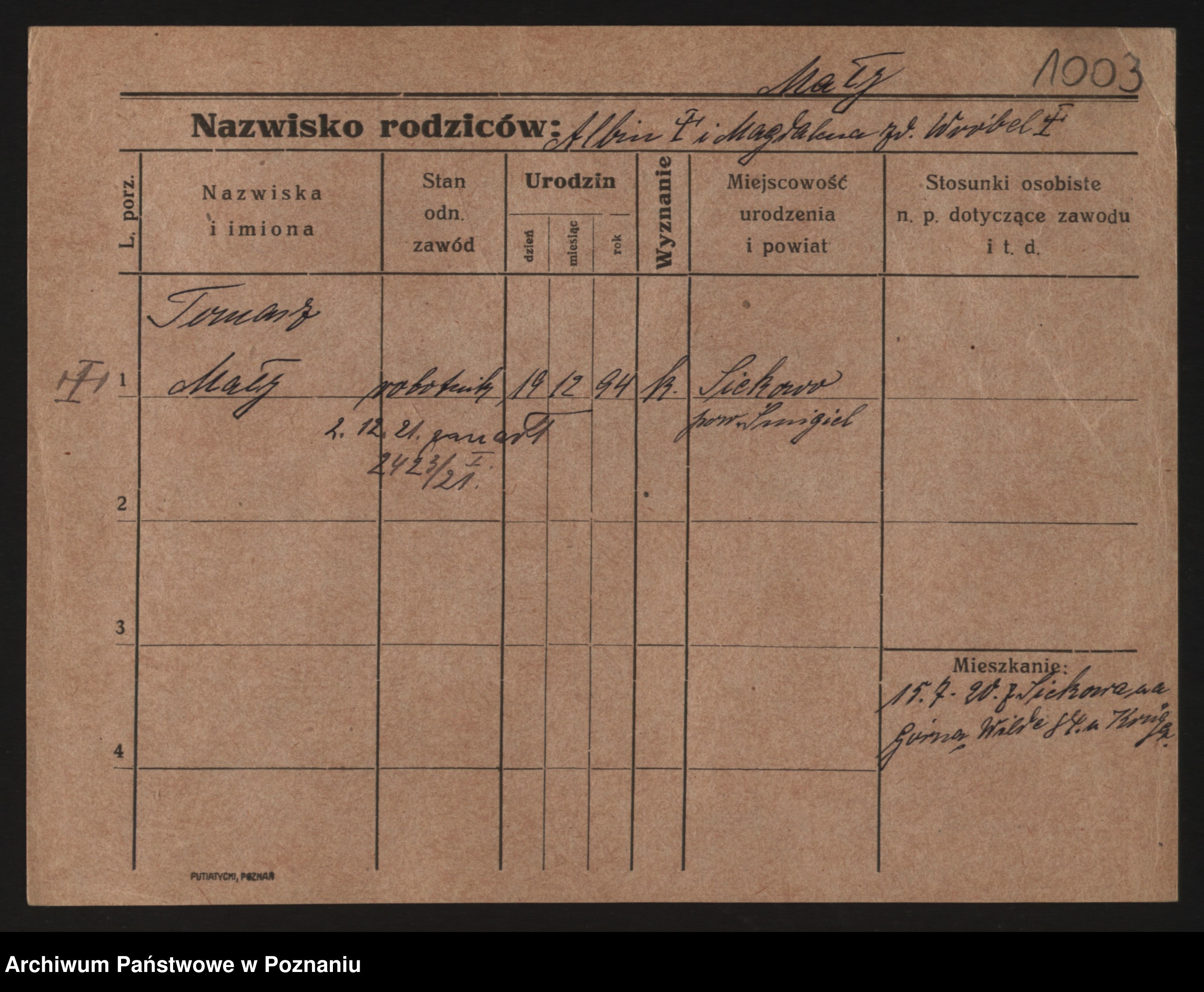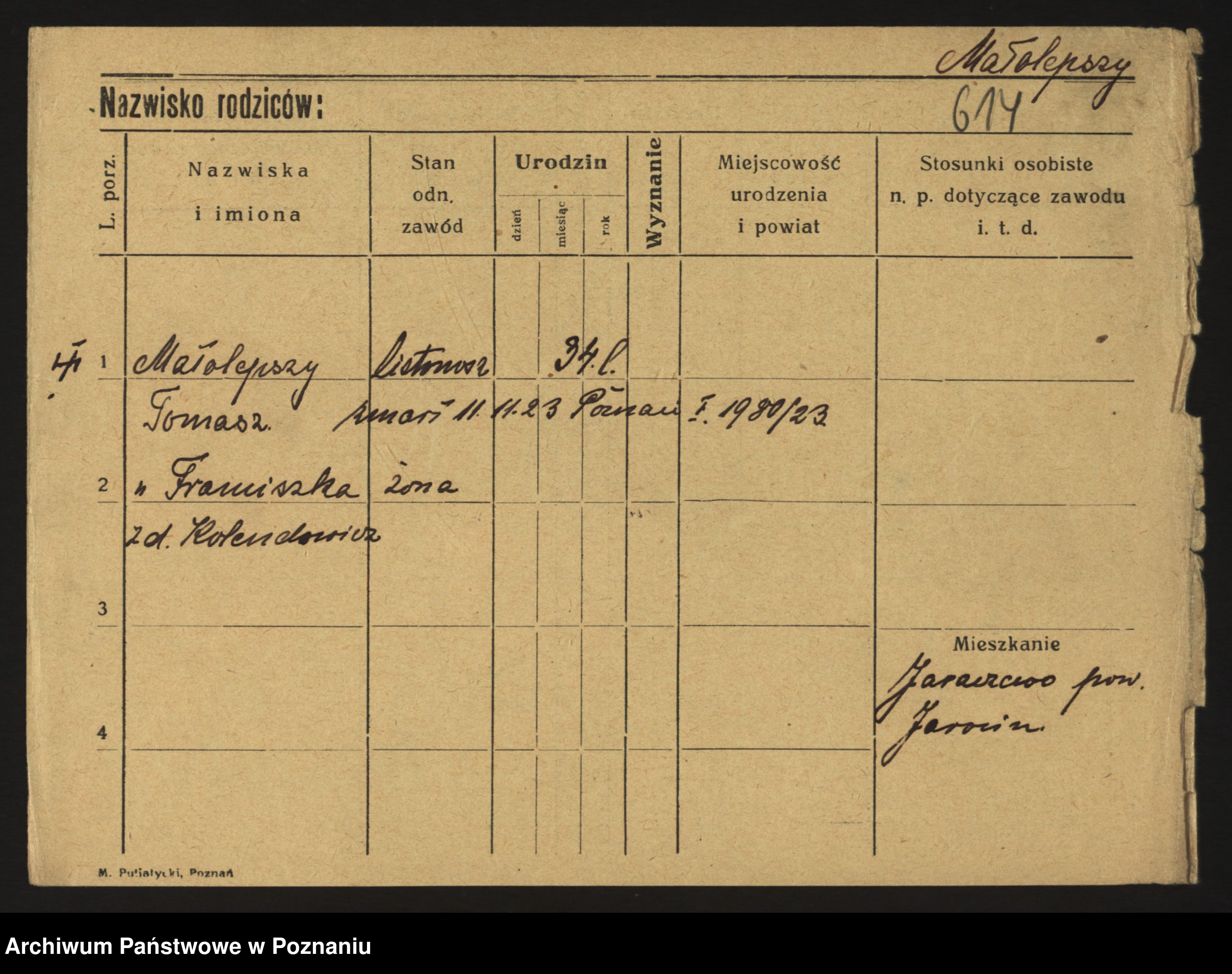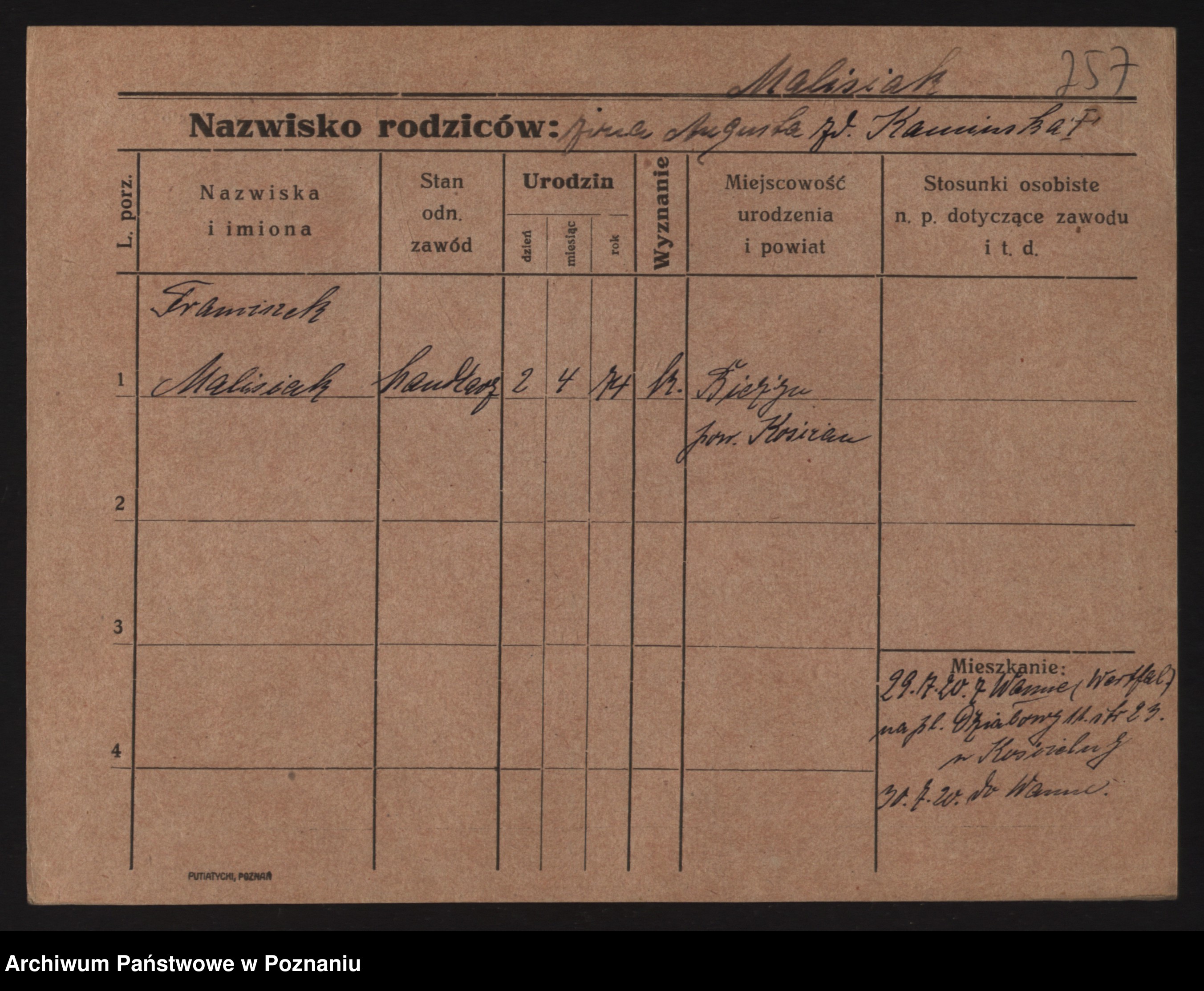 Małyszka zd. Serba, Franciszek