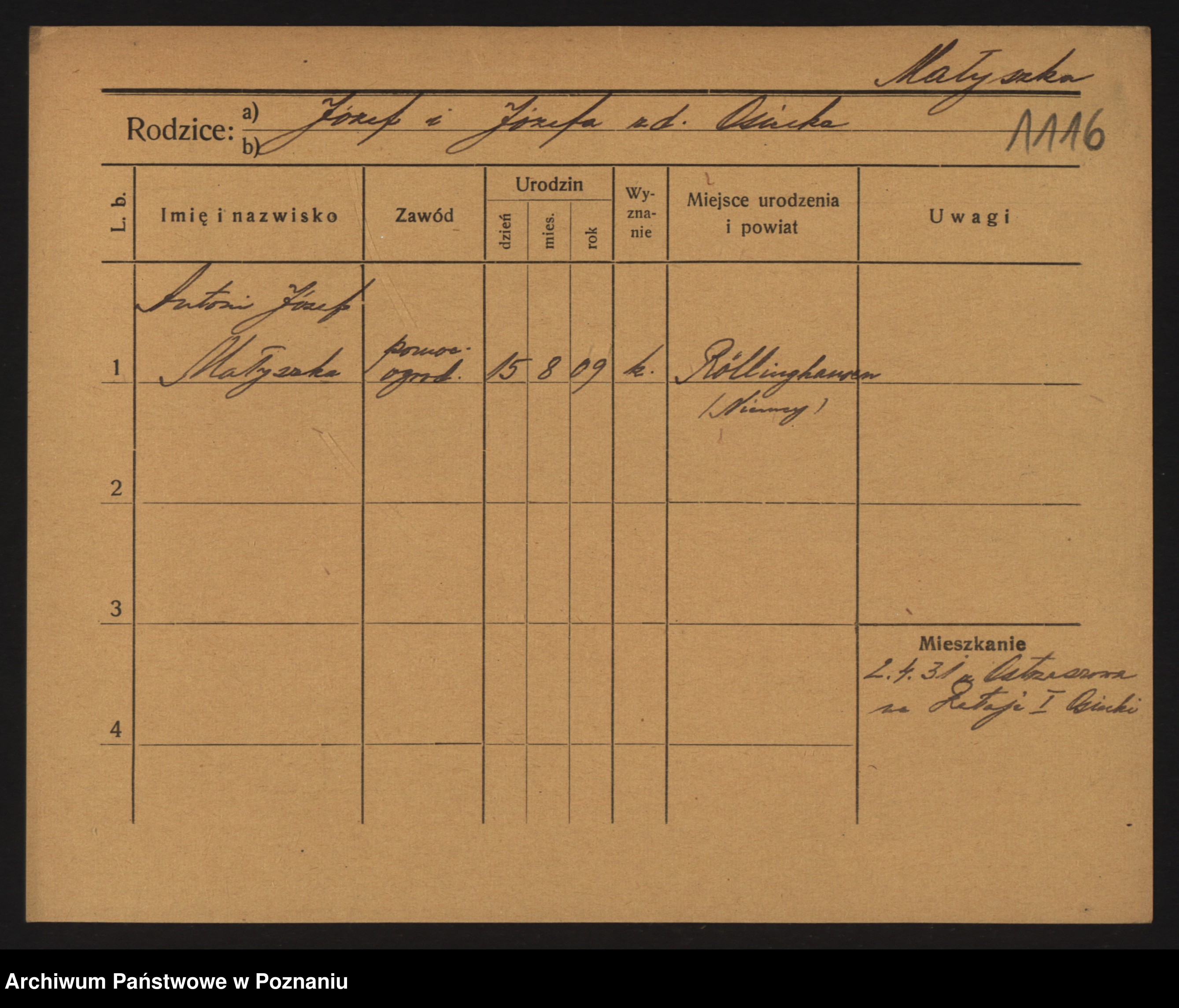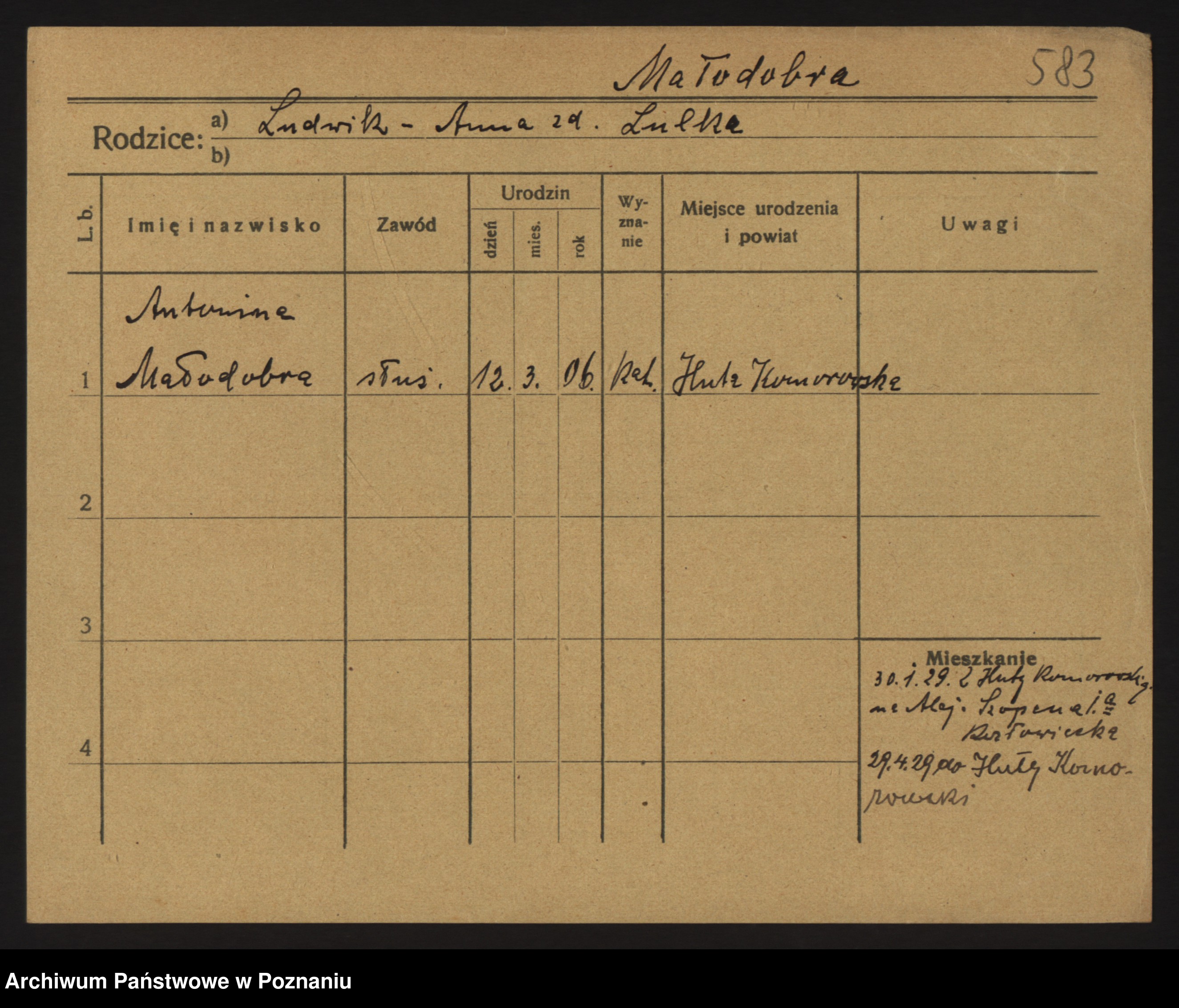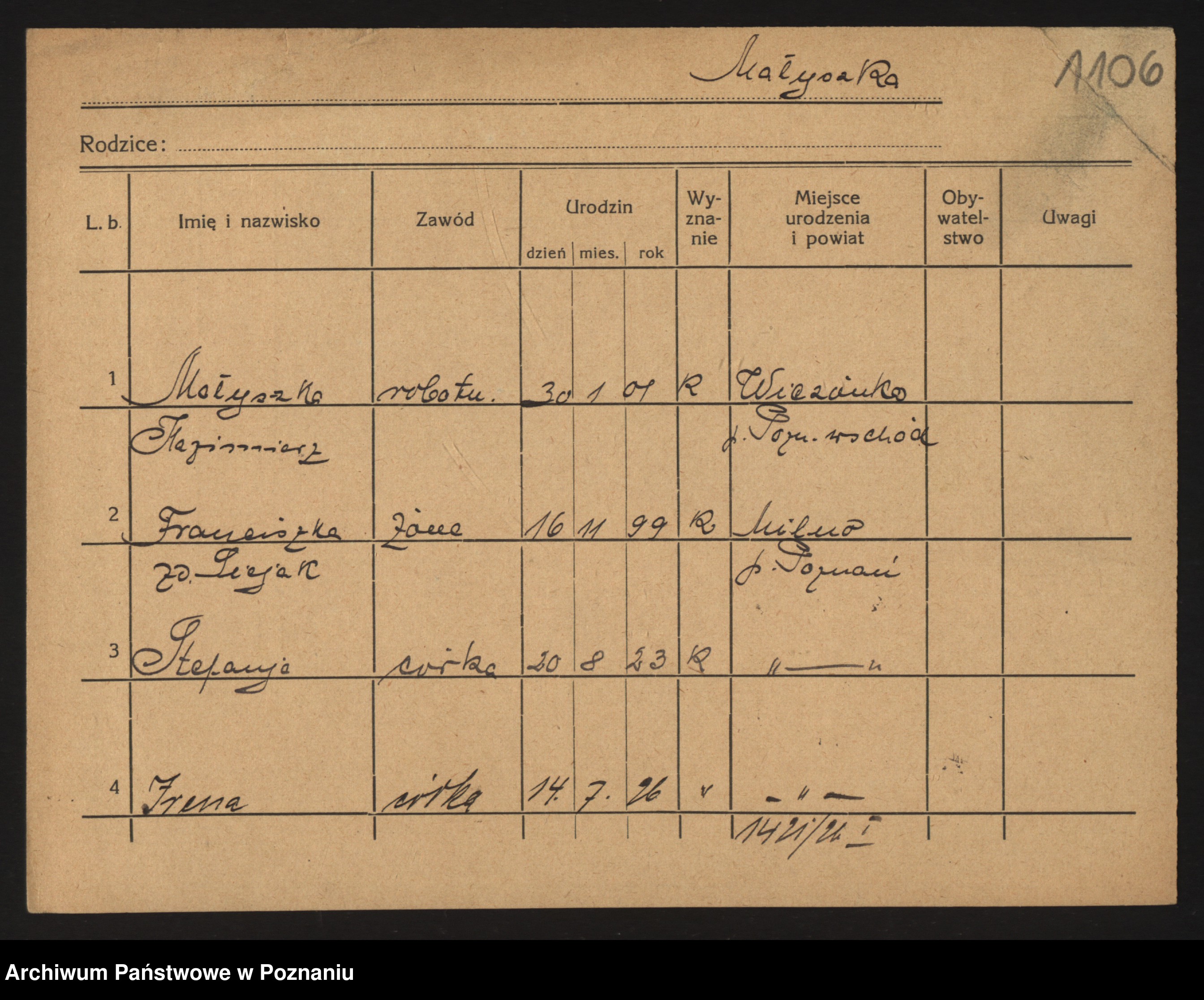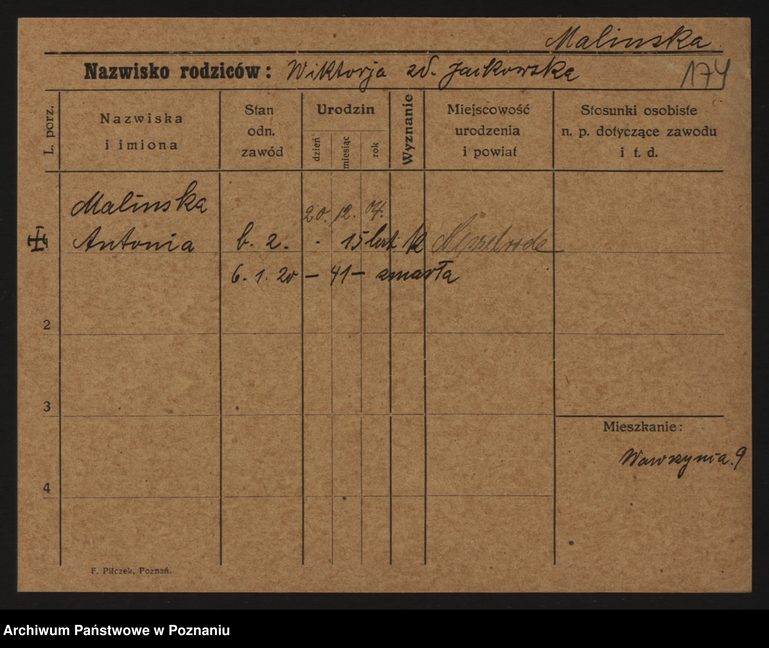 Malyszka zd. Czarnecka, Antonie