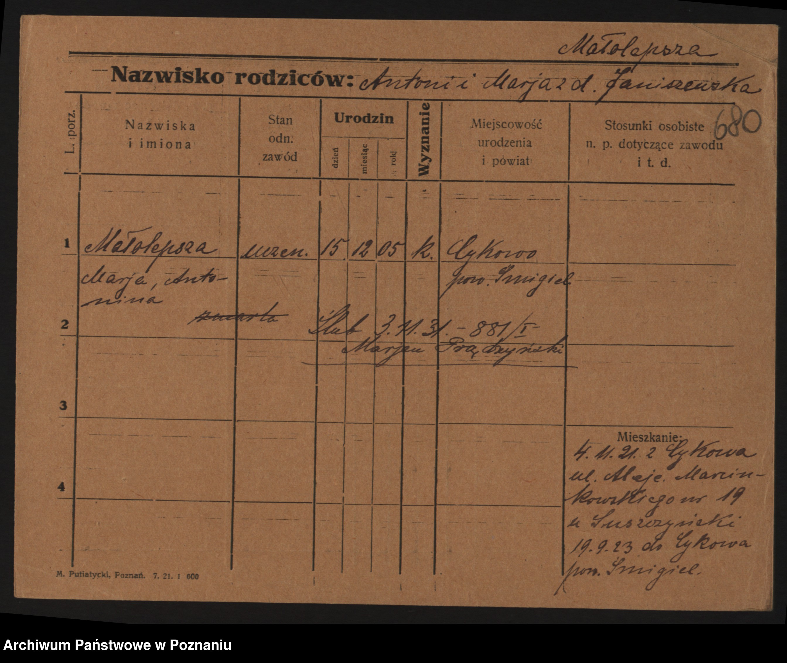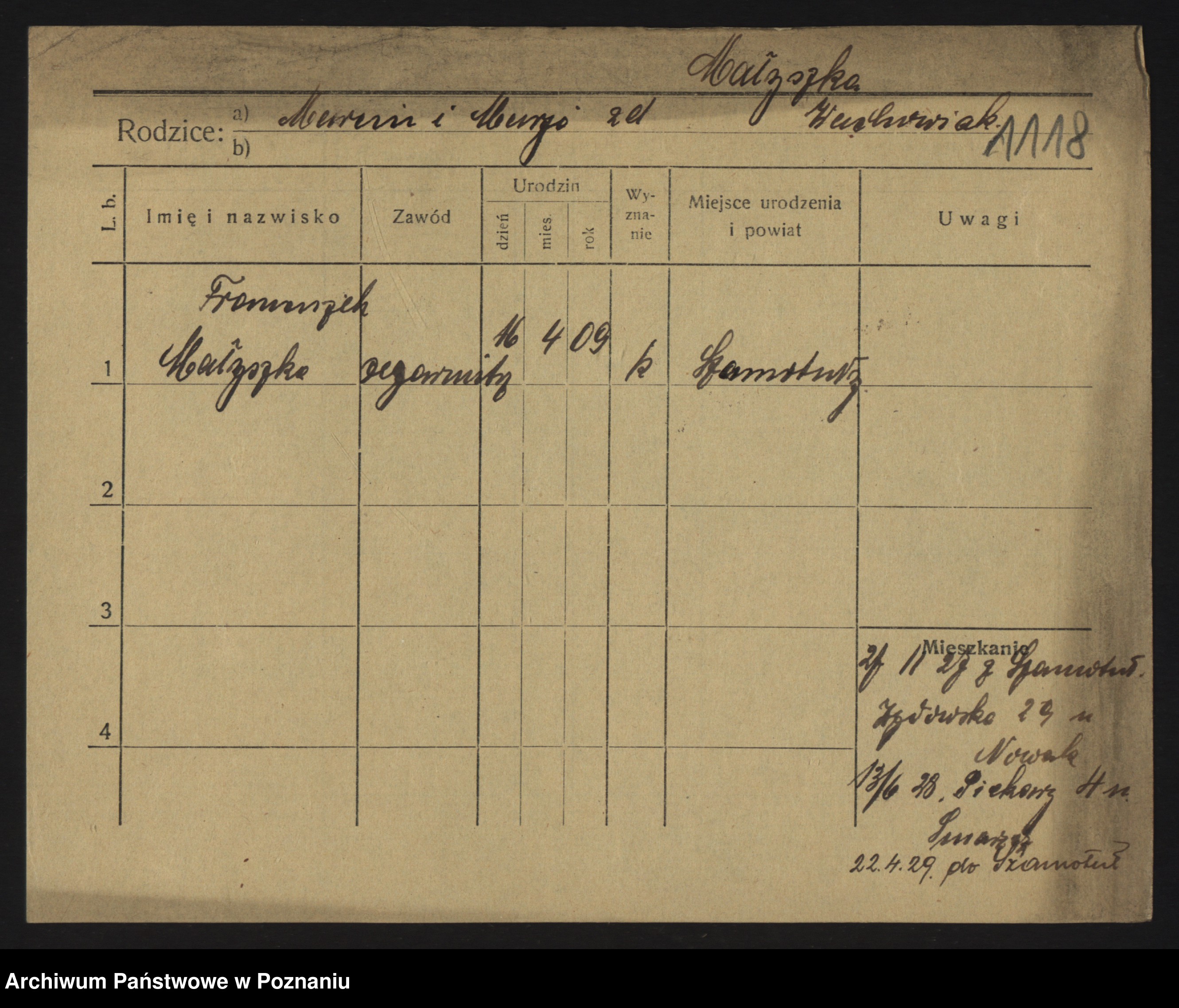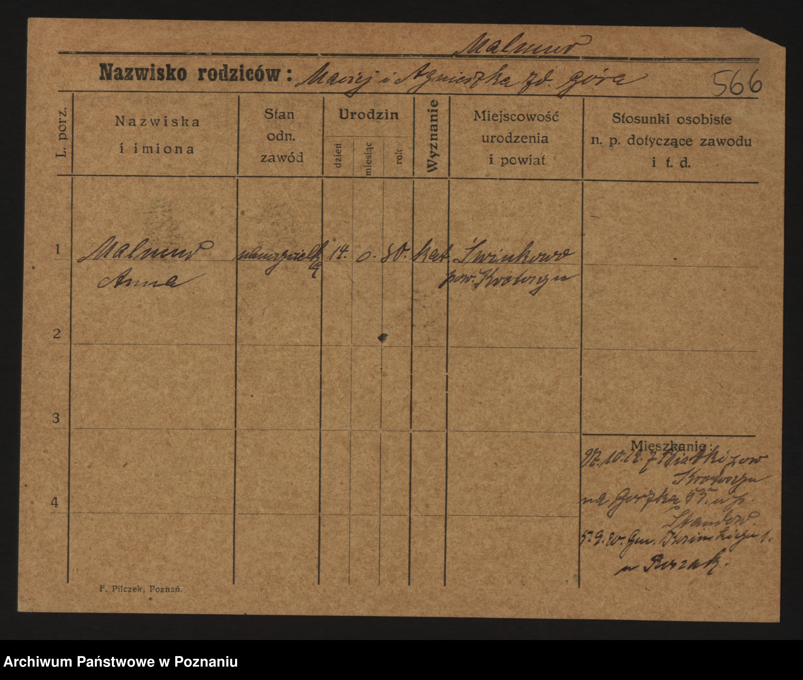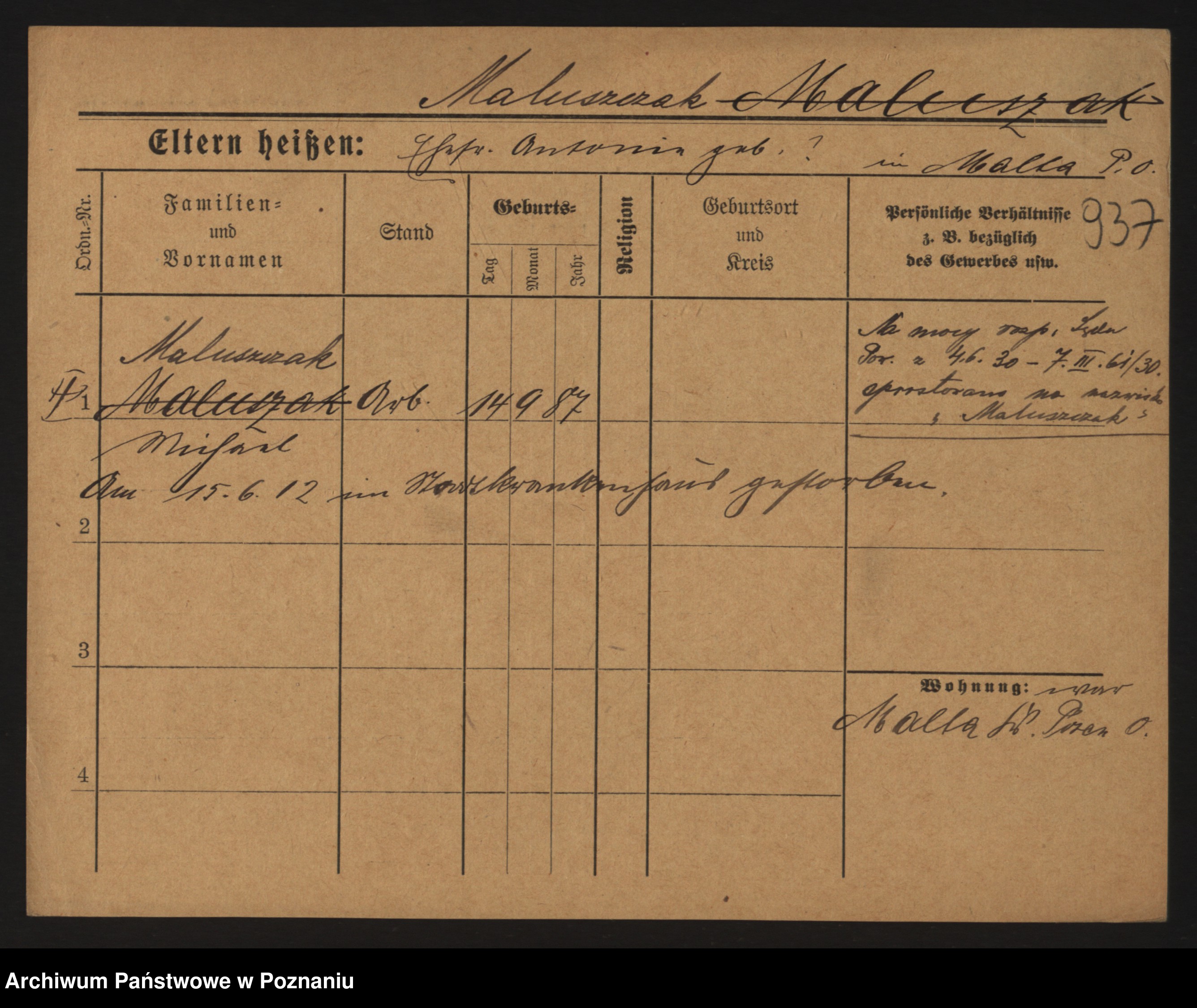 Malyszka zd. Czarnecka, Antonie