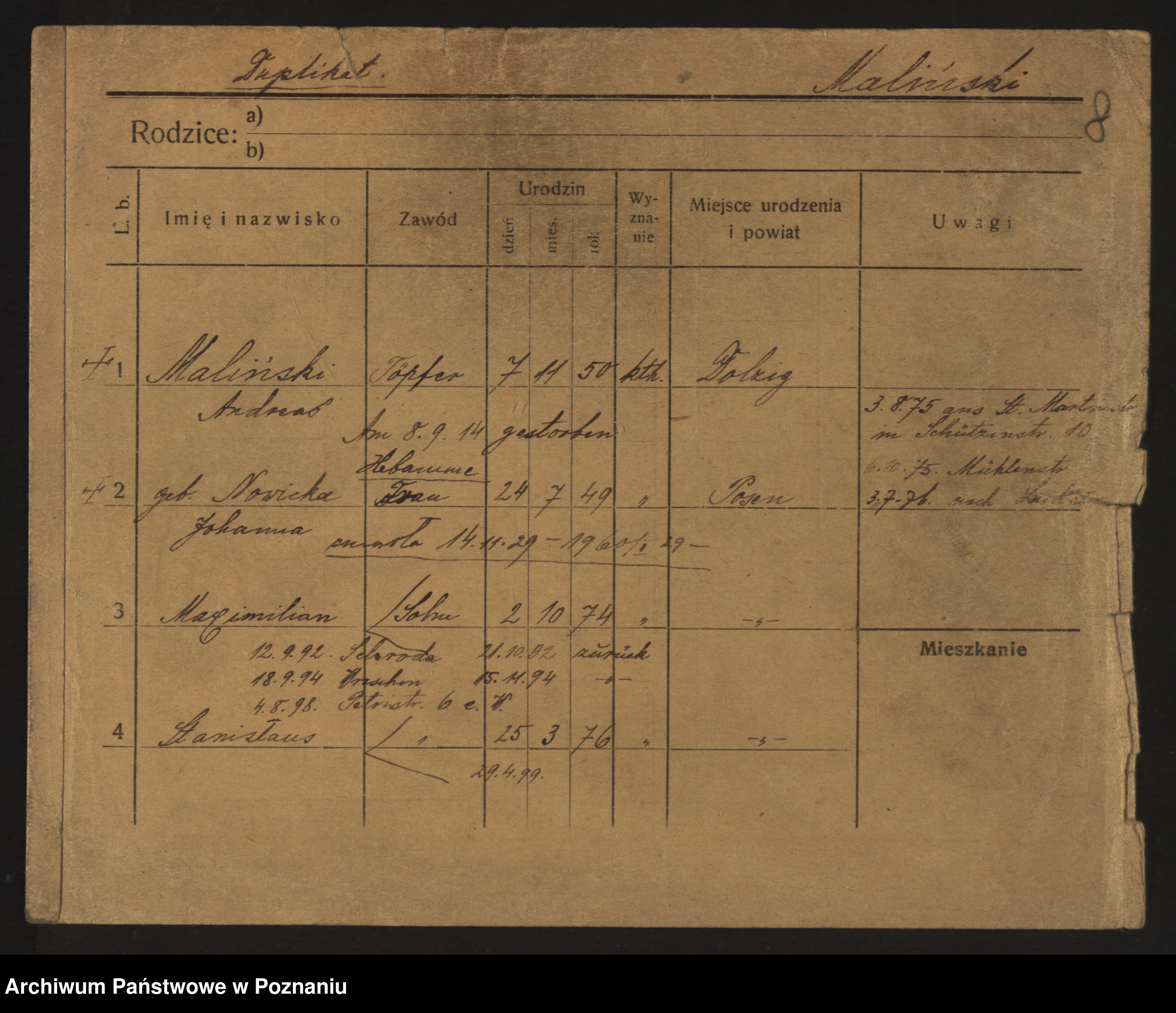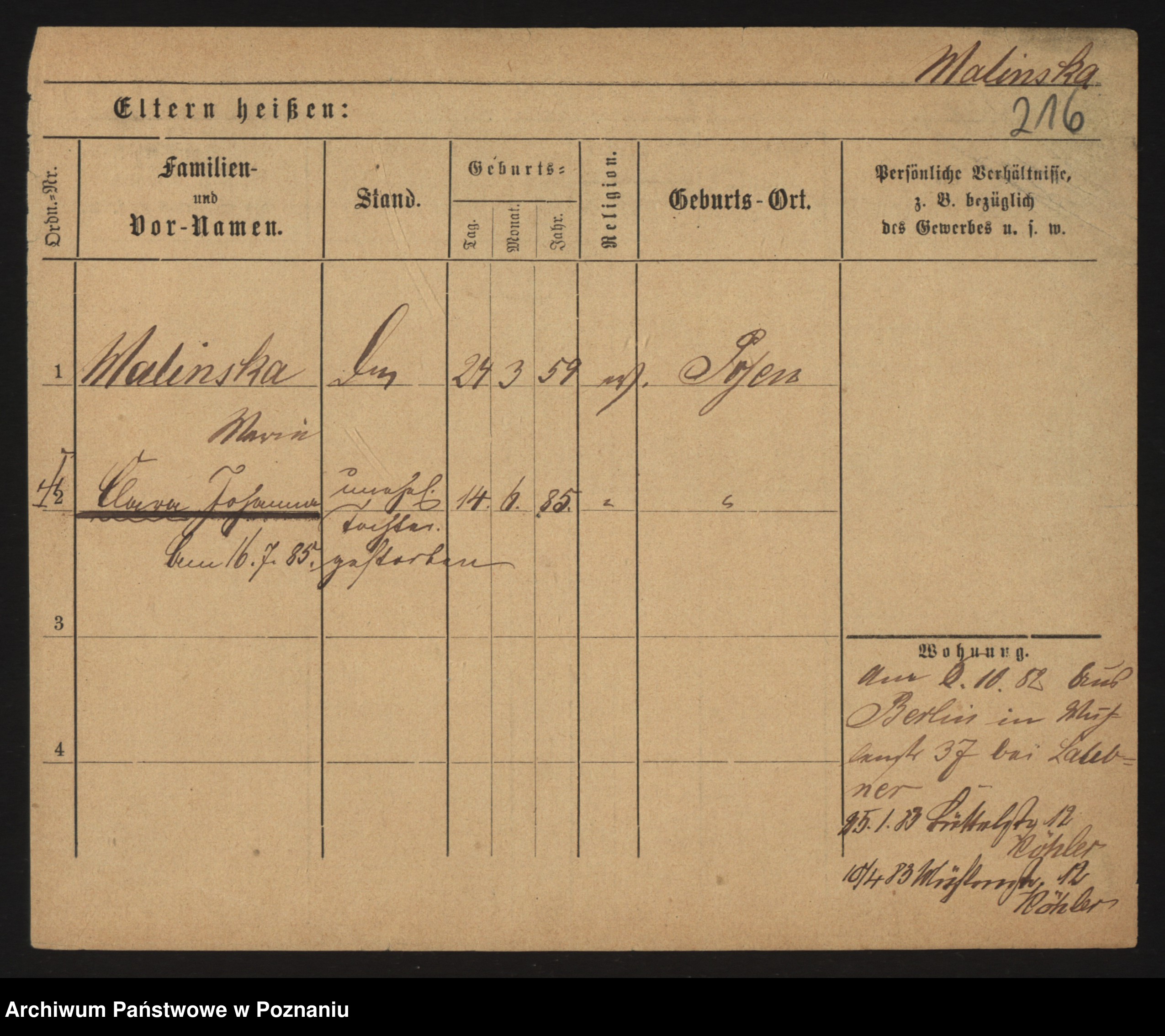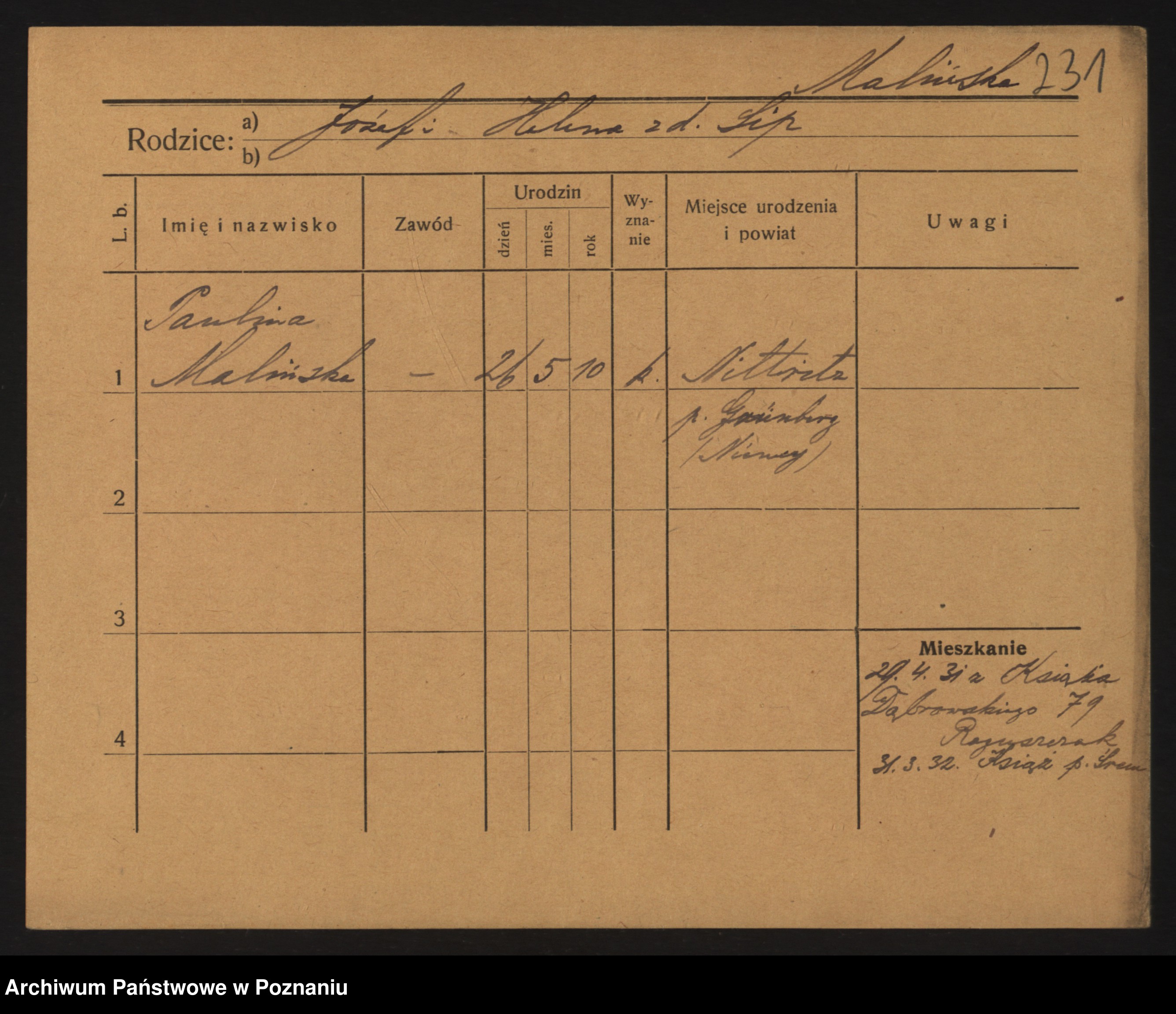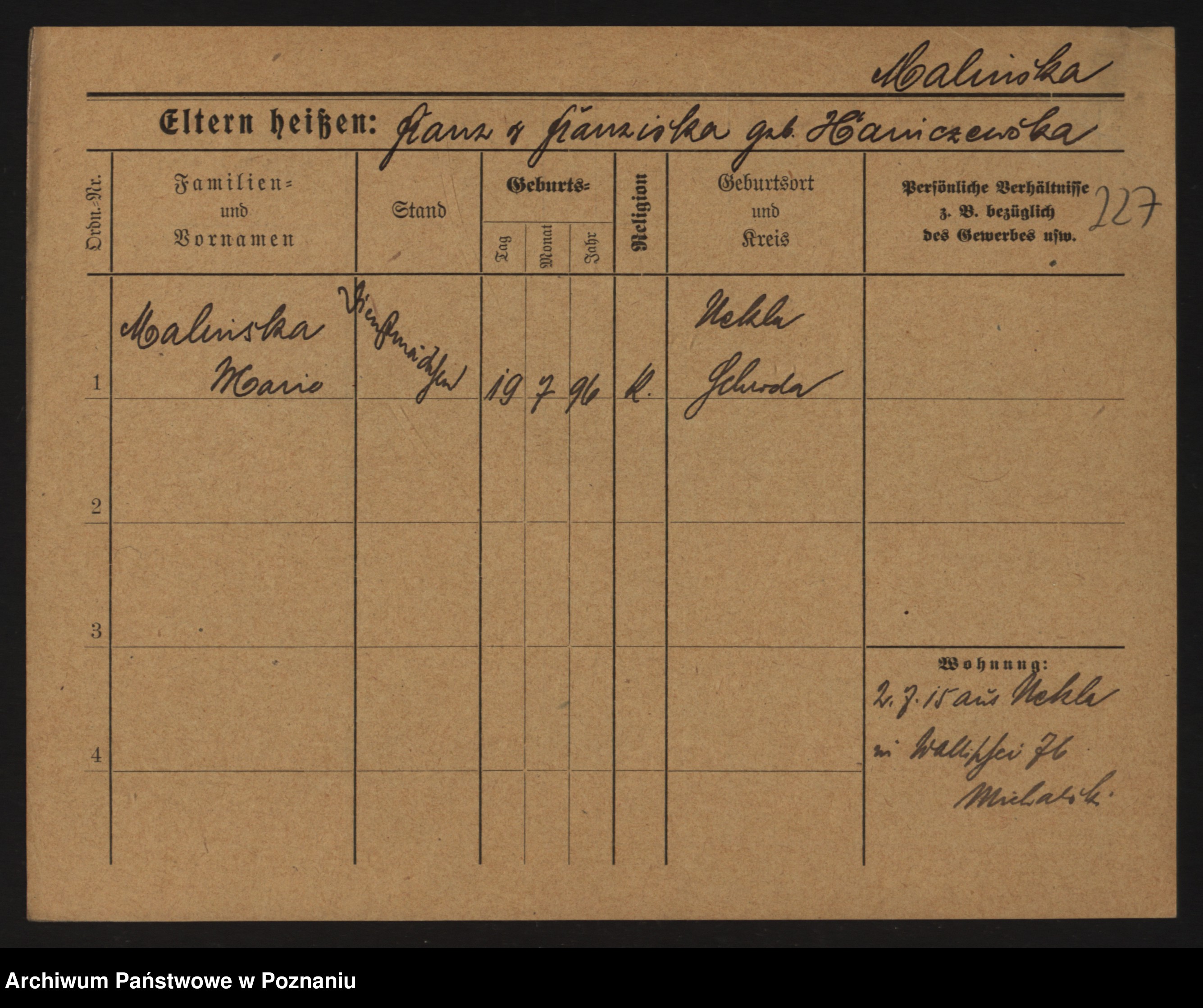 Maliński zd.Nowicka, Johanna